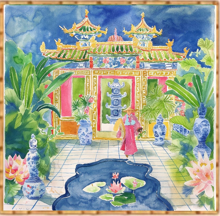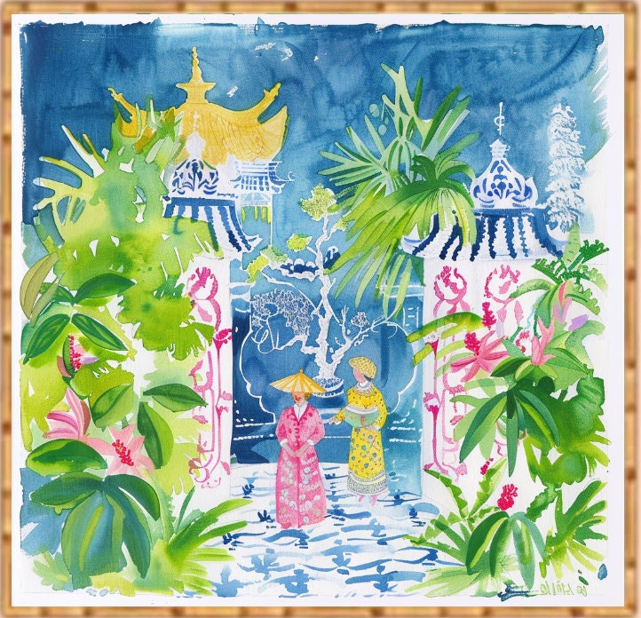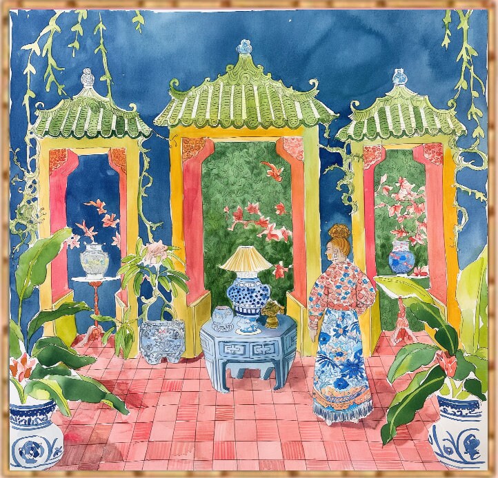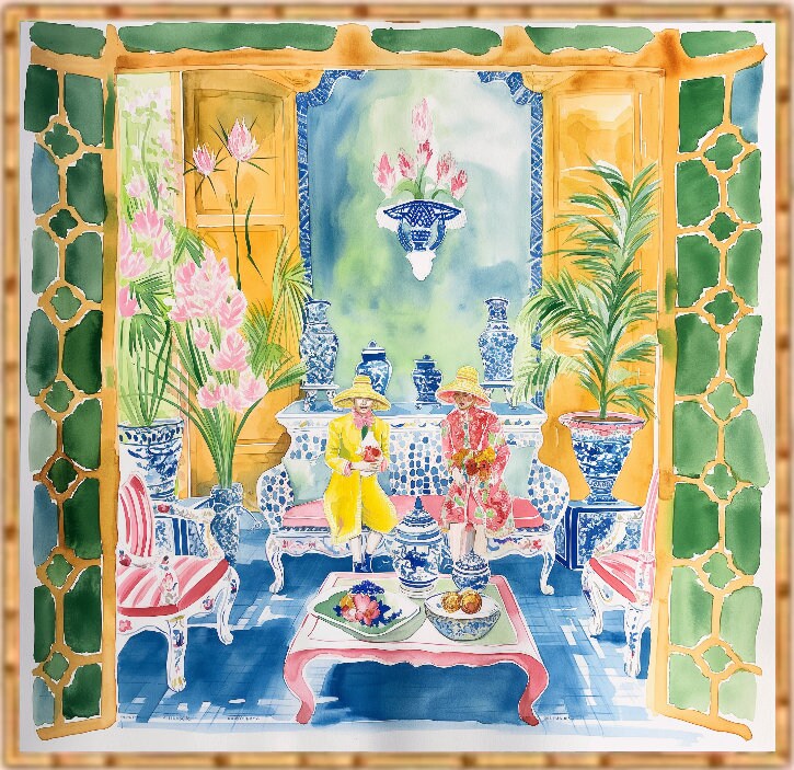 Chinoiserie Watercolor Prints: Hollywood Regency Gallery Wall Art, Set of 4