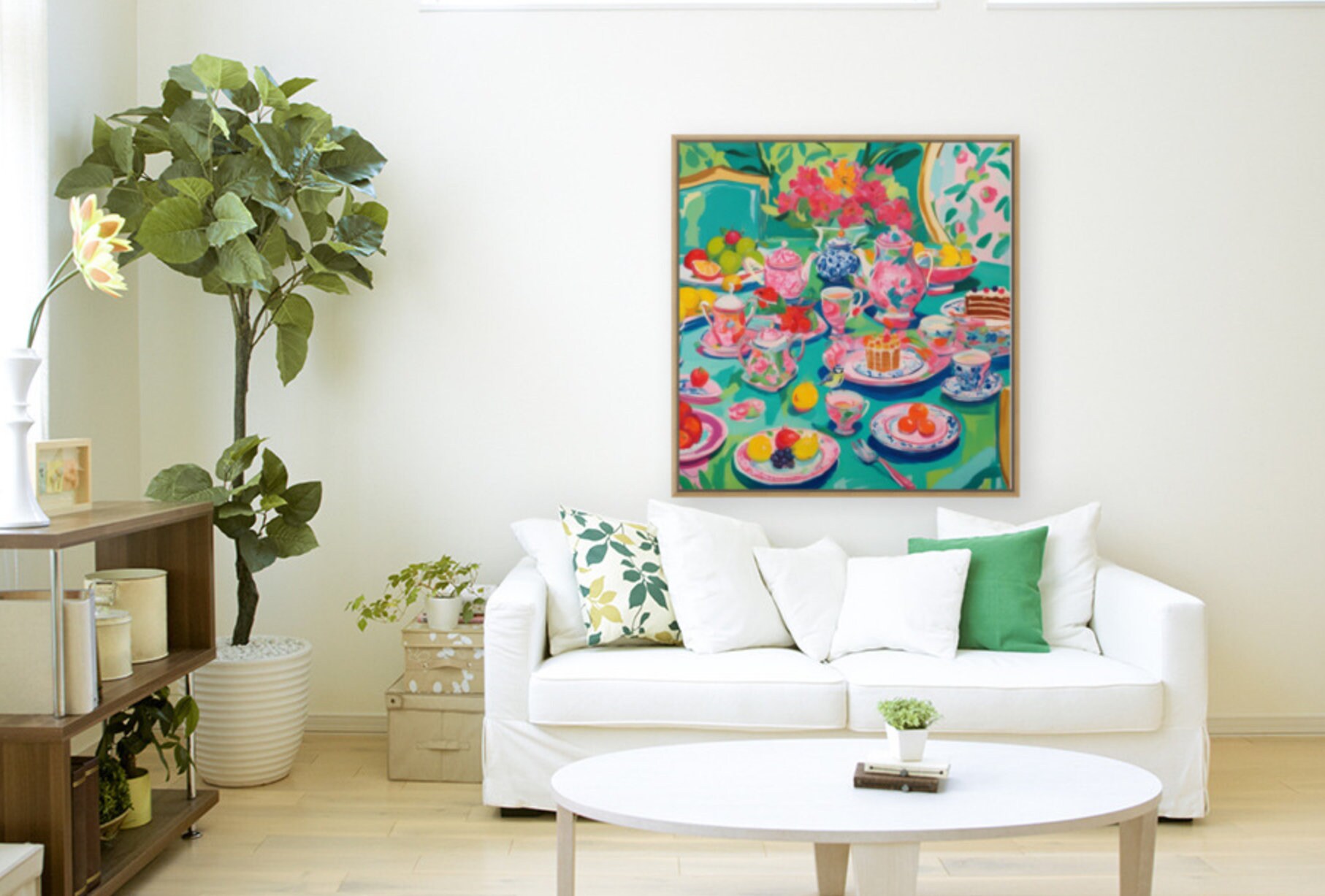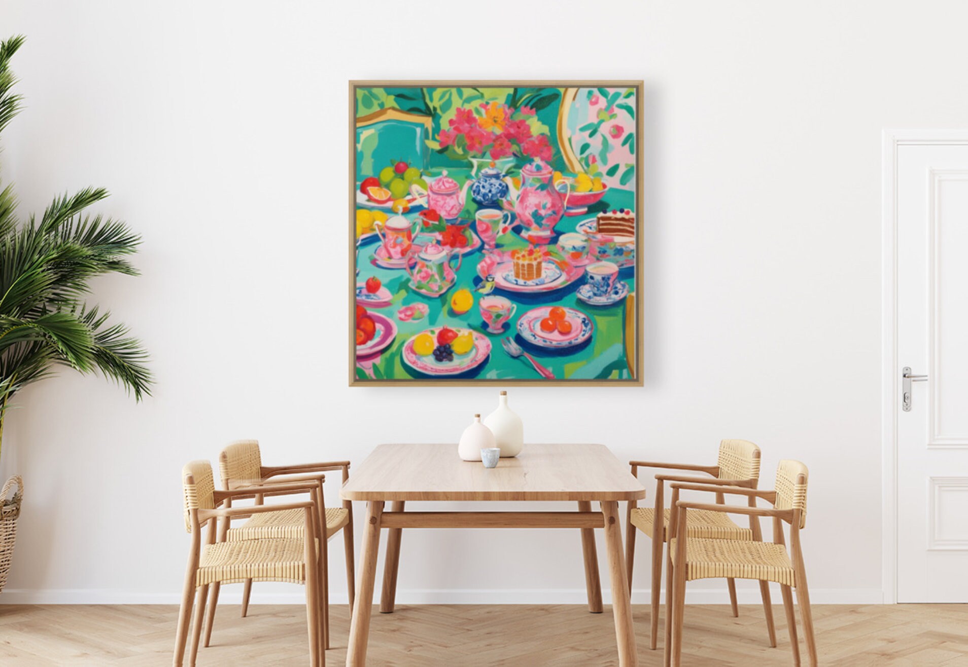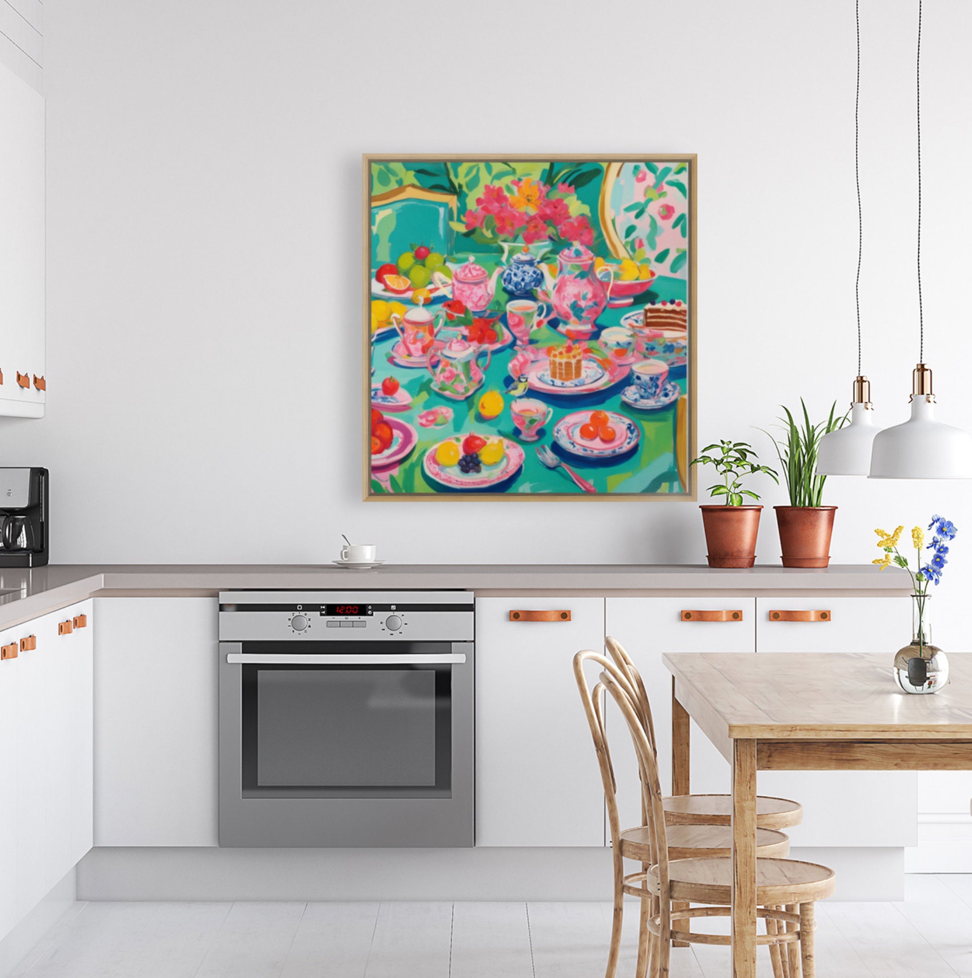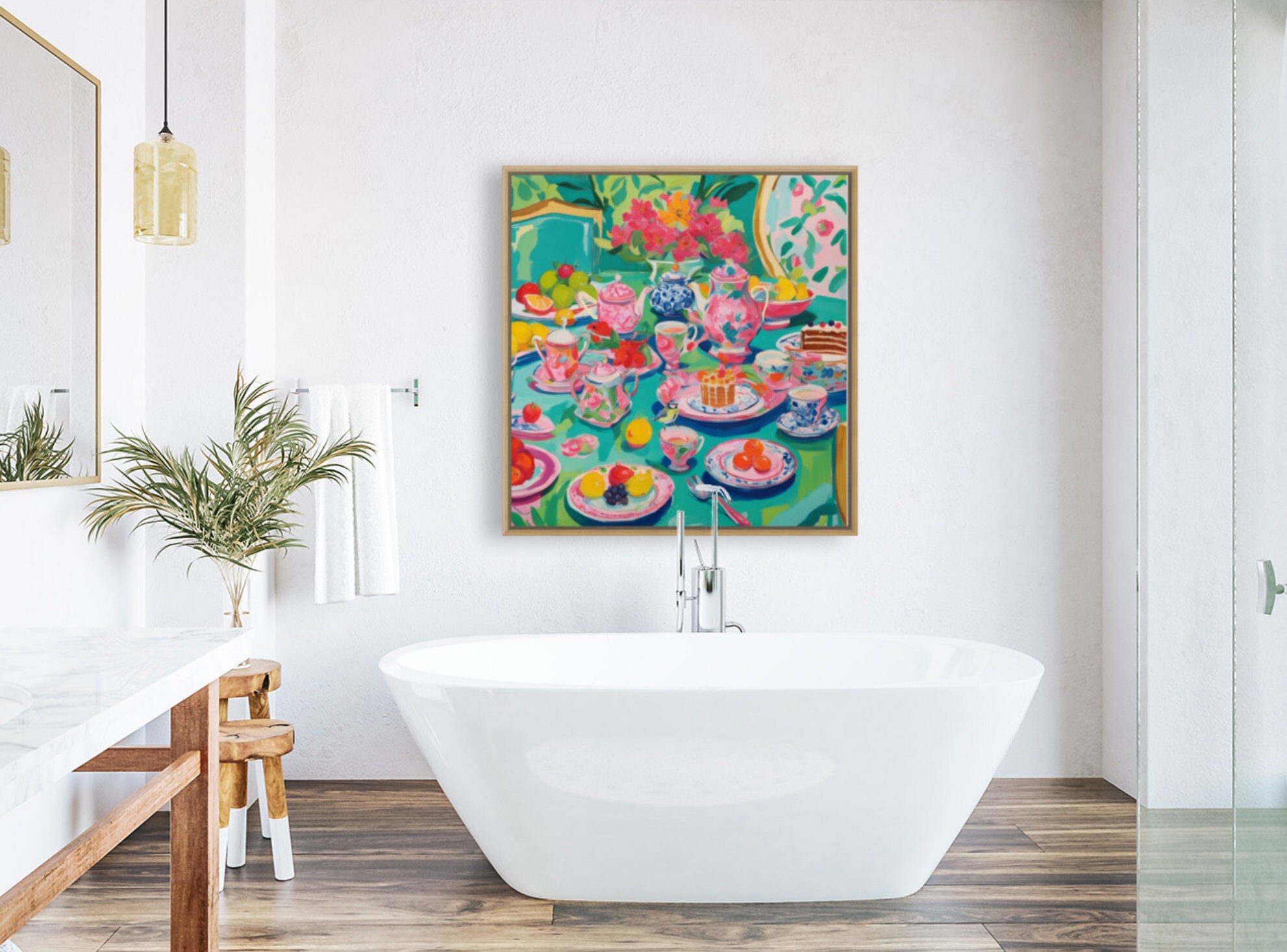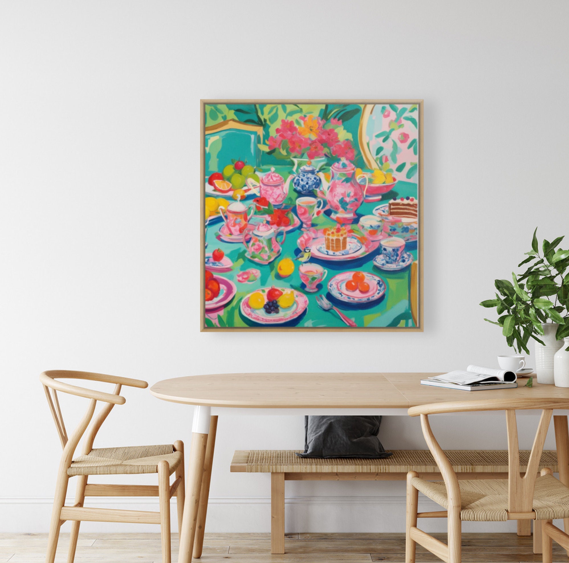 Grandmillennial art, Afternoon Tea in Turquoise, whimsical watercolor