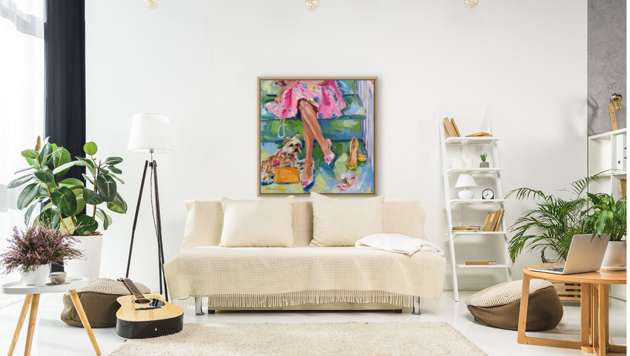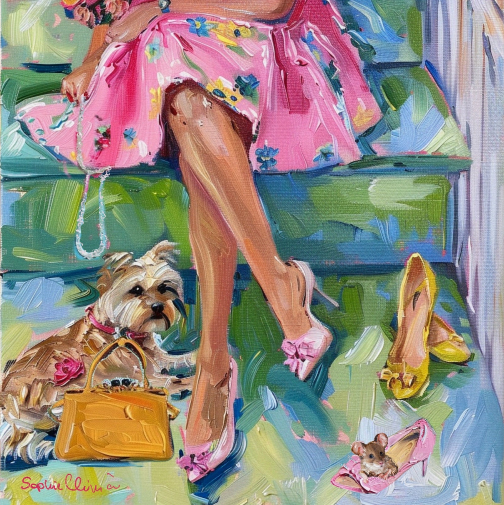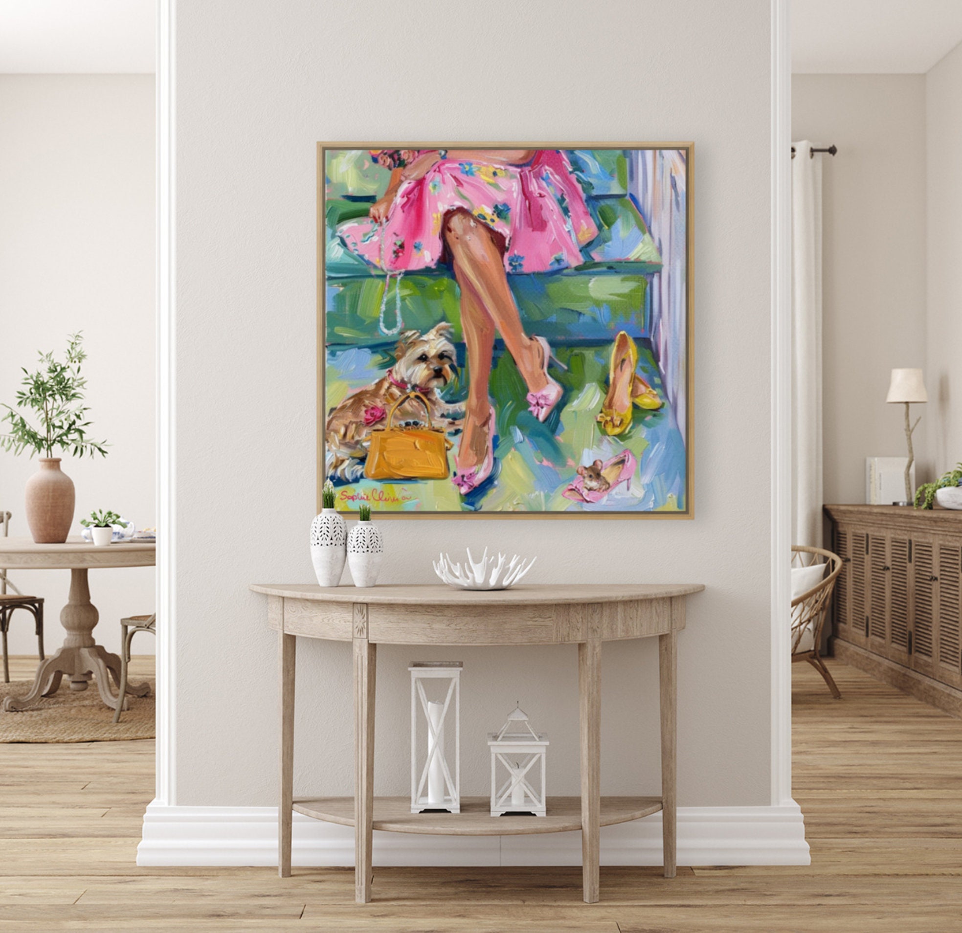 Grandmillennial art, In the dressing room, whimsical fine art print