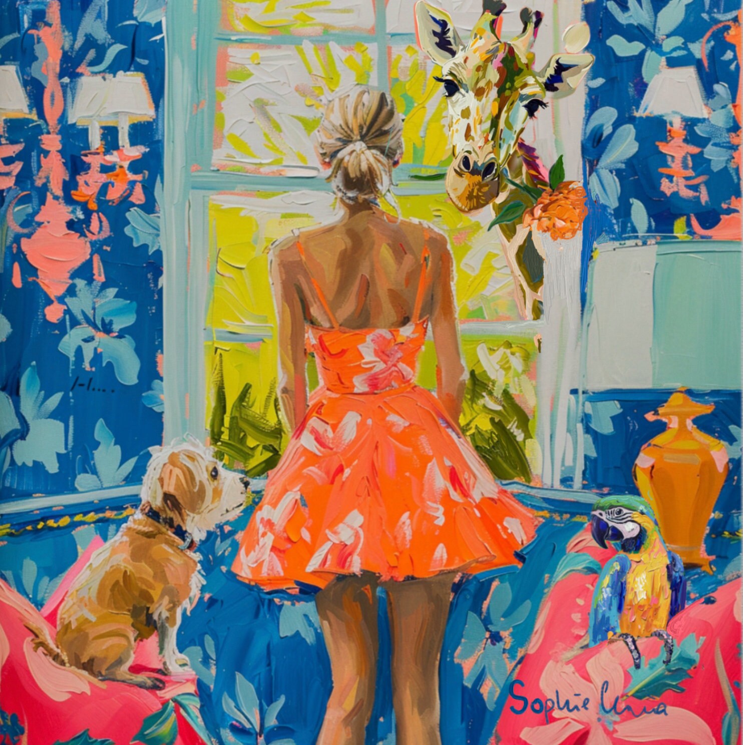 Preppy wall art, Good Morning Mr Giraffe, whimsical fine art