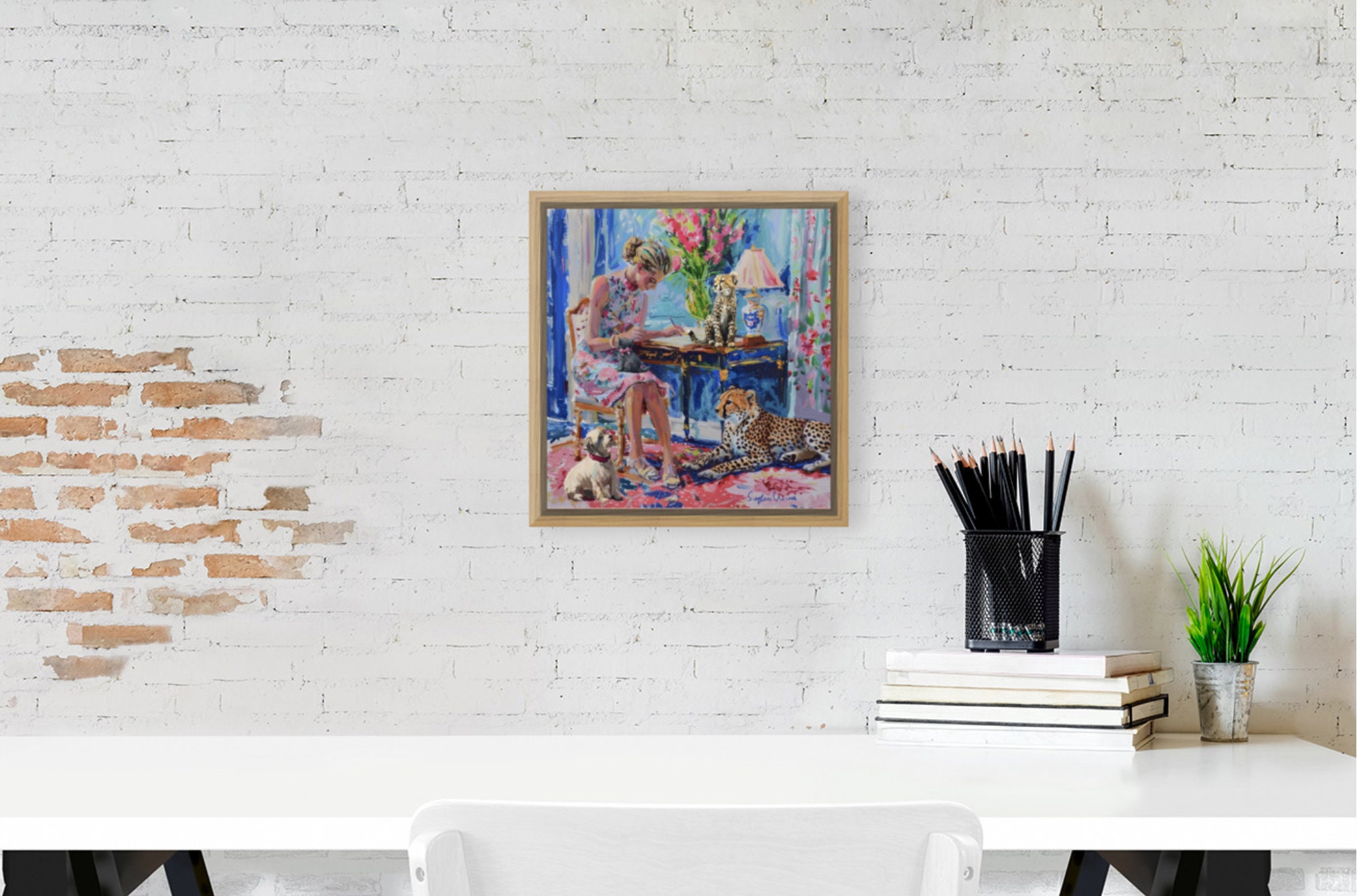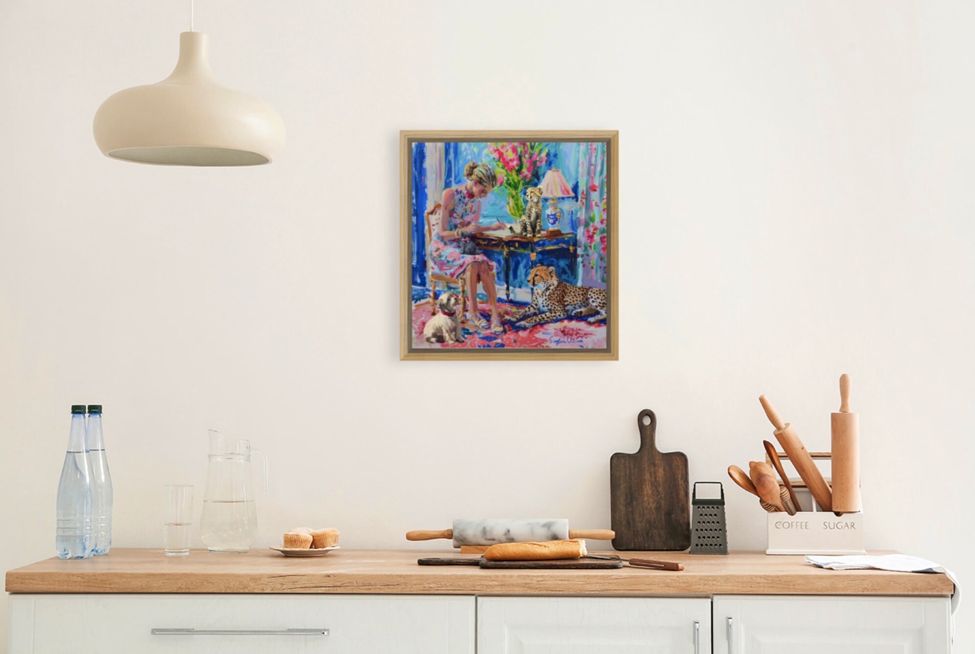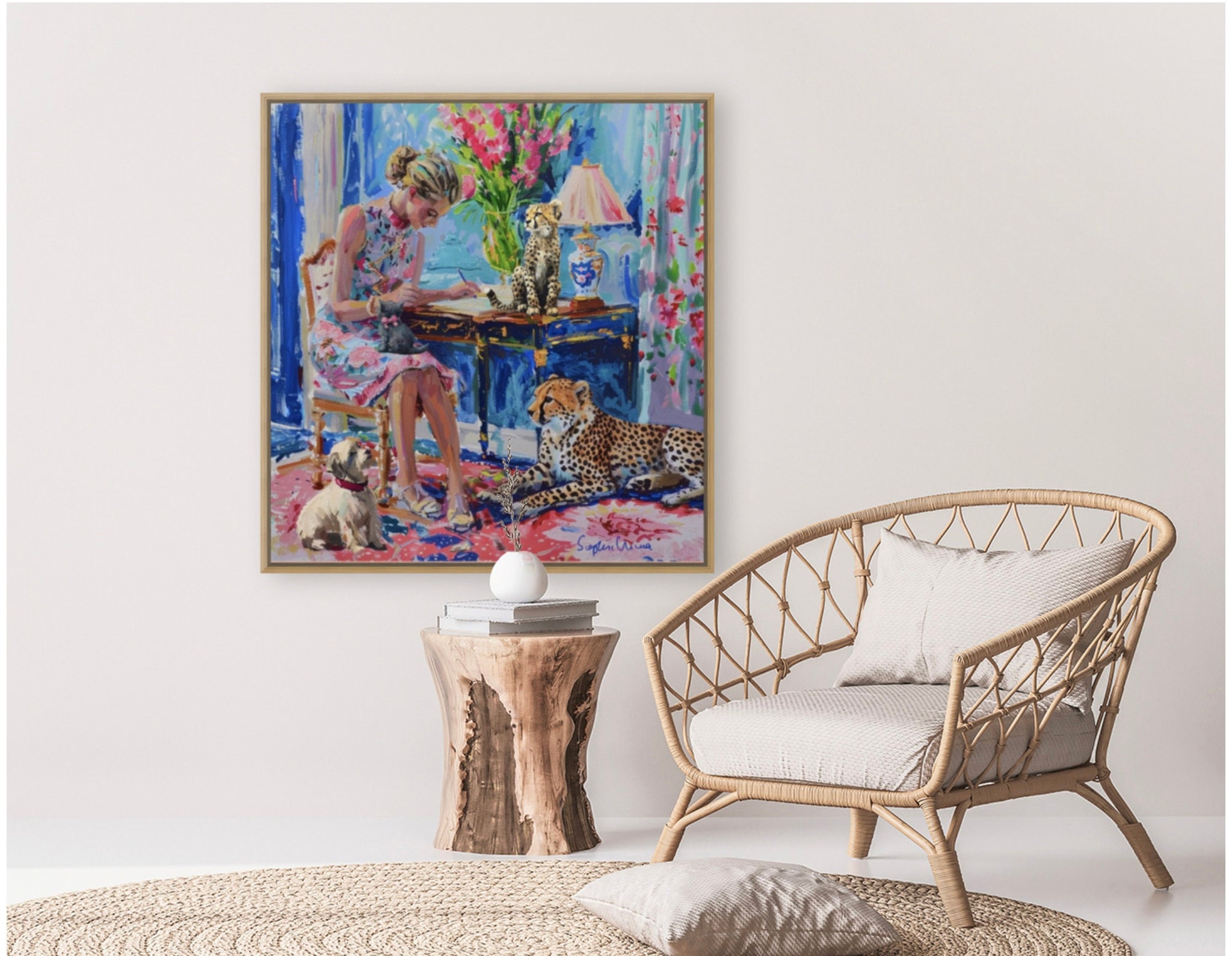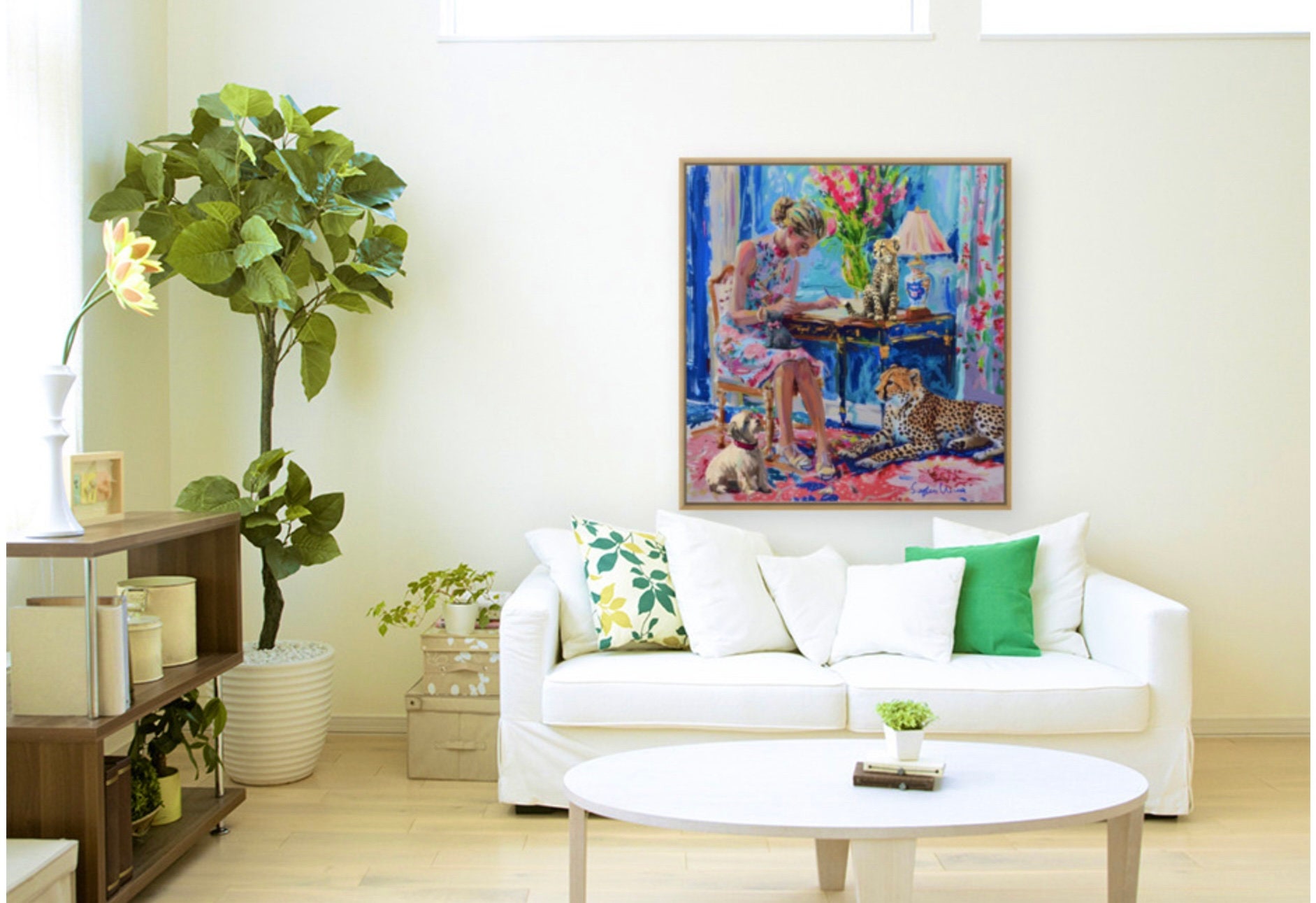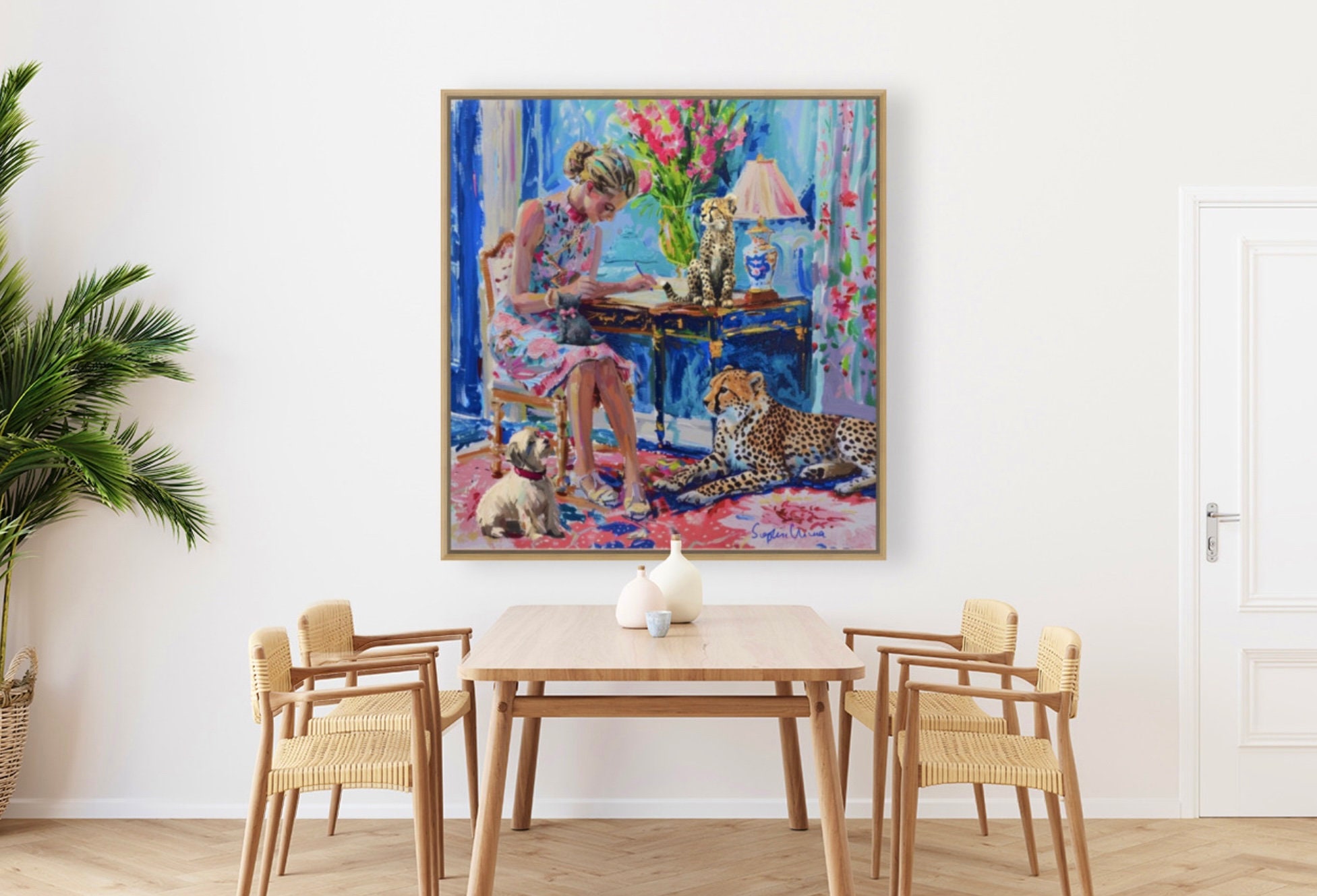 Sophie's art is the modern interpretation of Chinese artistic traditions featuring pagodas, landscapes, blue and white porcelain, ginger jars, pagodas, cheetahs and monkeys. Sophie developed her own recognizable style with bright colors and whimsical details.