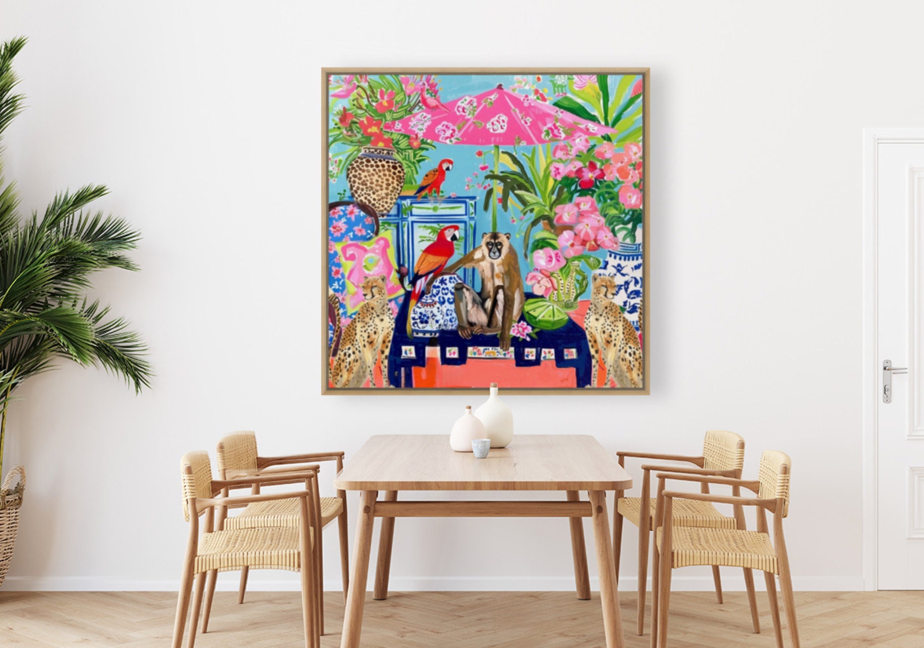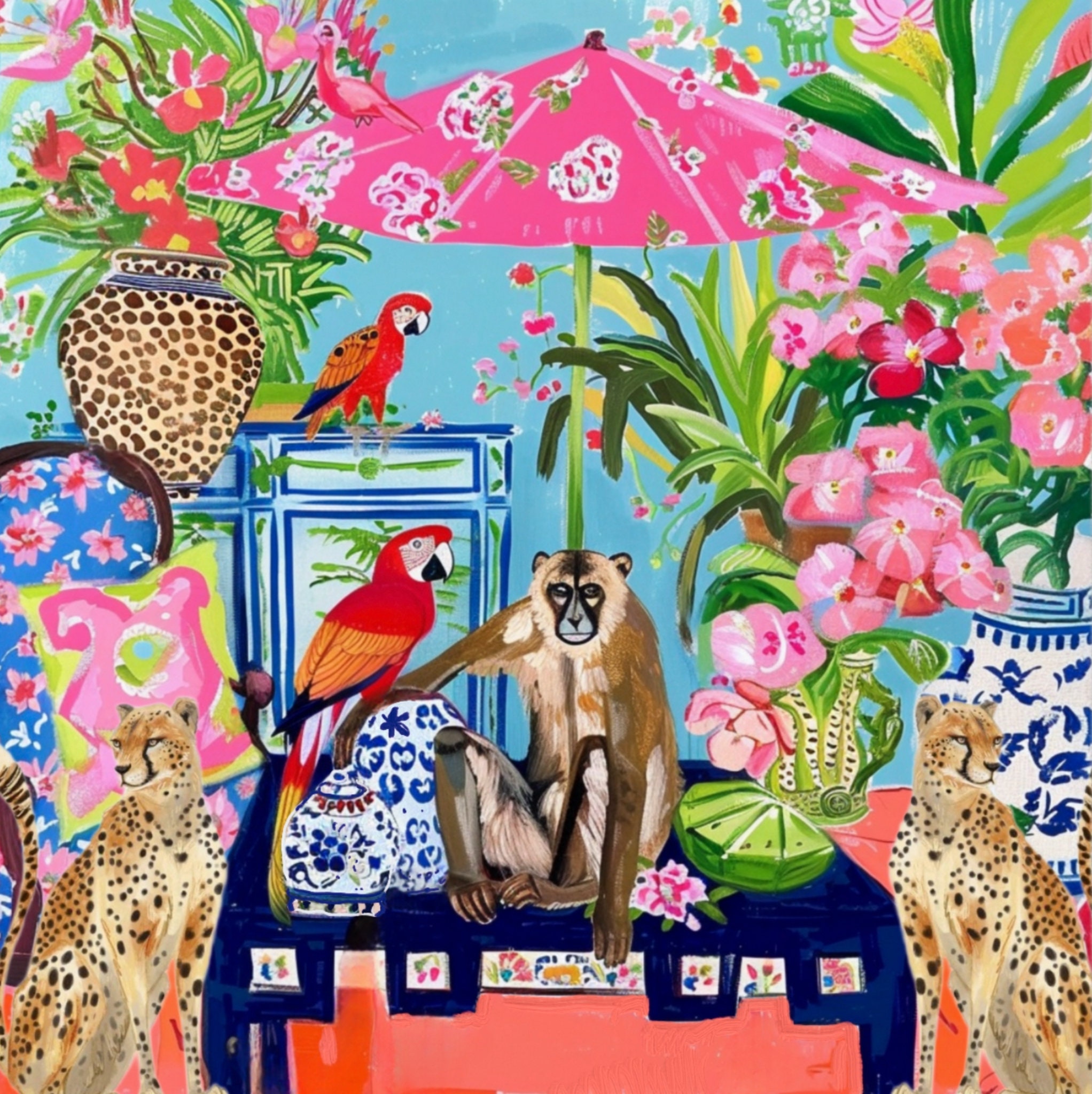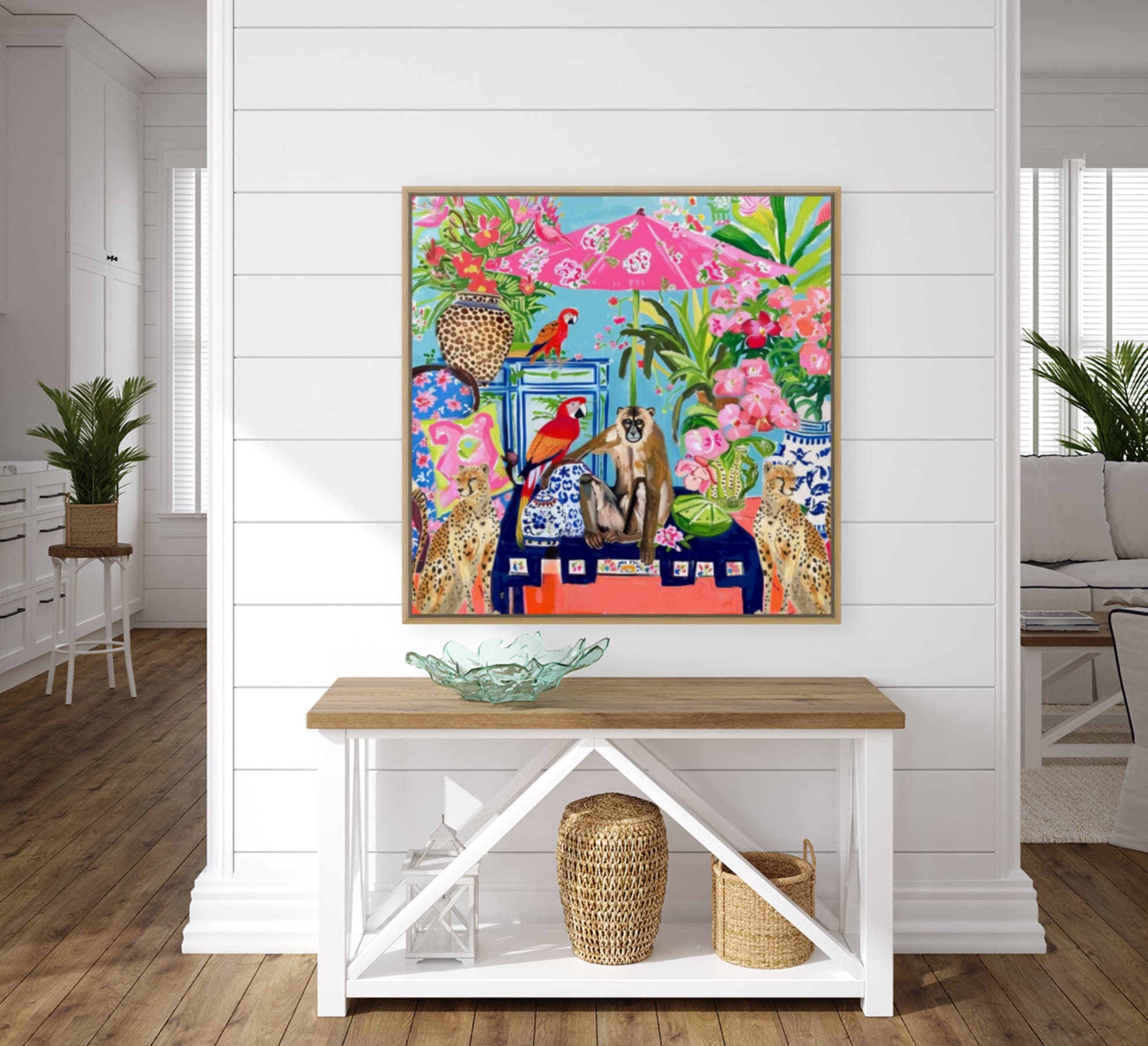Cheetah & Monkey Chinoiserie Art Print: Grandmillennial Decor