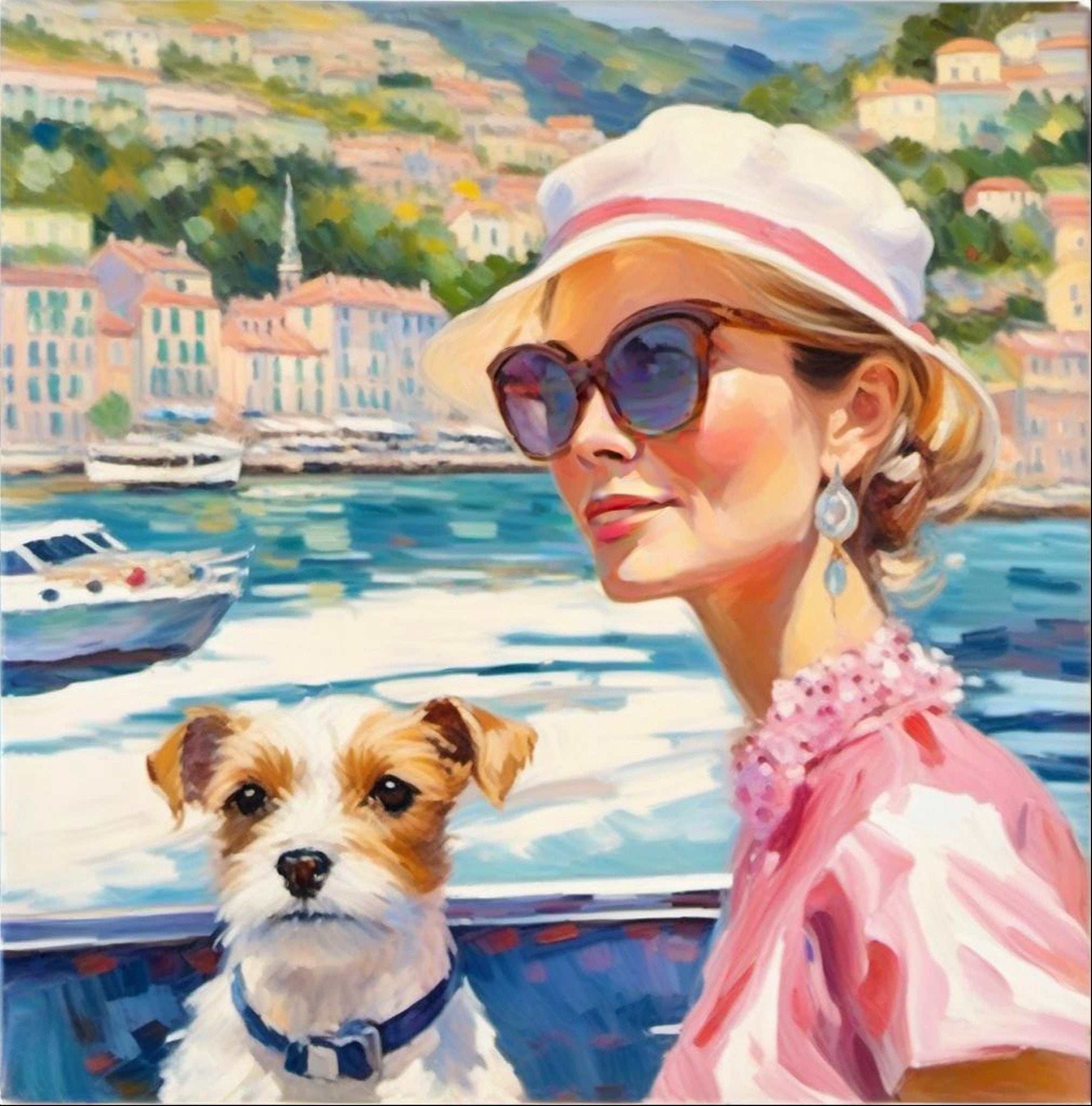 Bring a touch of Mediterranean elegance to your home with this stunning 'Capri Holiday Preppy Art Print.' Featuring a stylish woman in a chic hat and sunglasses, accompanied by her adorable dog, this vibrant painting captures the charm and beauty of Italy's coastal life. Perfect for those who love travel-inspired decor, this art print adds a sophisticated and cheerful atmosphere to any room. High-quality print on premium paper ensures vivid colors and fine details that will last for years. Ideal for living rooms, bedrooms, or as a unique gift for art lovers