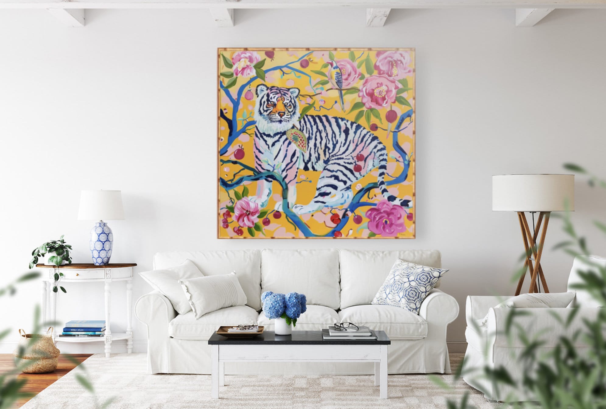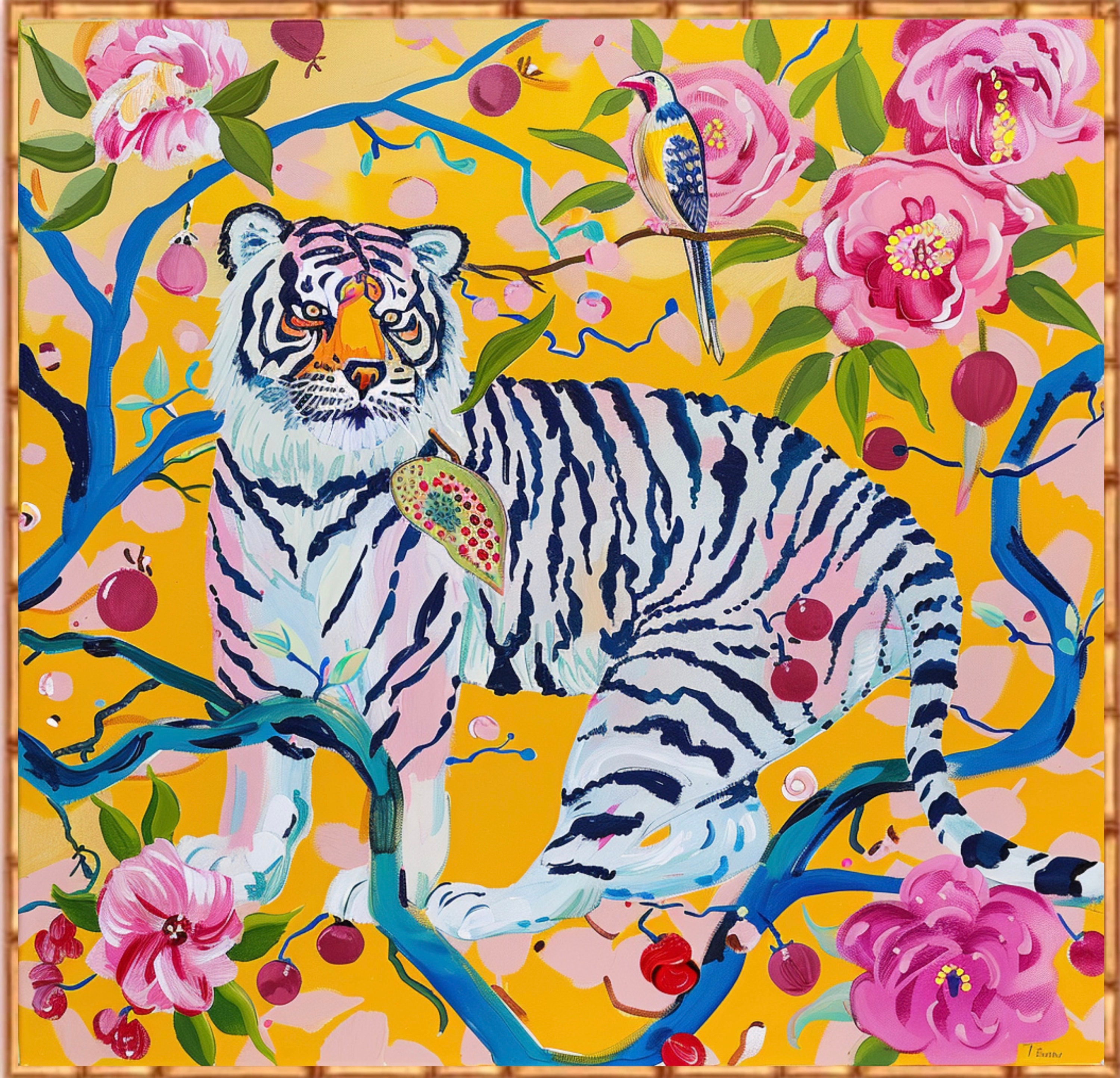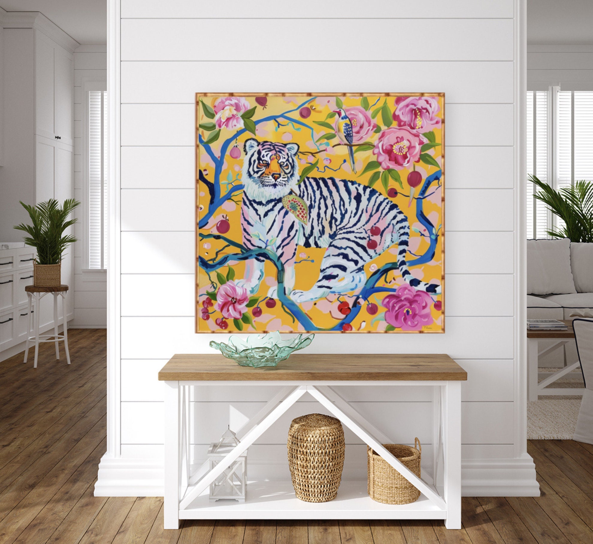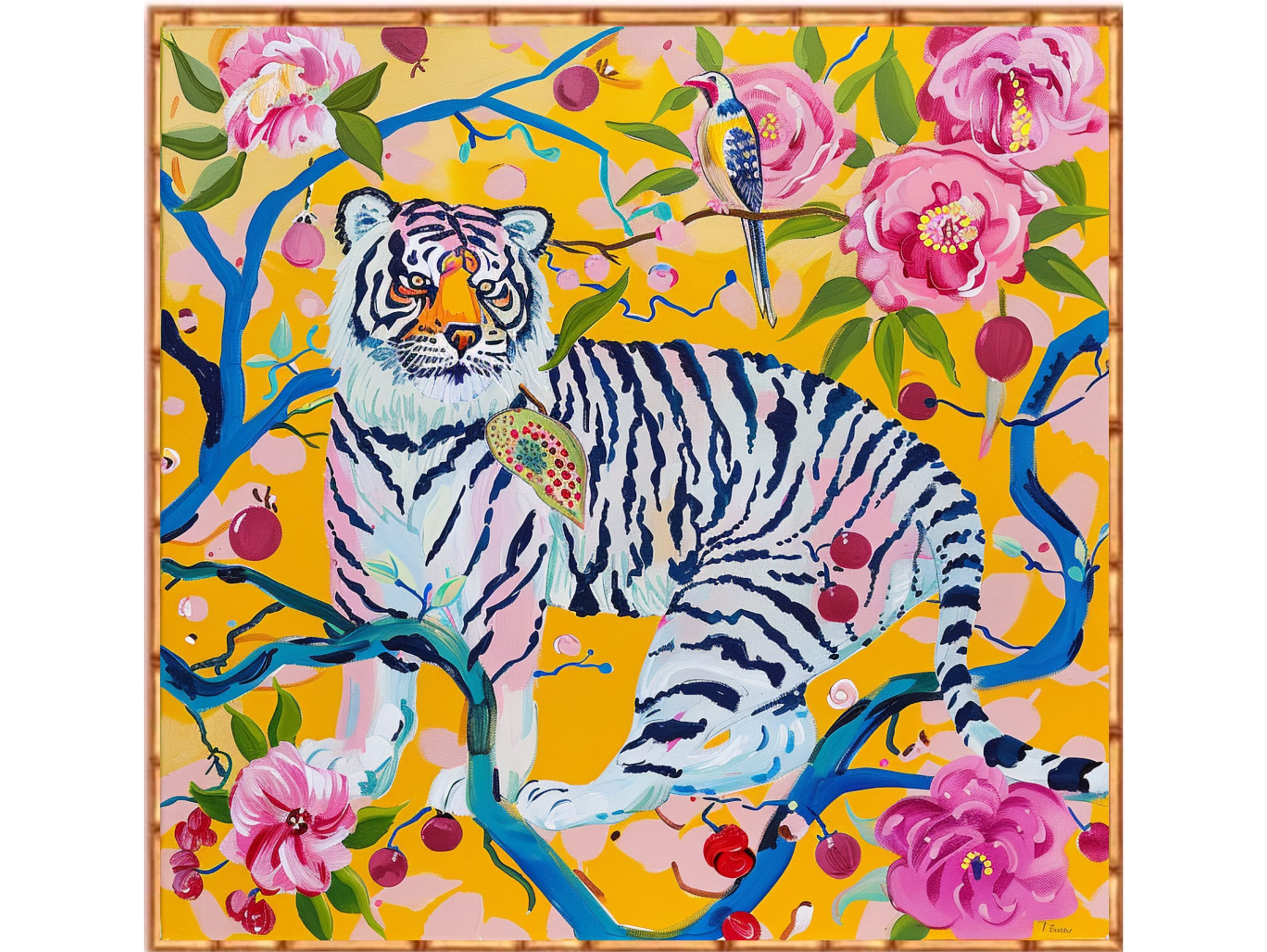 Tiger Chinoiserie Art Print: Grandmillennial Style Watercolor