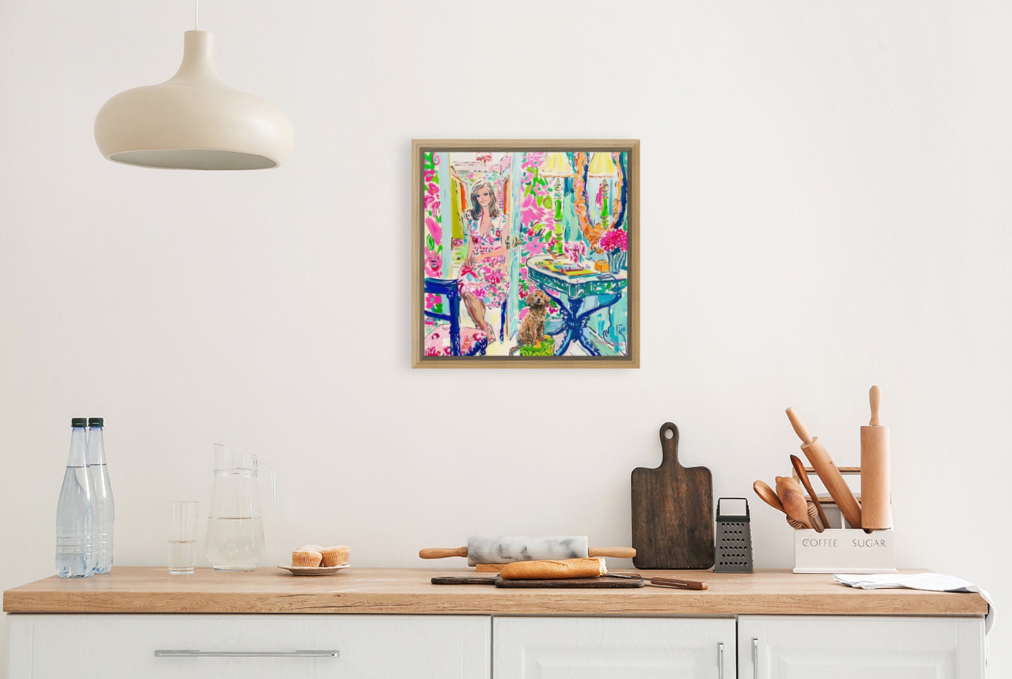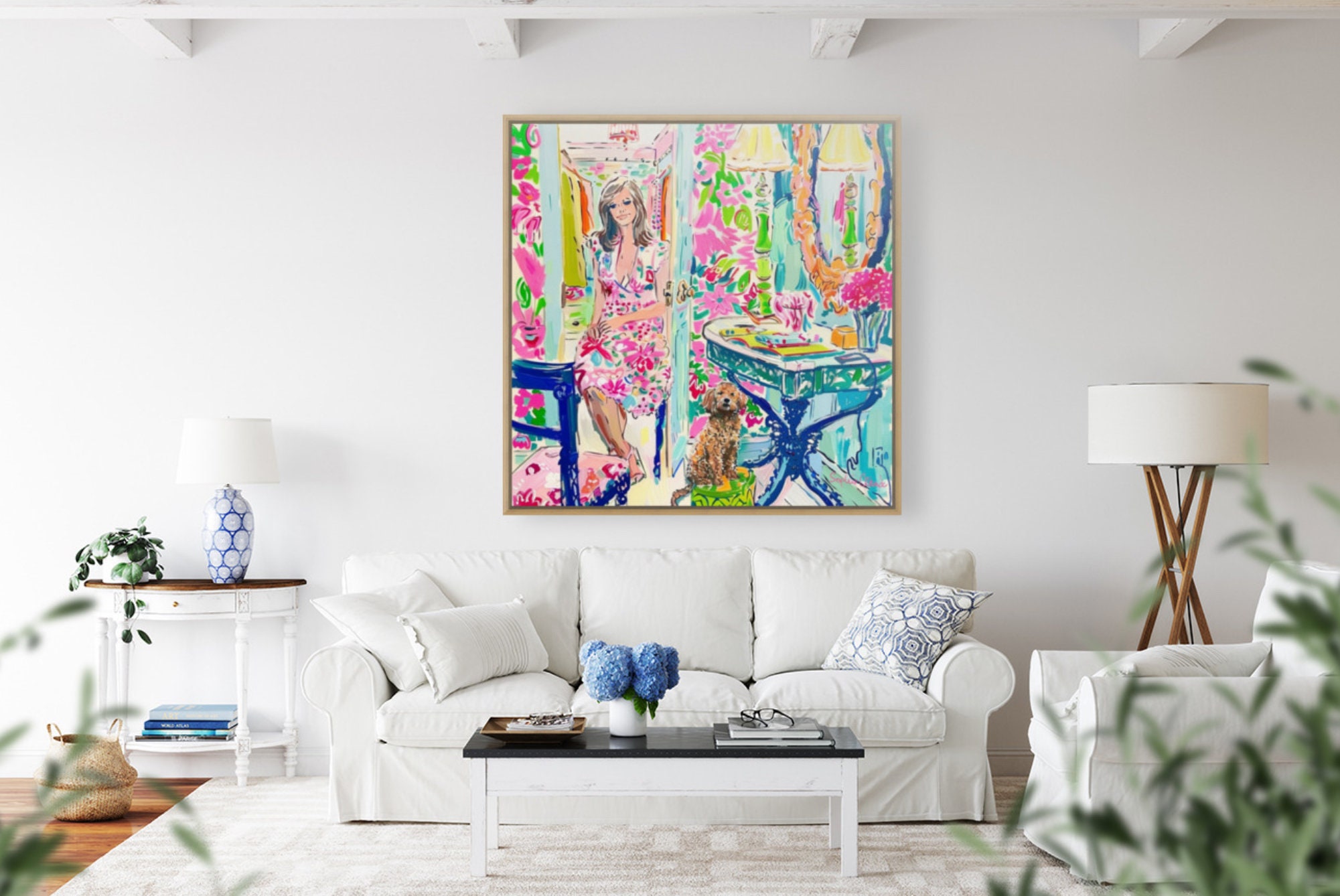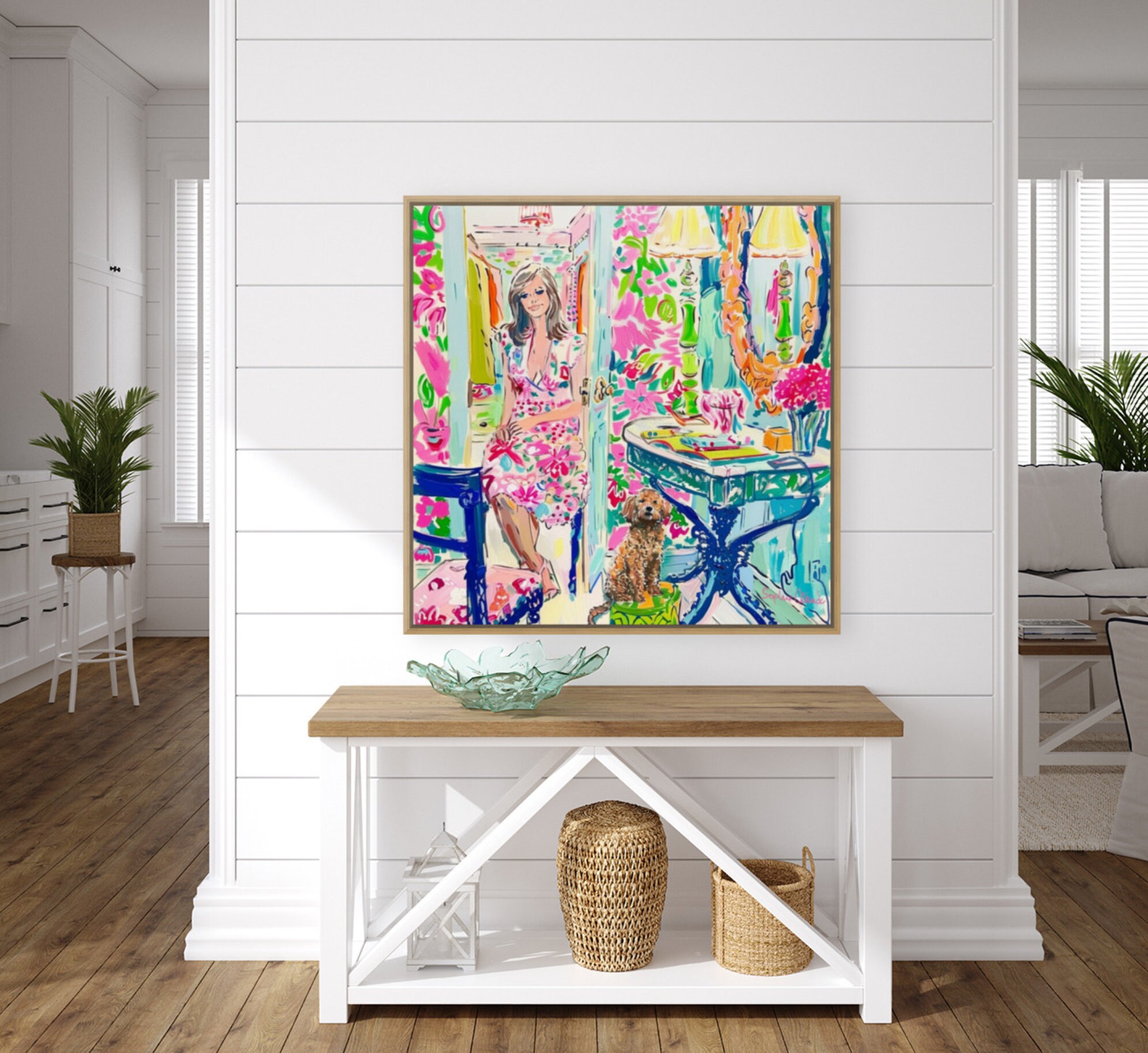 In the dressing room, grandmillennial art, preppy painting