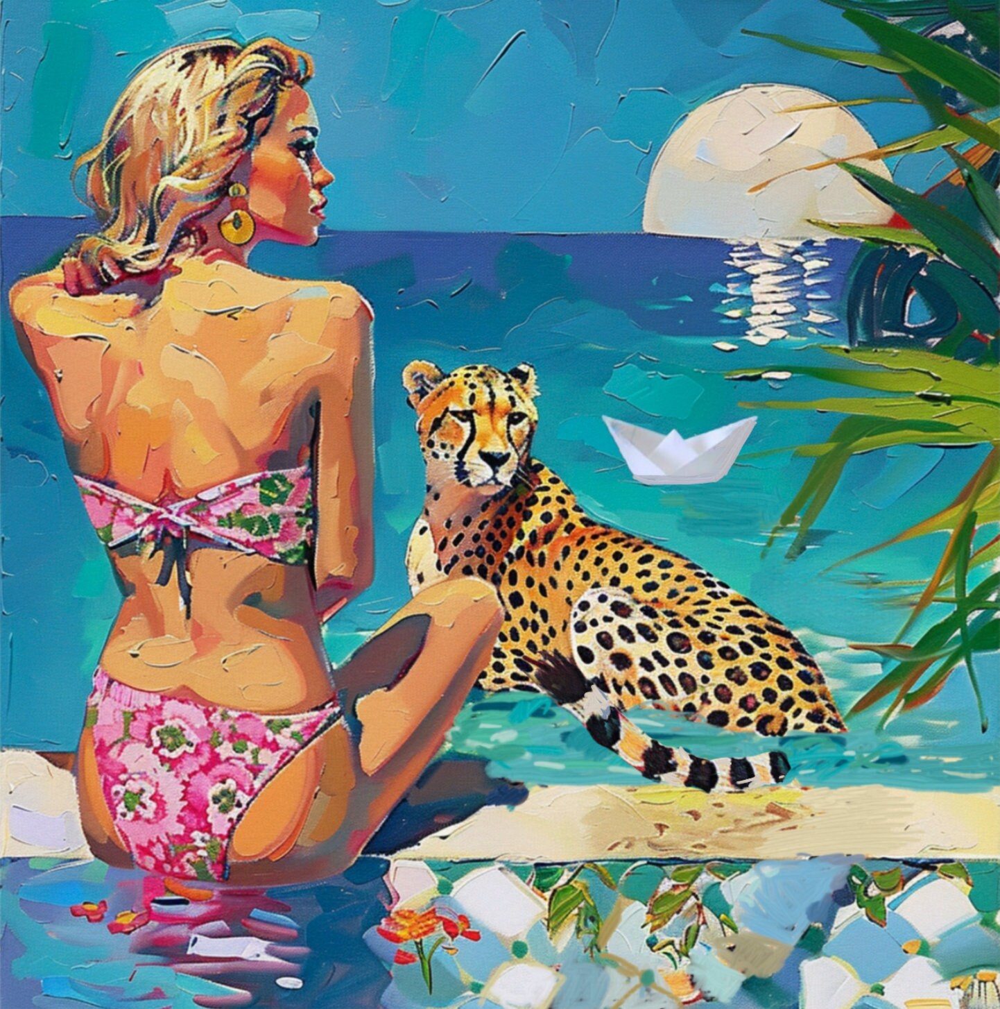 Sophie's art is the modern interpretation of Chinese artistic traditions featuring pagodas, landscapes, blue and white porcelain, ginger jars, pagodas, cheetahs and monkeys. Sophie developed her own recognizable style with bright colors and whimsical details.