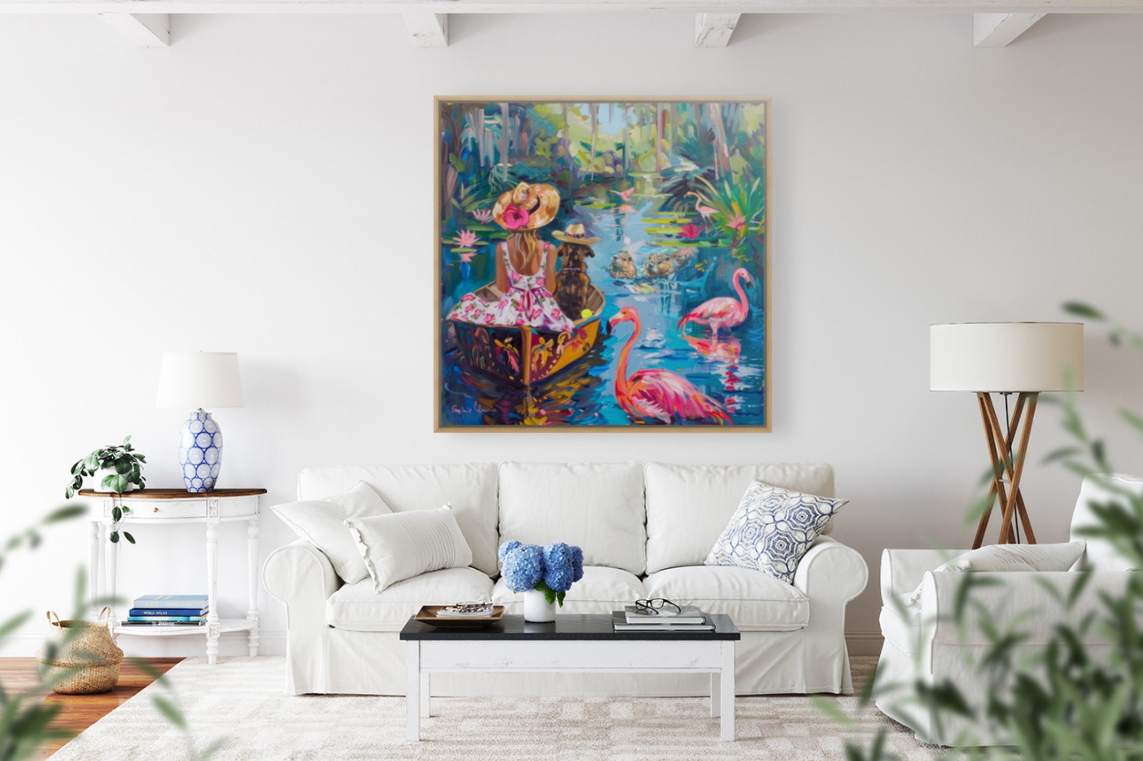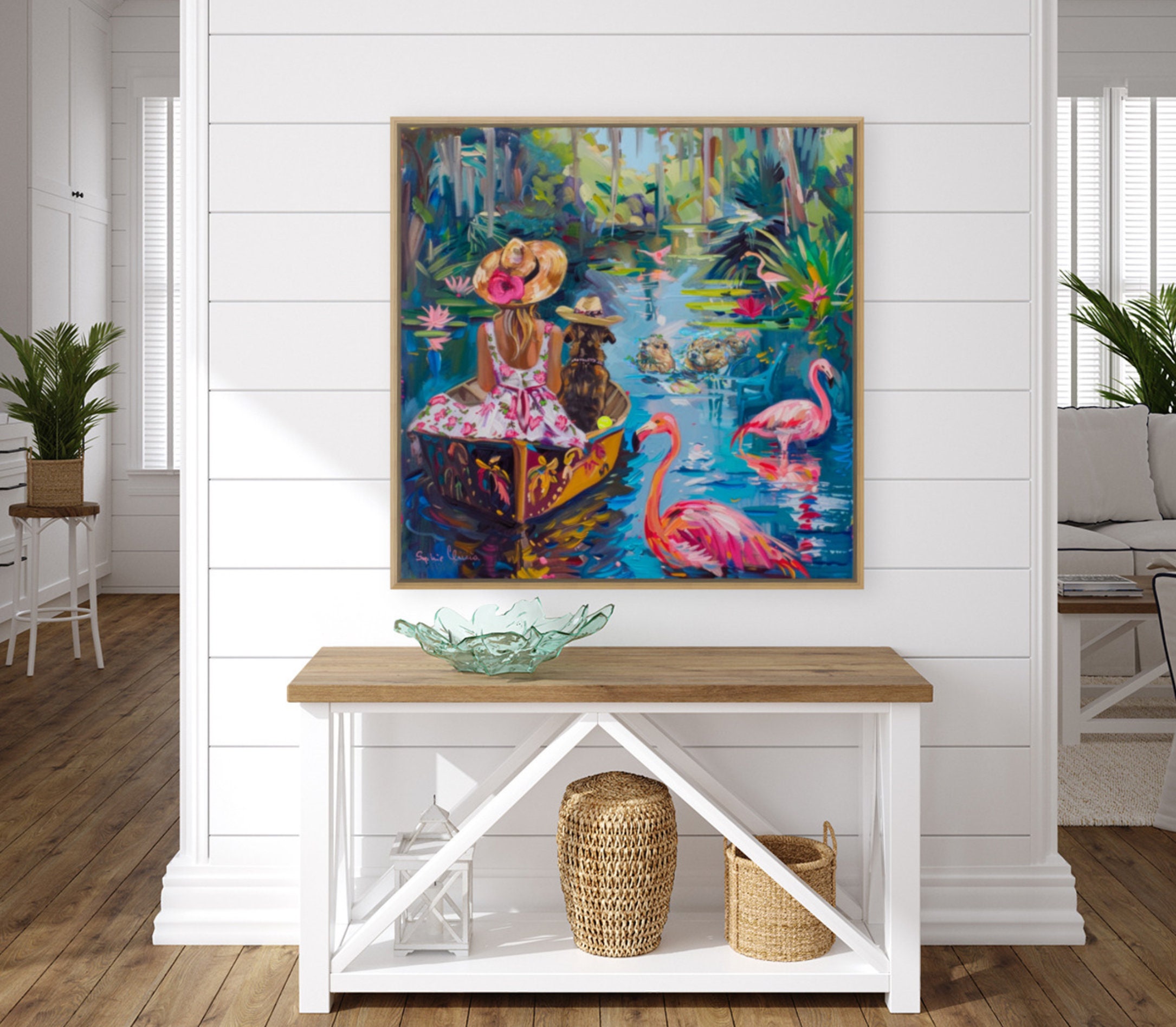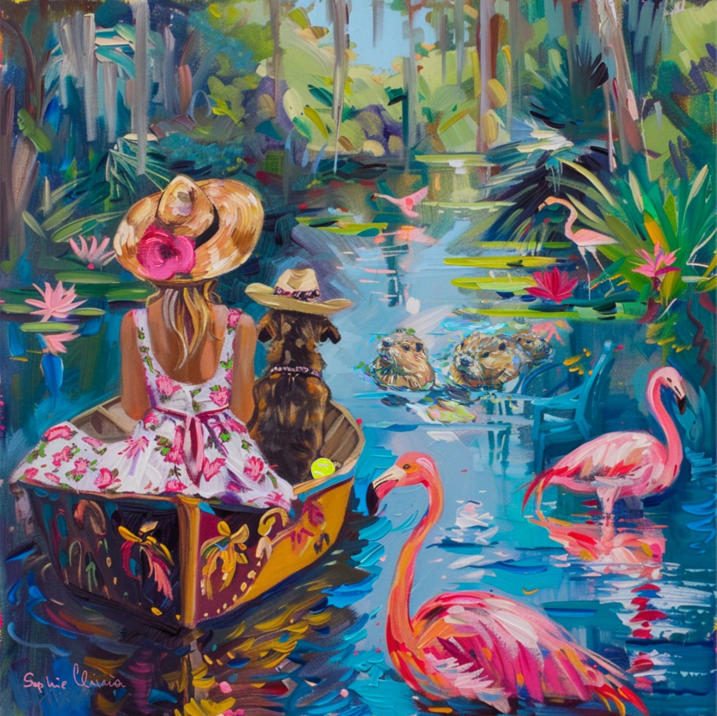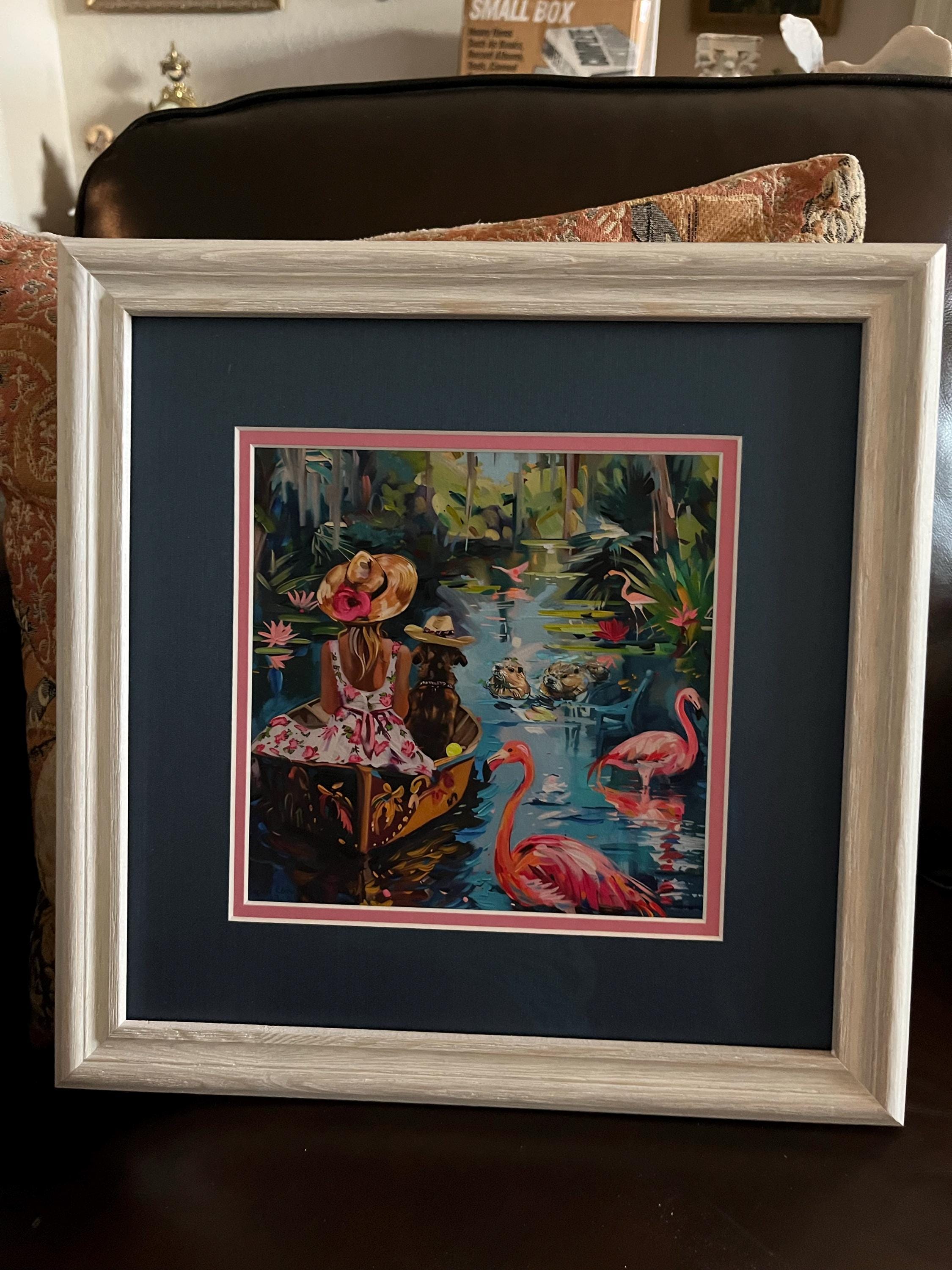 I was so elated to receive this charming, whimsical watercolor print of “Pink Flamingo Watch,” in a bayou setting. The detail is so intriguing it beckons me to gaze into this enchanting scene forever. When I brought this high-quality giclee art to a custom framing store. three of the staff were excited with its originality. To anyone who has discovered artist Sophie Clima’s portfolio of work, I urge them to take the leap and purchase it. It’s worth the price!