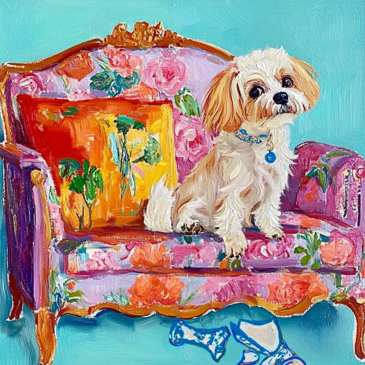 Grandmillennial art, Innocent until proved guilty, whimsical dog print
