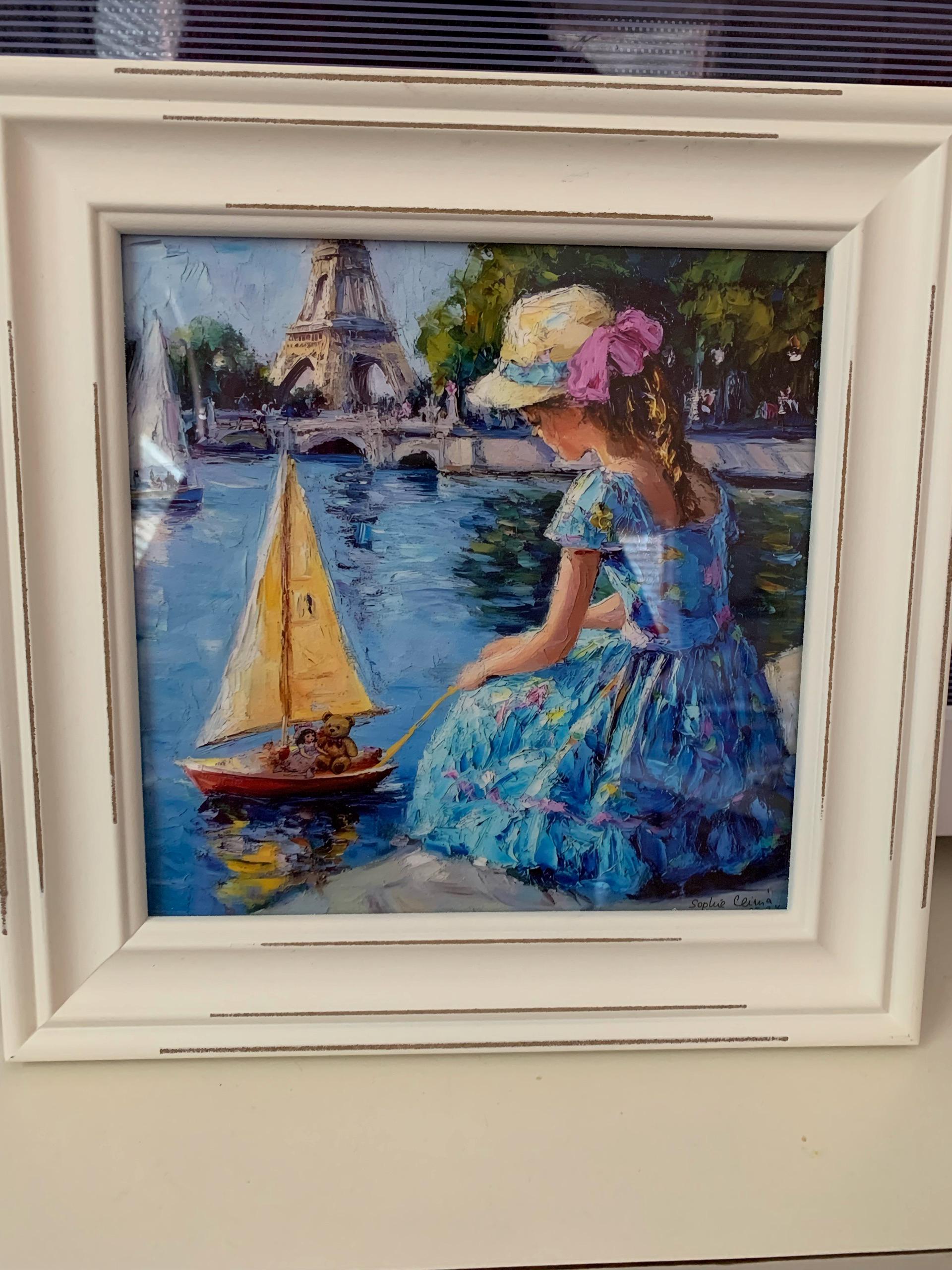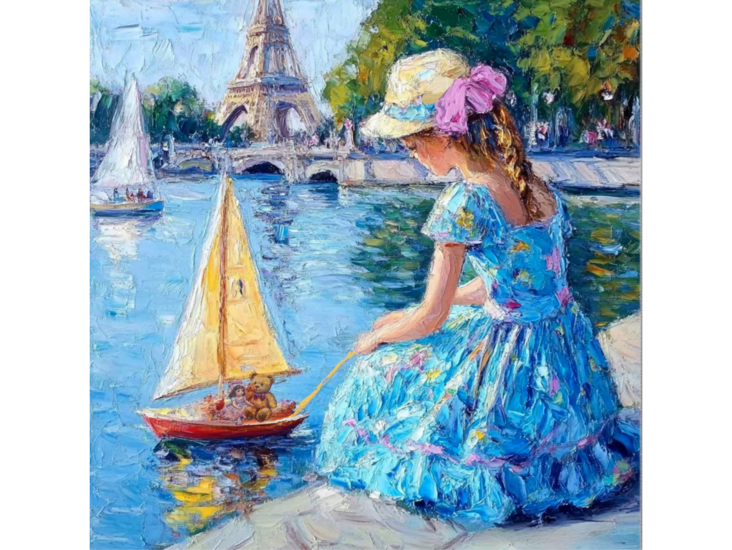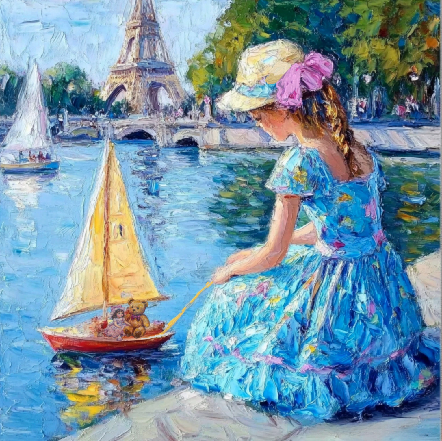 Grandmillennial art, Sailing on the Seine, whimsical fine art