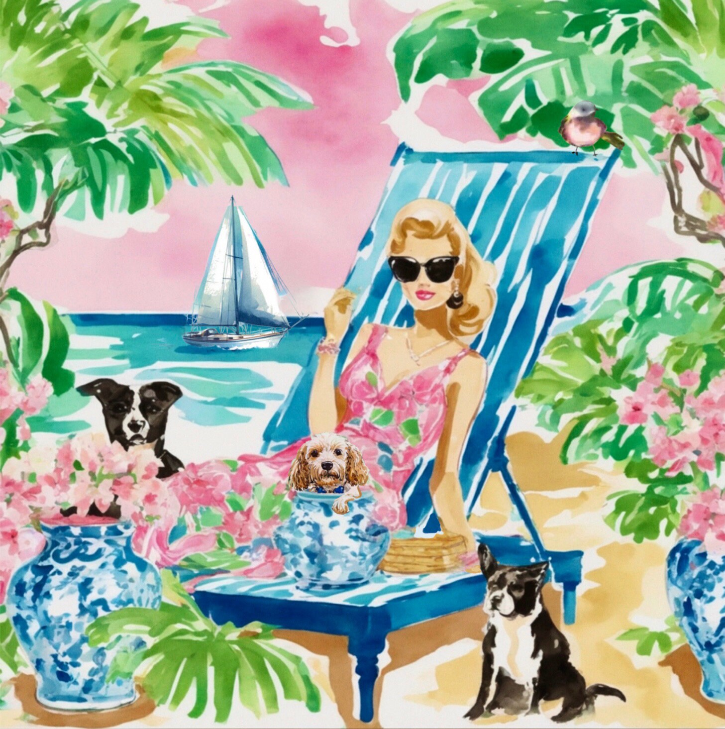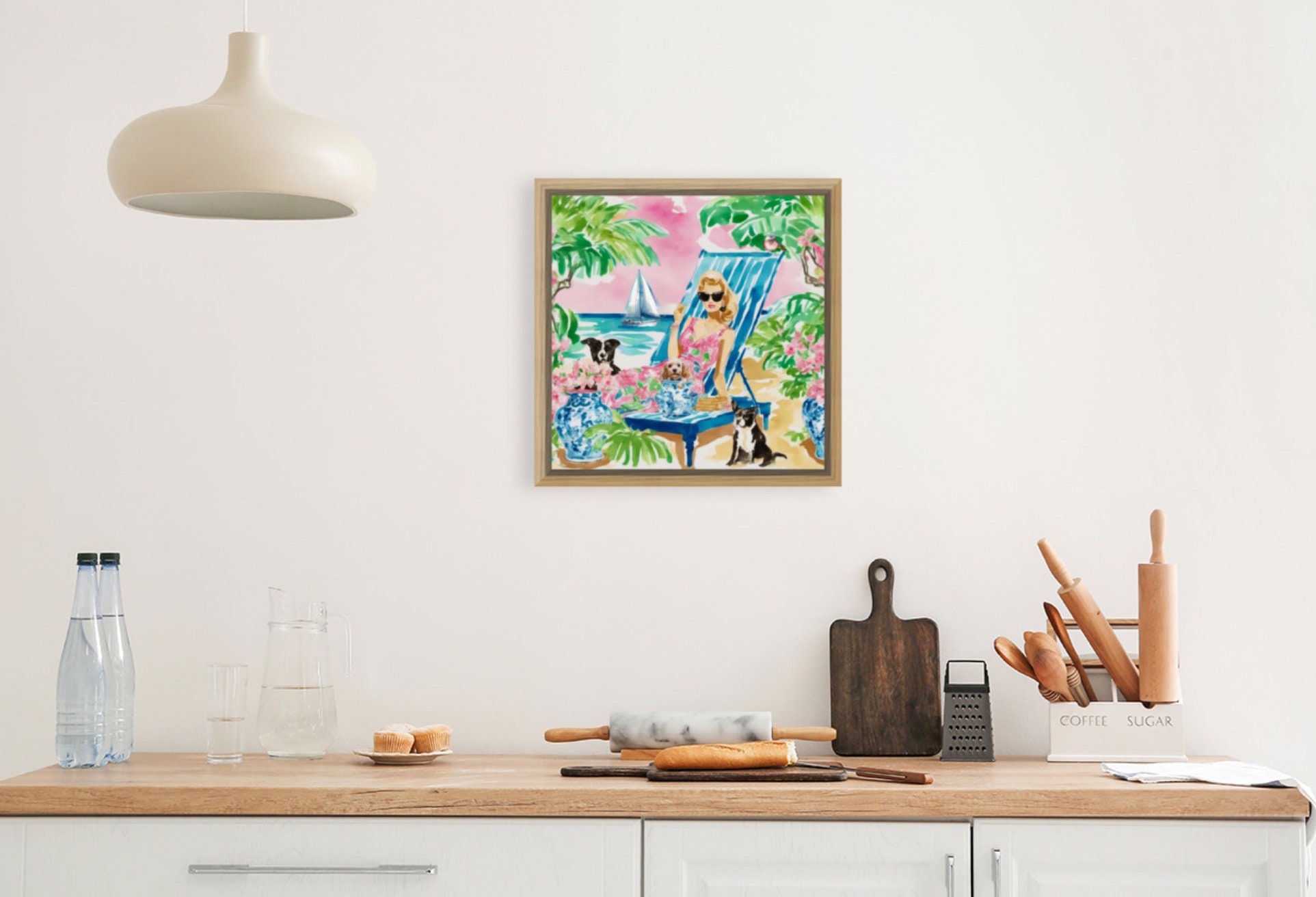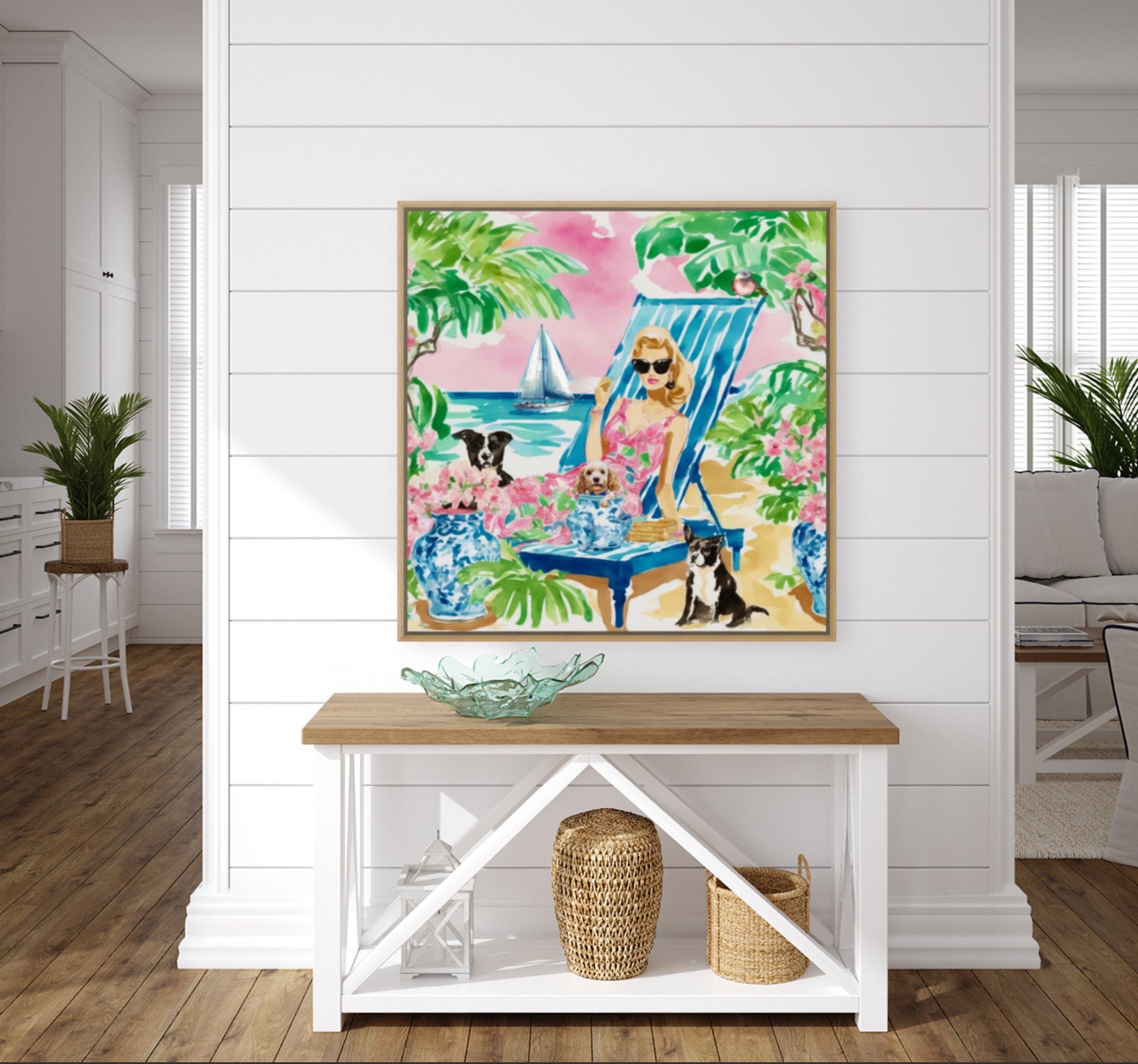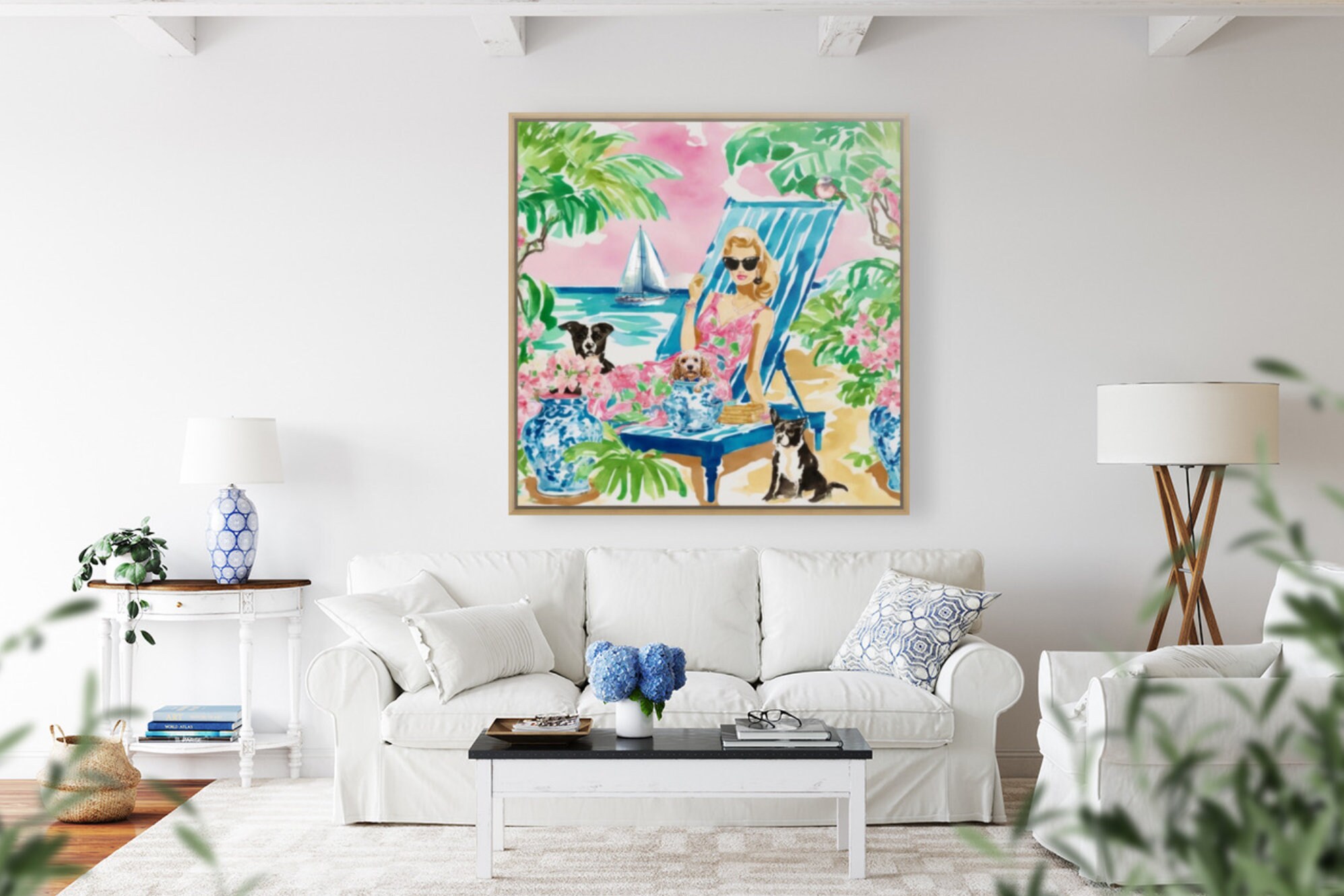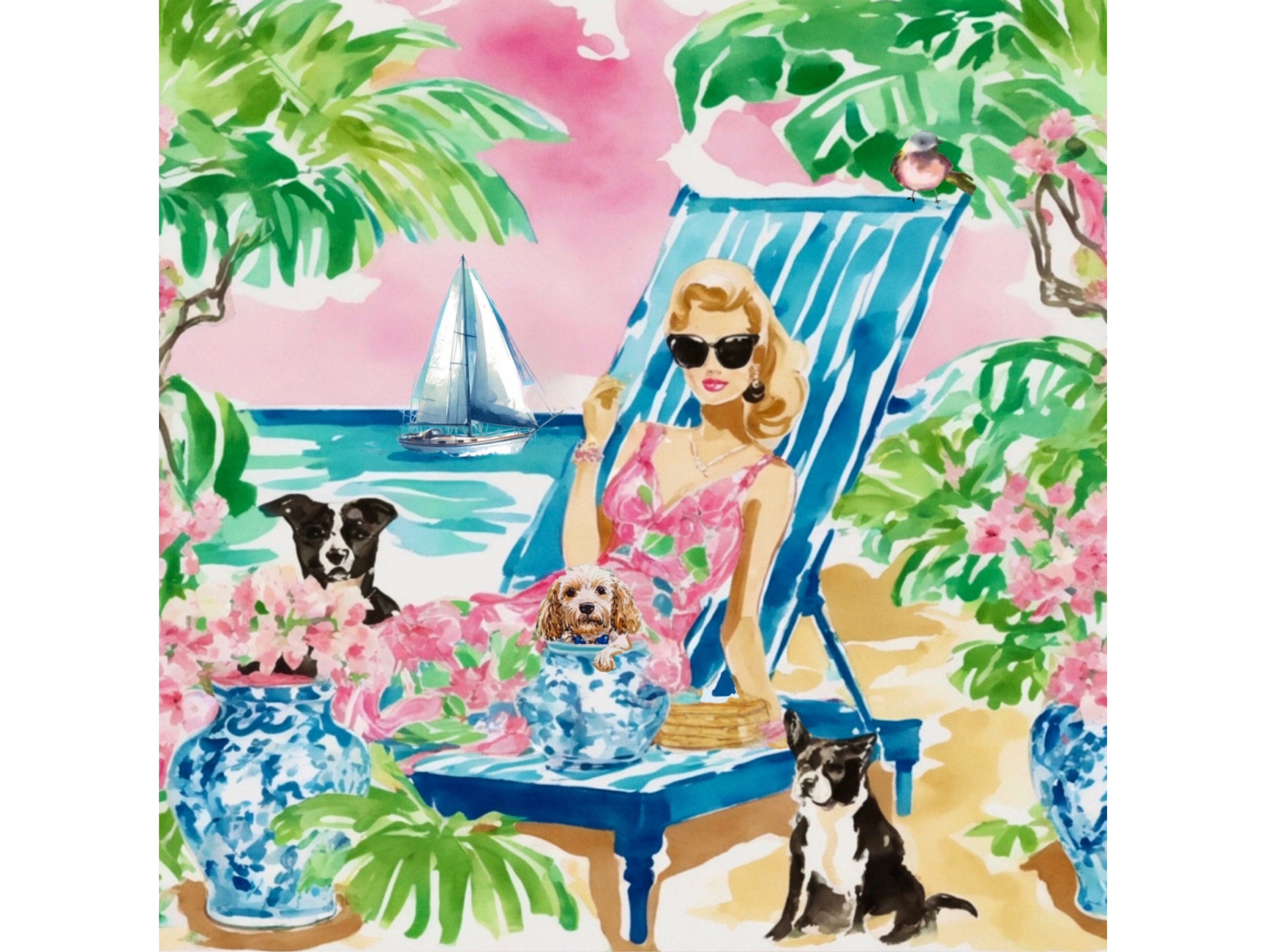 Grandmillennial art, The Beachgoers, whimsical fine art