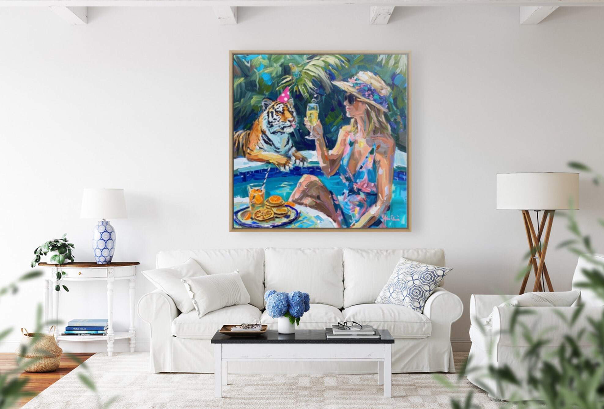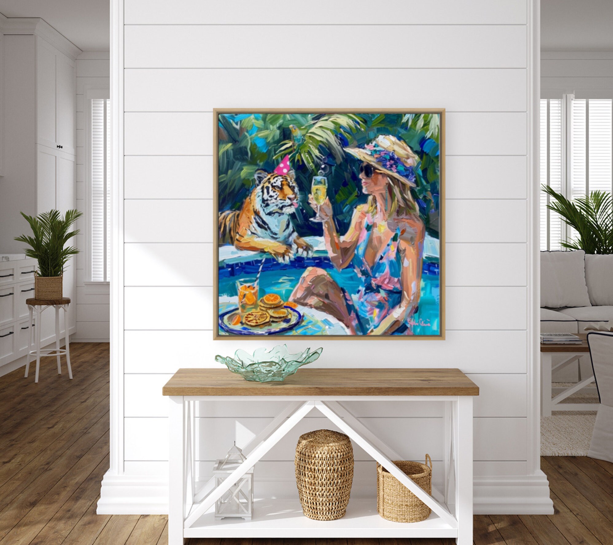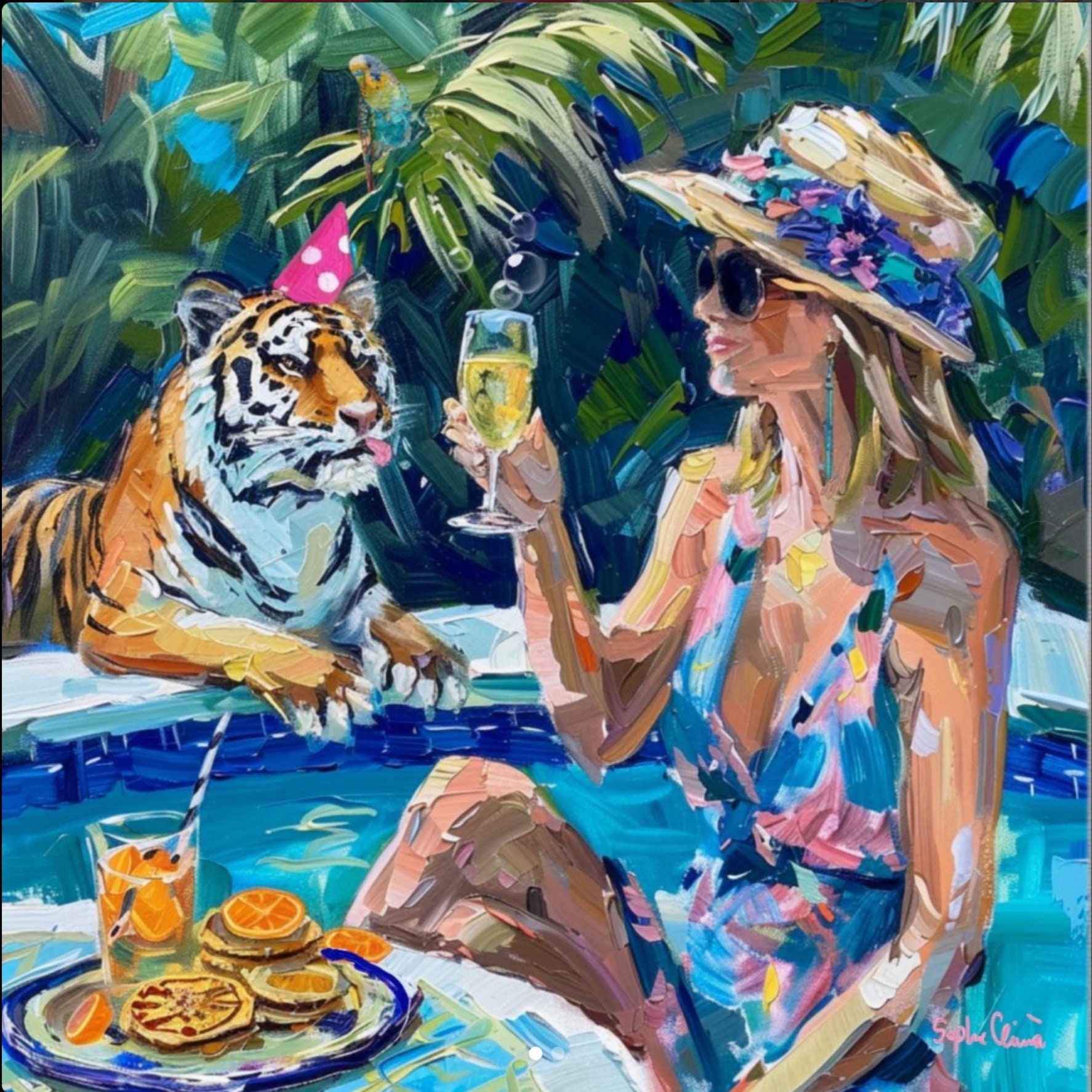 Grandmillennial art, At The Swimming Pool, whimsical fine art