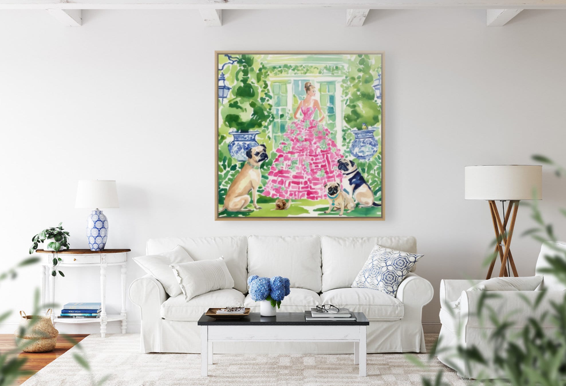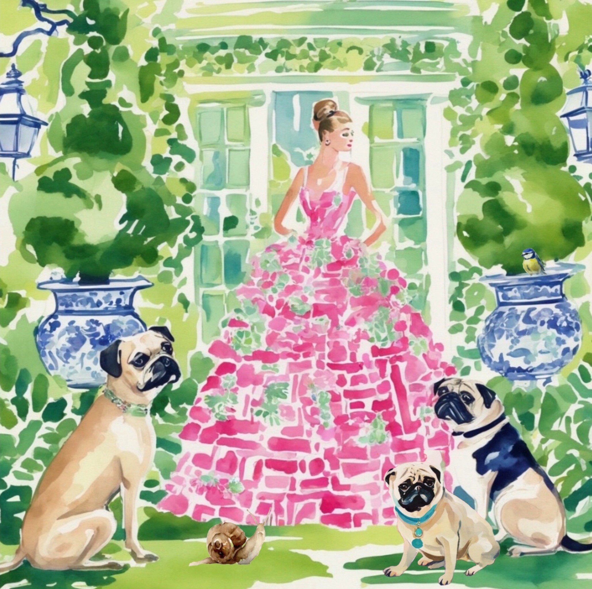 Grandmillennial art, The gardening team, preppy whimsical watercolor