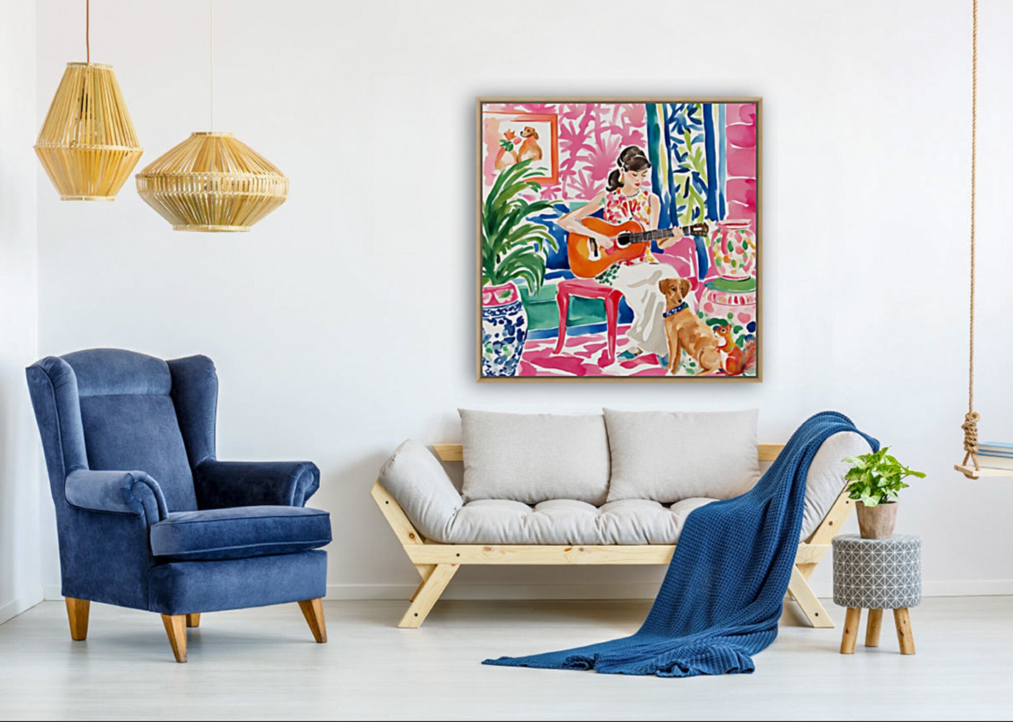 PLEASE NOTE SIZES ARE IN CM. Large giclee print of an original painting by Sophie. Fun and whimsical piece. Paper prints are printed using archival ink, on 310 gsm Hahnemuhle German Etching paper. Canvas prints ship ready stretched and UV varnished, Paper prints are shipped rolled in a hard cardboard tube.