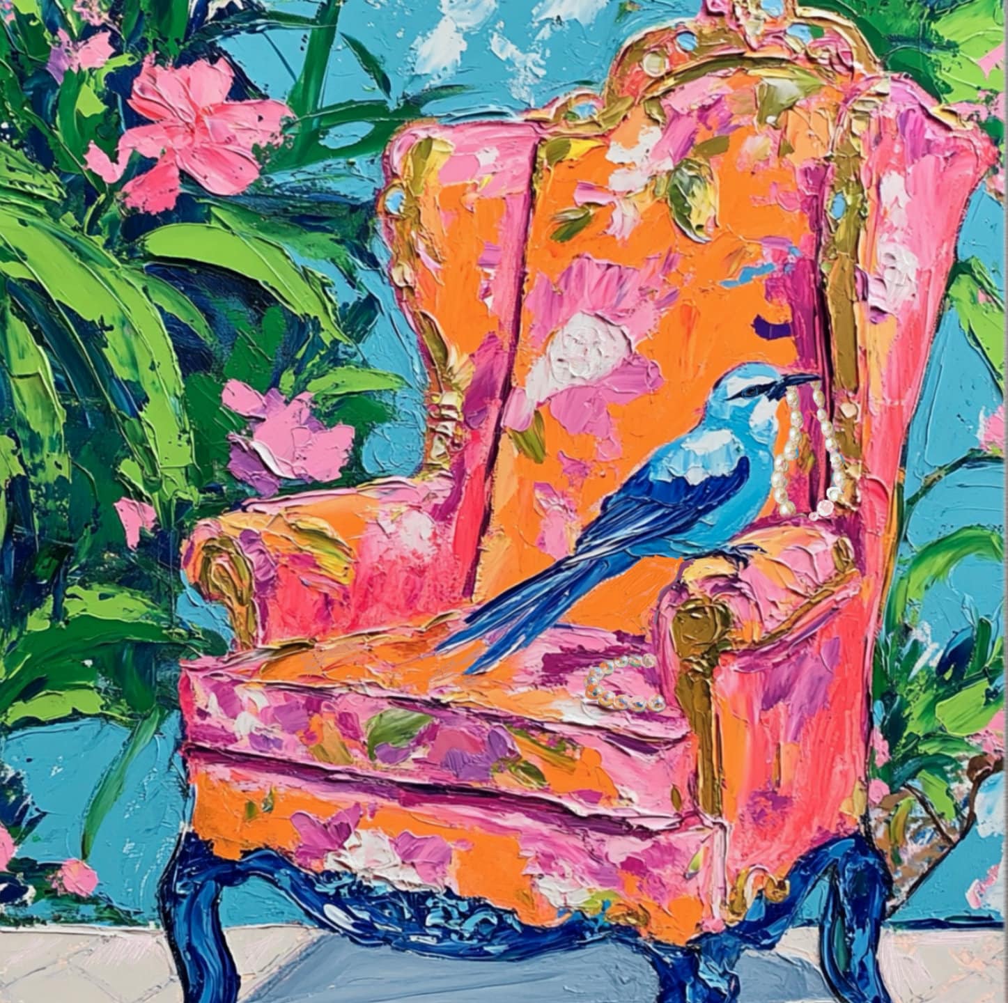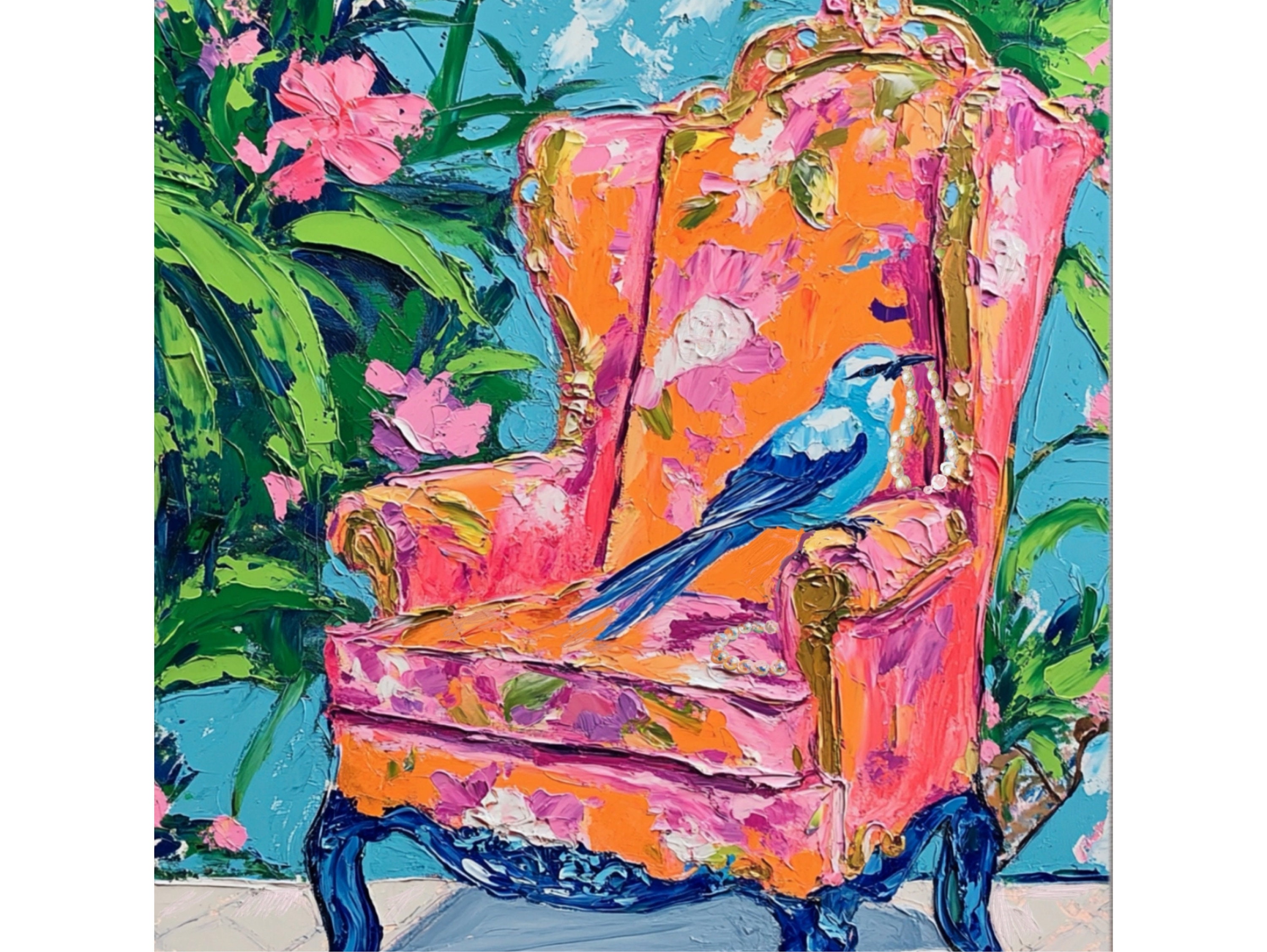 Grandmillennial art, Jay with Pearl Necklace, whimsical fine art