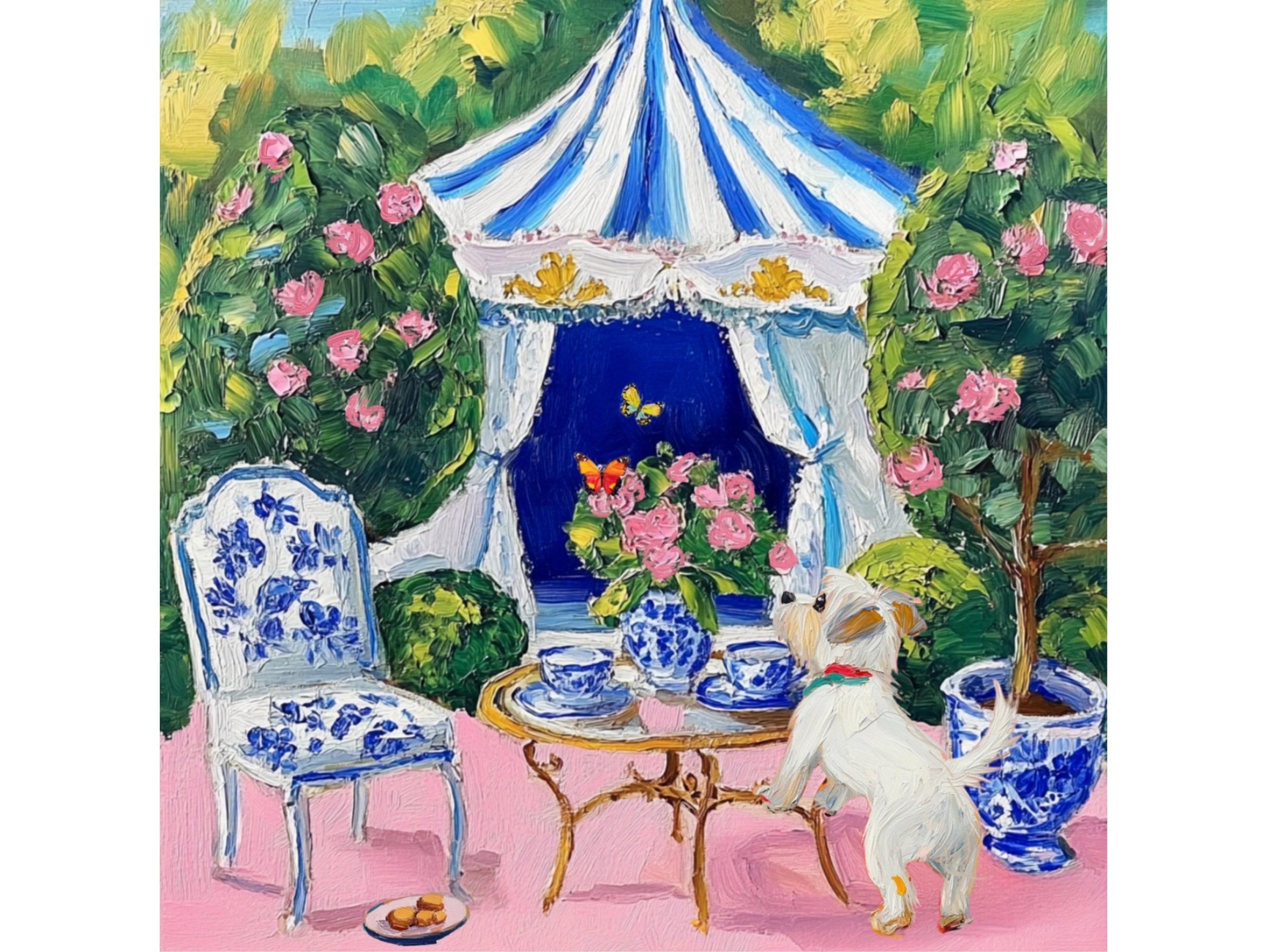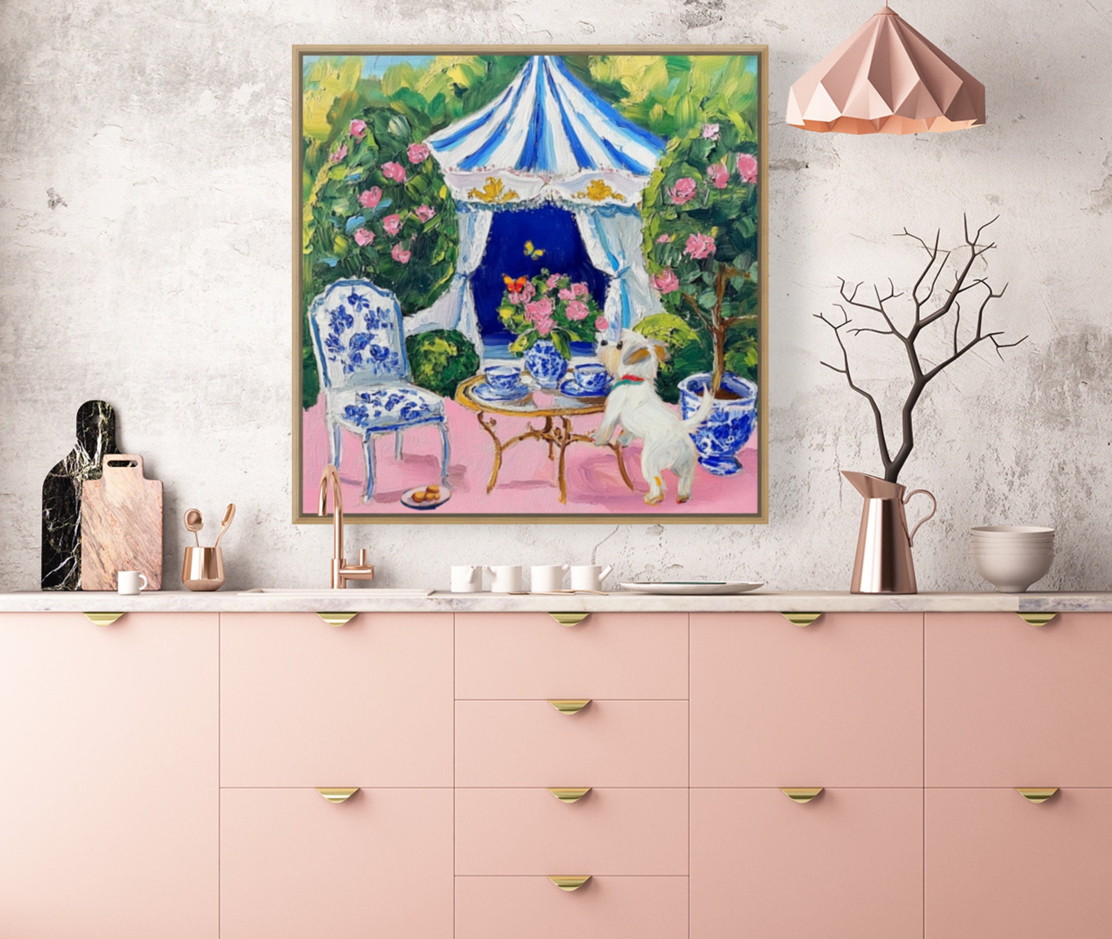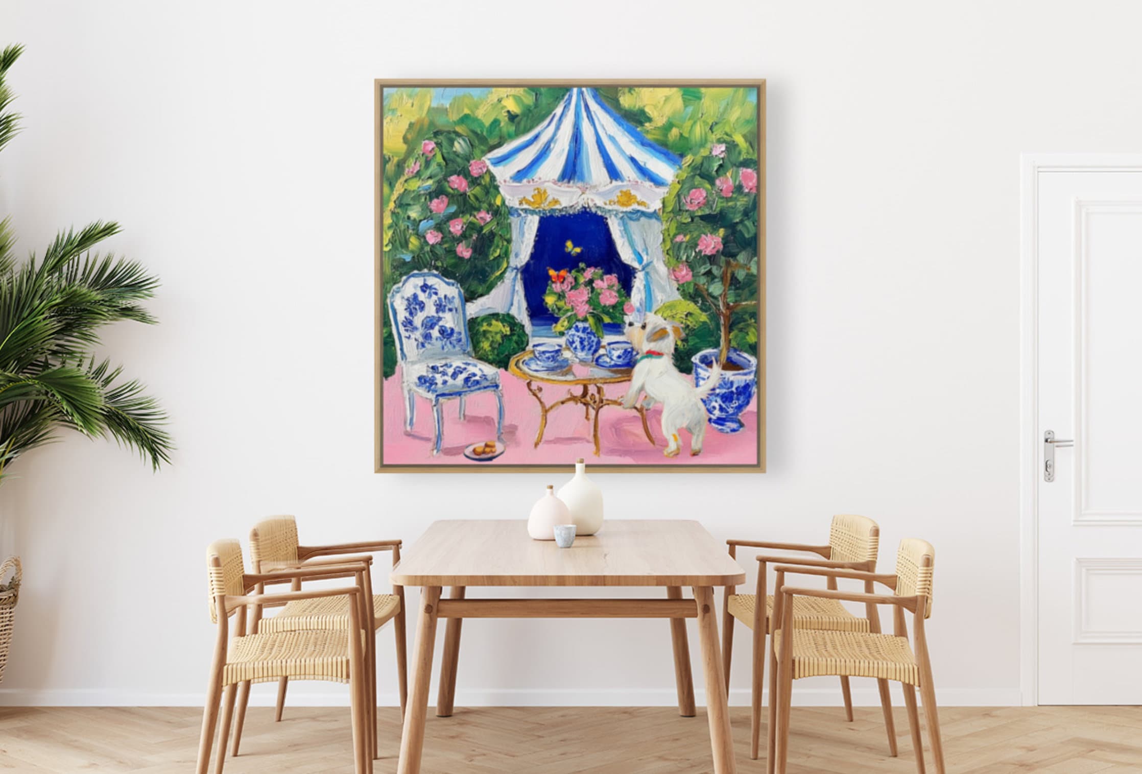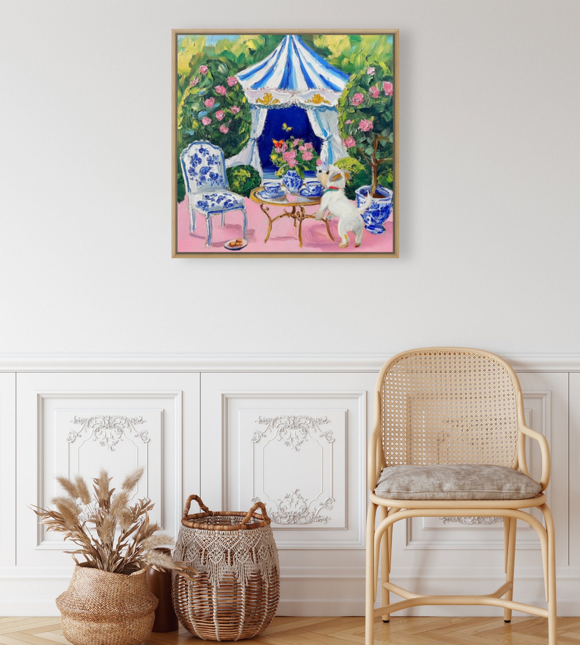 Grandmillennial art, Butterfly Watcher, whimsical fine art