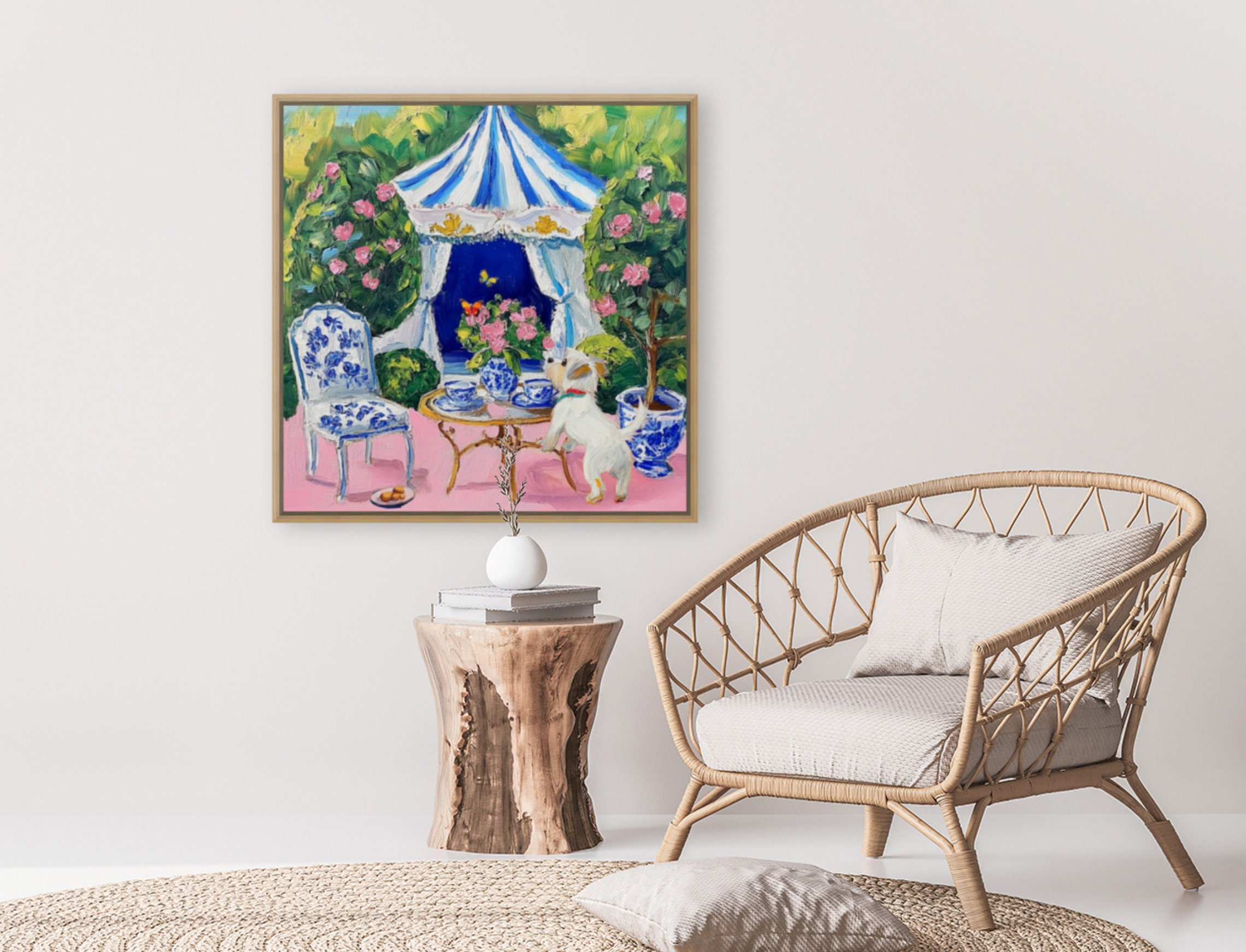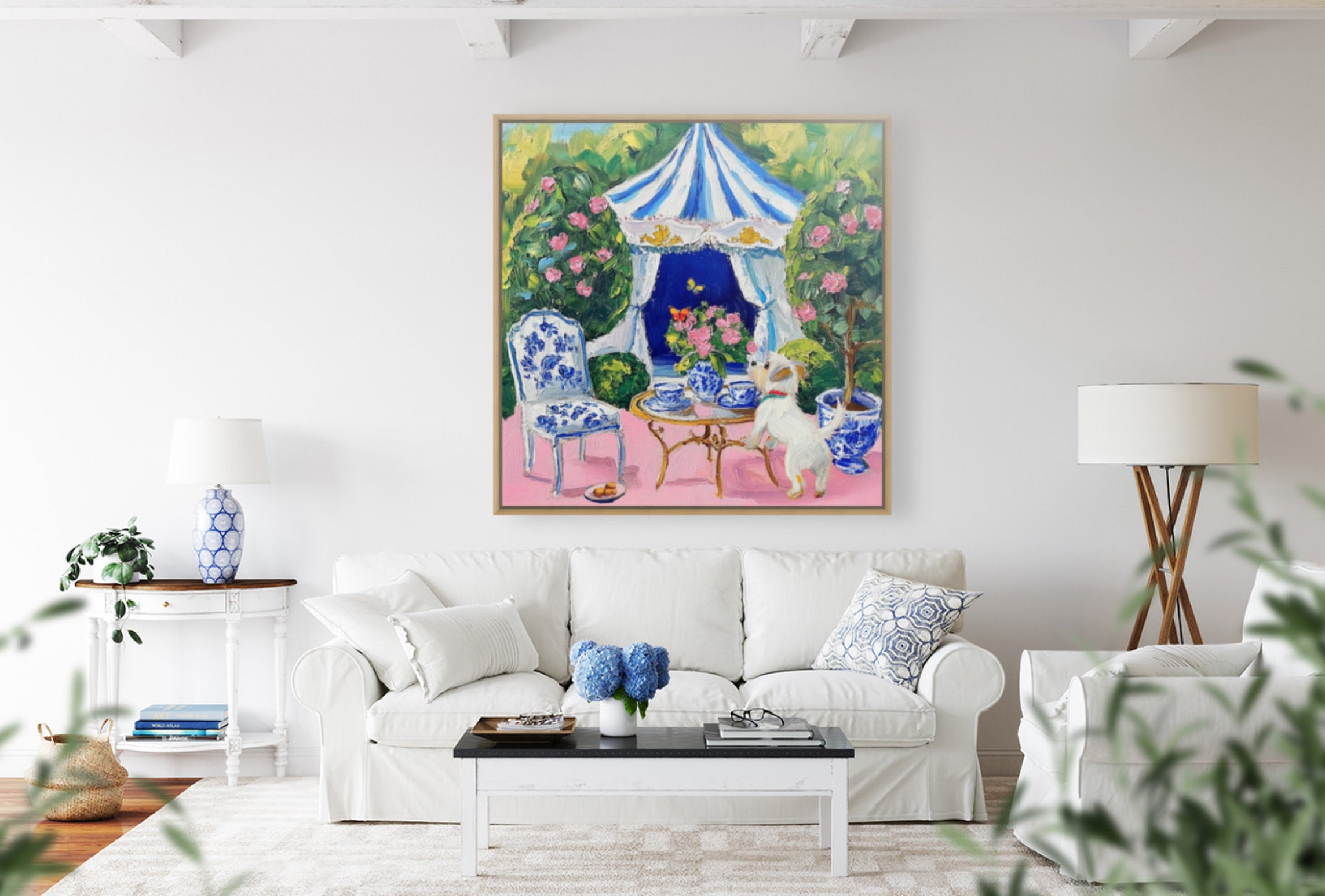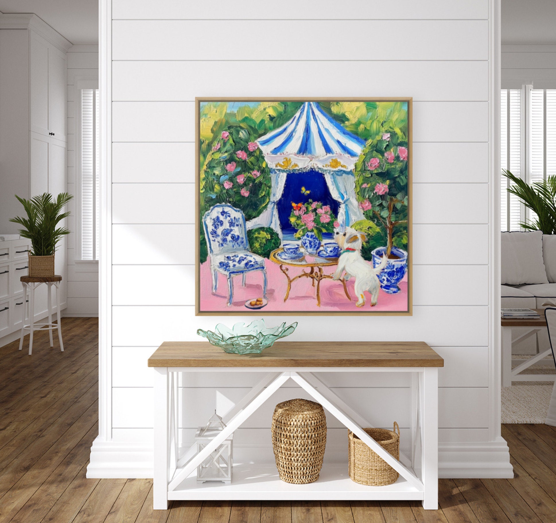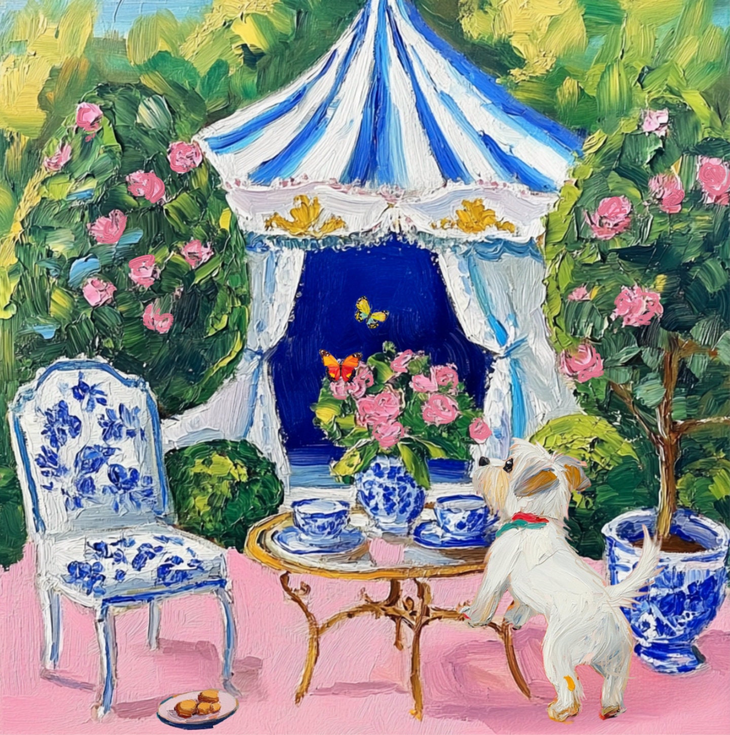 Grandmillennial art, Butterfly Watcher, whimsical fine art