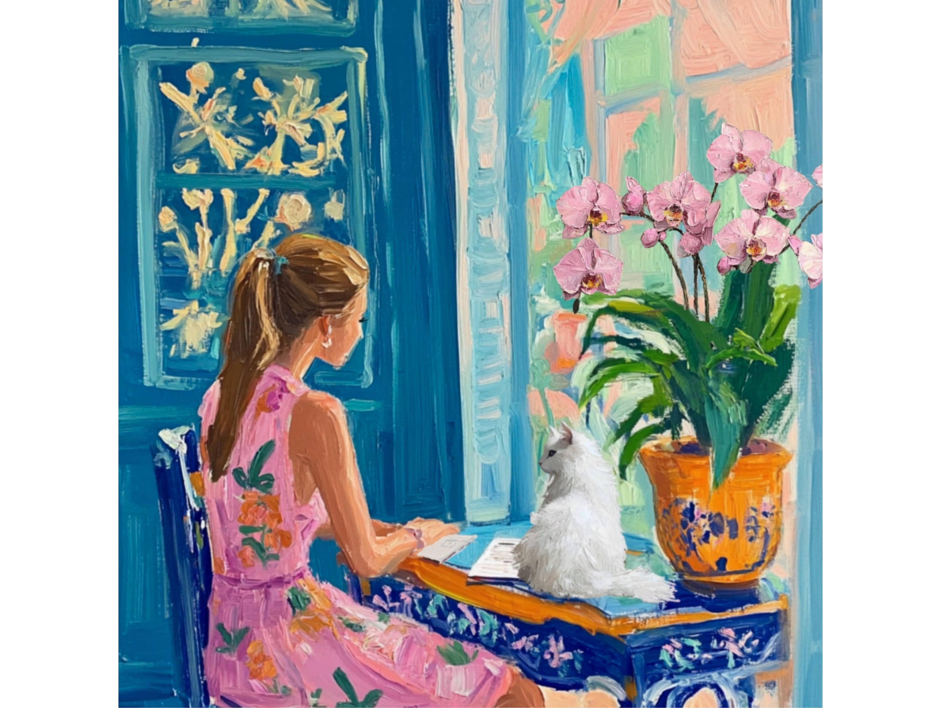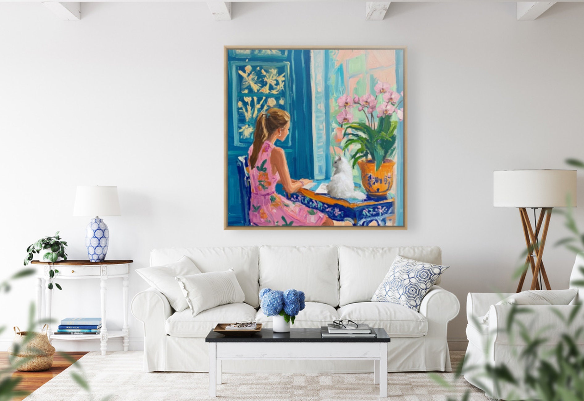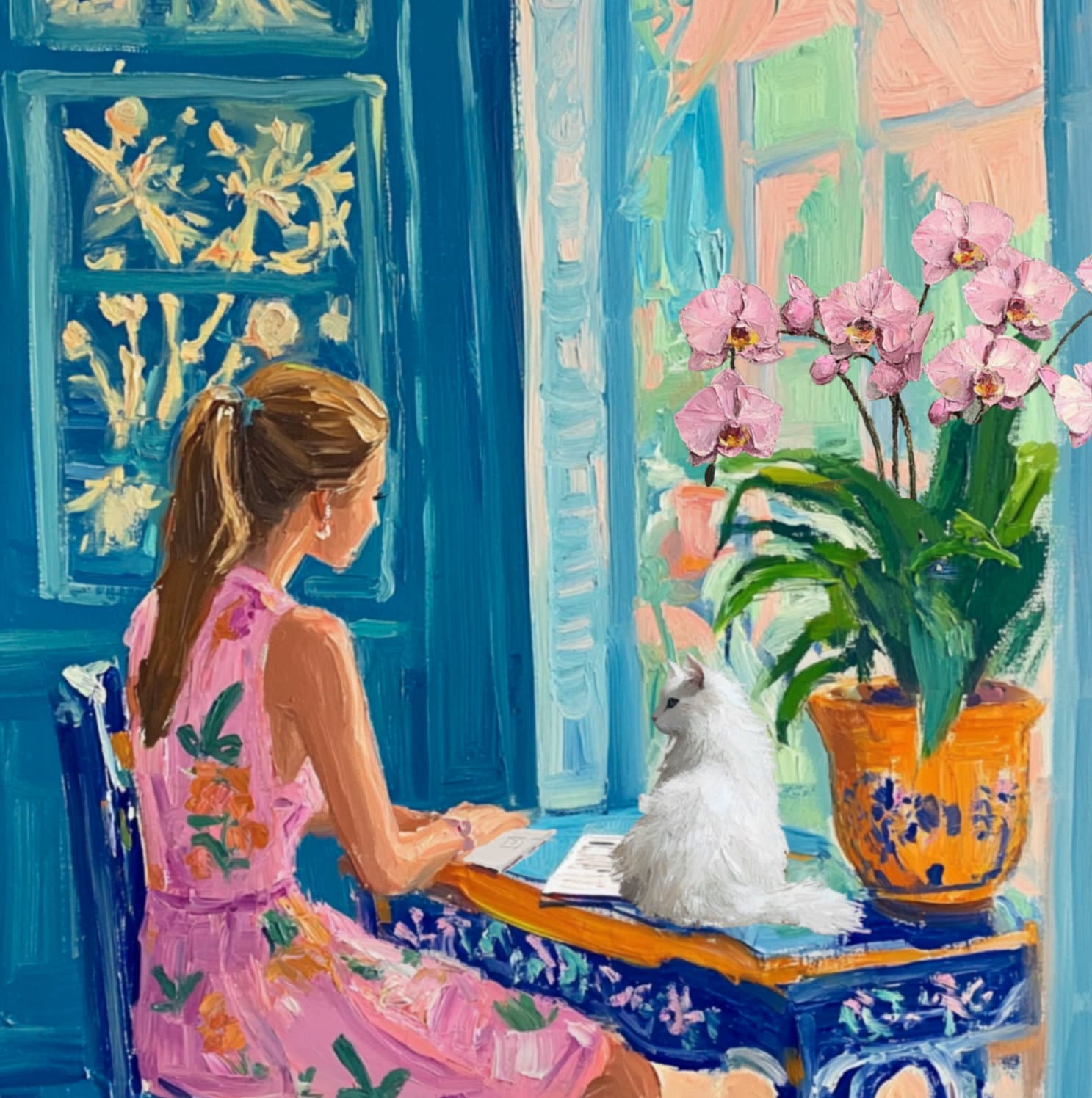 Grandmillennial art, Negotiations, oil painting, whimsical giclee print