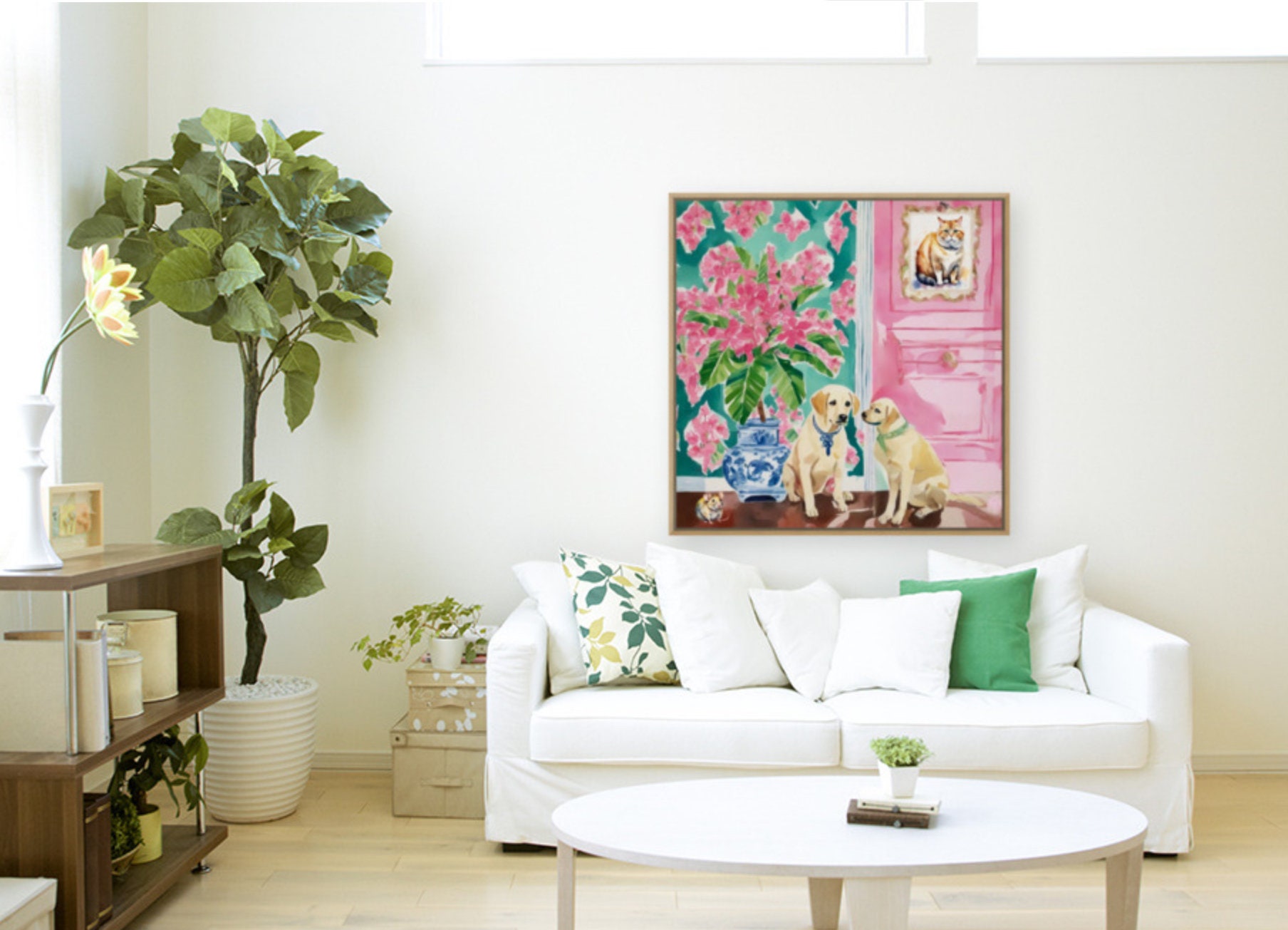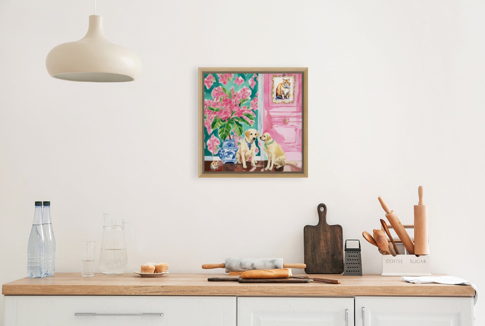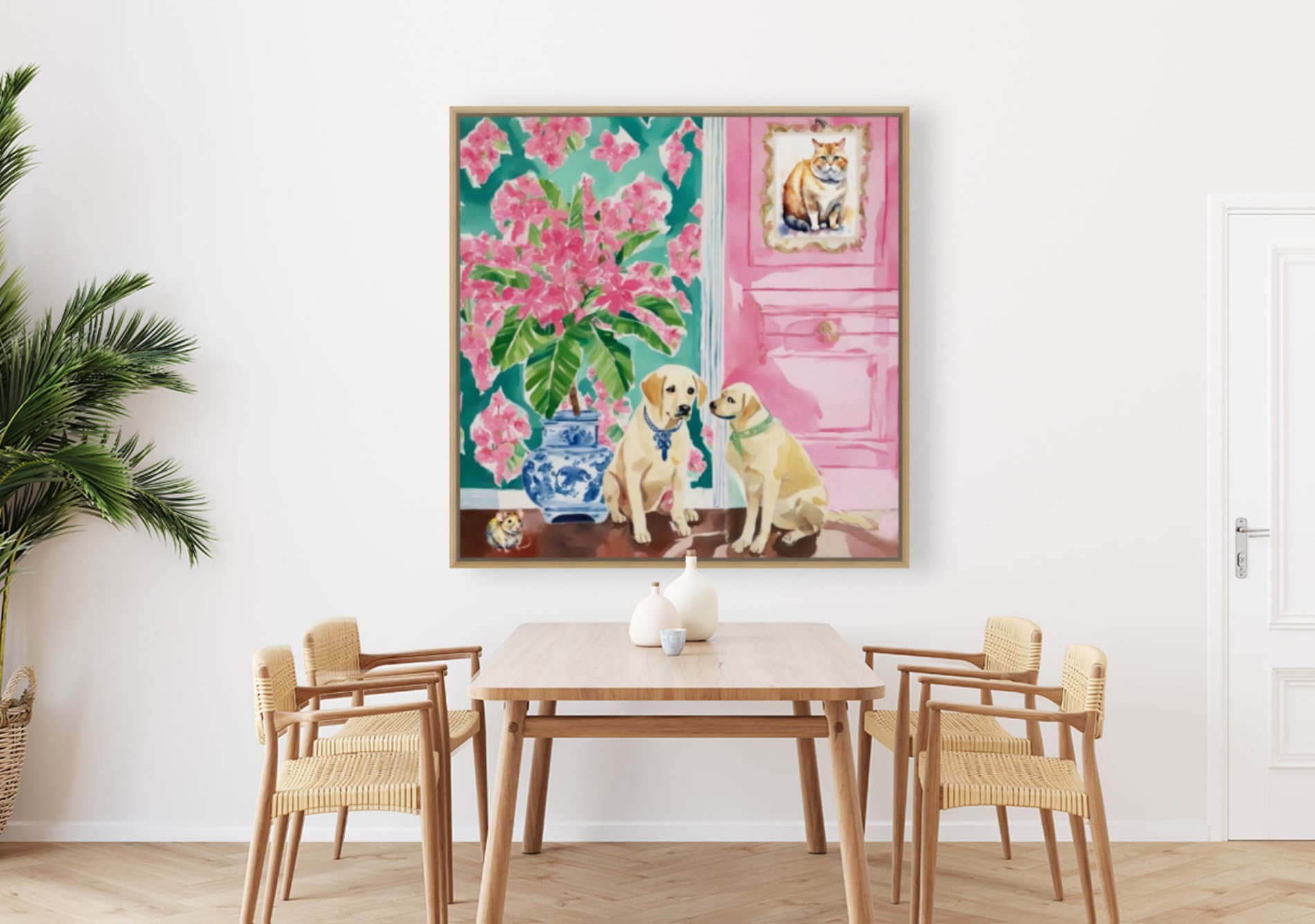 Grandmillennial art, They brought a cat home, preppy whimsical watercolor