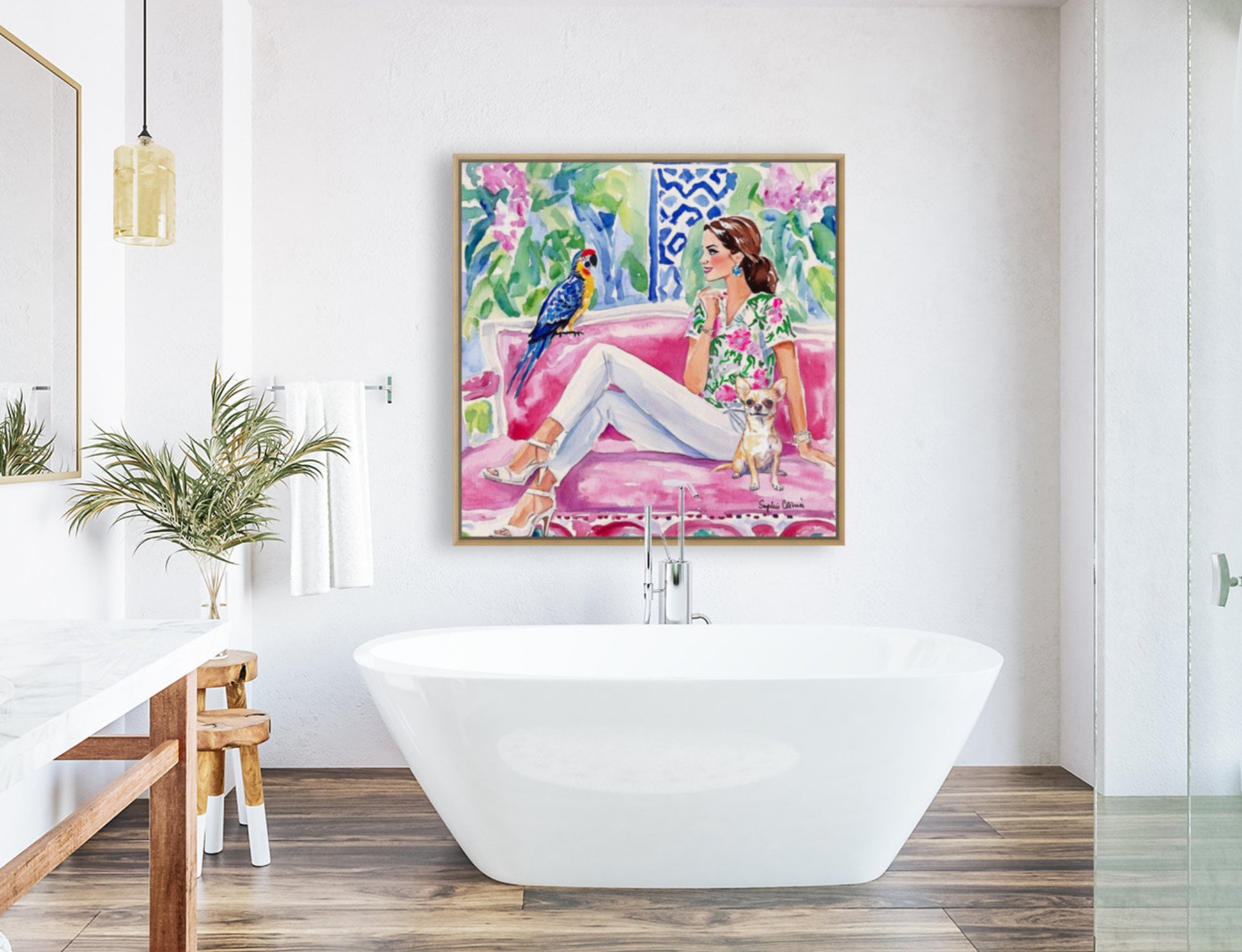 PLEASE NOTE SIZES ARE IN CM. Large giclee print of an original watercolor by Sophie. Fun and whimsical piece. Paper prints are printed using archival ink, on 310 gsm Hahnemuhle German Etching paper. Canvas prints ship ready stretched and UV varnished, Paper prints are shipped rolled in a hard cardboard tube.