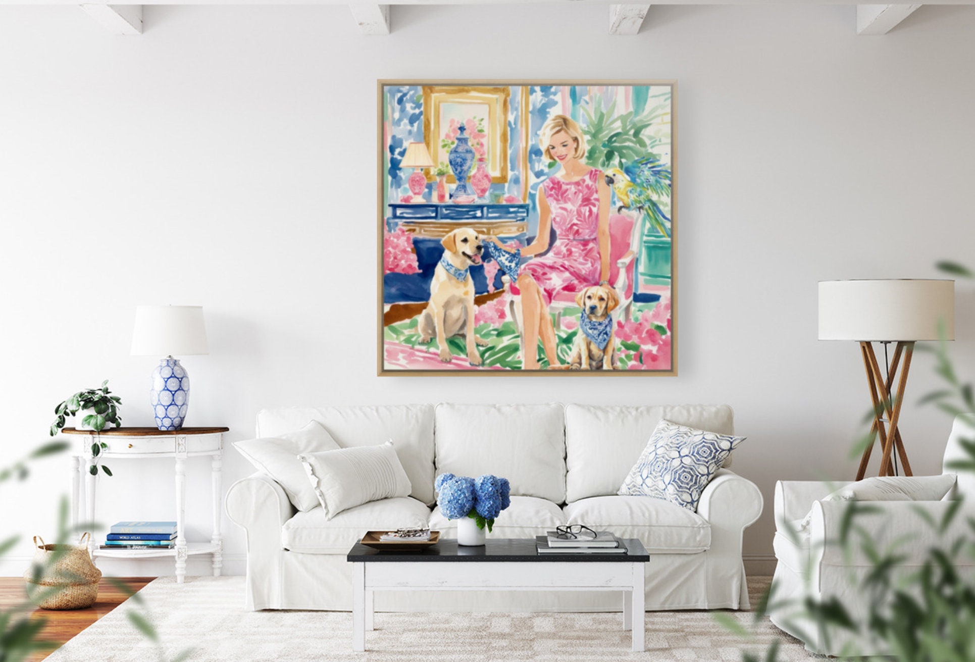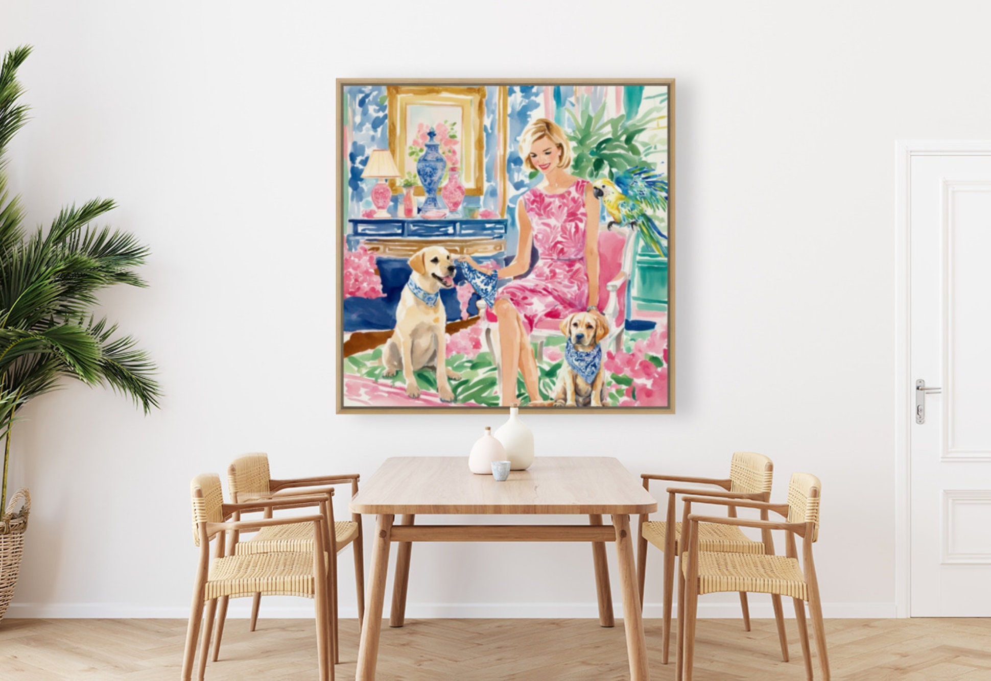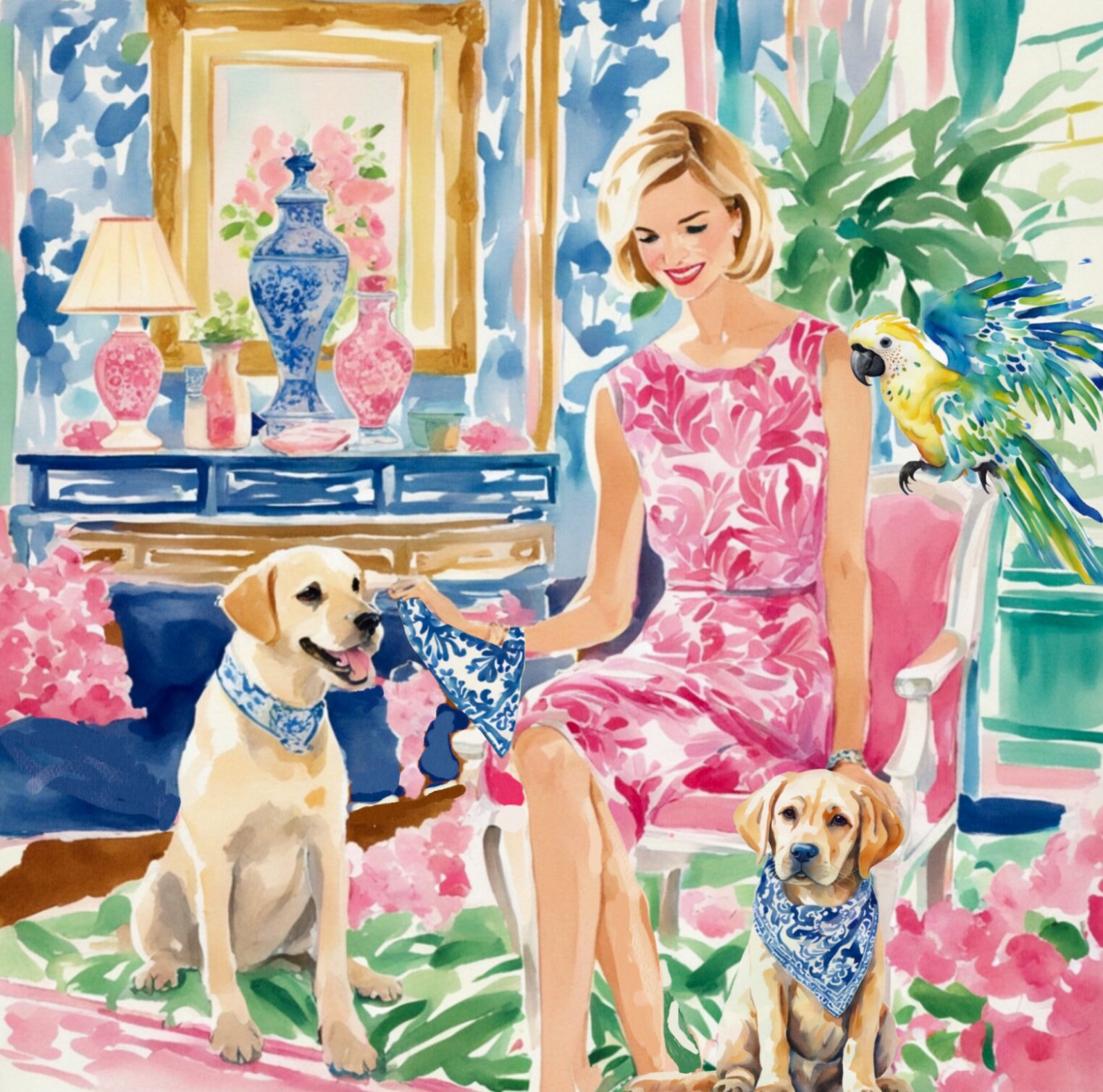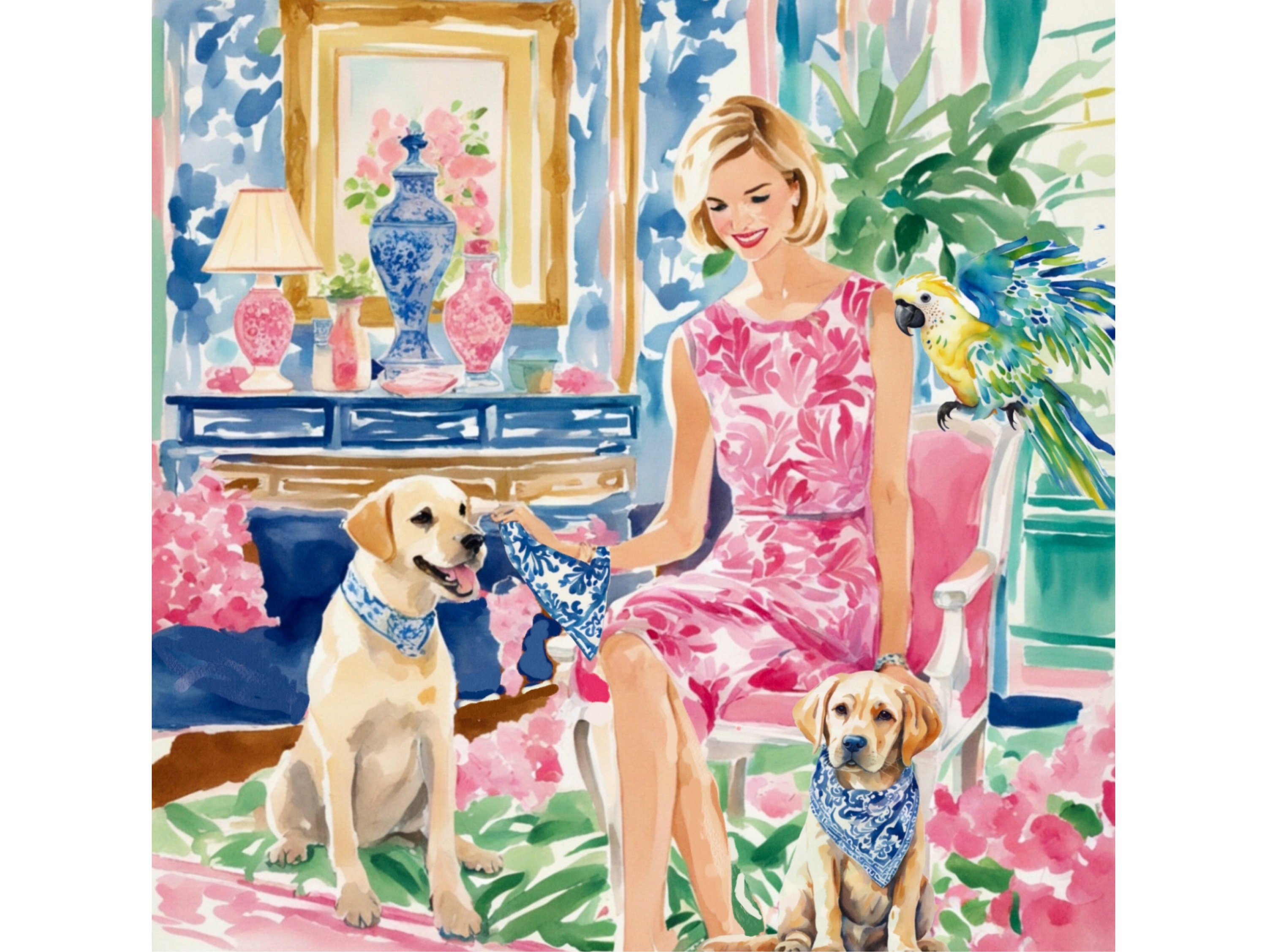 Grandmillennial art, Trying on the New Bandanas, whimsical fine art print