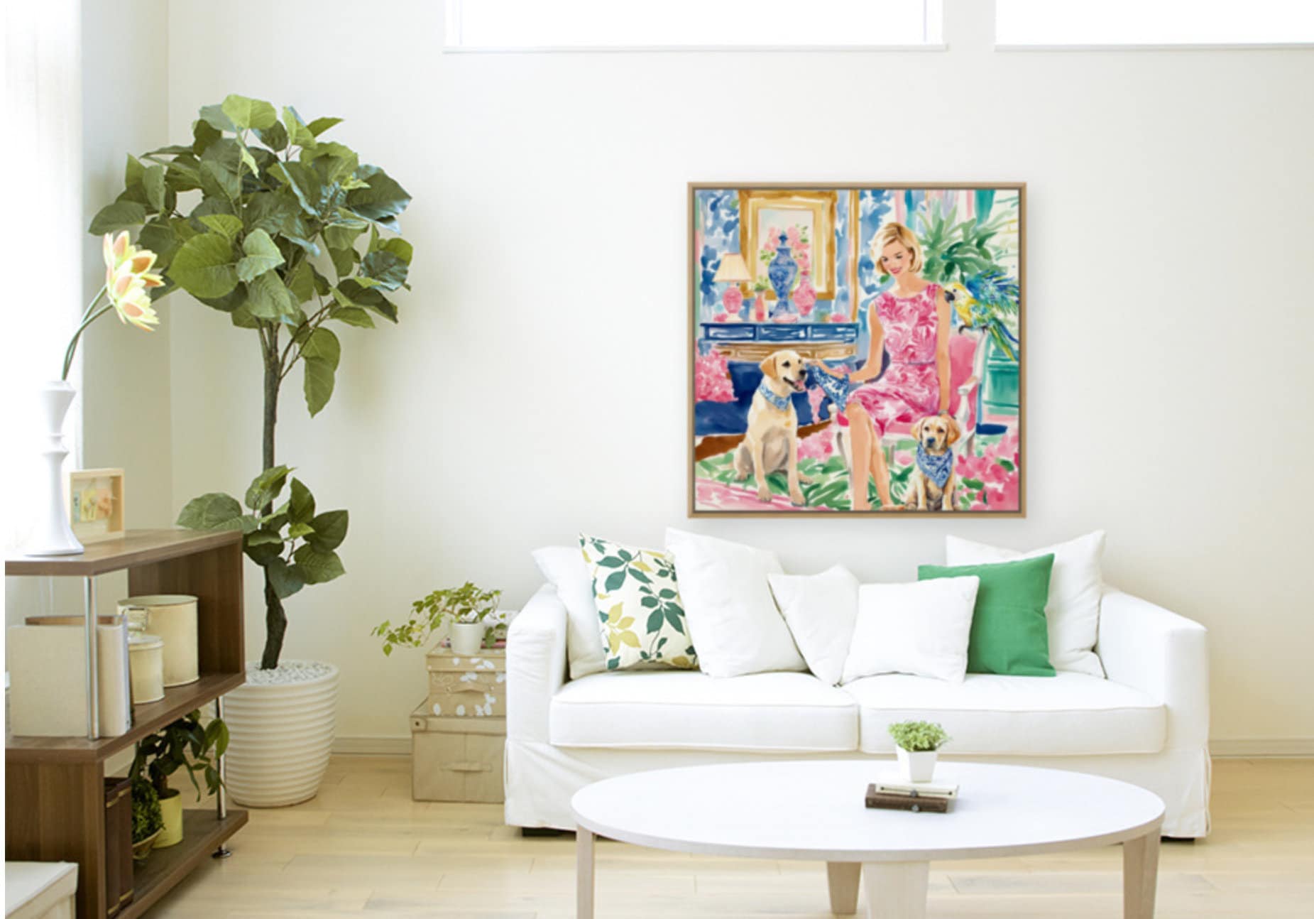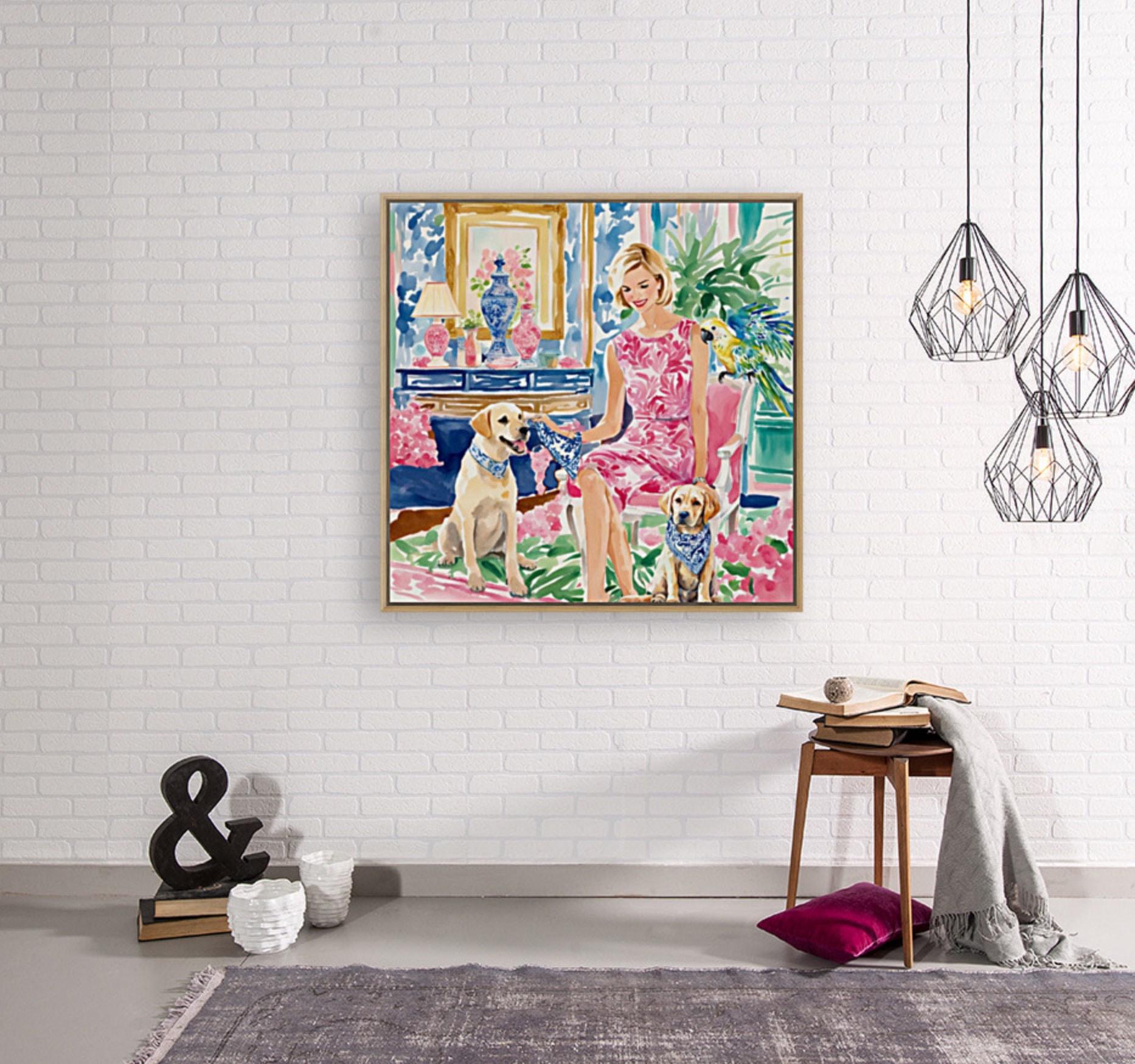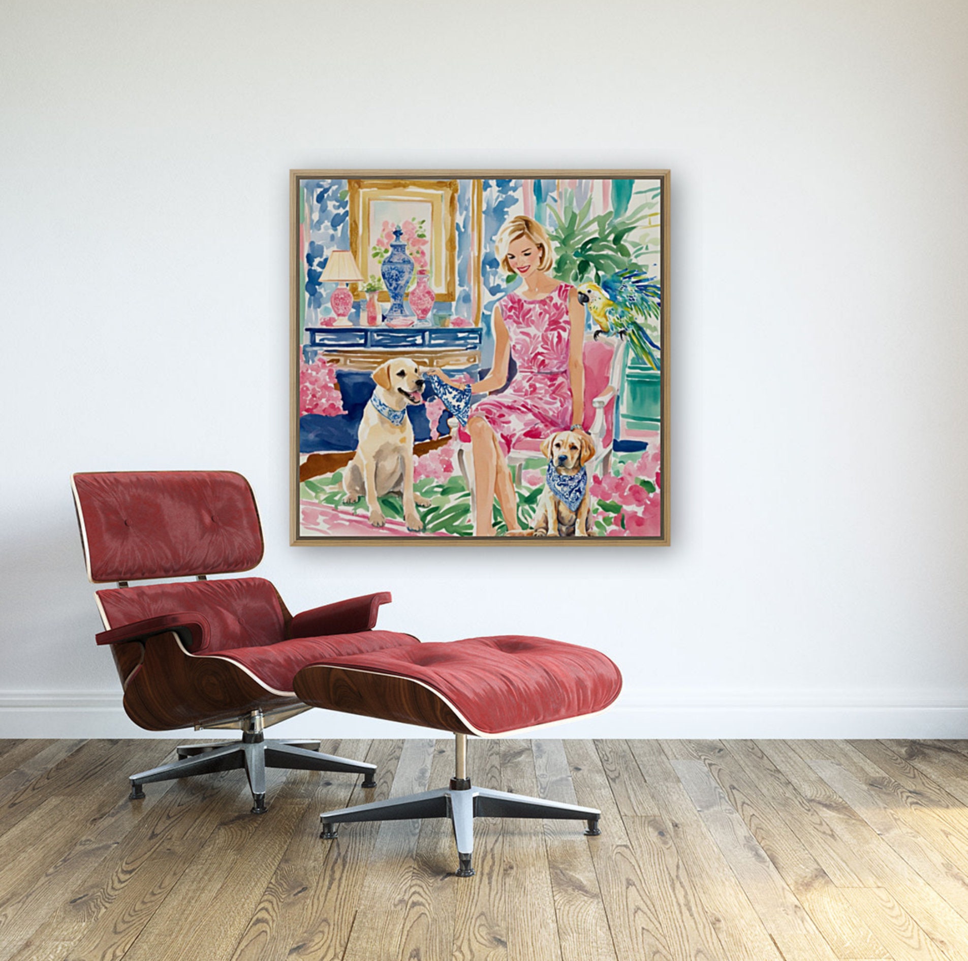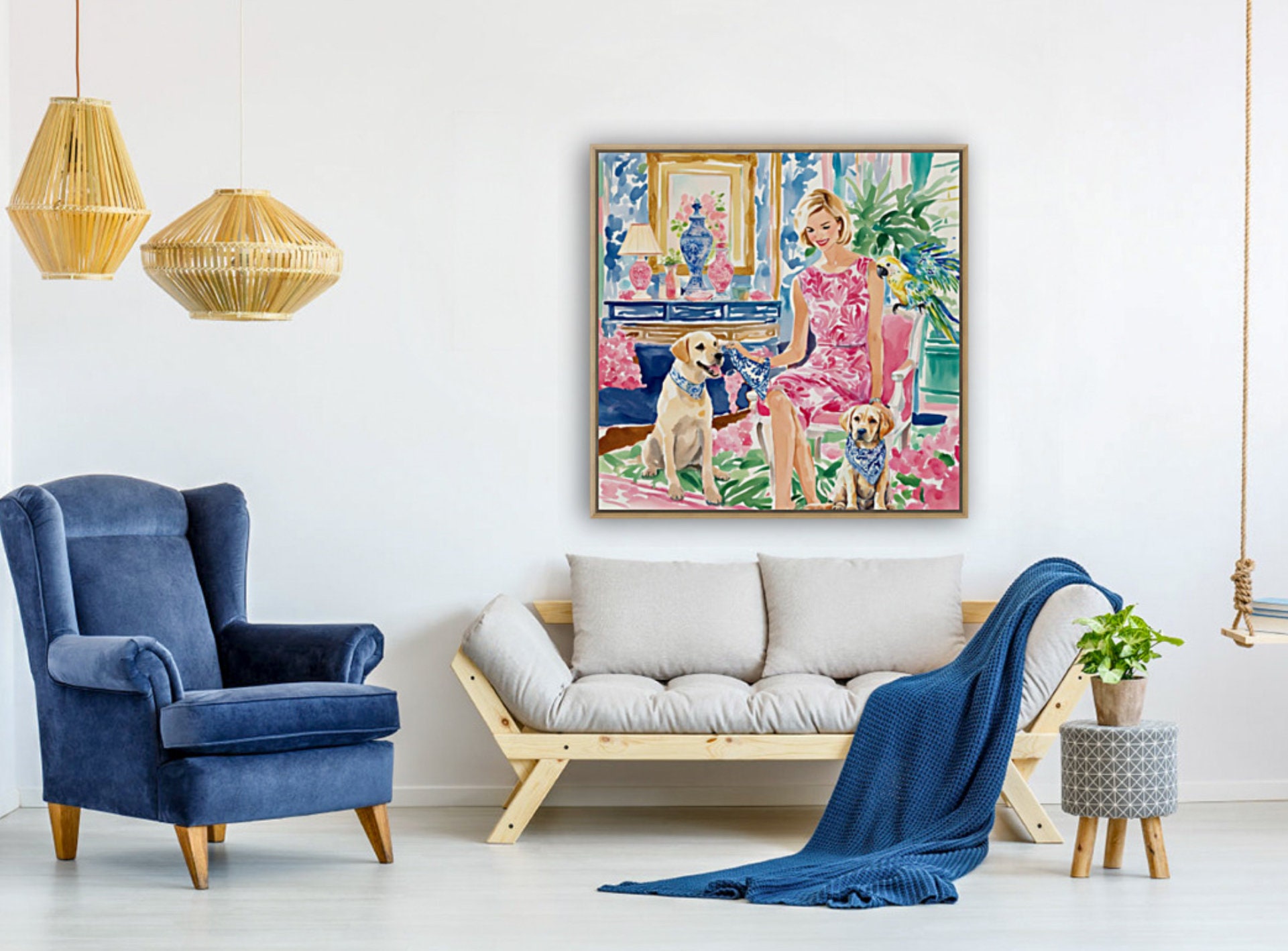 Grandmillennial art, Trying on the New Bandanas, whimsical fine art print