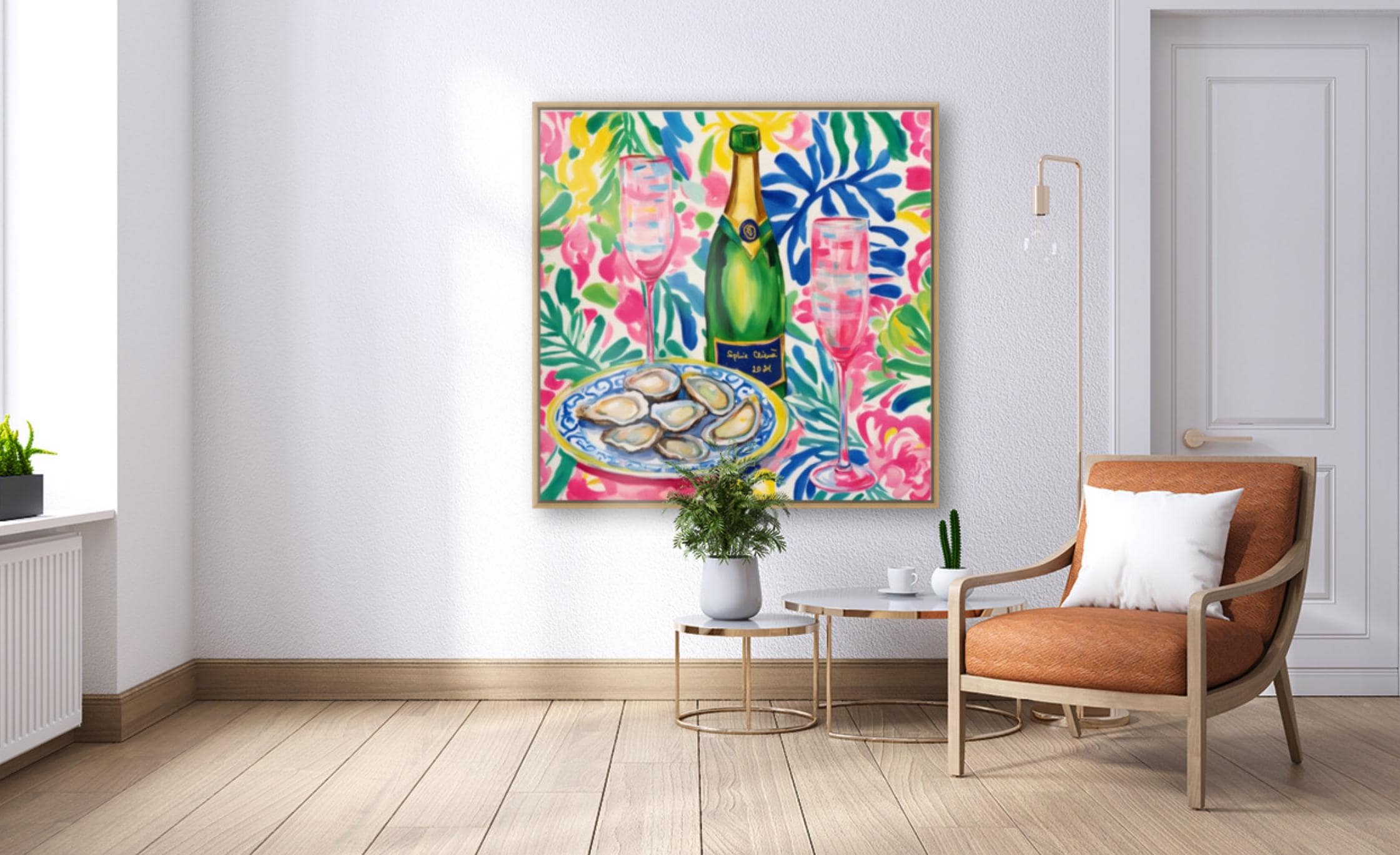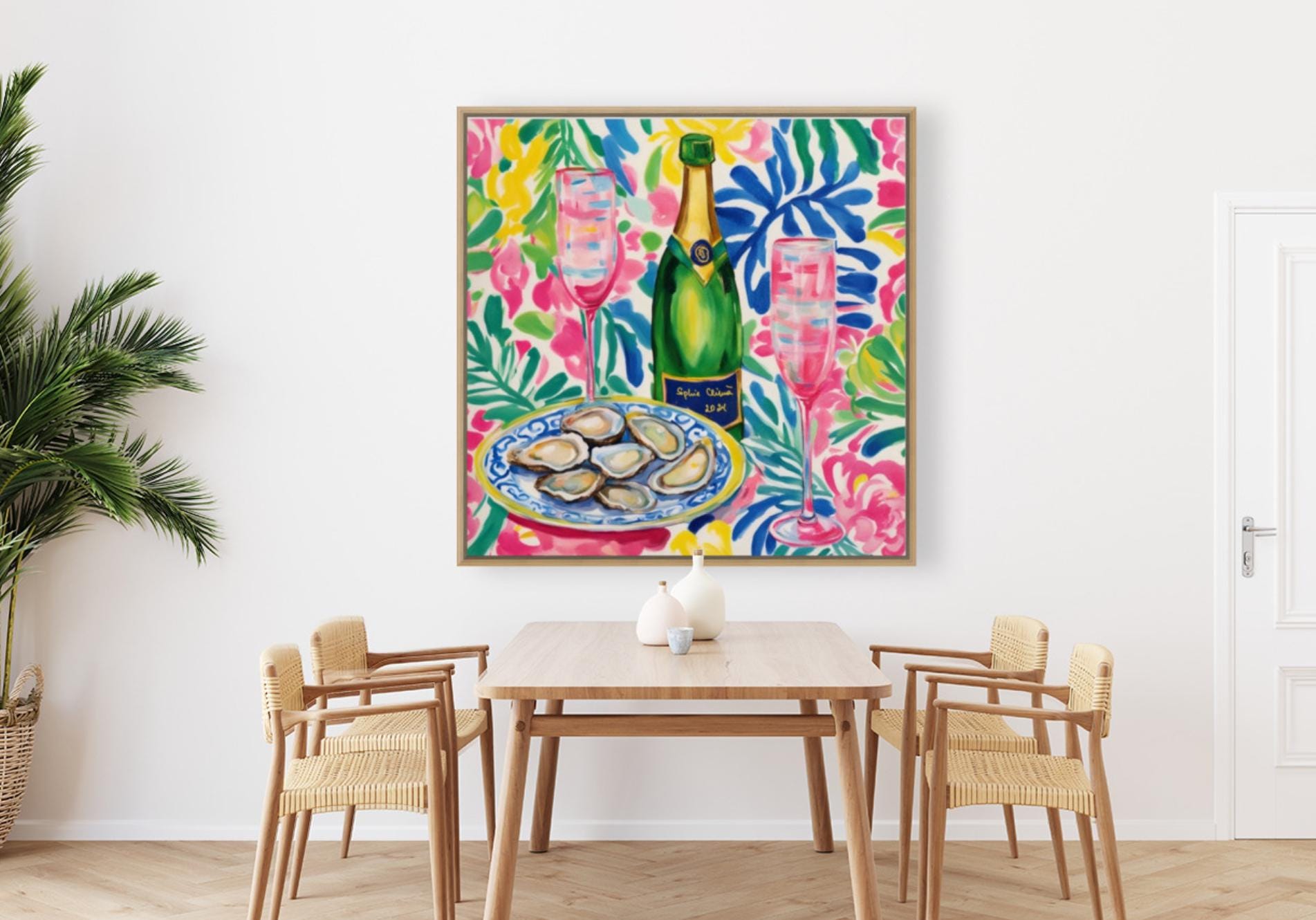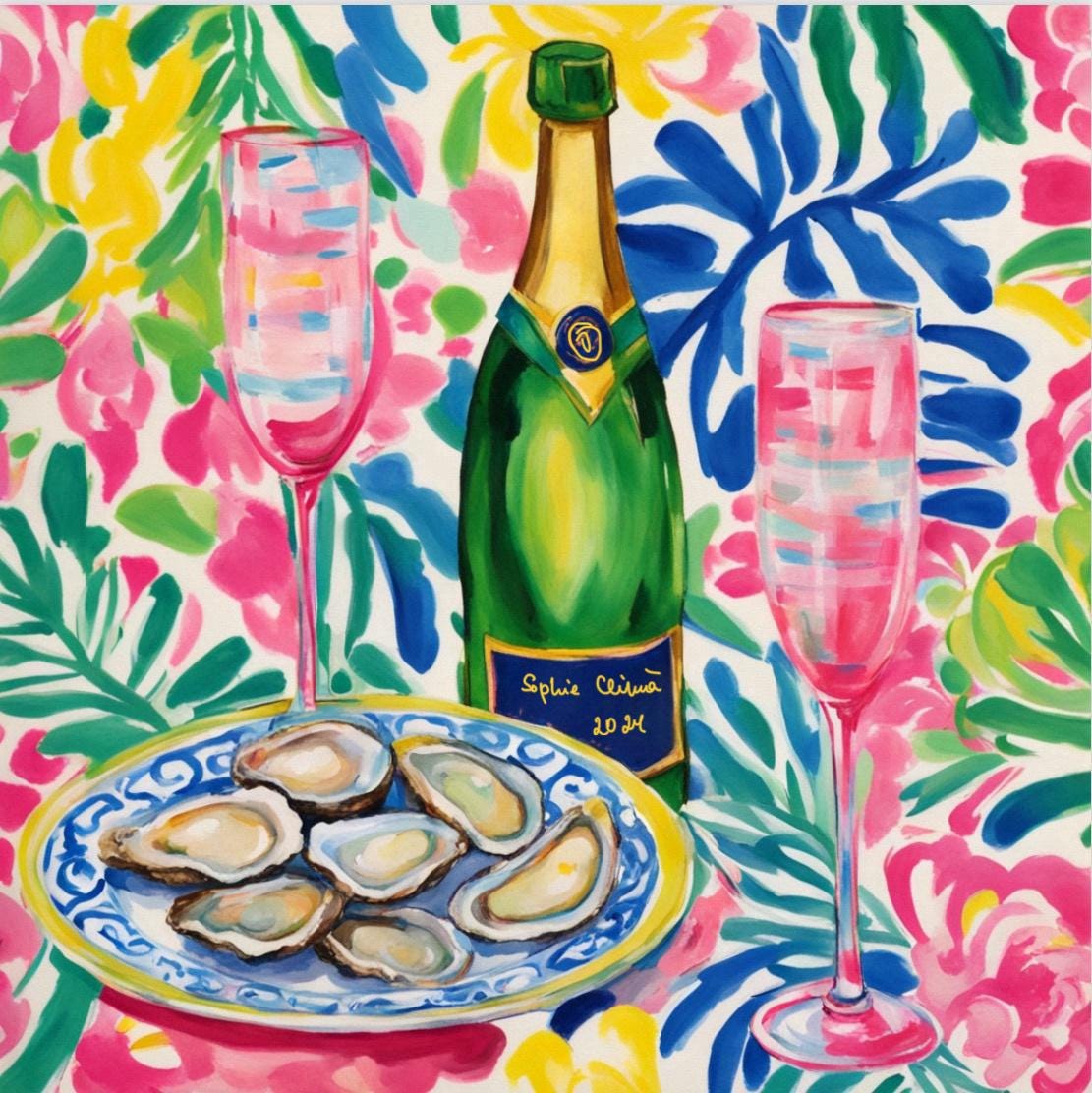 Grandmillennial art, Champaign and Oysters part 2, Matisse inspired oyster art
