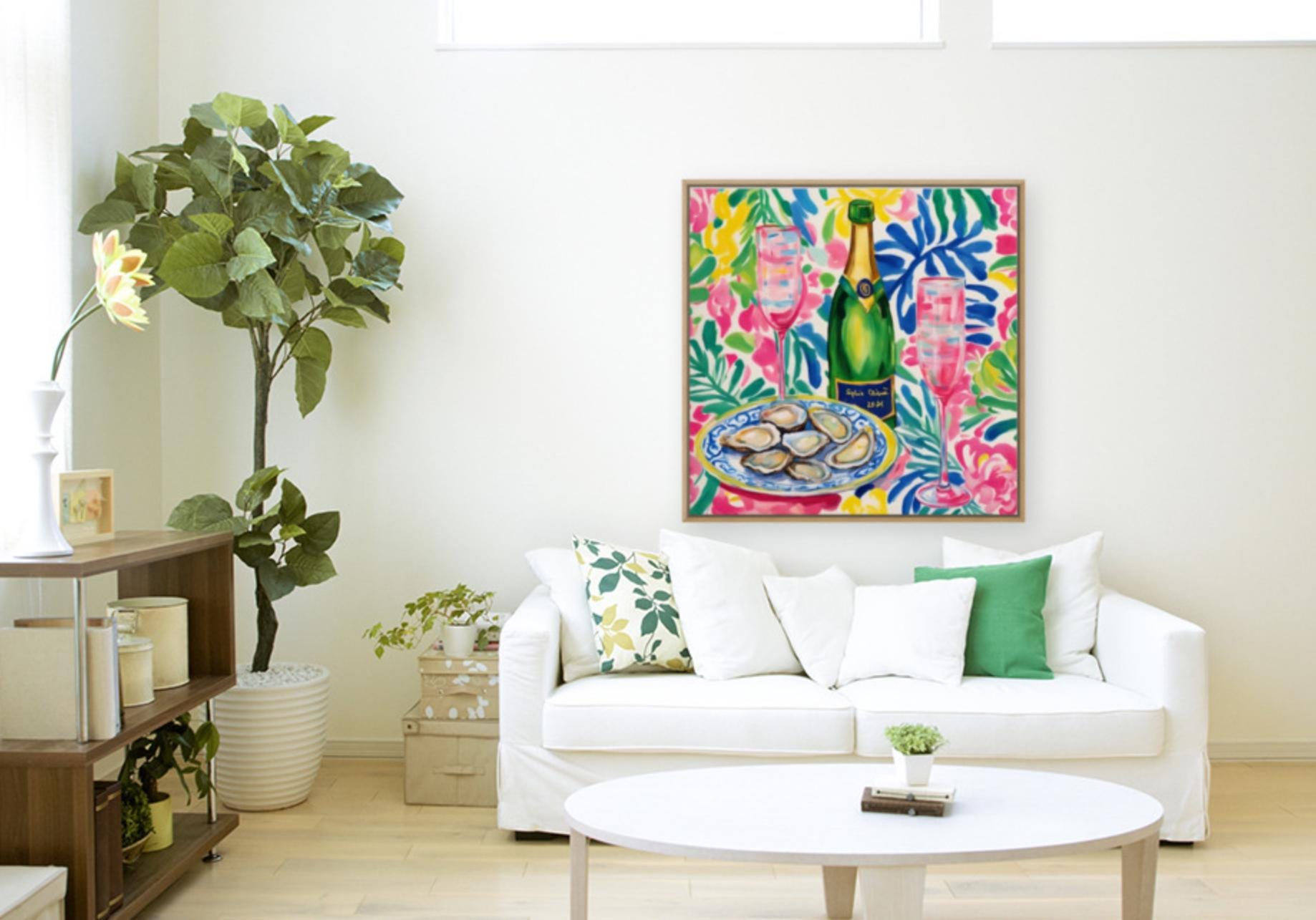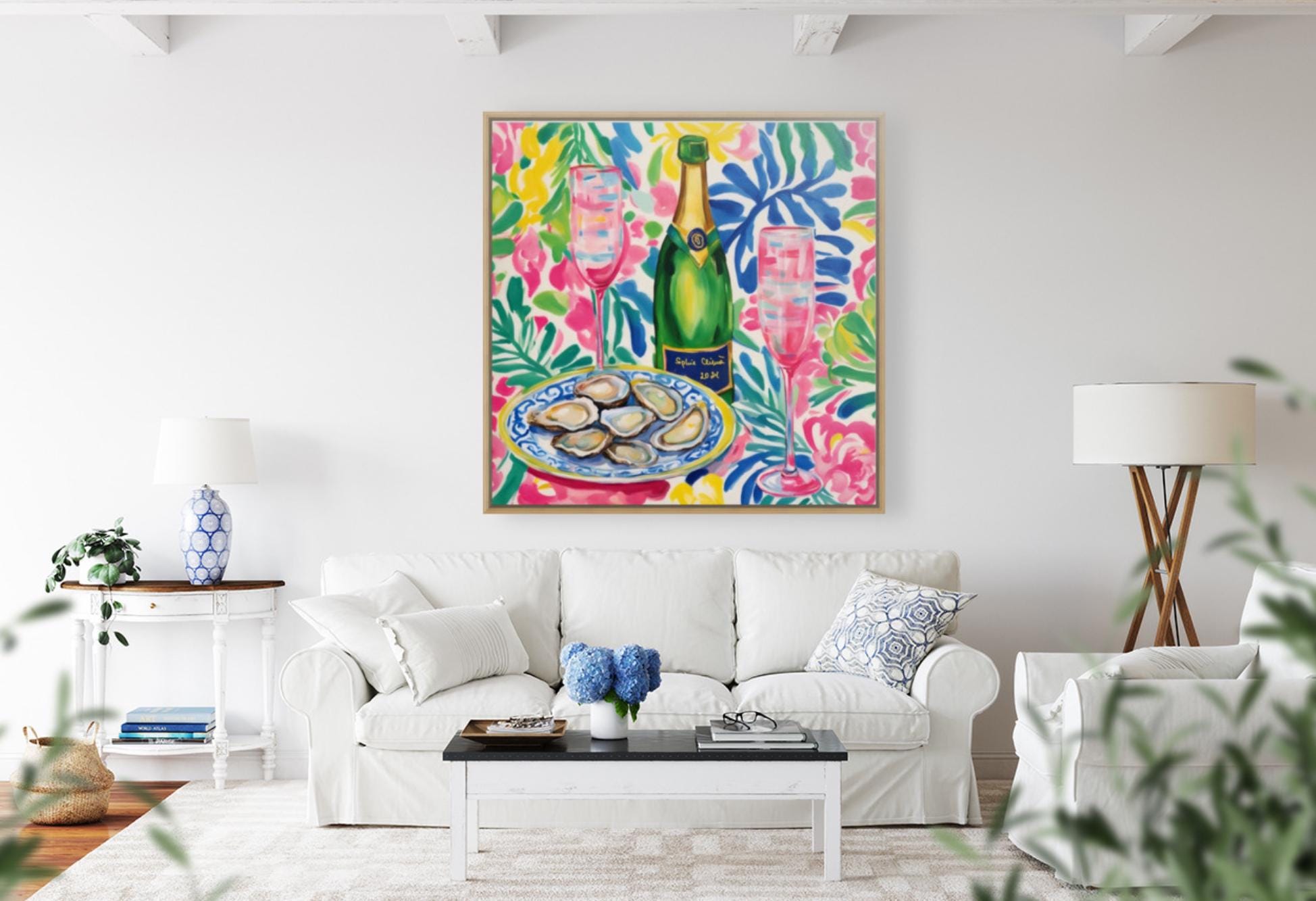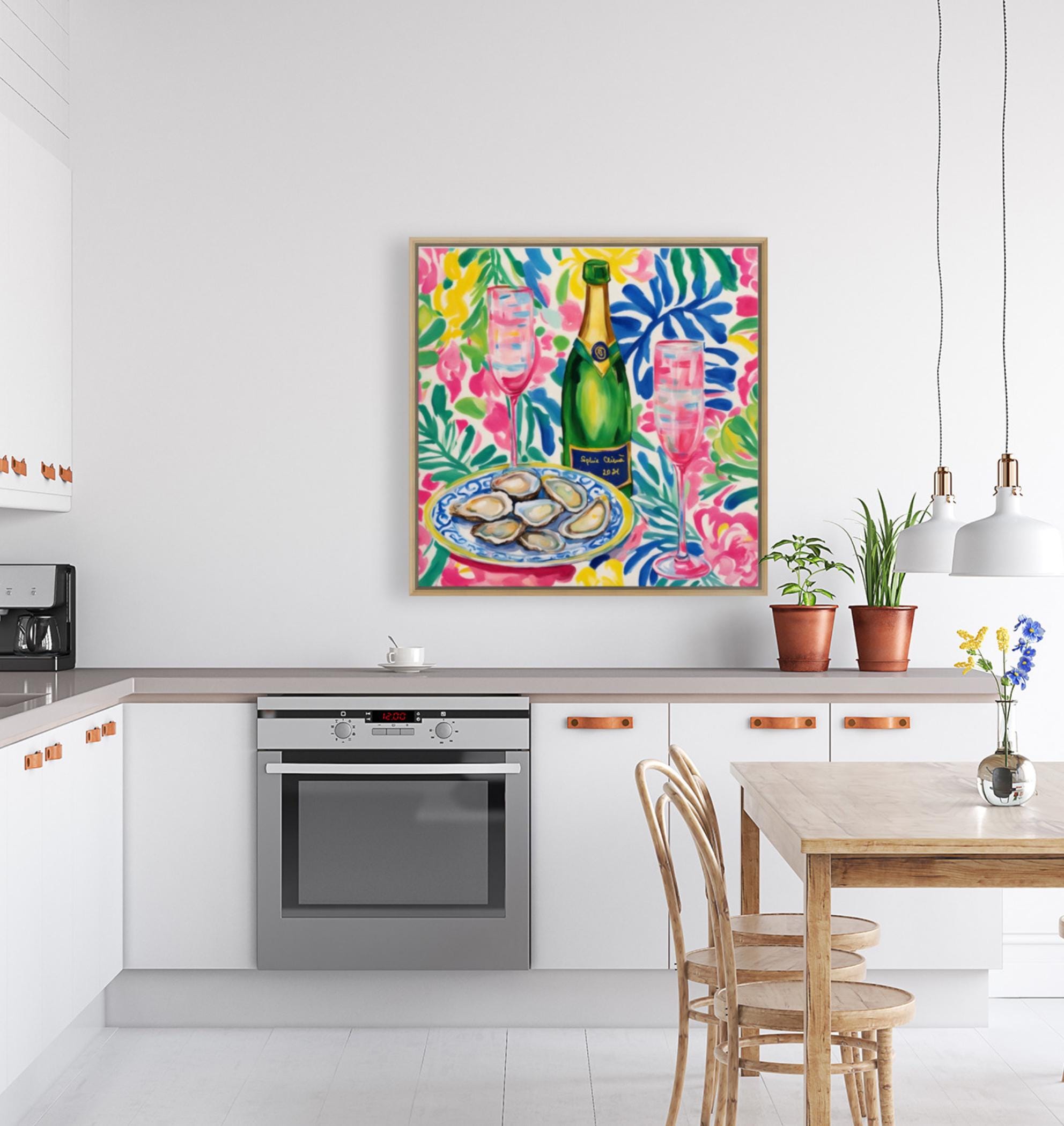 Grandmillennial art, Champaign and Oysters part 2, Matisse inspired oyster art
