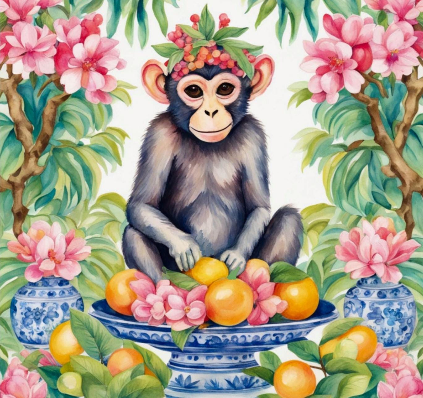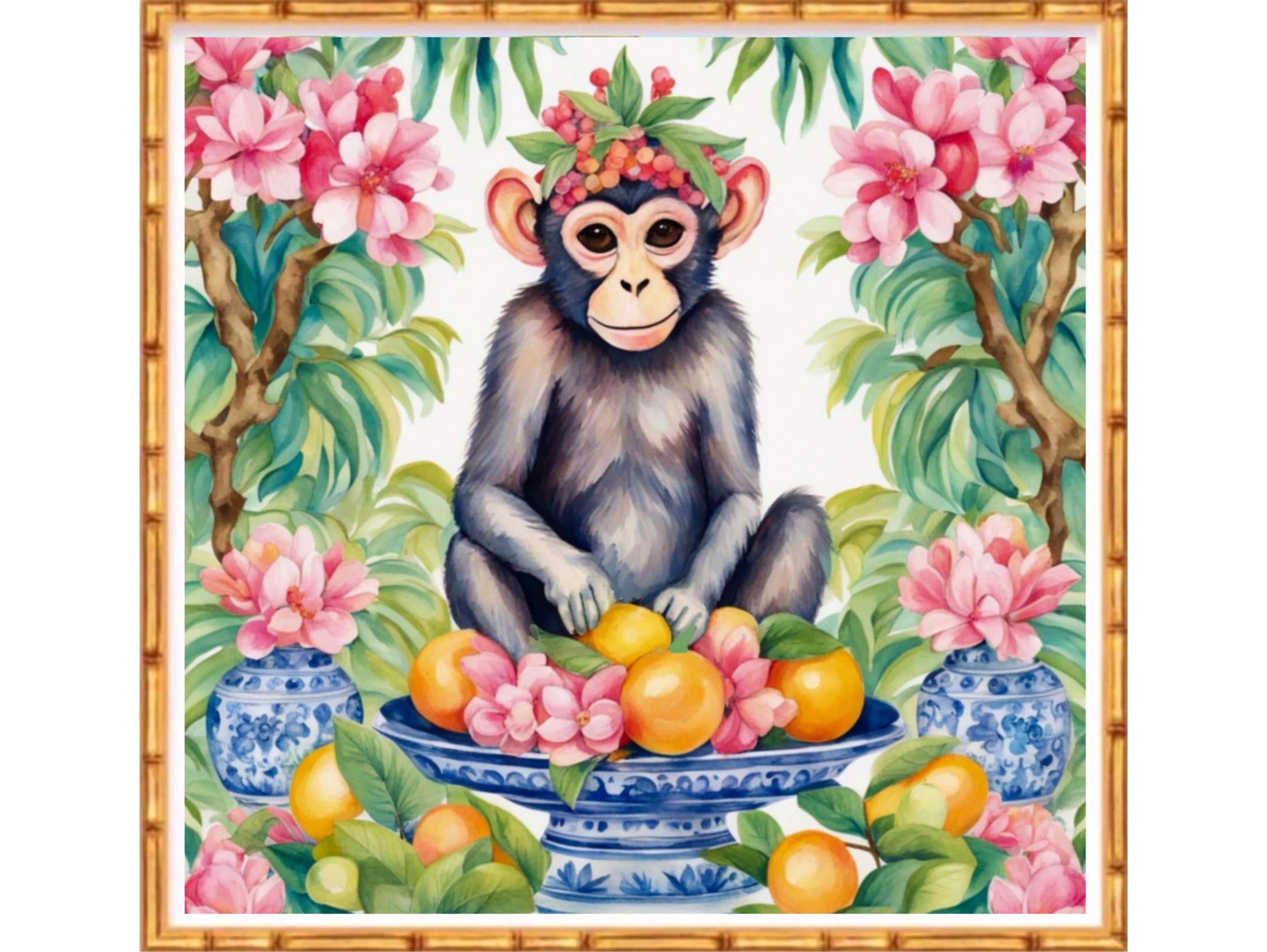 Sophie's art is the modern interpretation of Chinese artistic traditions featuring pagodas, landscapes, blue and white porcelain, ginger jars, pagodas, cheetahs and monkeys. Sophie developed her own recognizable style with bright colors and whimsical details.