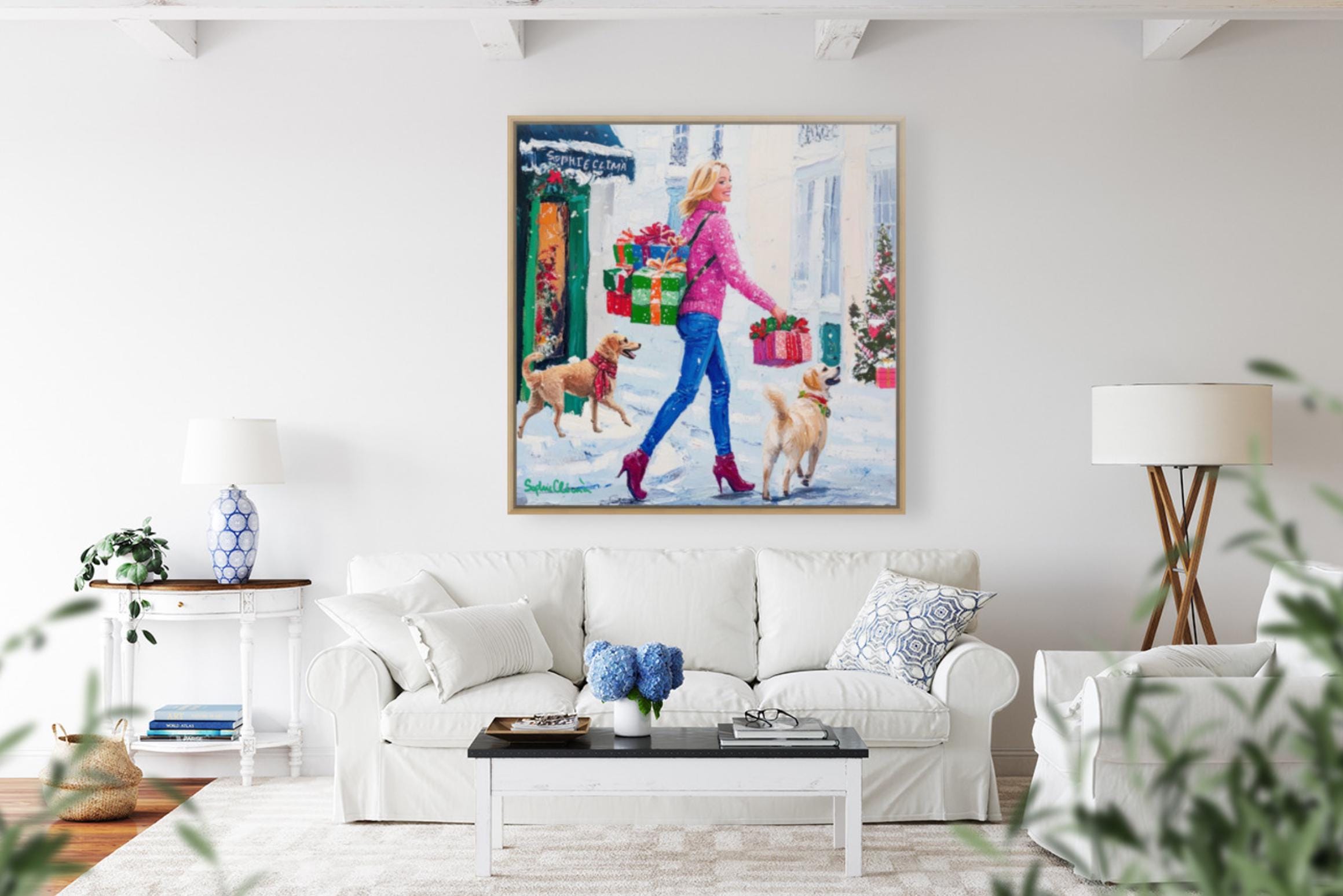 Grandmillennial art, Christmas shopping, whimsical fine art