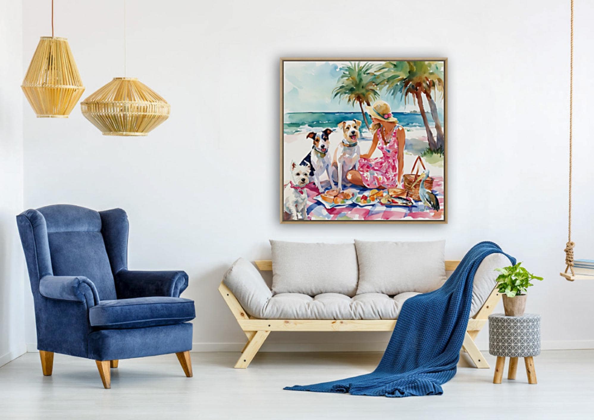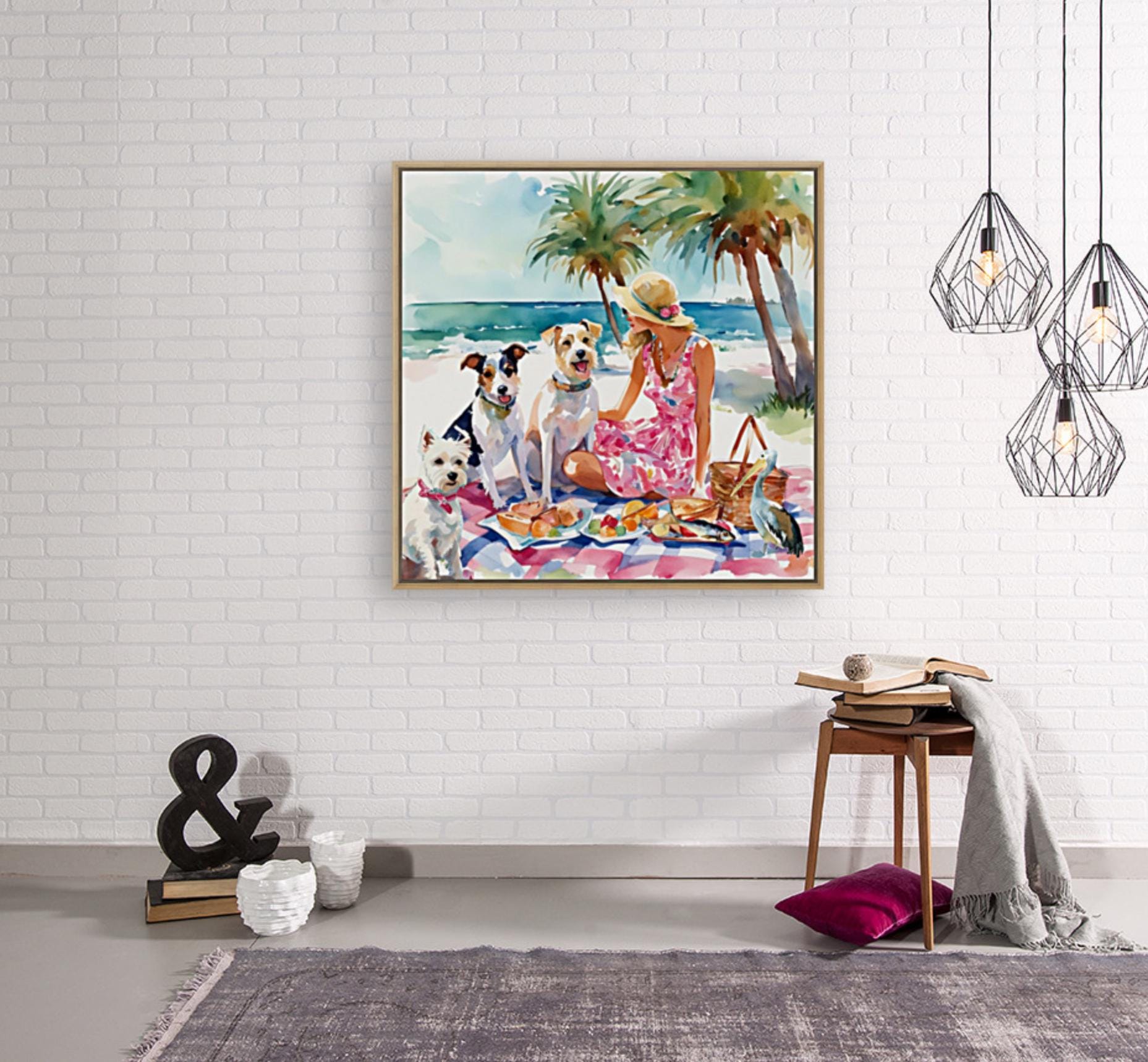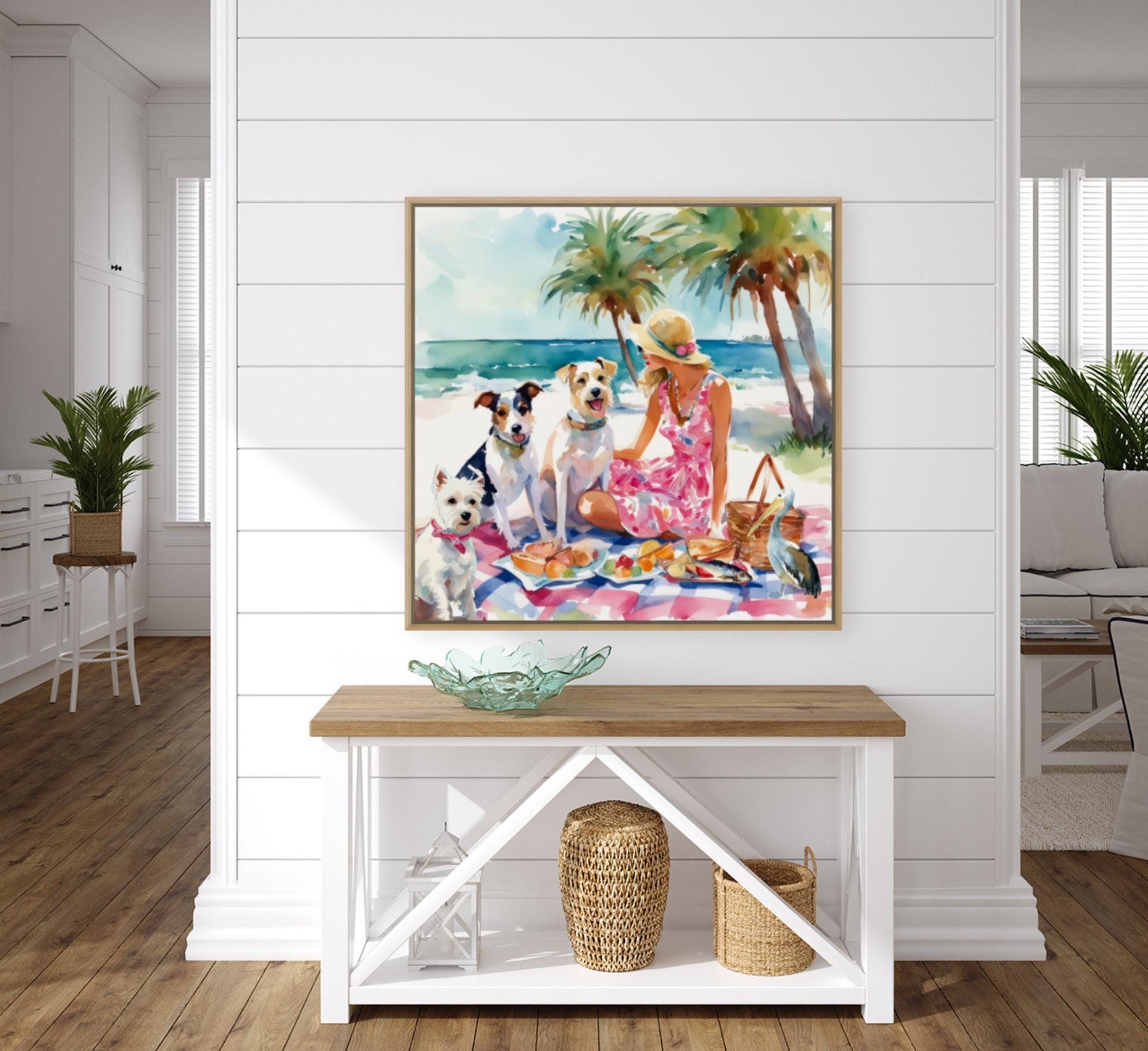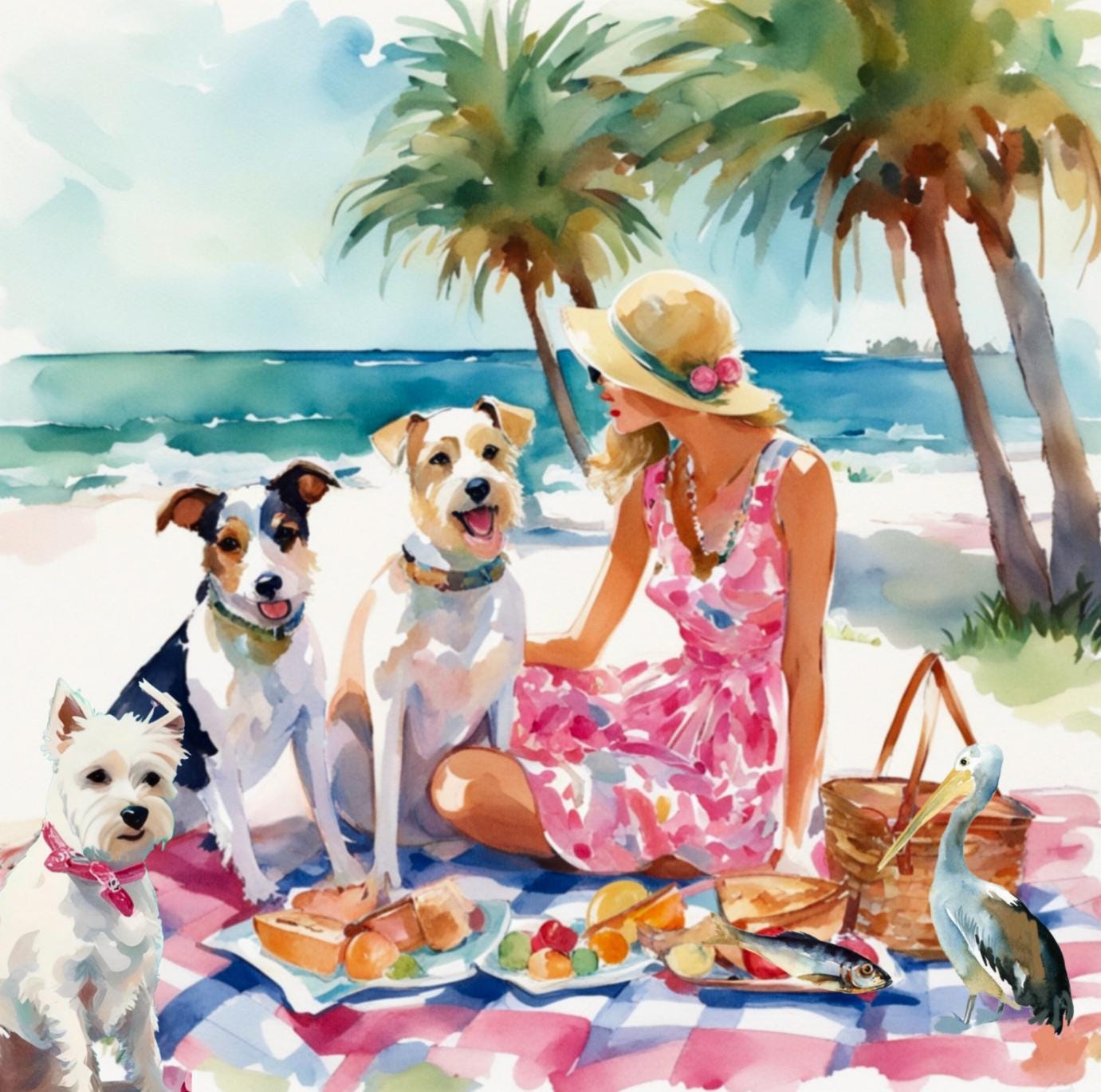 Grandmillennial art, Picnic in Palm Beach, coastal Florida girly art