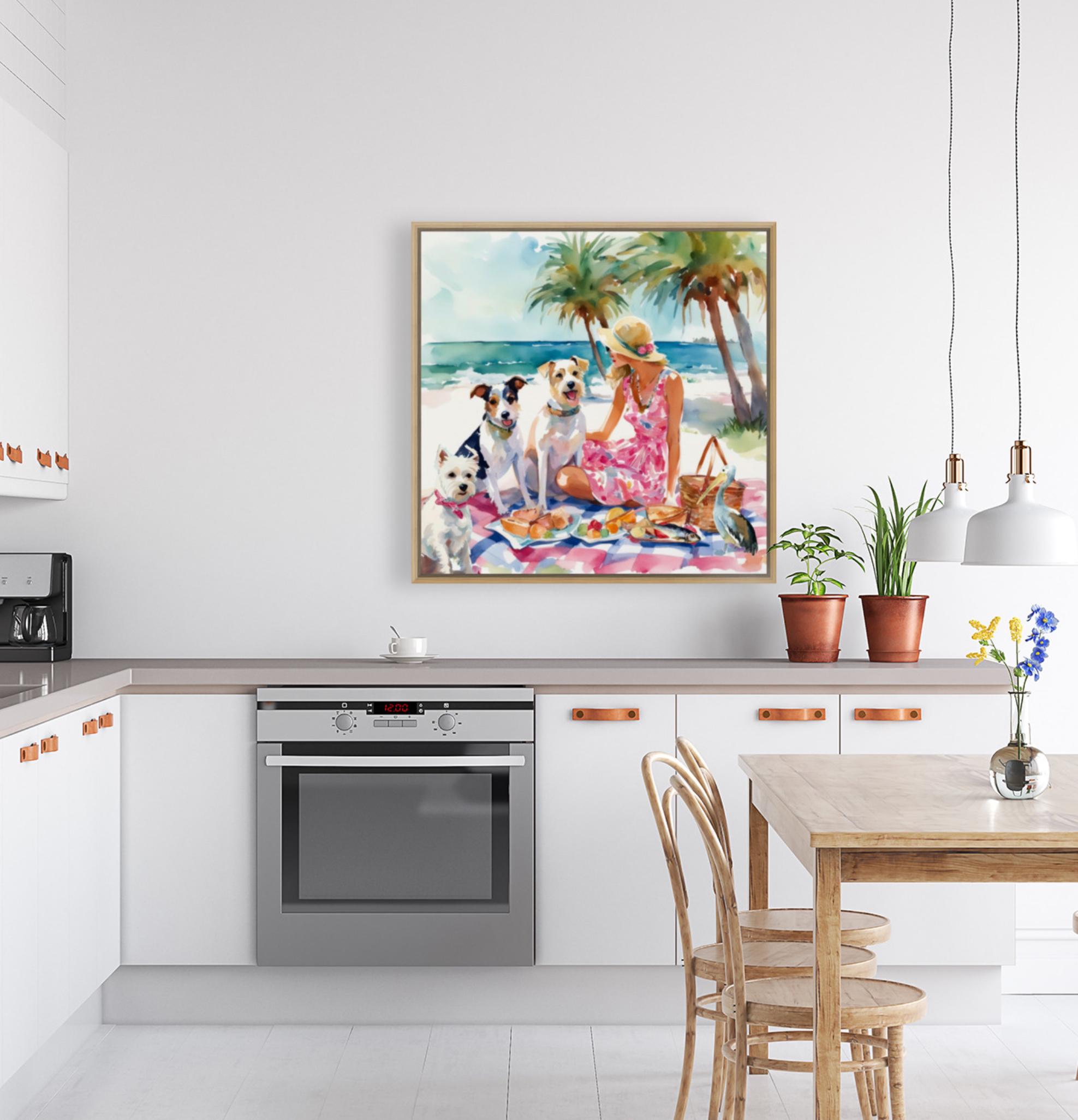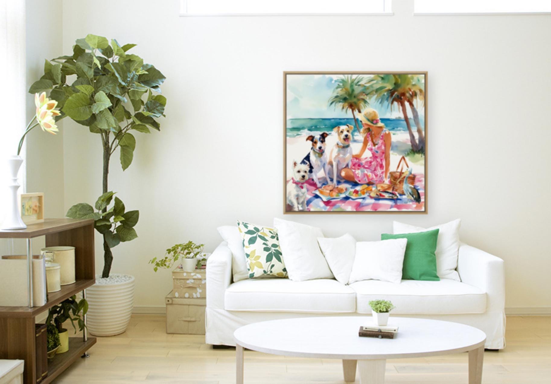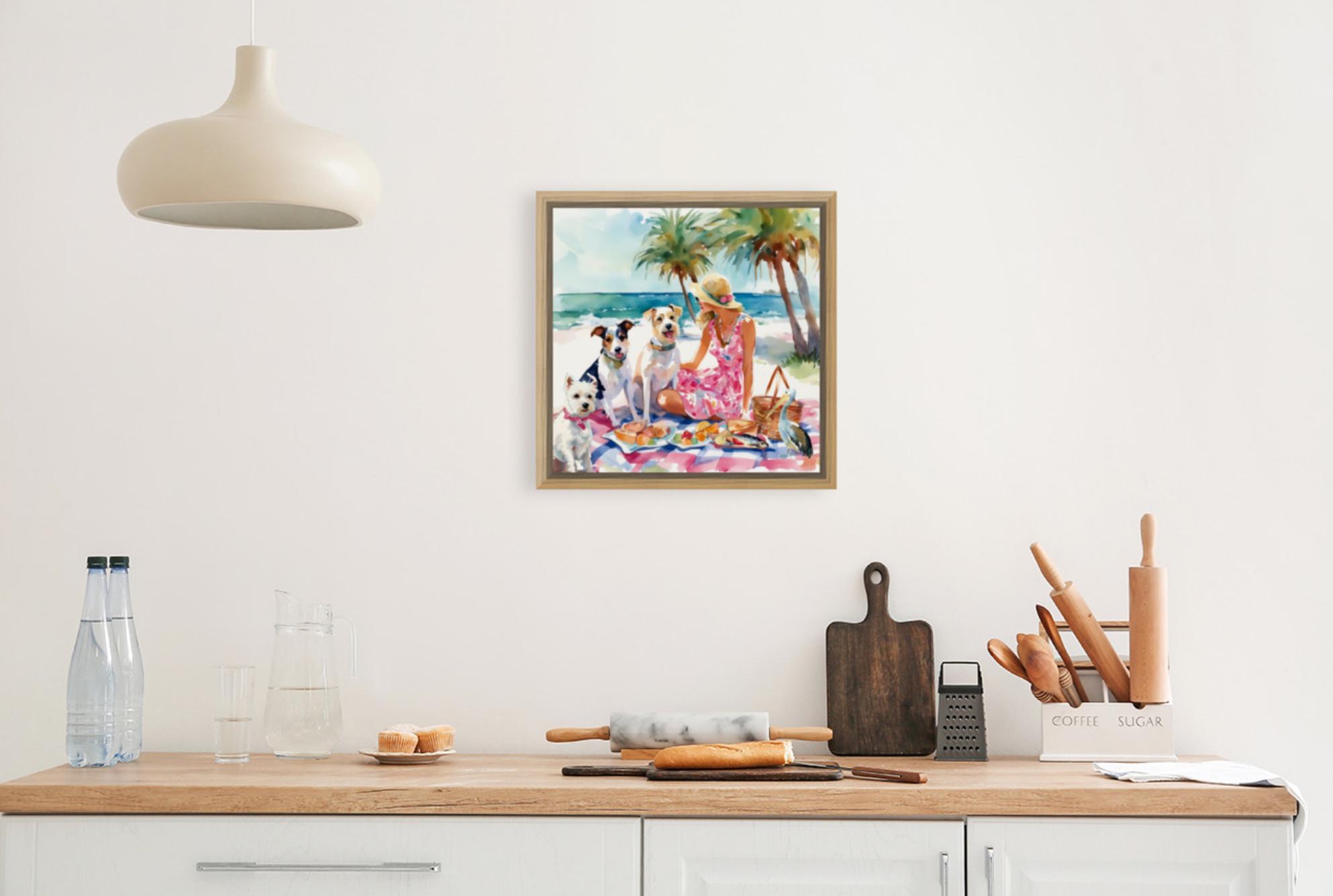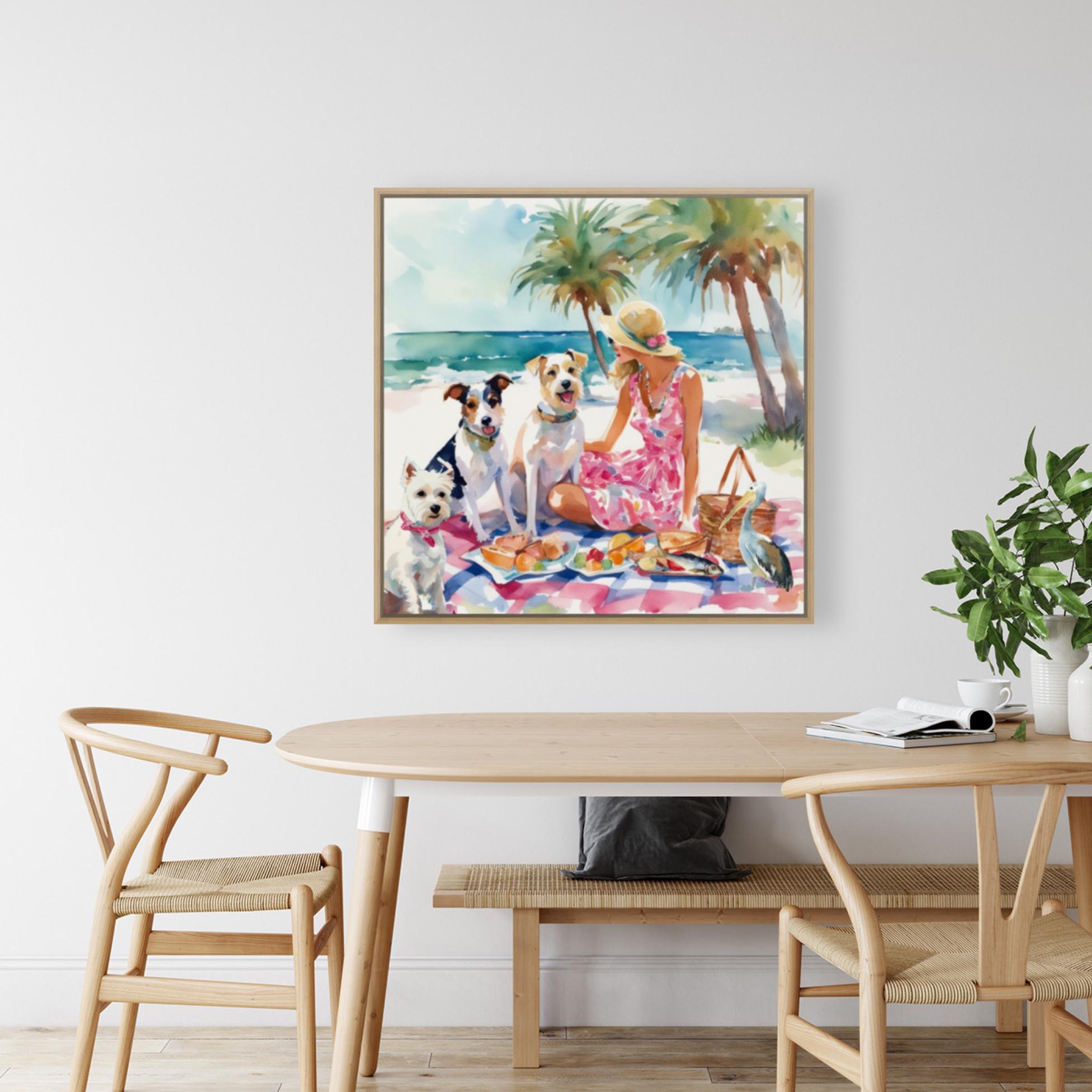 Grandmillennial art, Picnic in Palm Beach, coastal Florida girly art