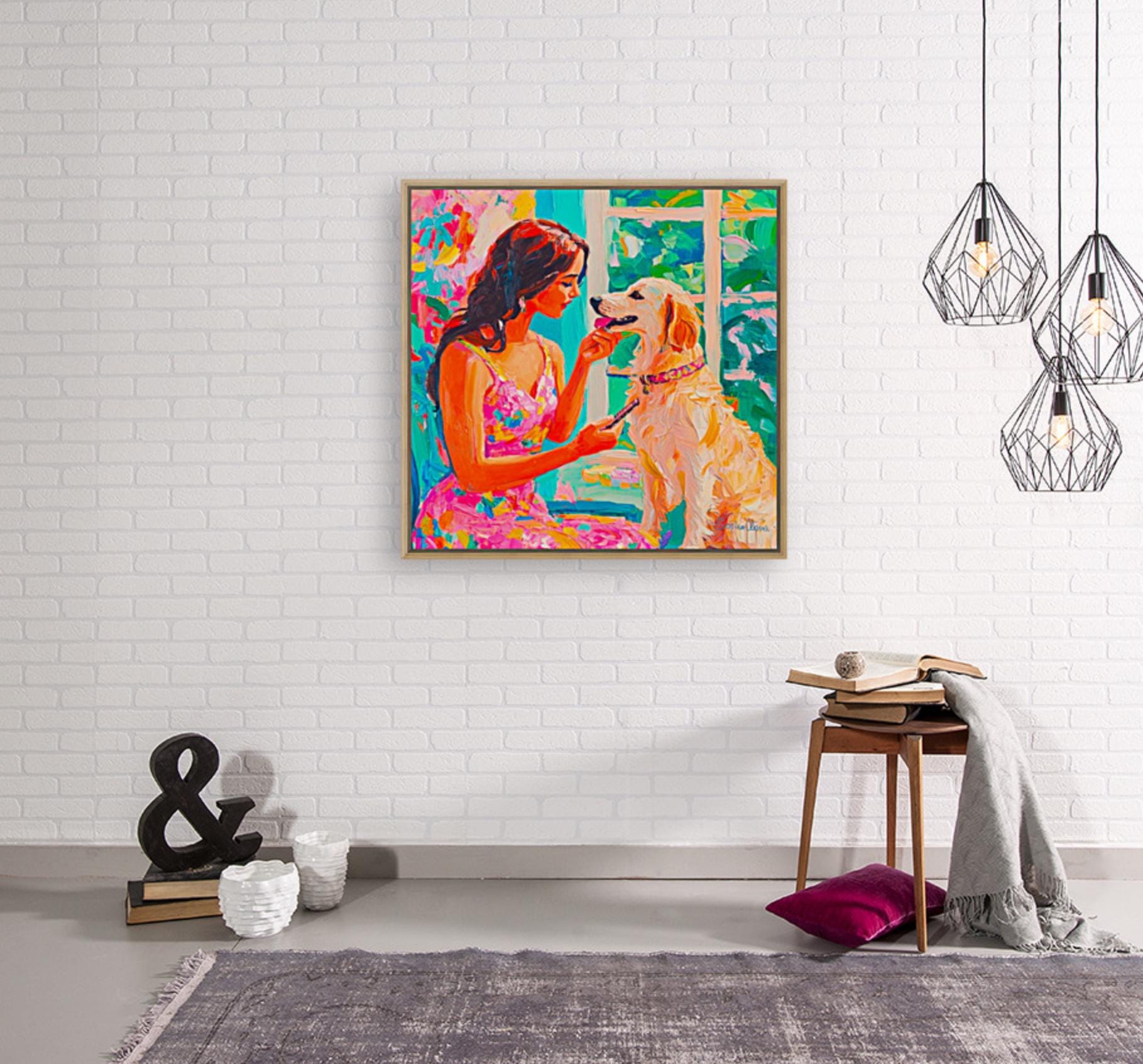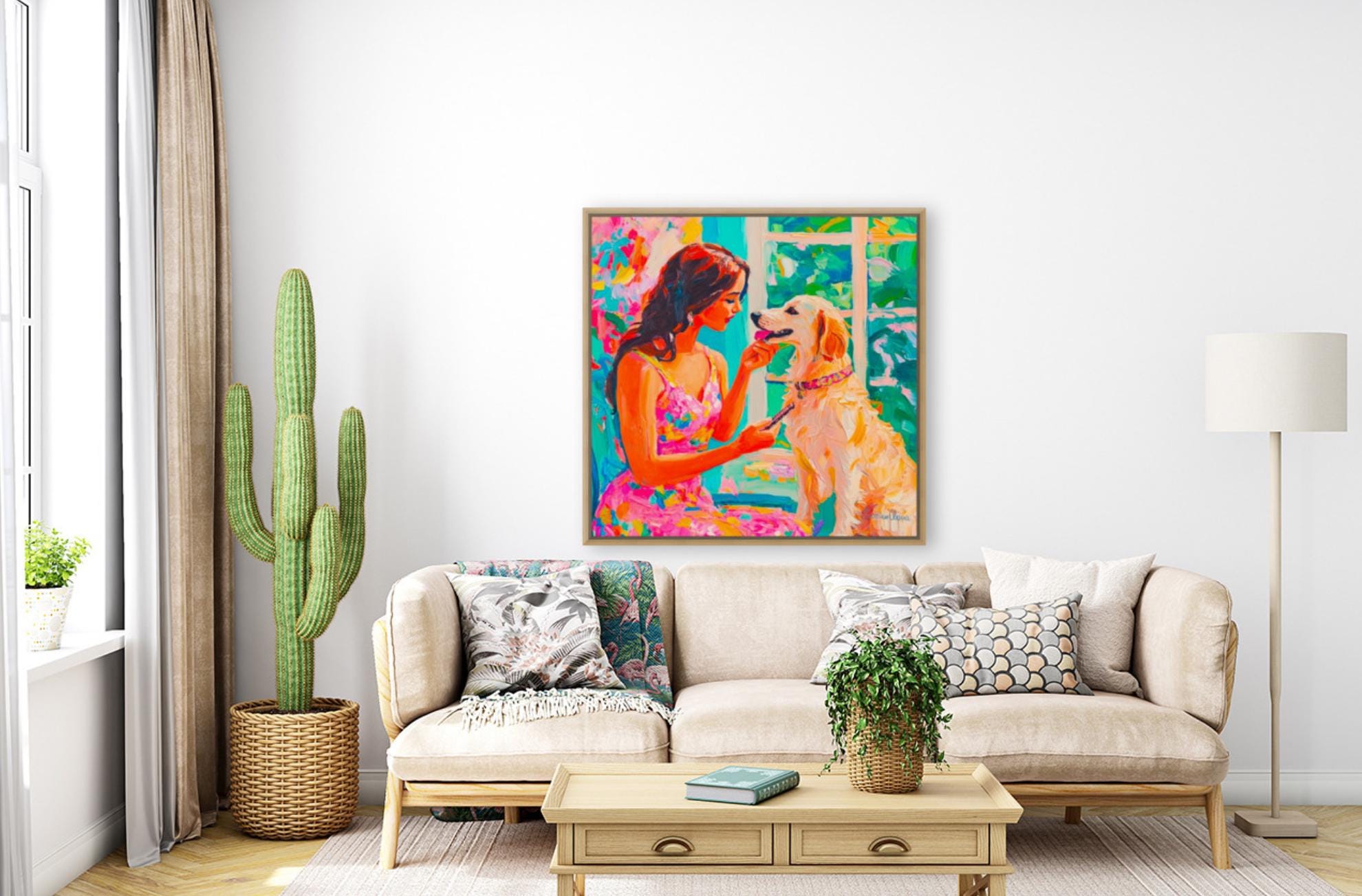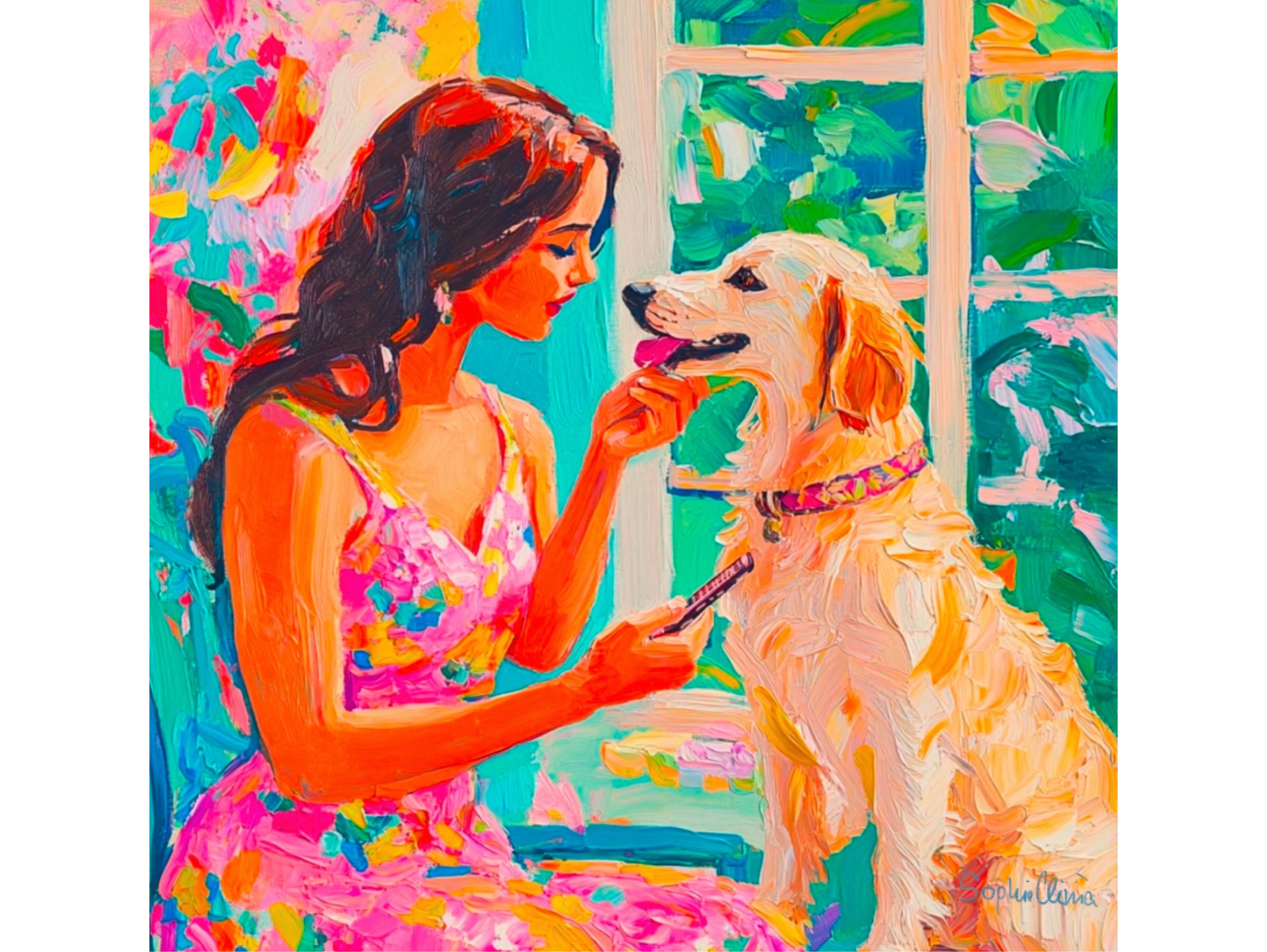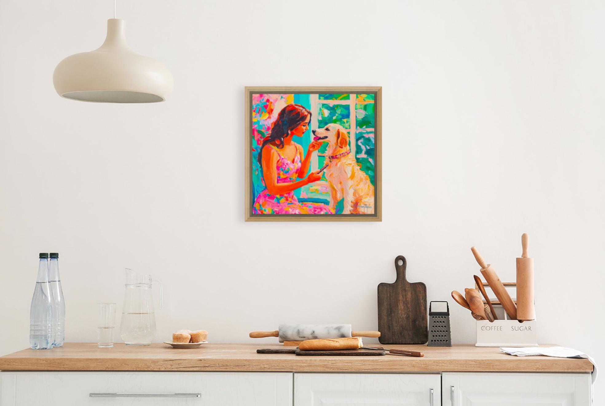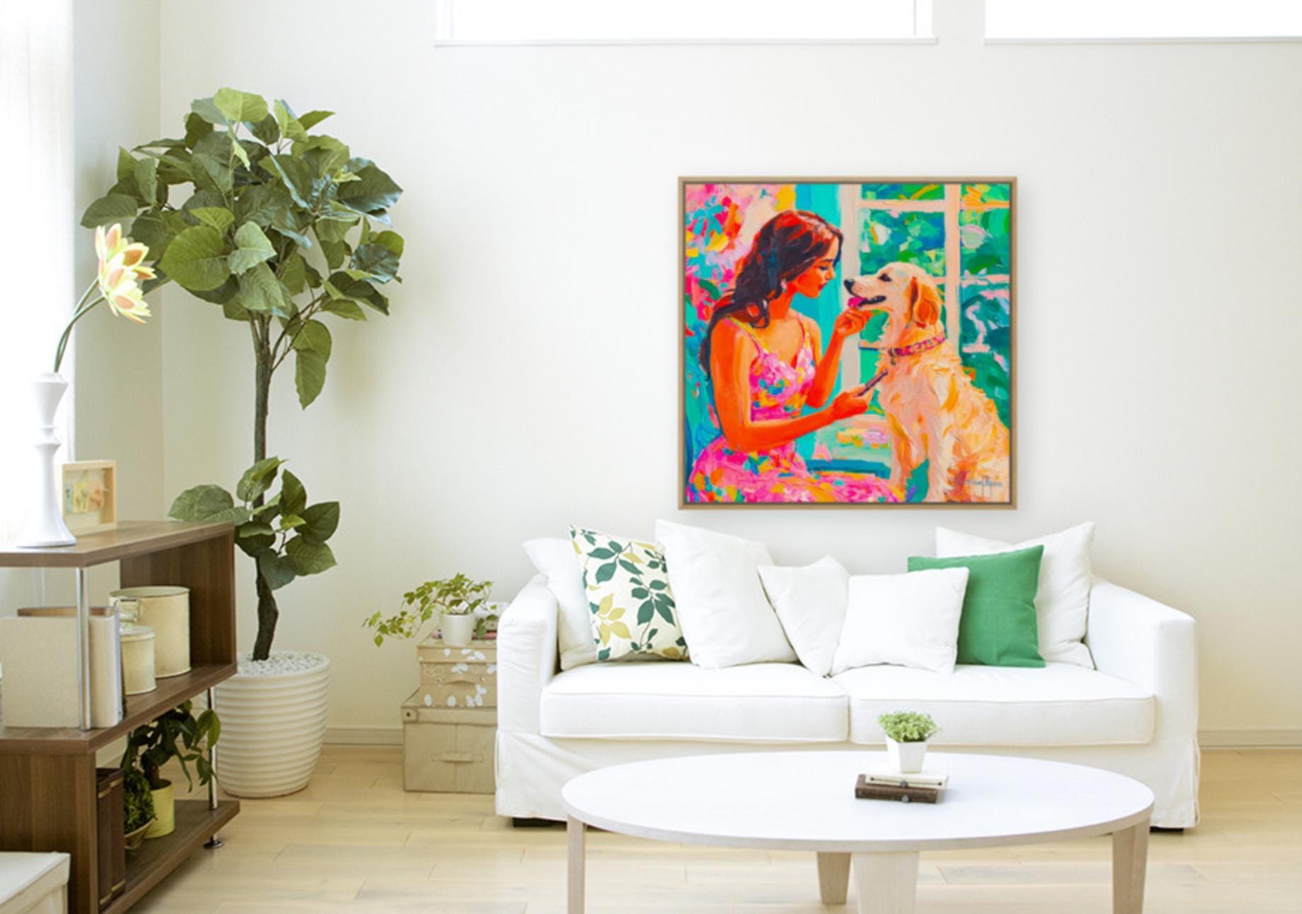 Grandmillennial art, Beauty Time, preppy Golden Retriever art