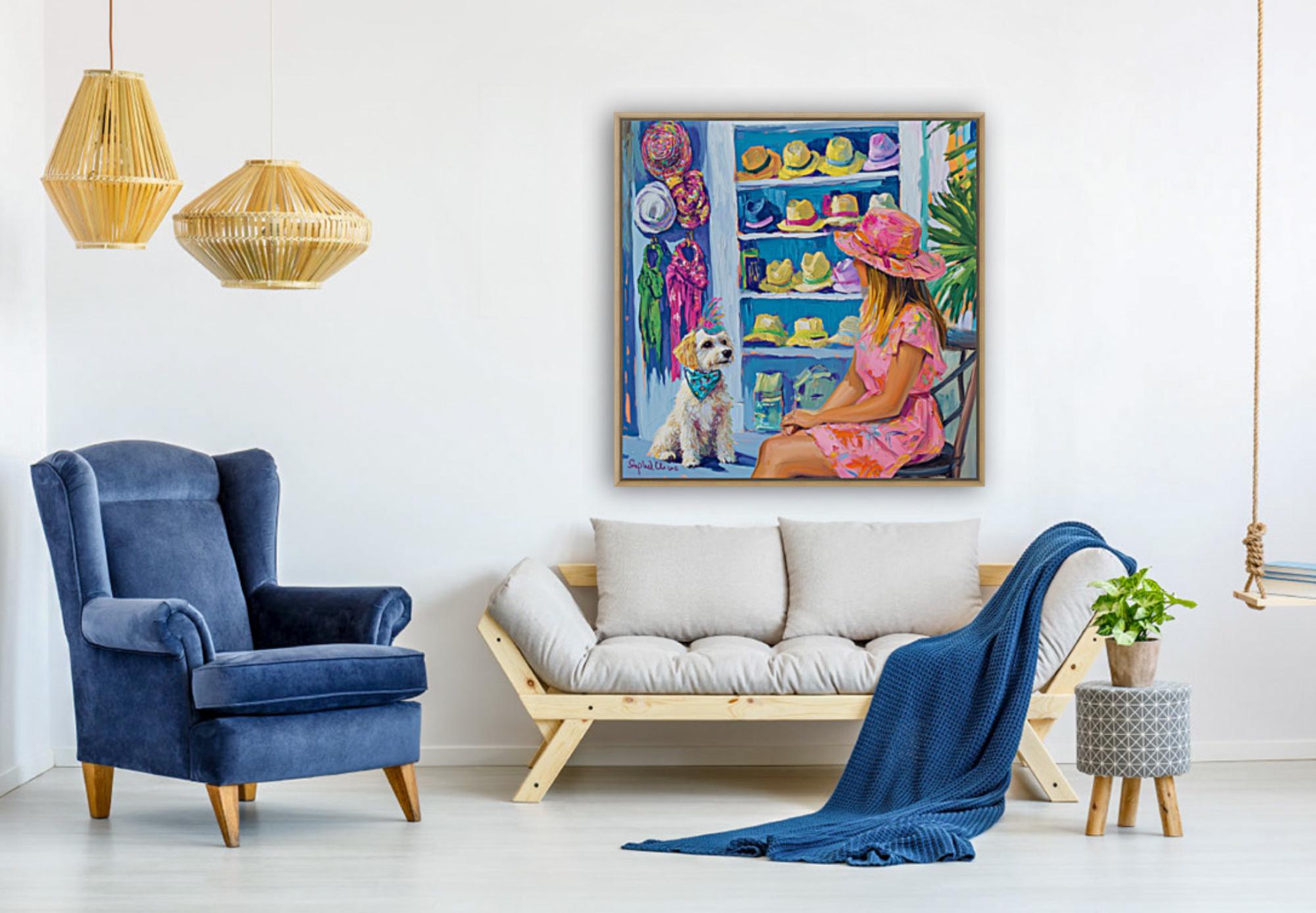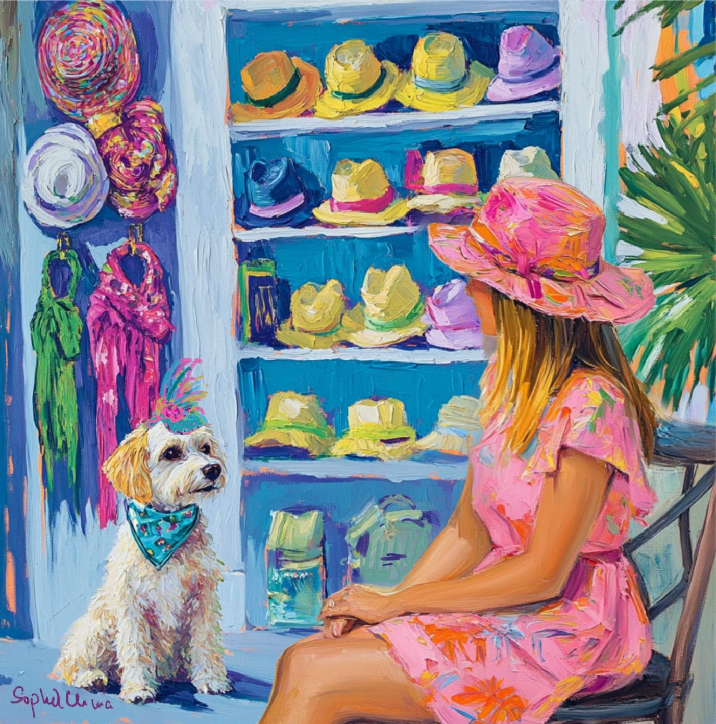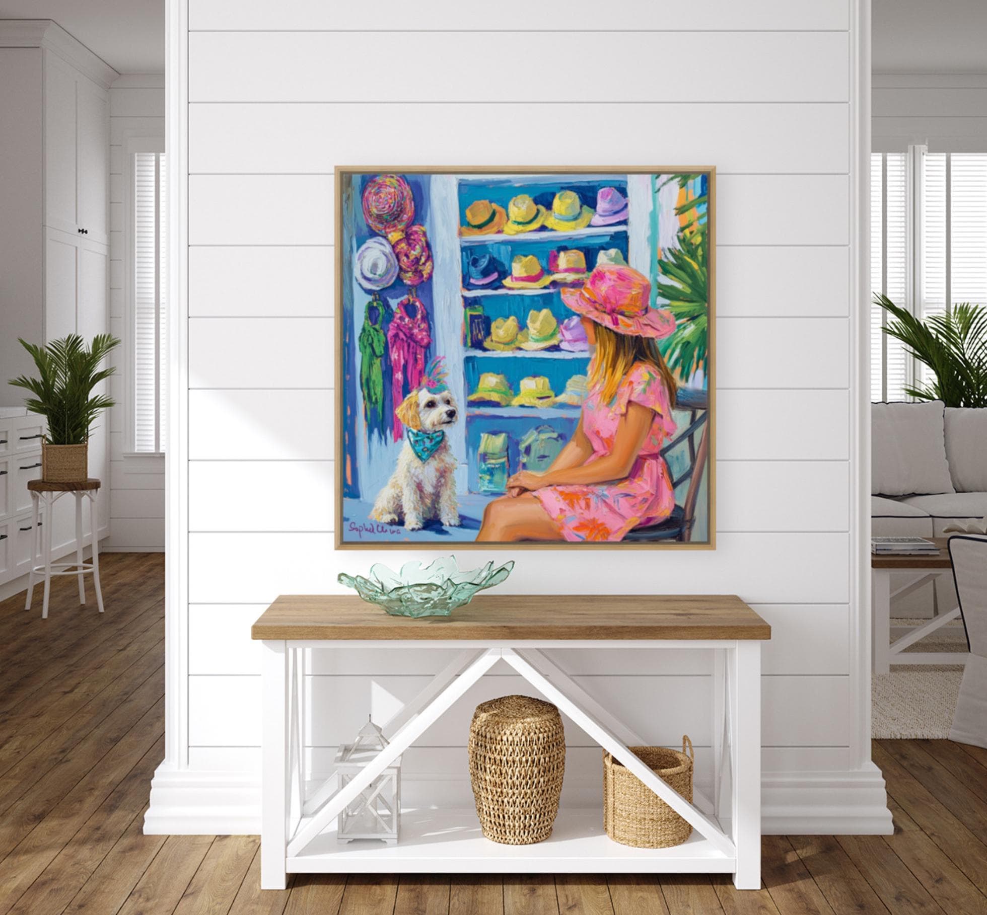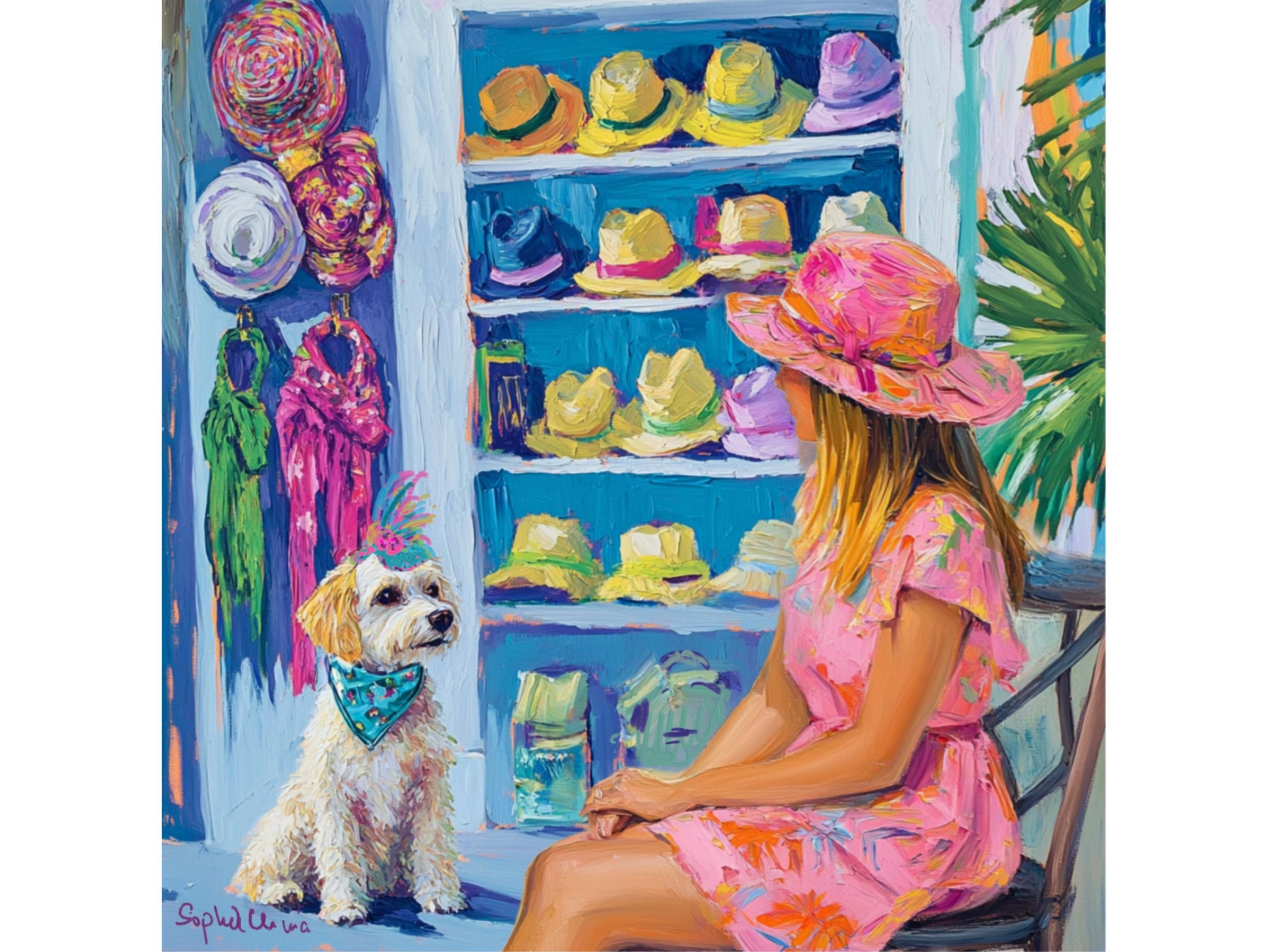 Whimsical Dog Art Print: Colorful Hats, Grandmillennial Decor