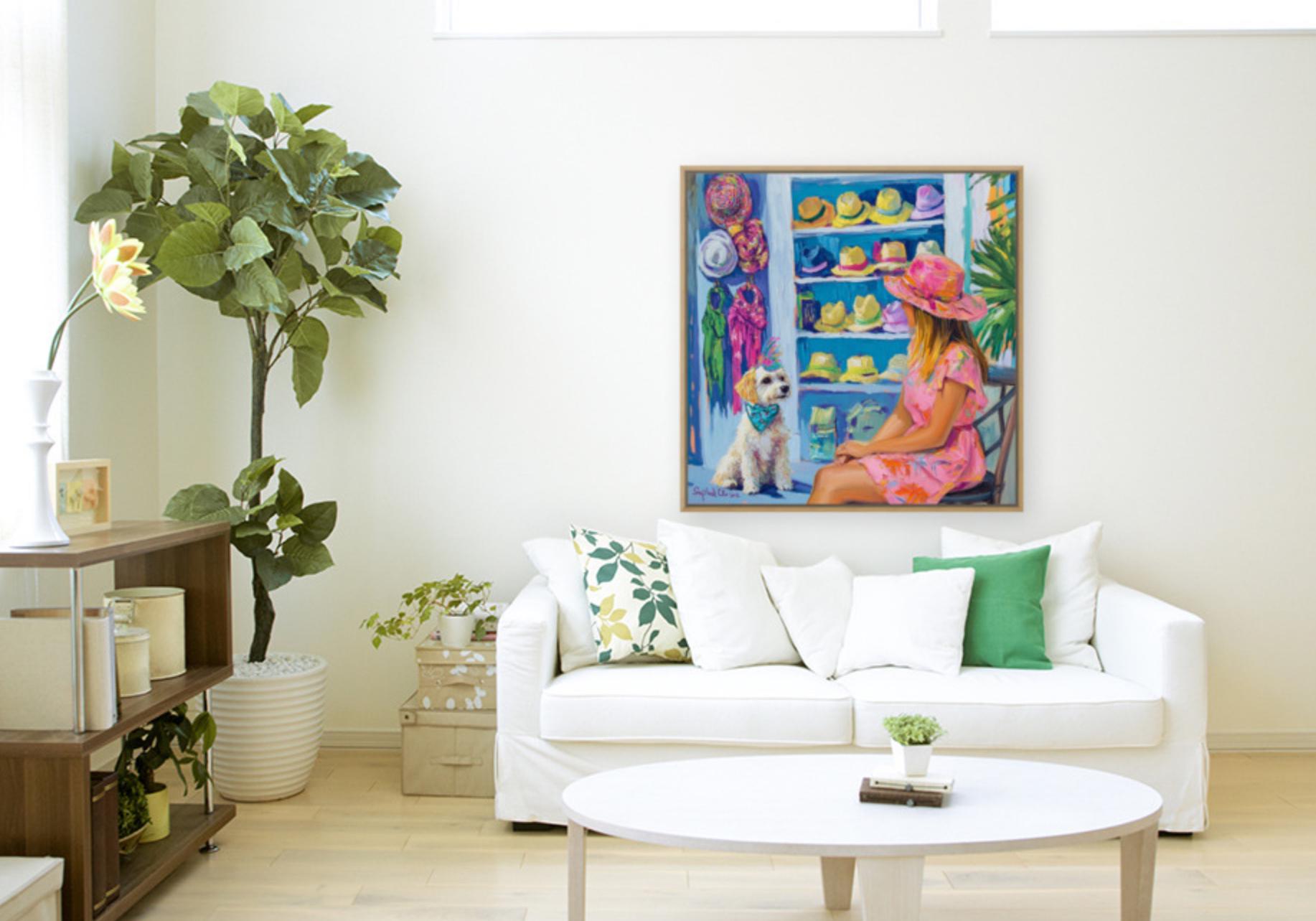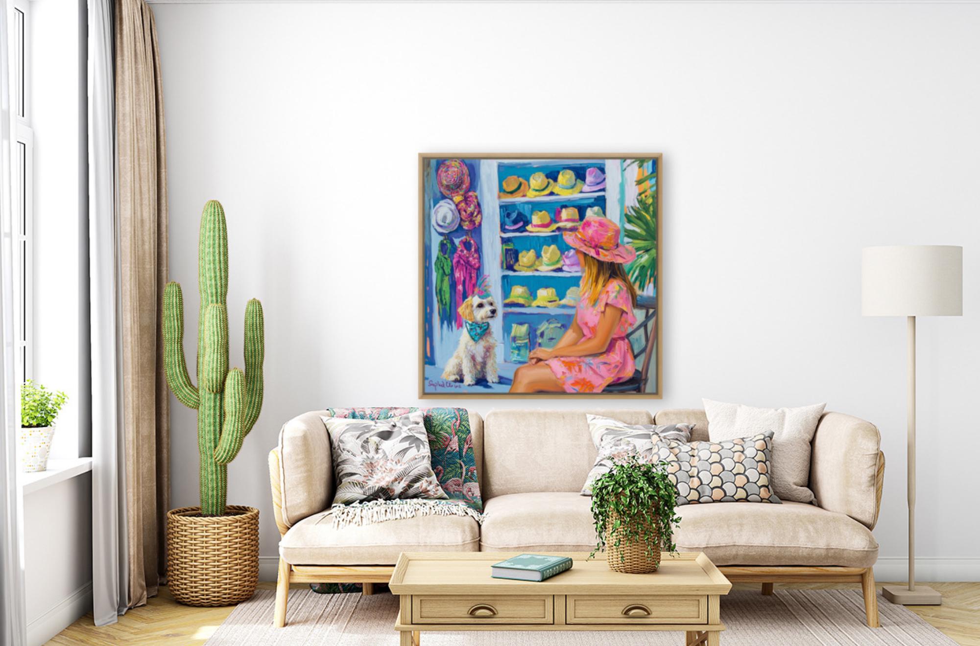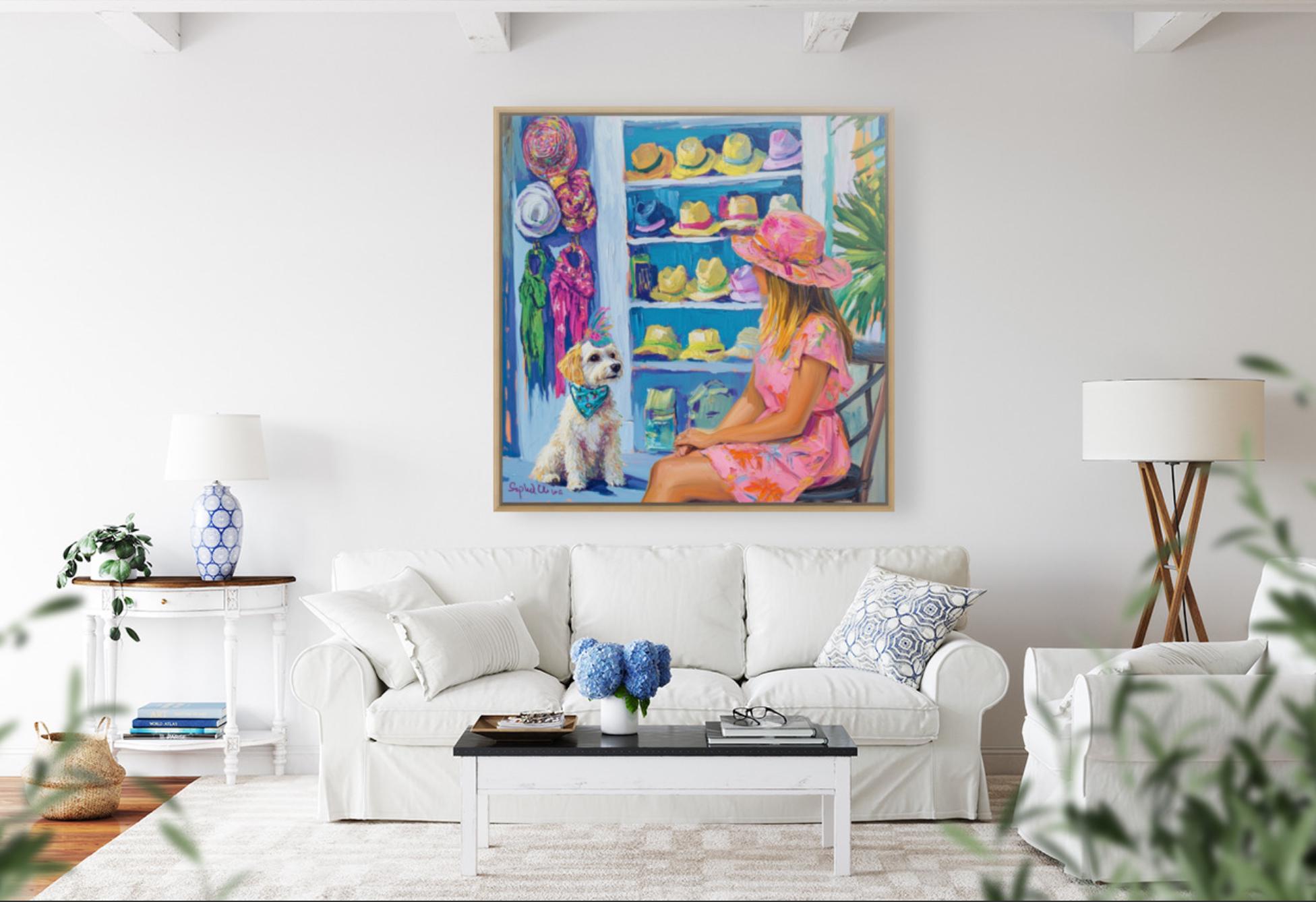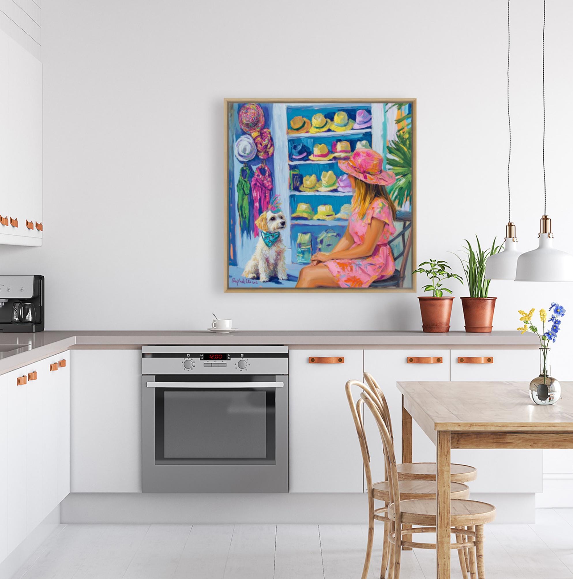 Whimsical Dog Art Print: Colorful Hats, Grandmillennial Decor