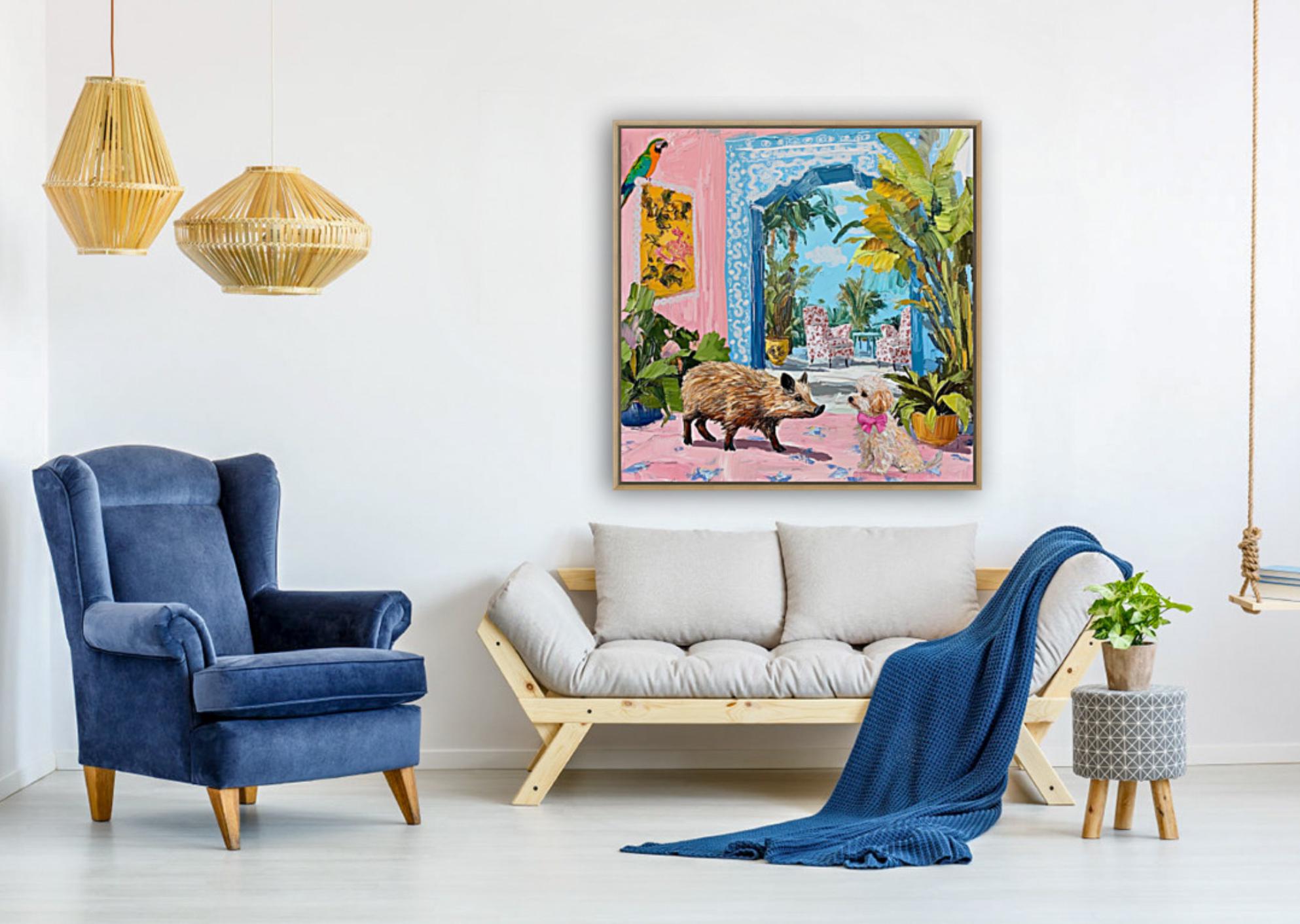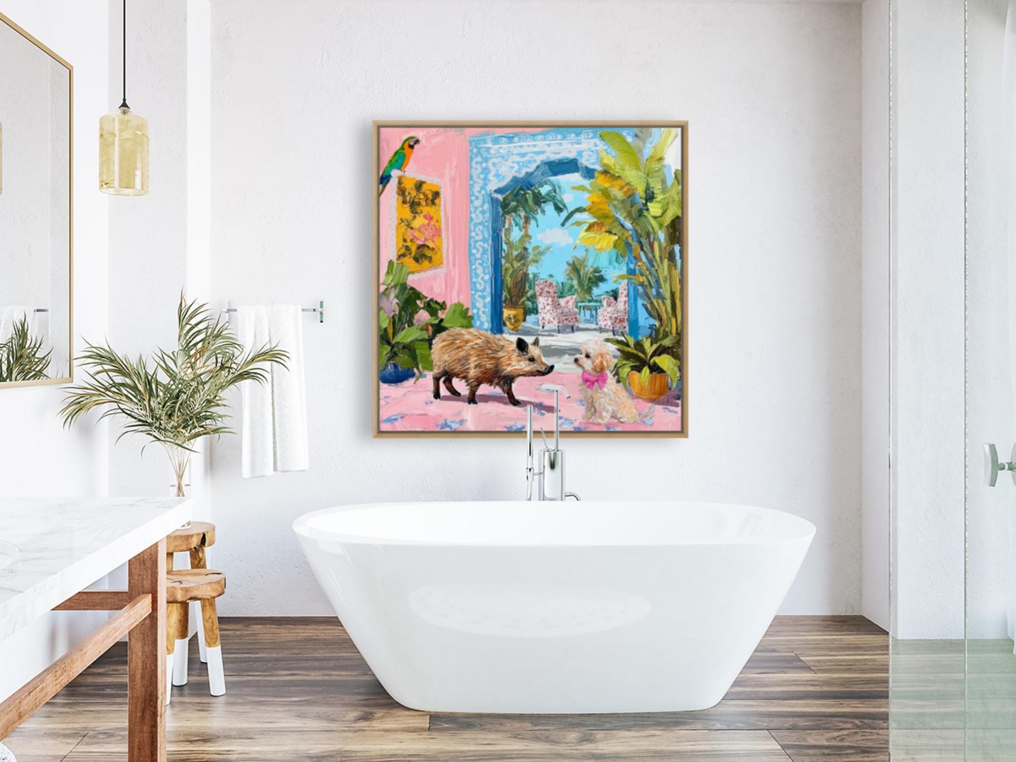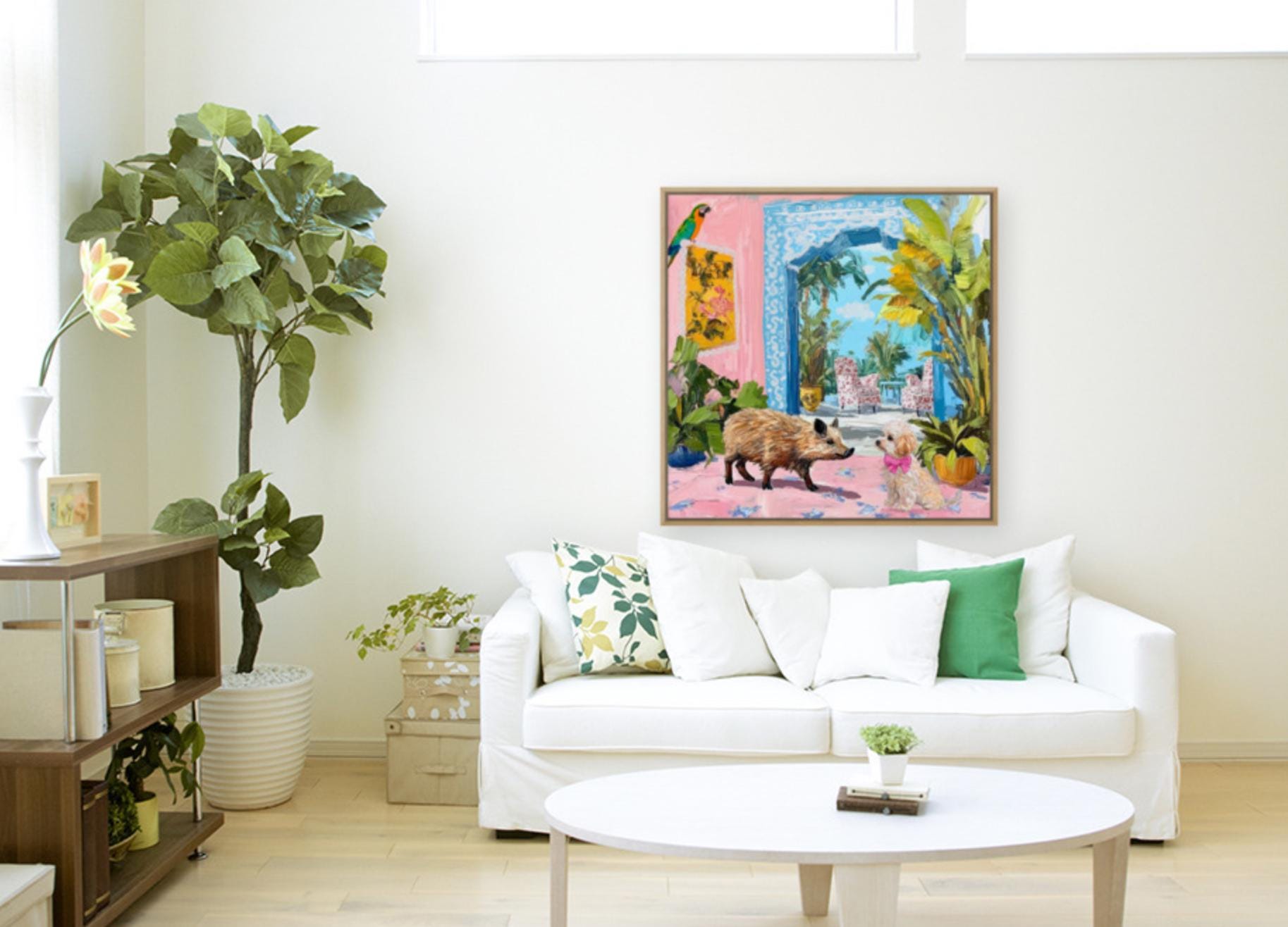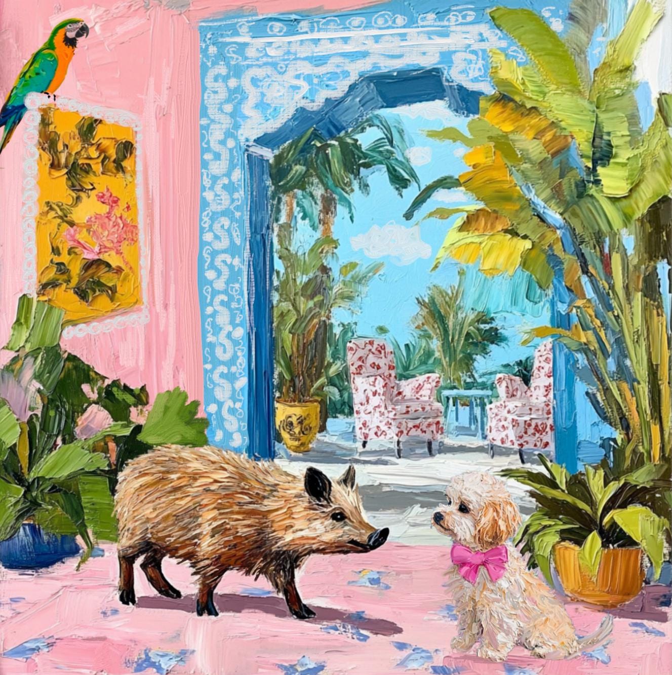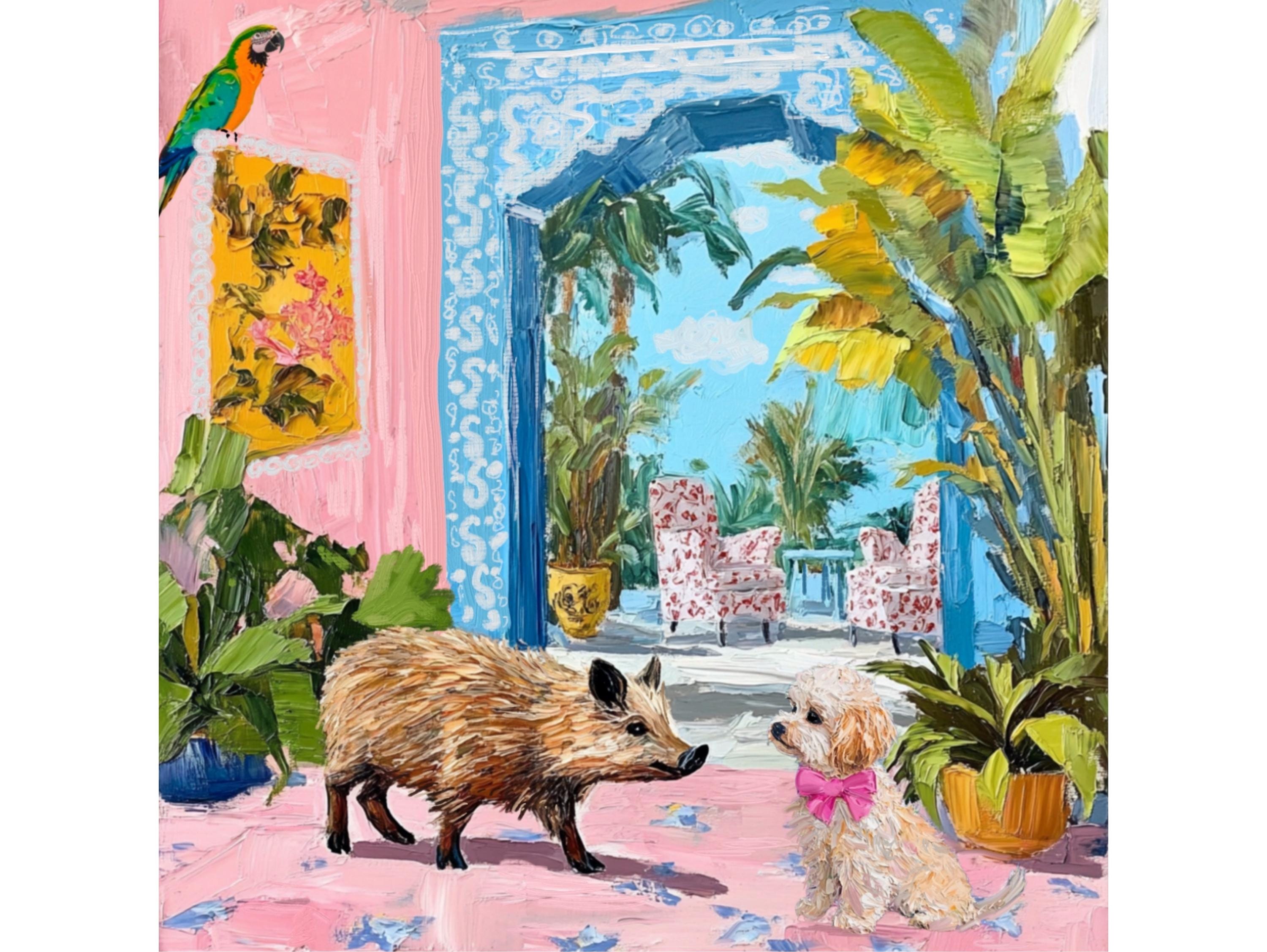 Sophie's art is the modern interpretation of Chinese artistic traditions featuring pagodas, landscapes, blue and white porcelain, ginger jars, pagodas, cheetahs and monkeys. Sophie developed her own recognizable style with bright colors and whimsical details.