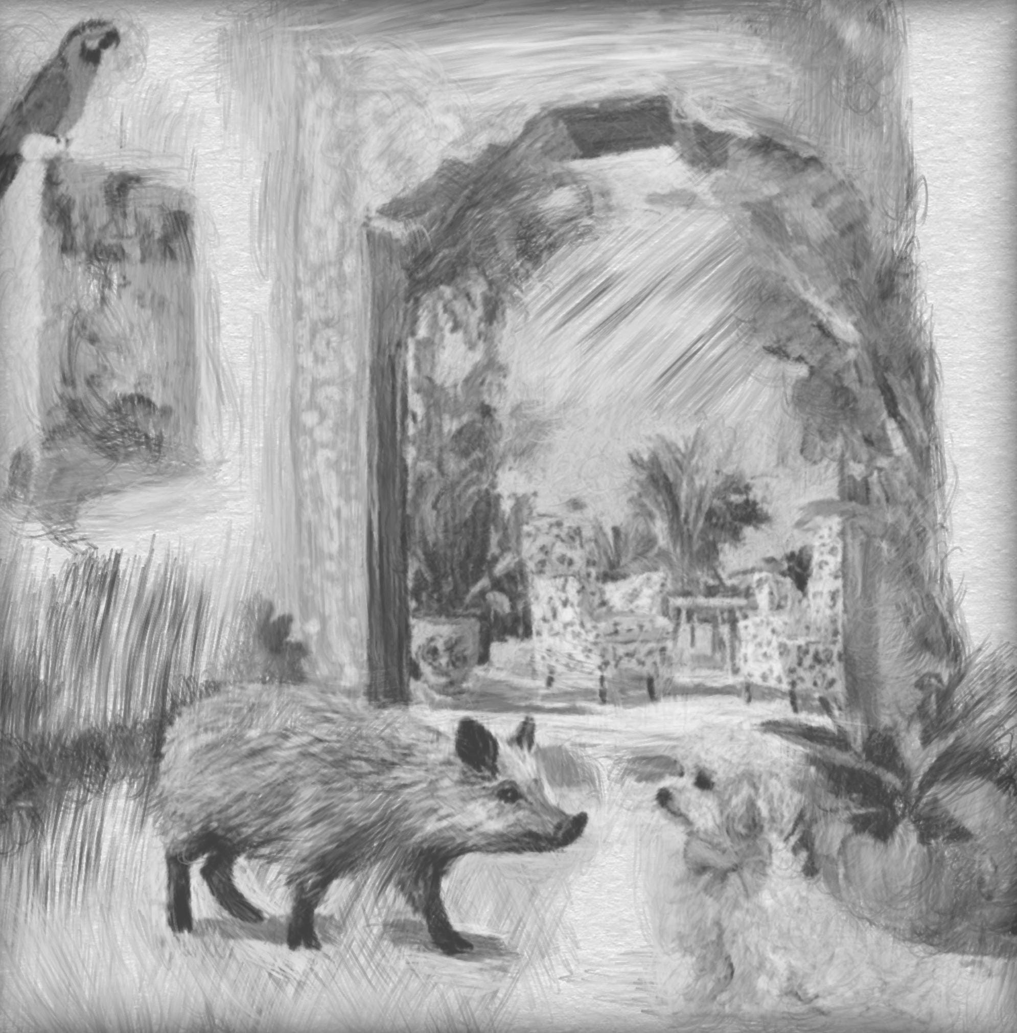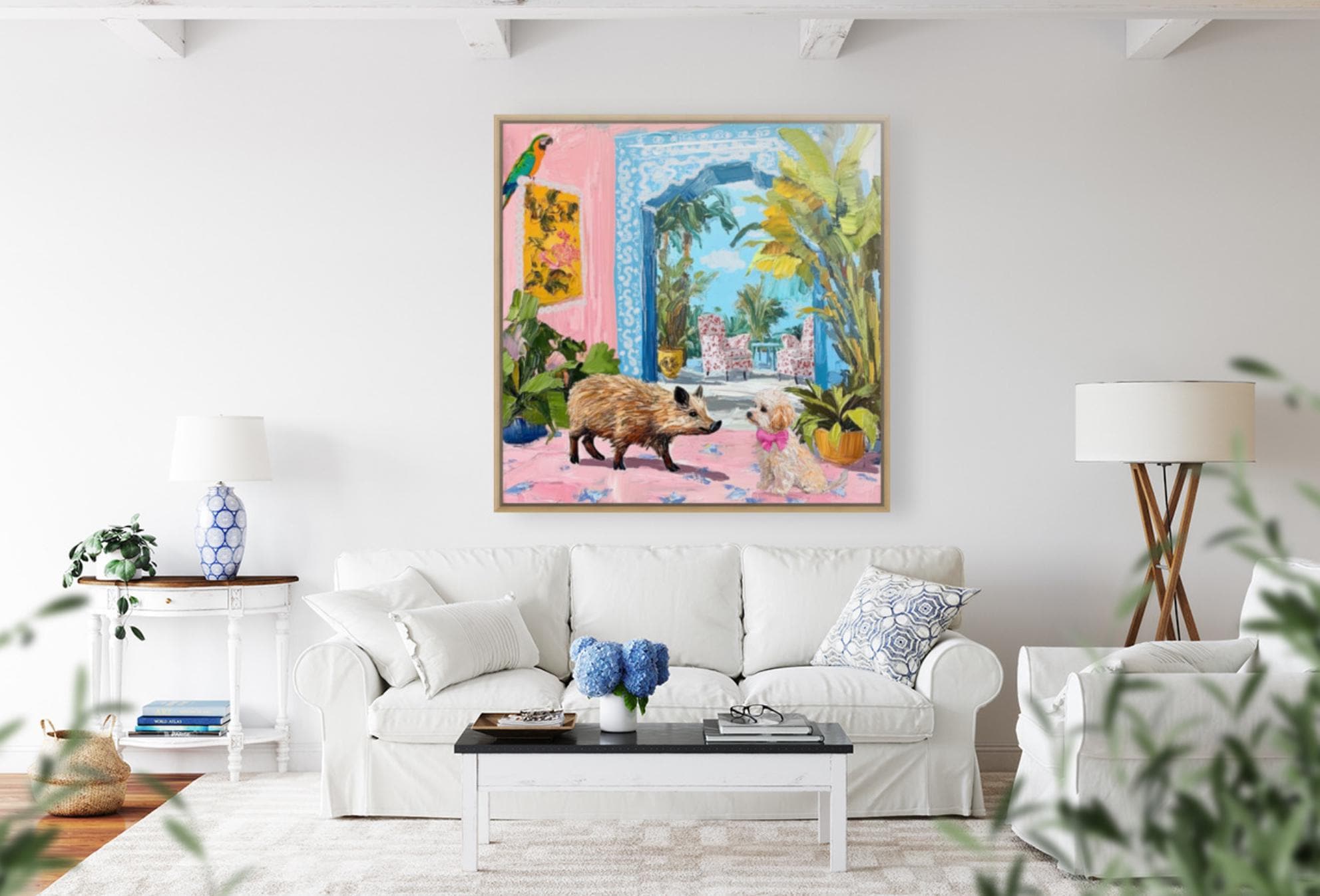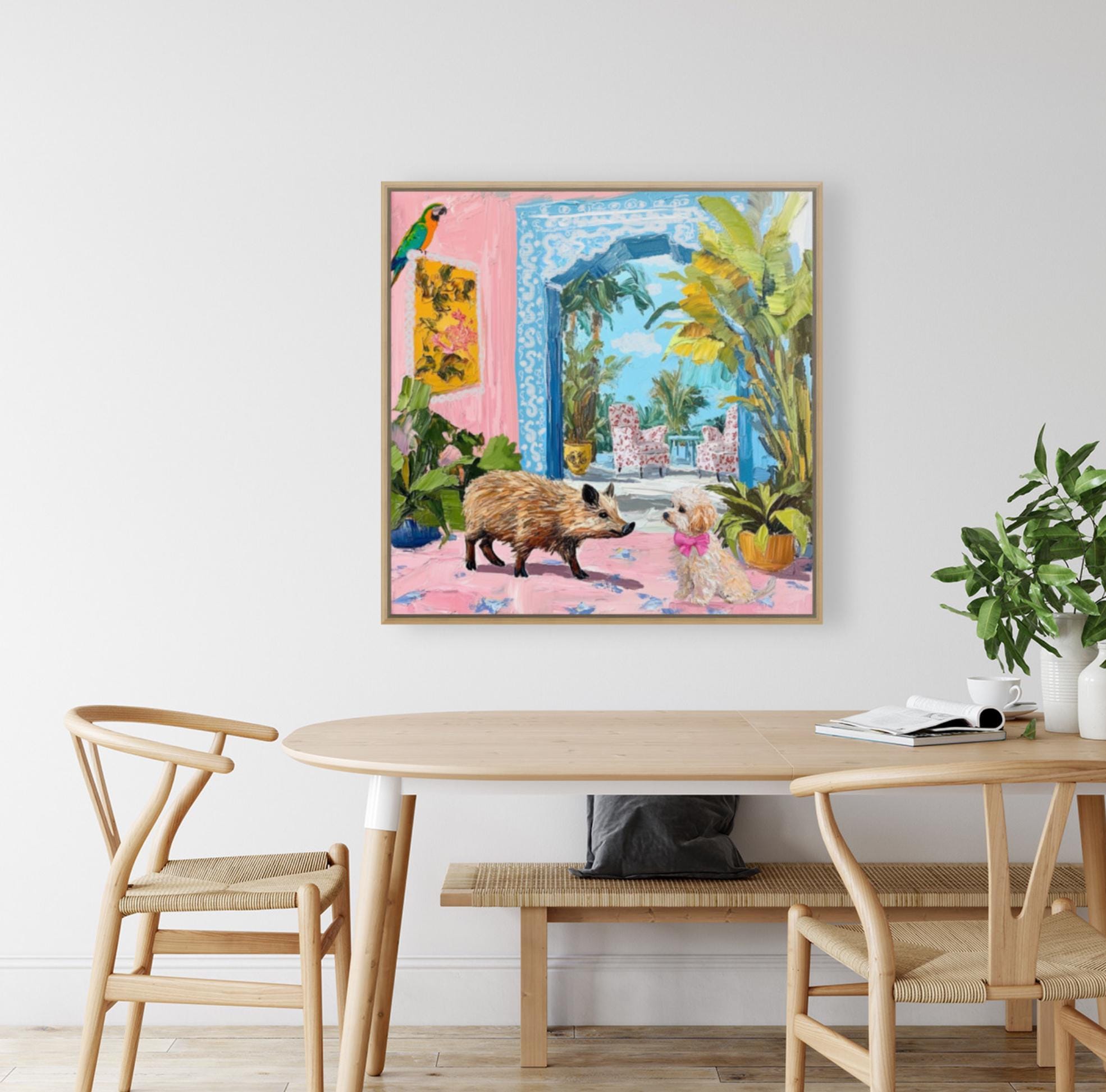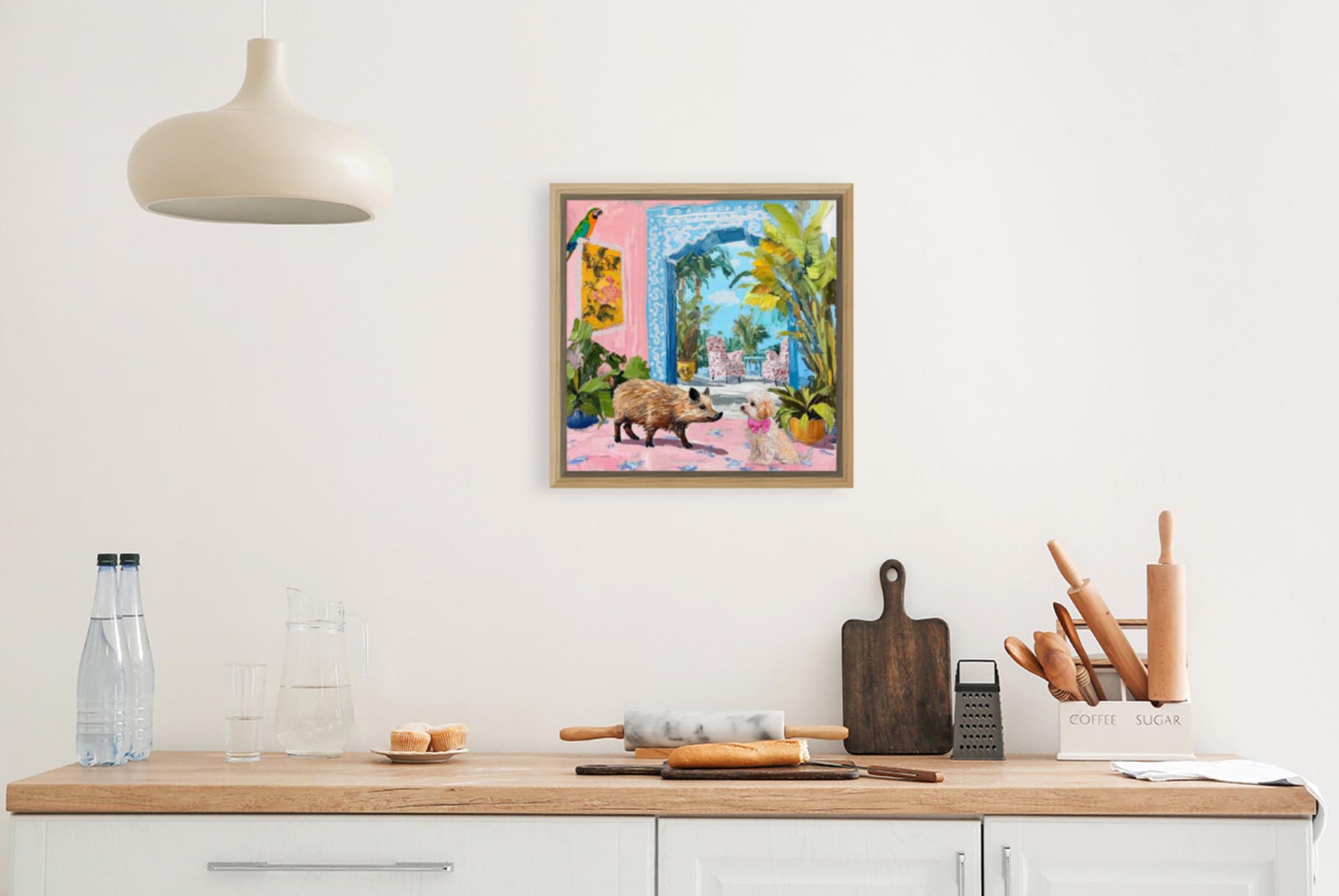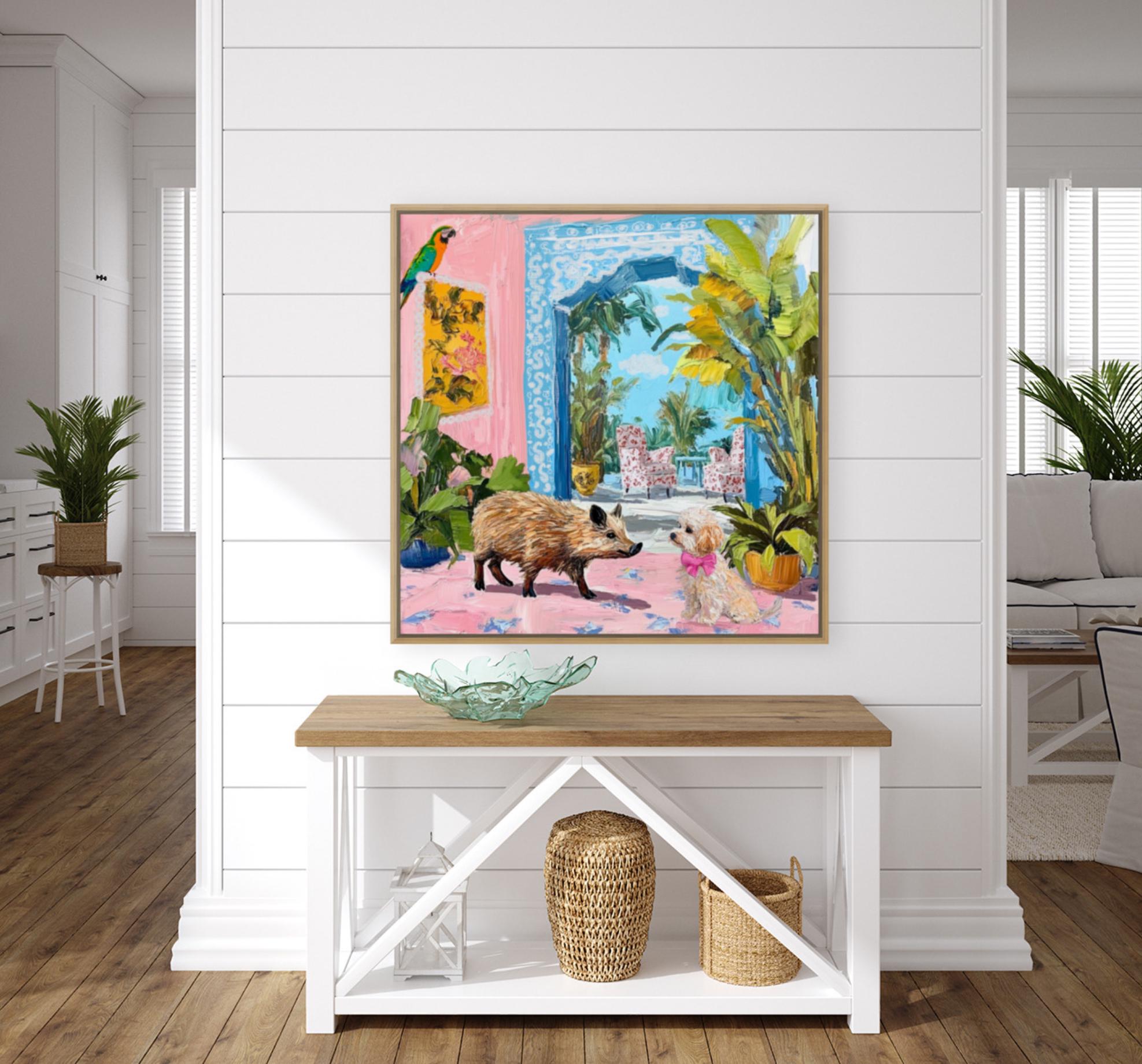 Sophie's art is the modern interpretation of Chinese artistic traditions featuring pagodas, landscapes, blue and white porcelain, ginger jars, pagodas, cheetahs and monkeys. Sophie developed her own recognizable style with bright colors and whimsical details.