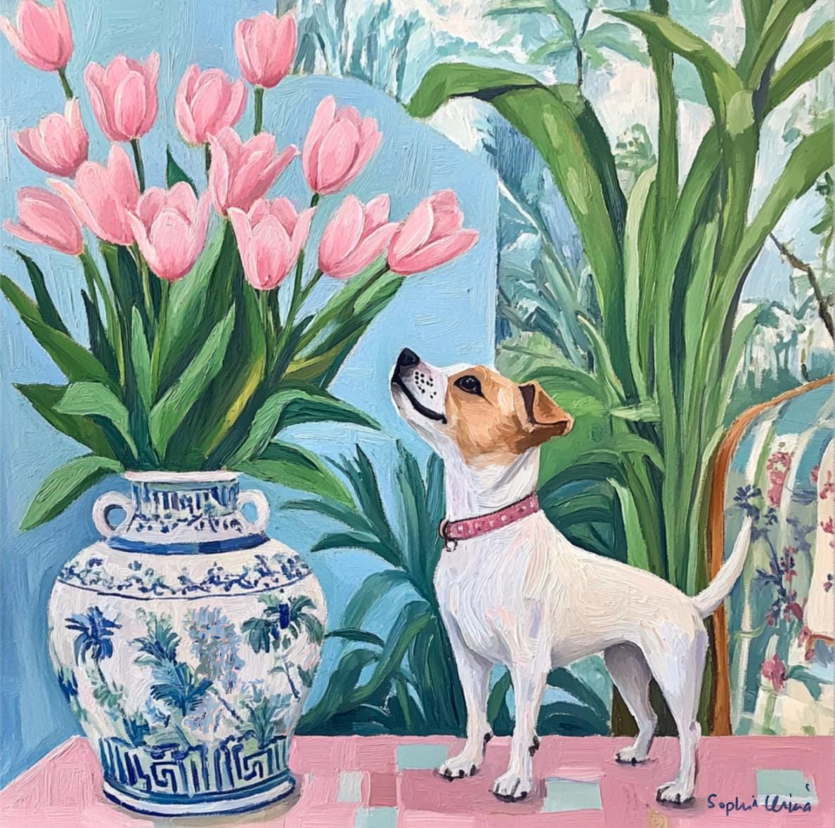 Grandmillennial art, A Pretty Bunch of Tulips, whimsical fine art