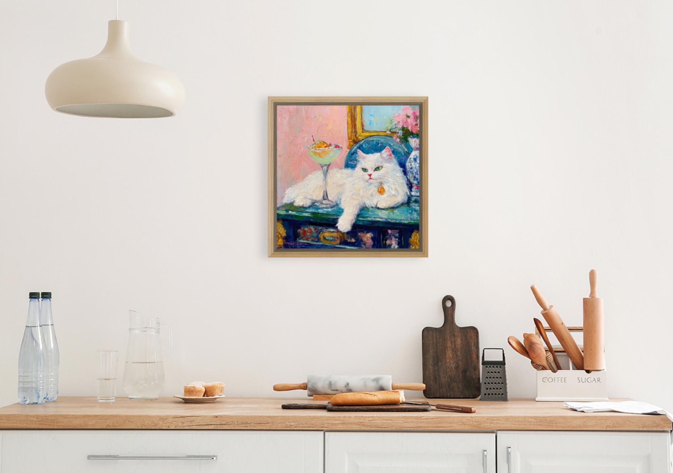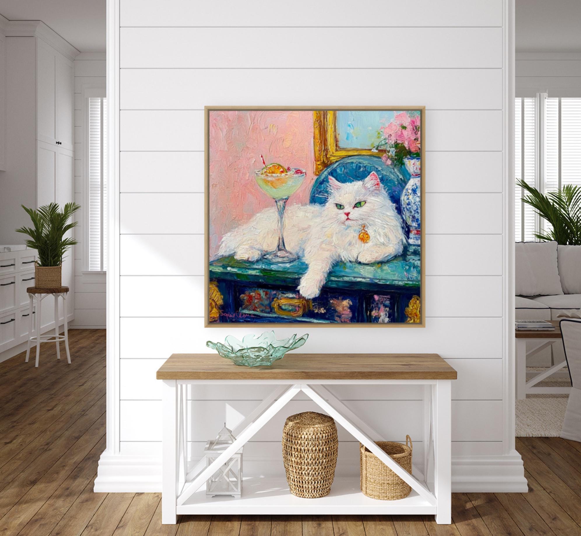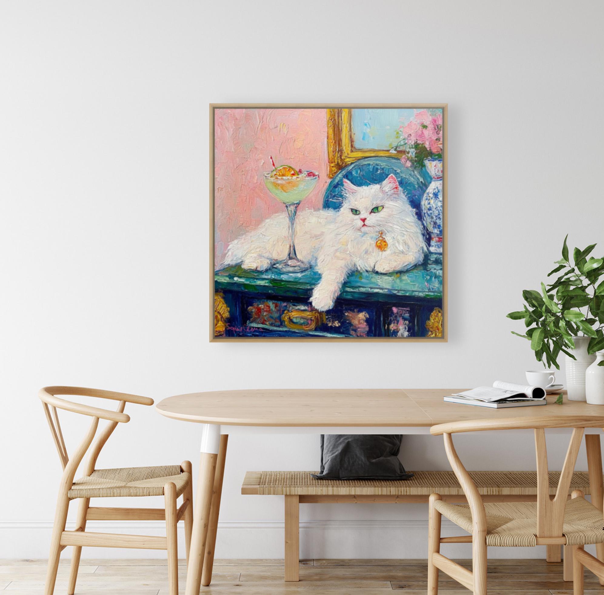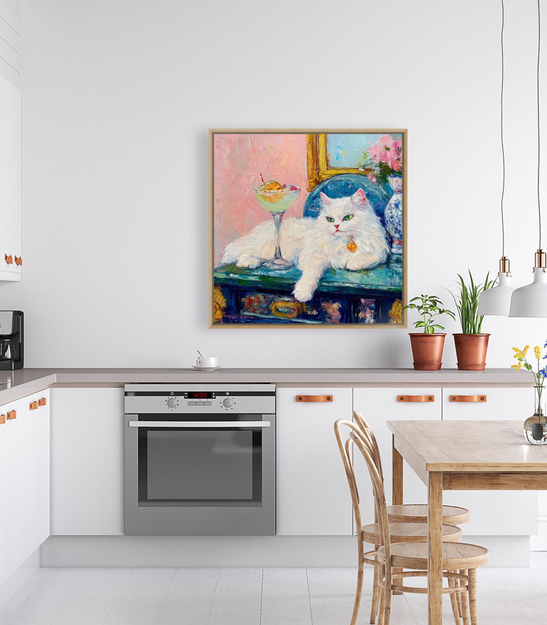 Grandmillennial art, A Glass of Catnip, whimsical cat art