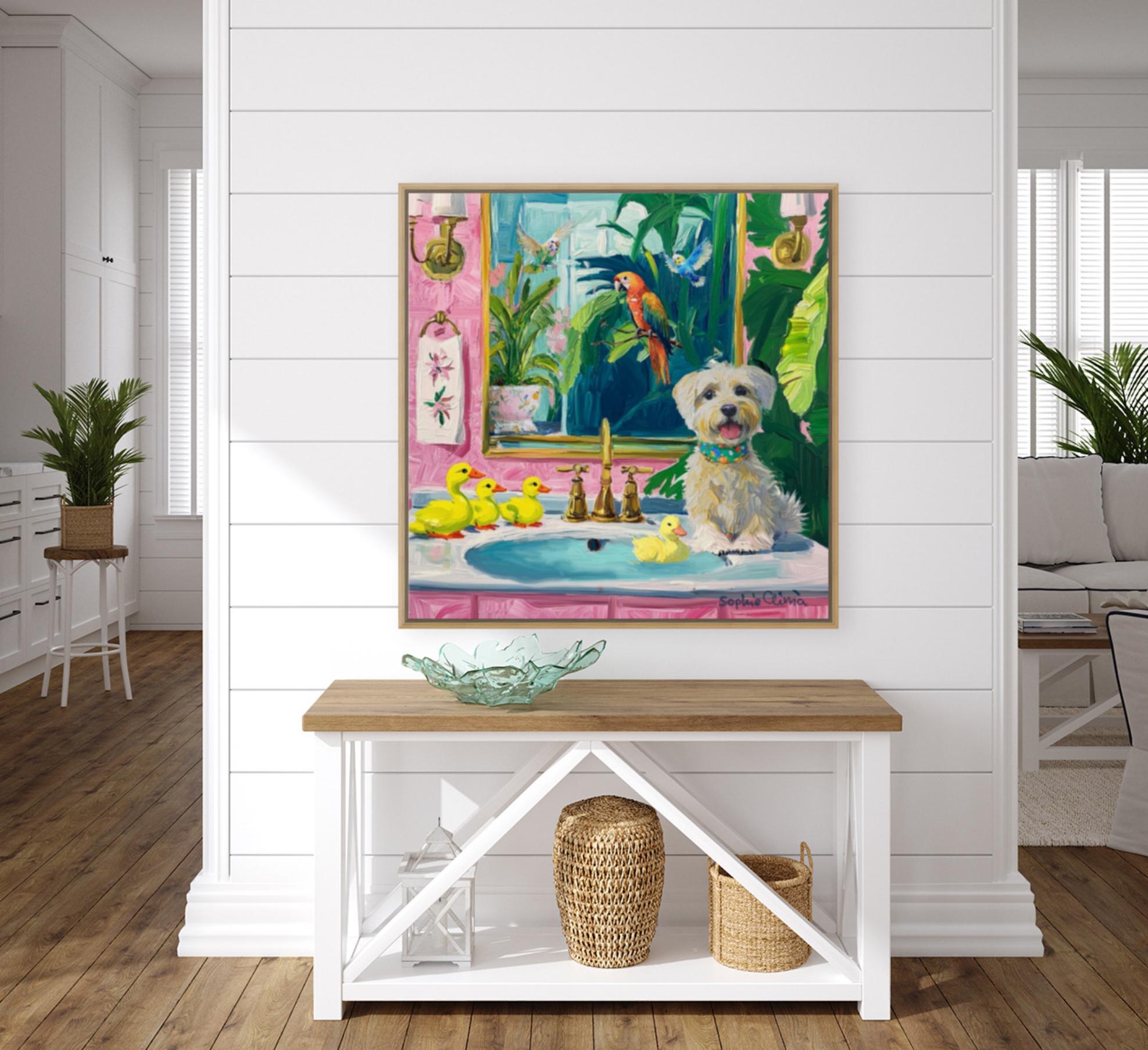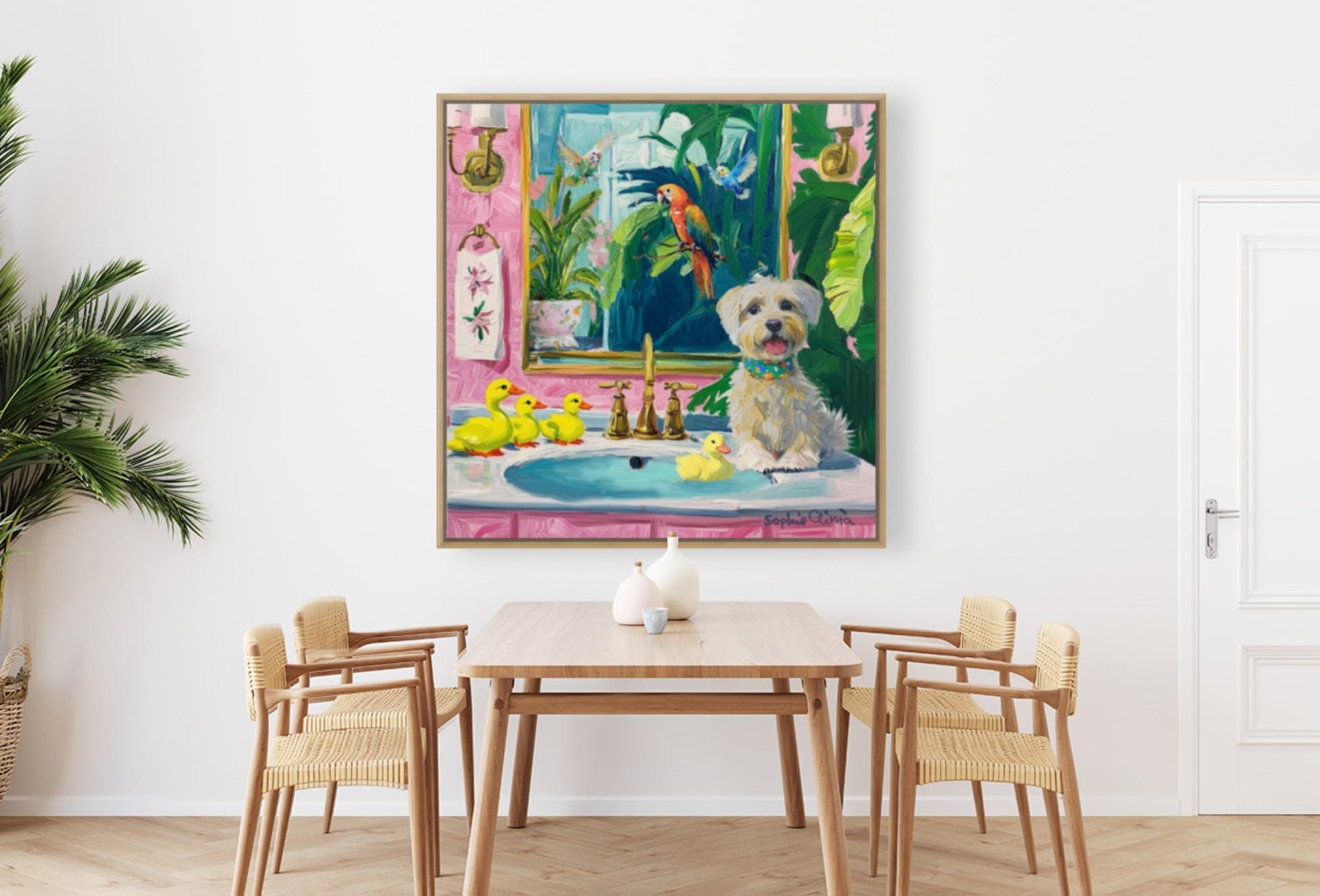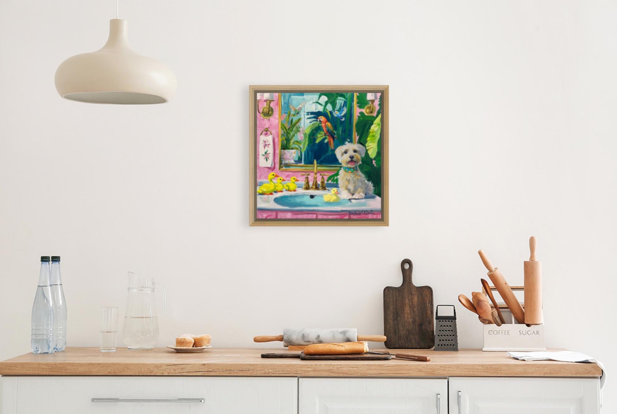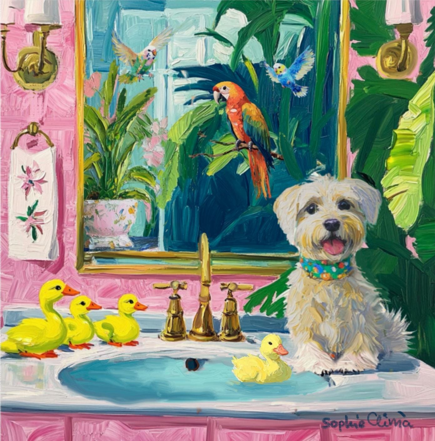 Grandmillennial art, A Baby Sitter, whimsical animals art