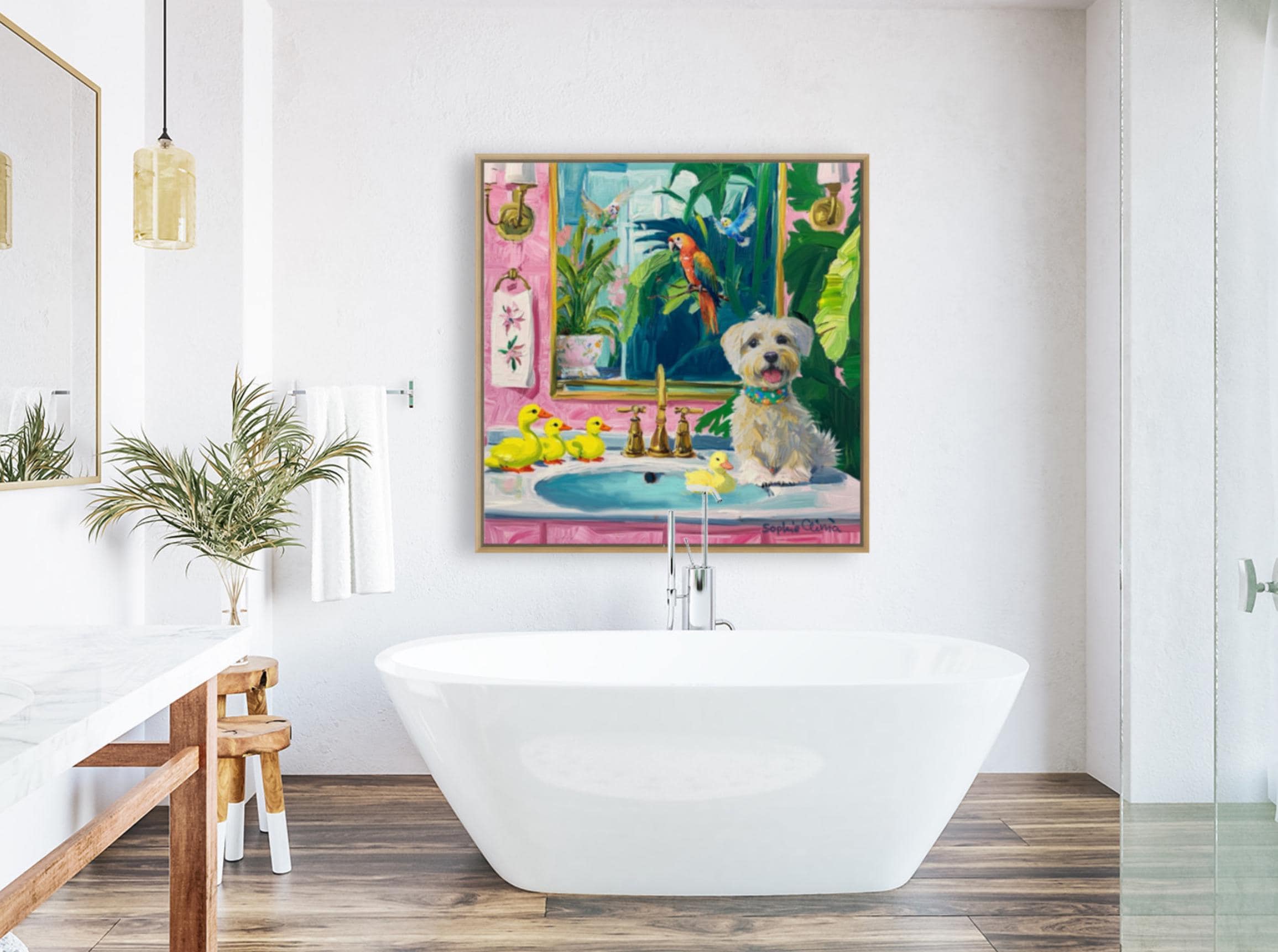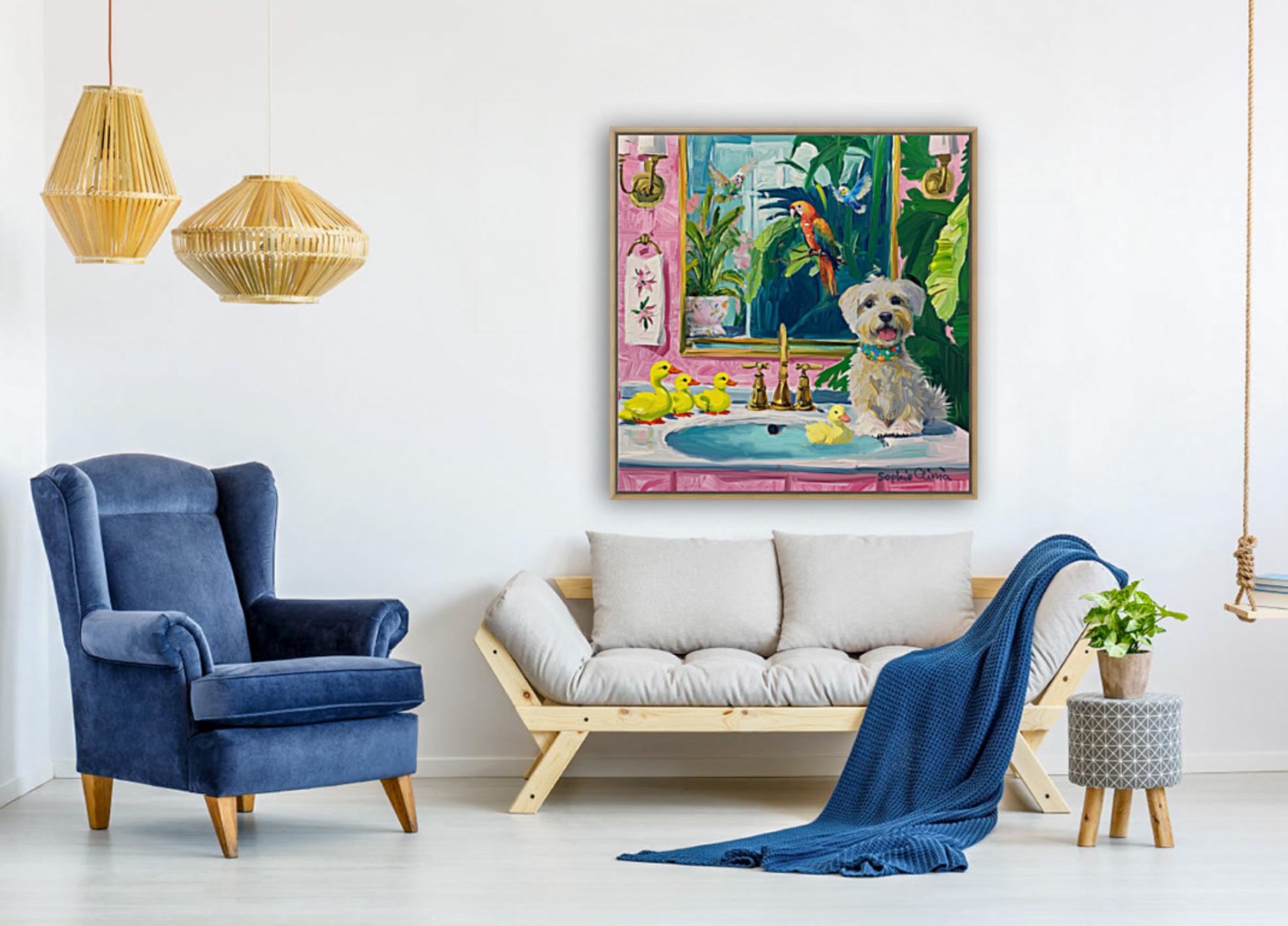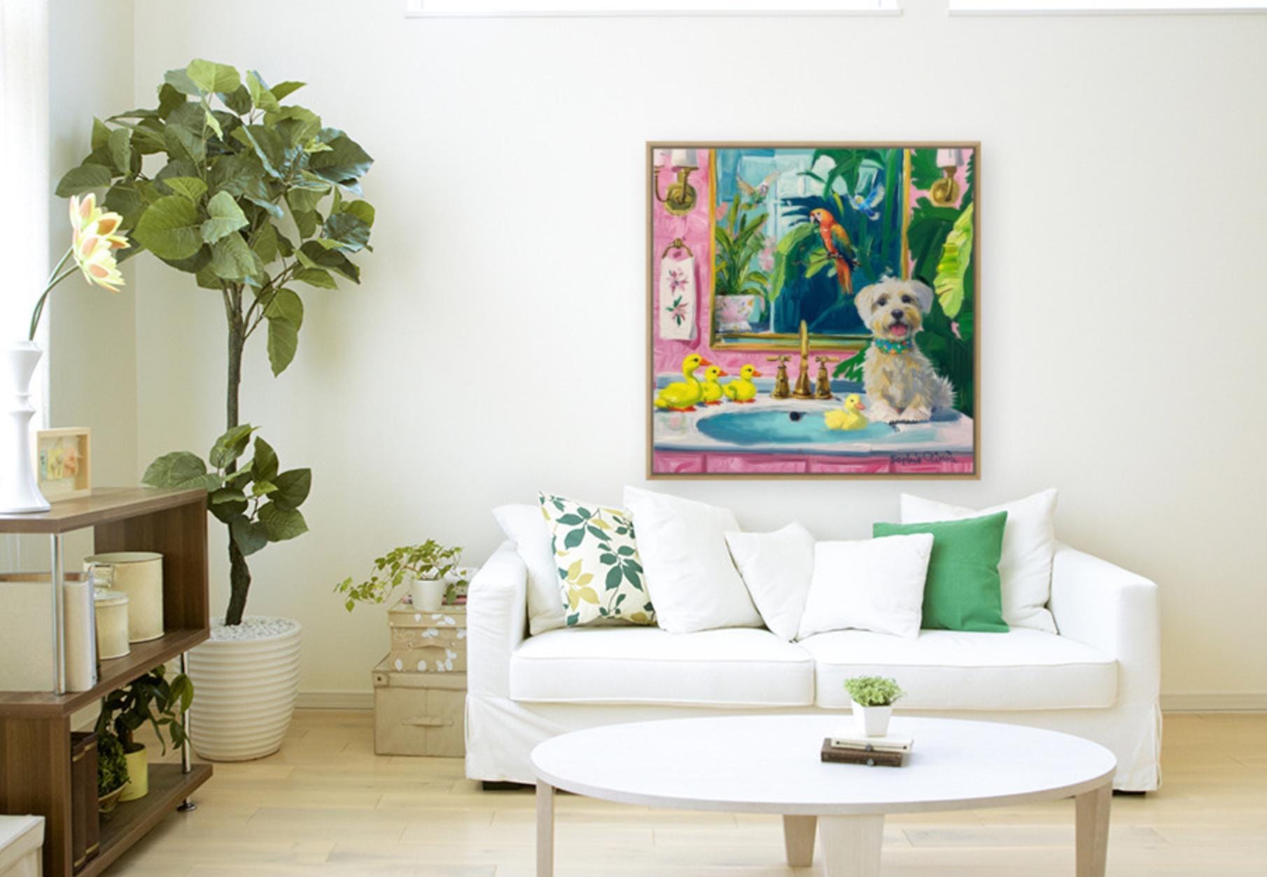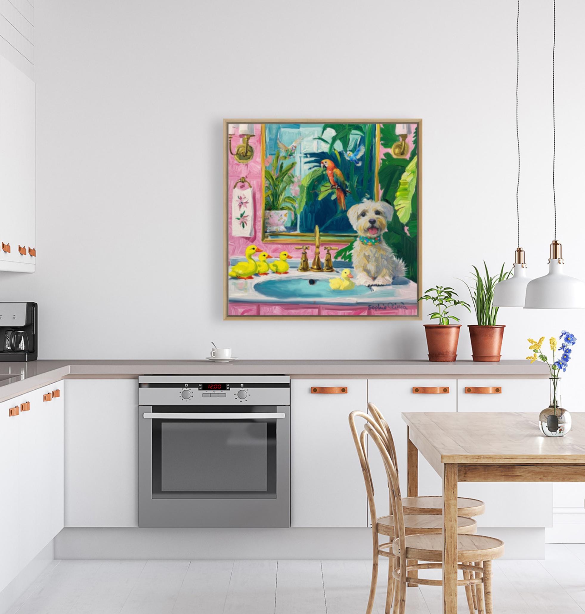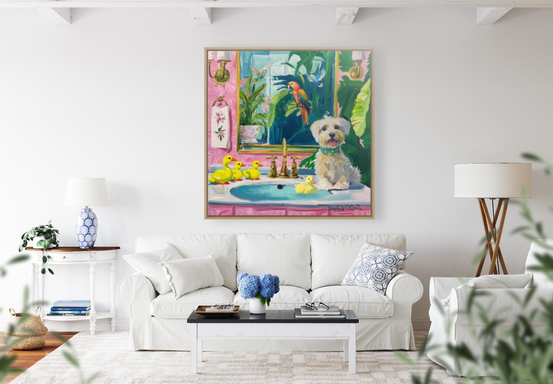 Grandmillennial art, A Baby Sitter, whimsical animals art