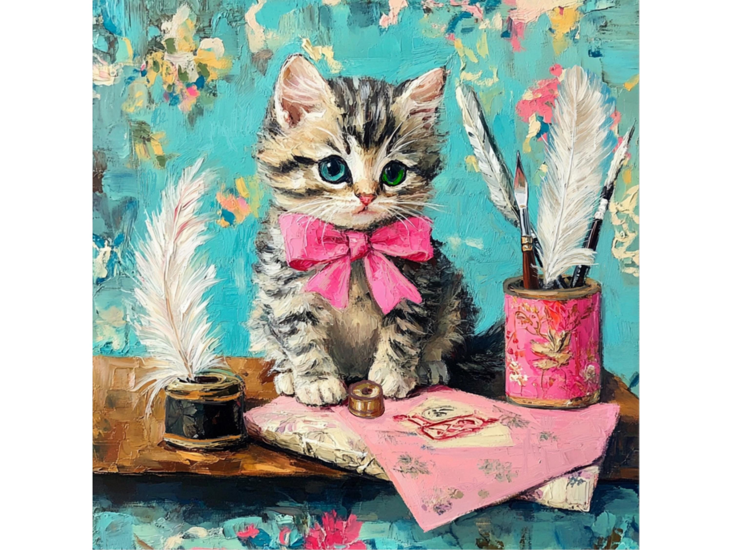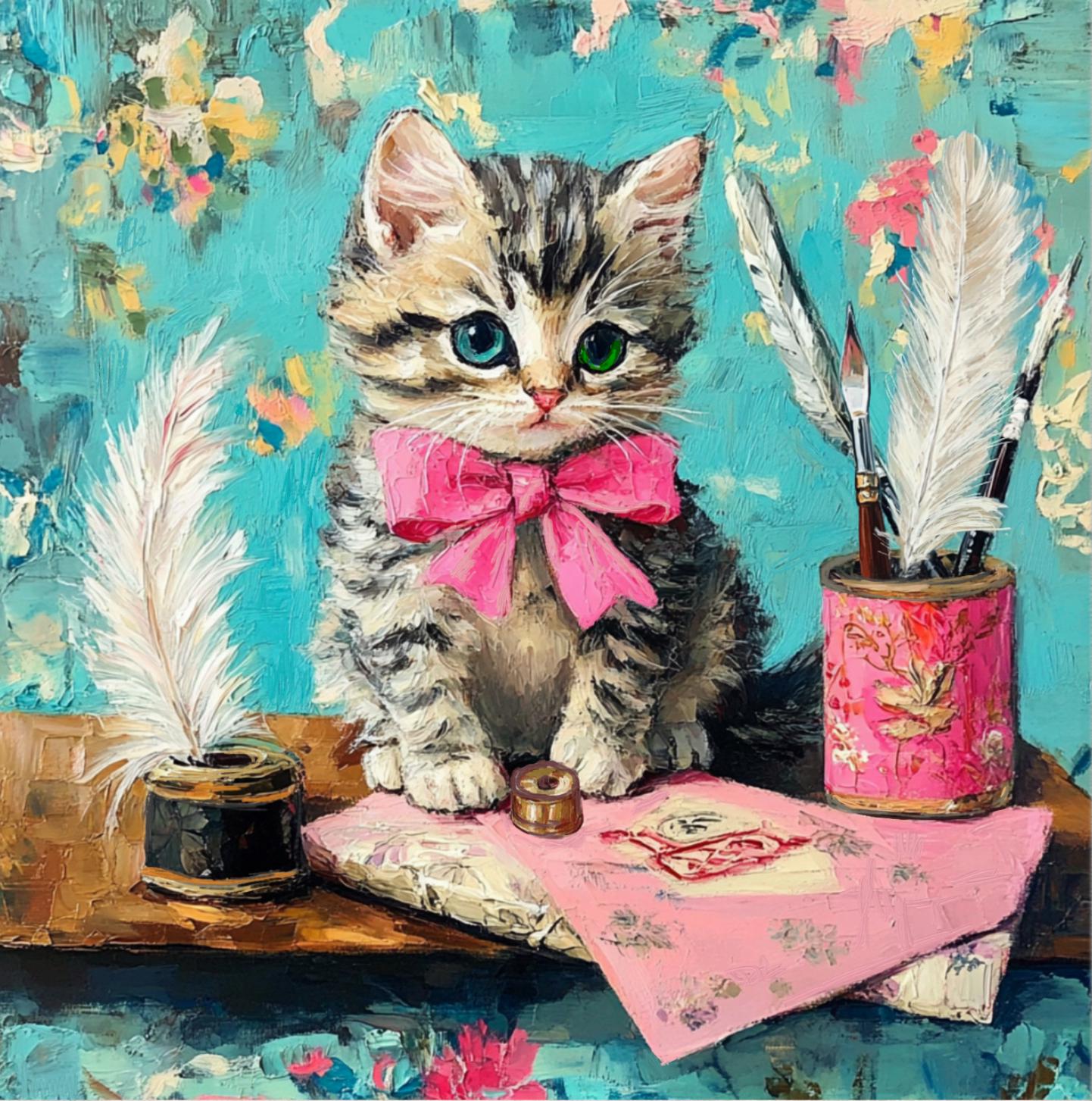 Grandmillennial art, Special Correspondent, whimsical kitten art