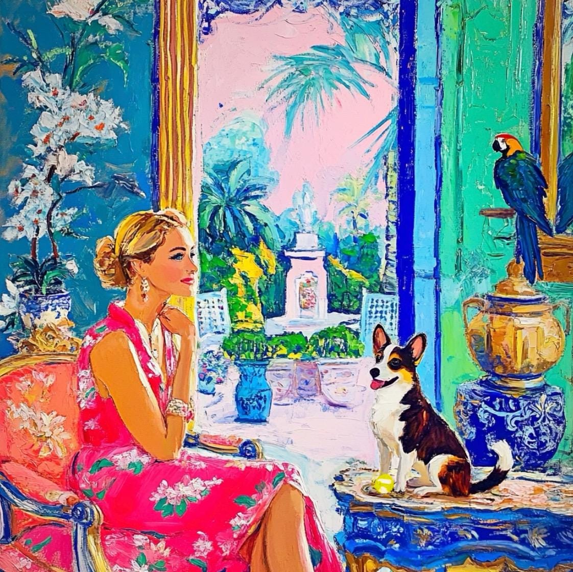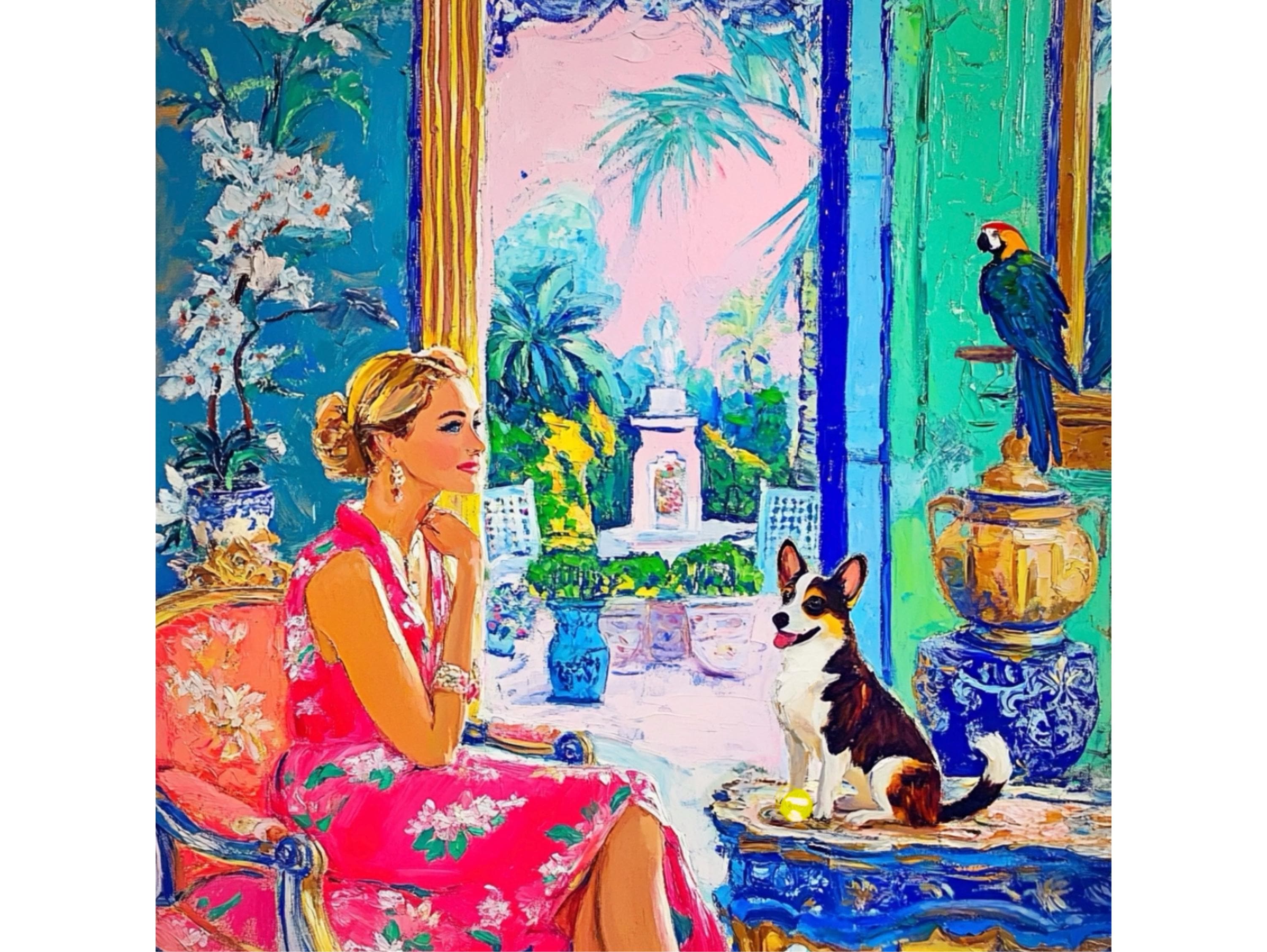 Grandmillennial art, Room with a garden view, whimsical fine art