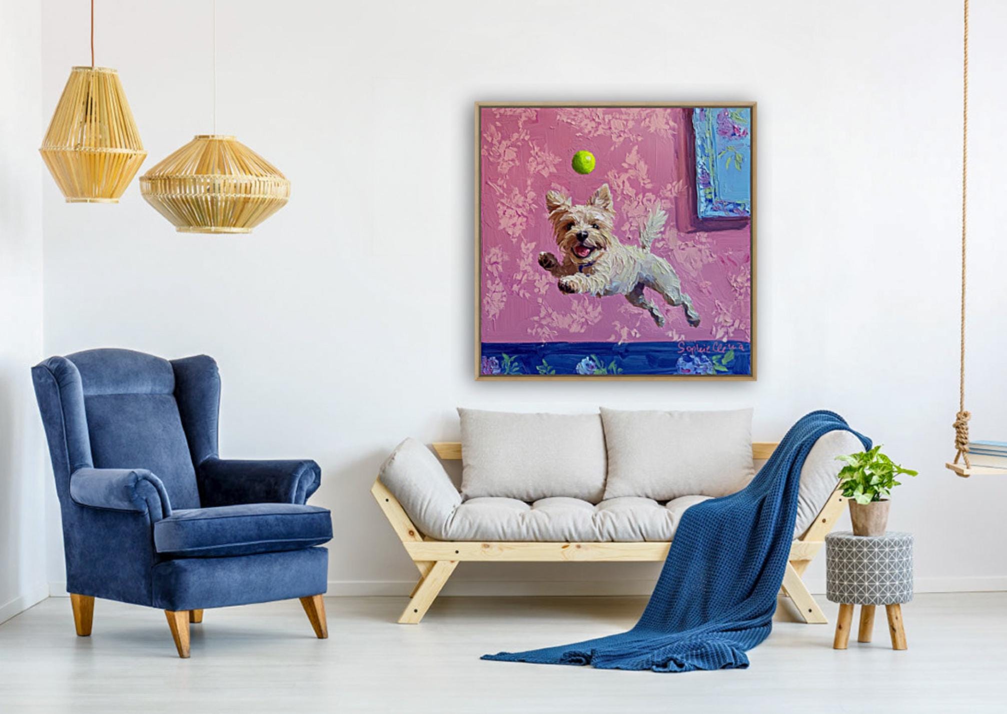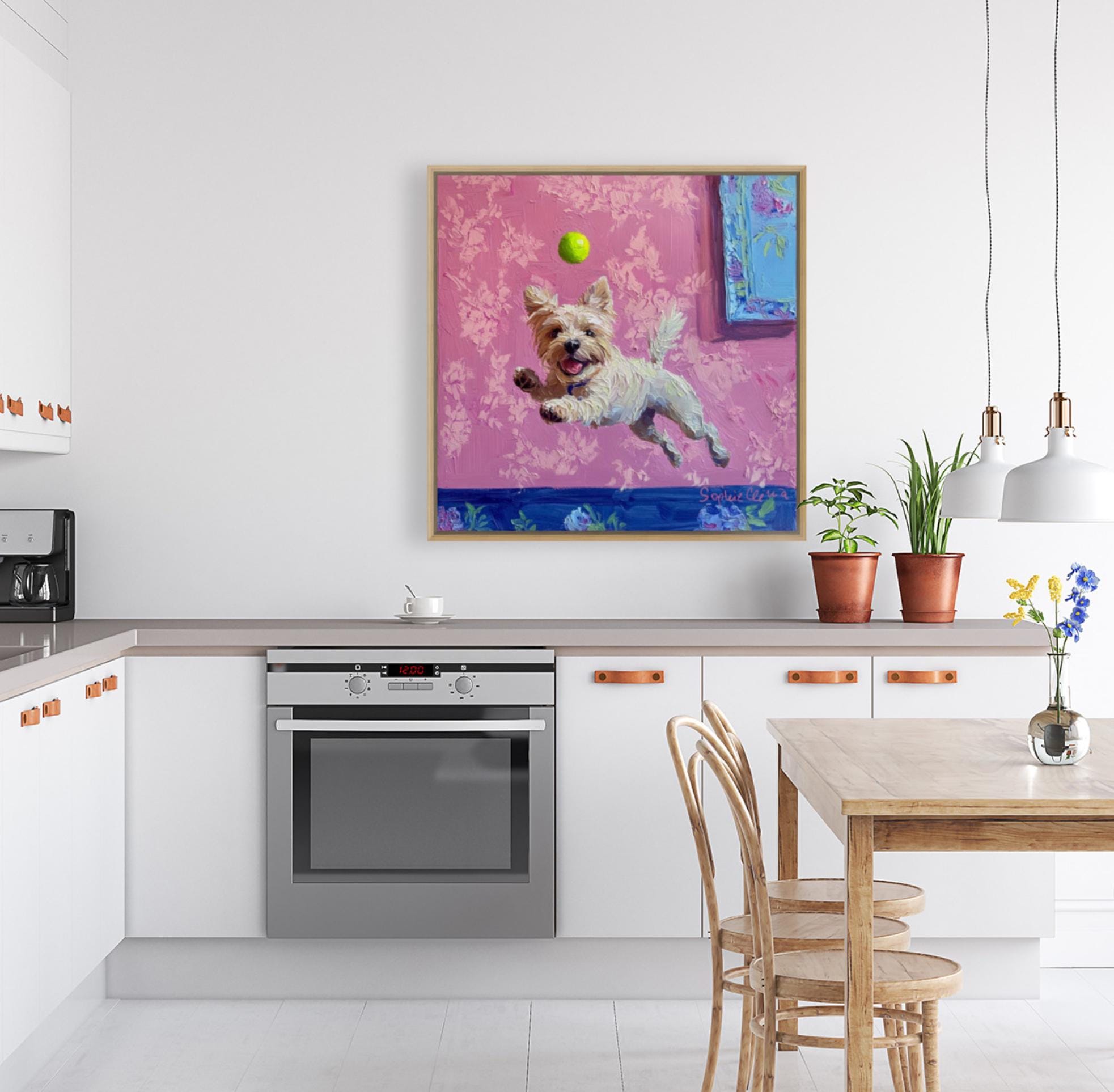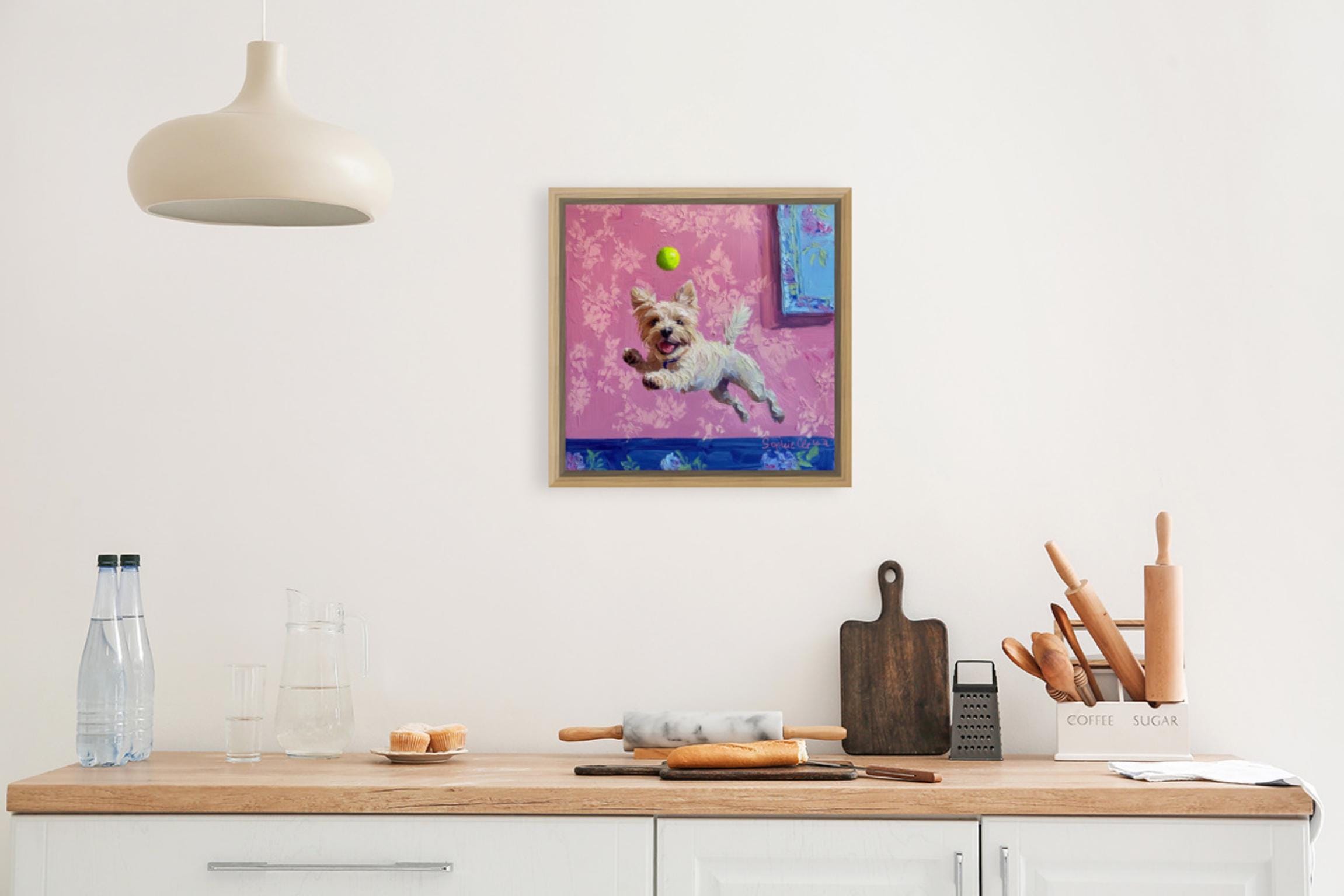 Grandmillennial art, A Goalkeeper, whimsical dogs art
