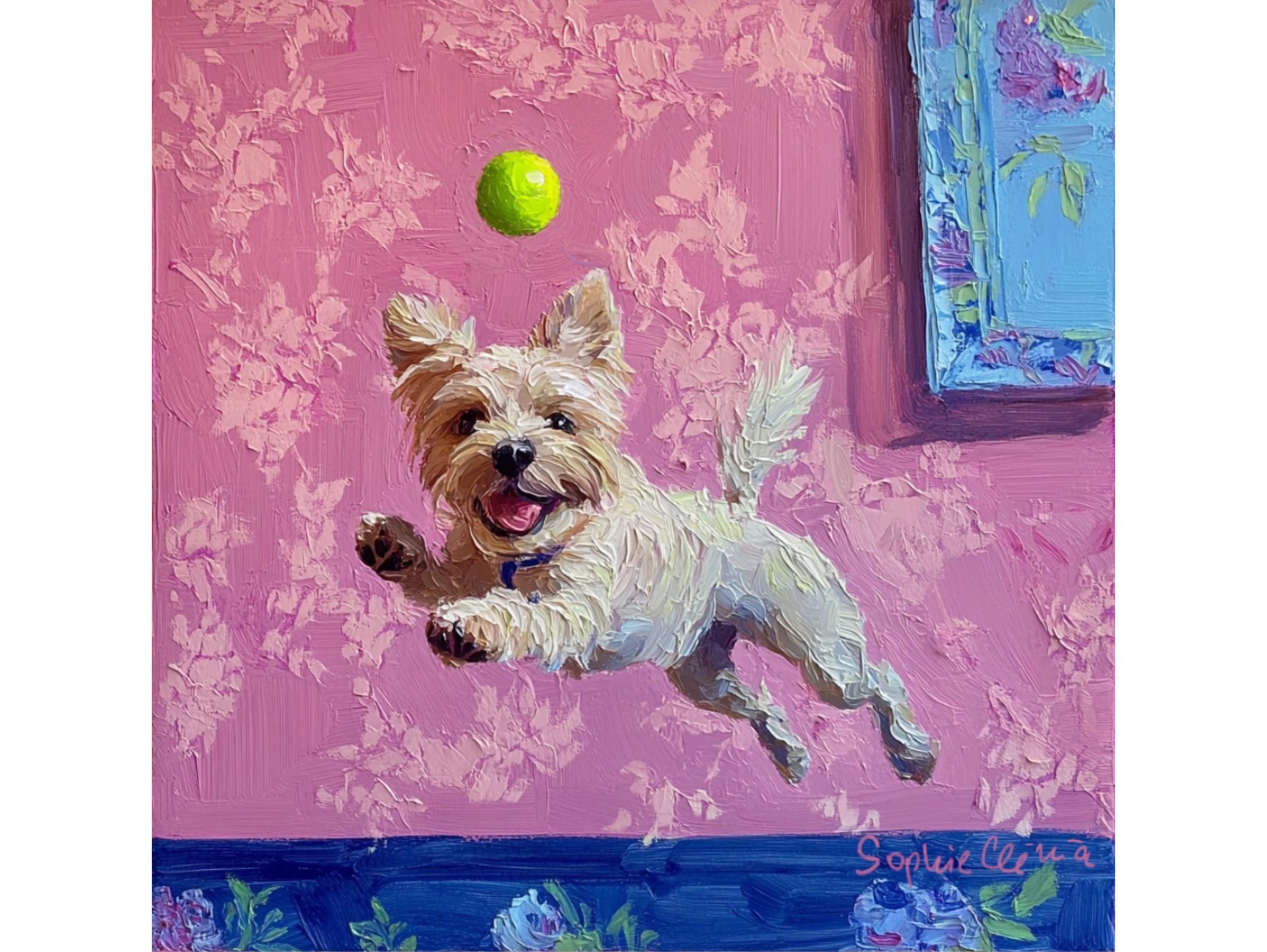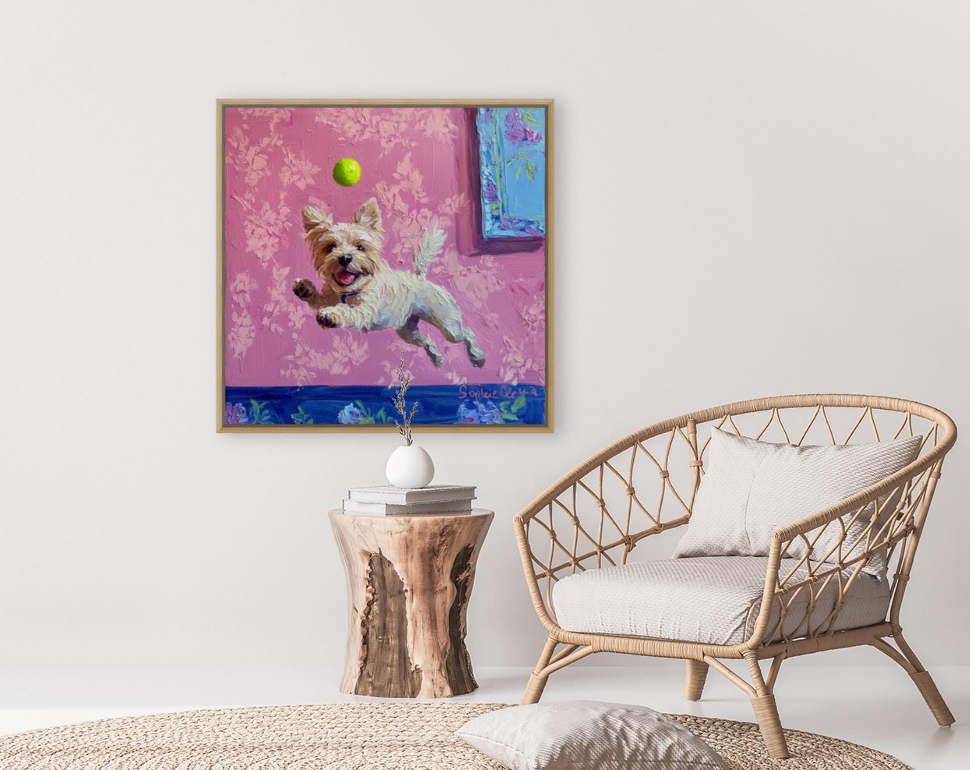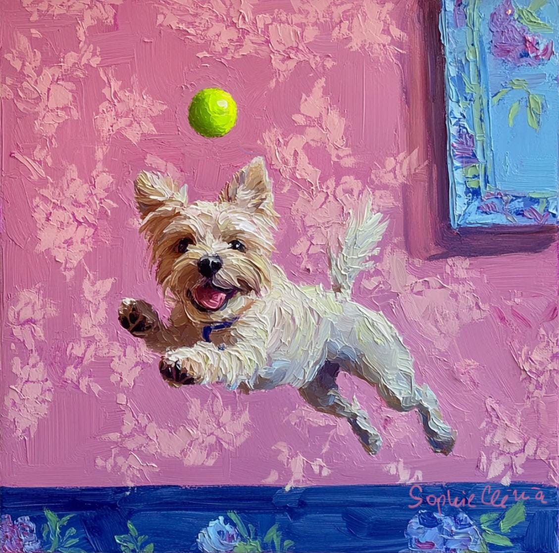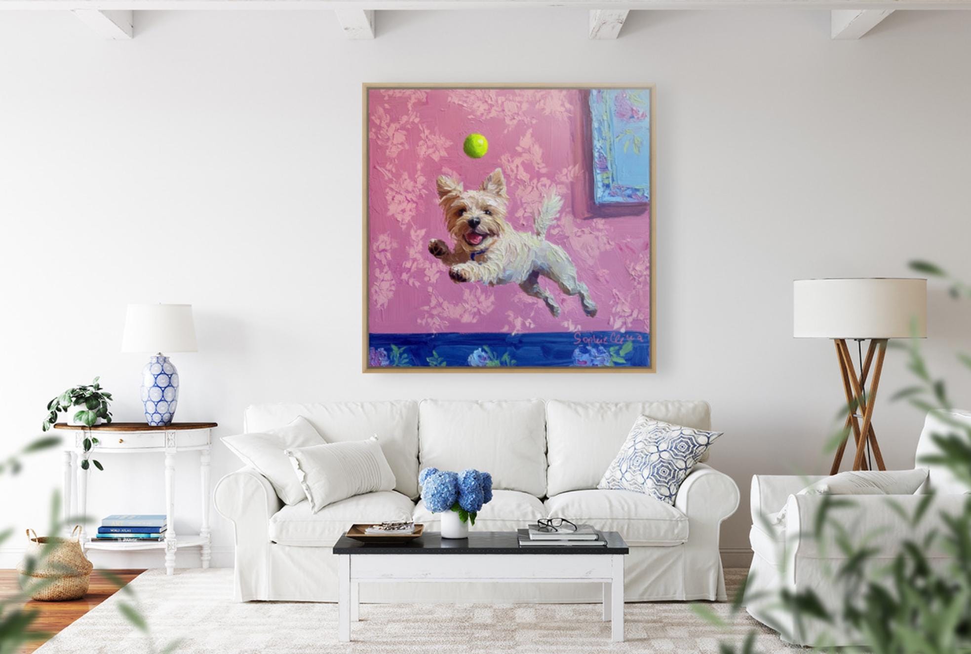 Grandmillennial art, A Goalkeeper, whimsical dogs art