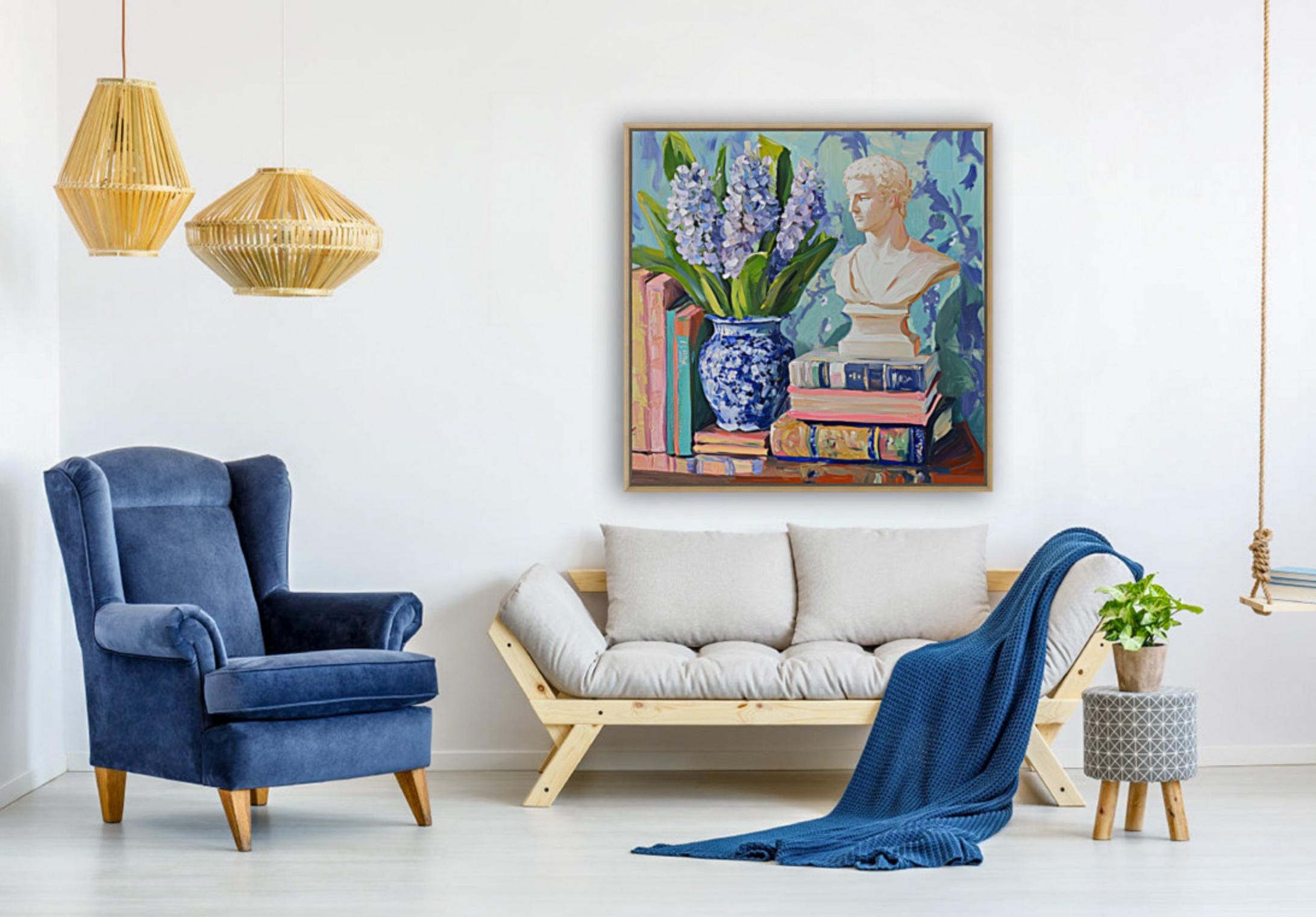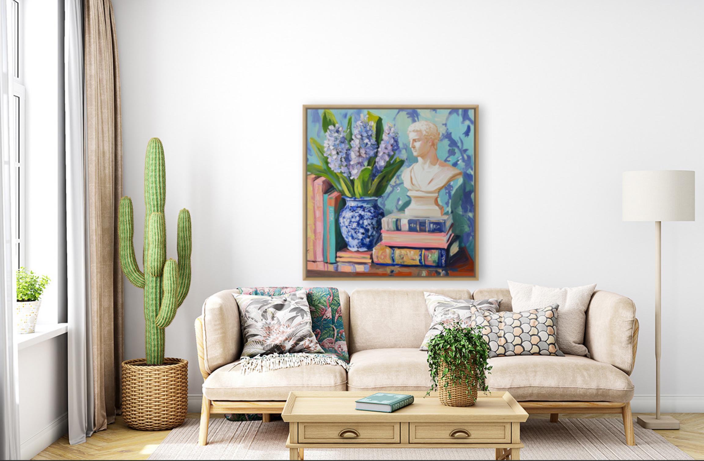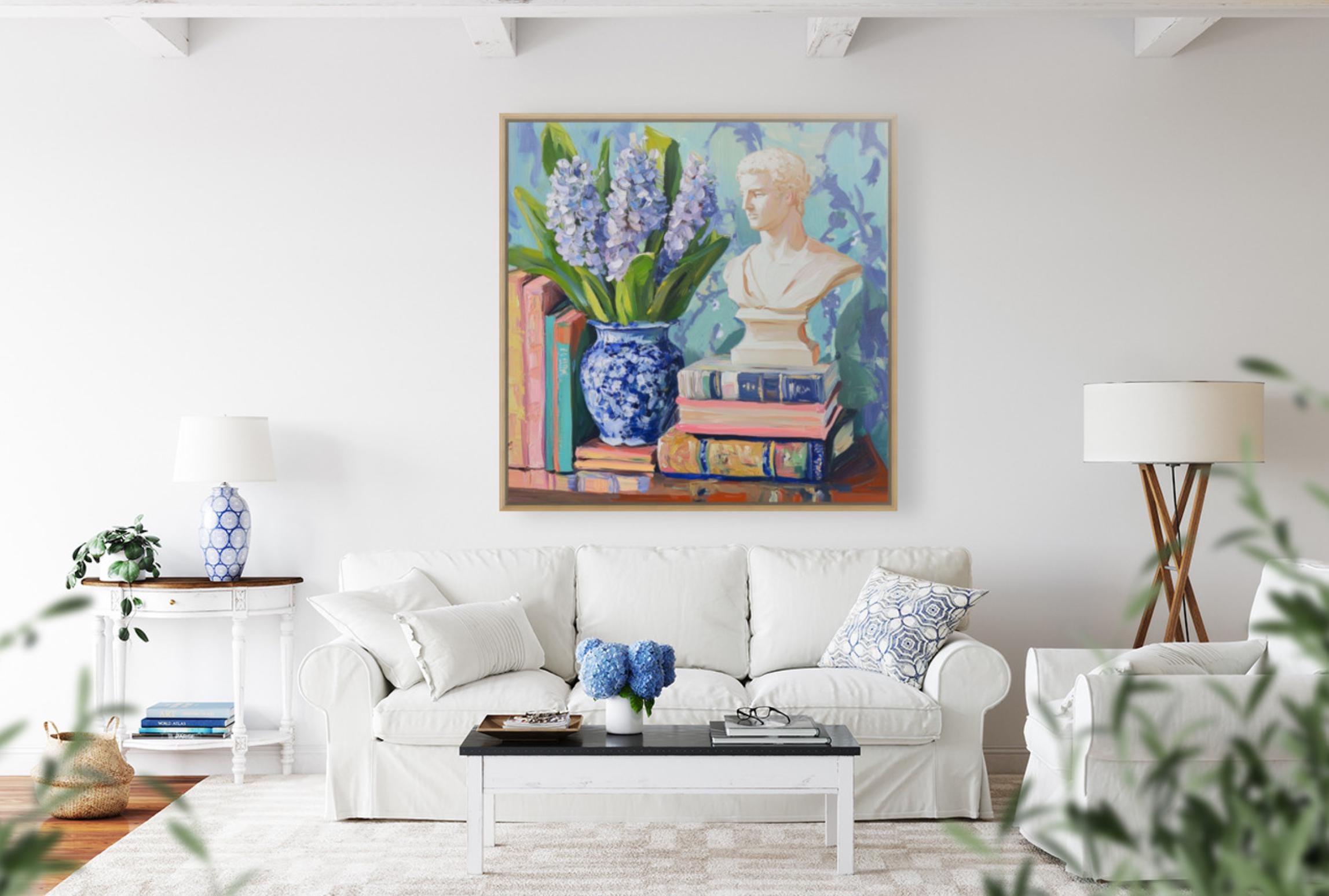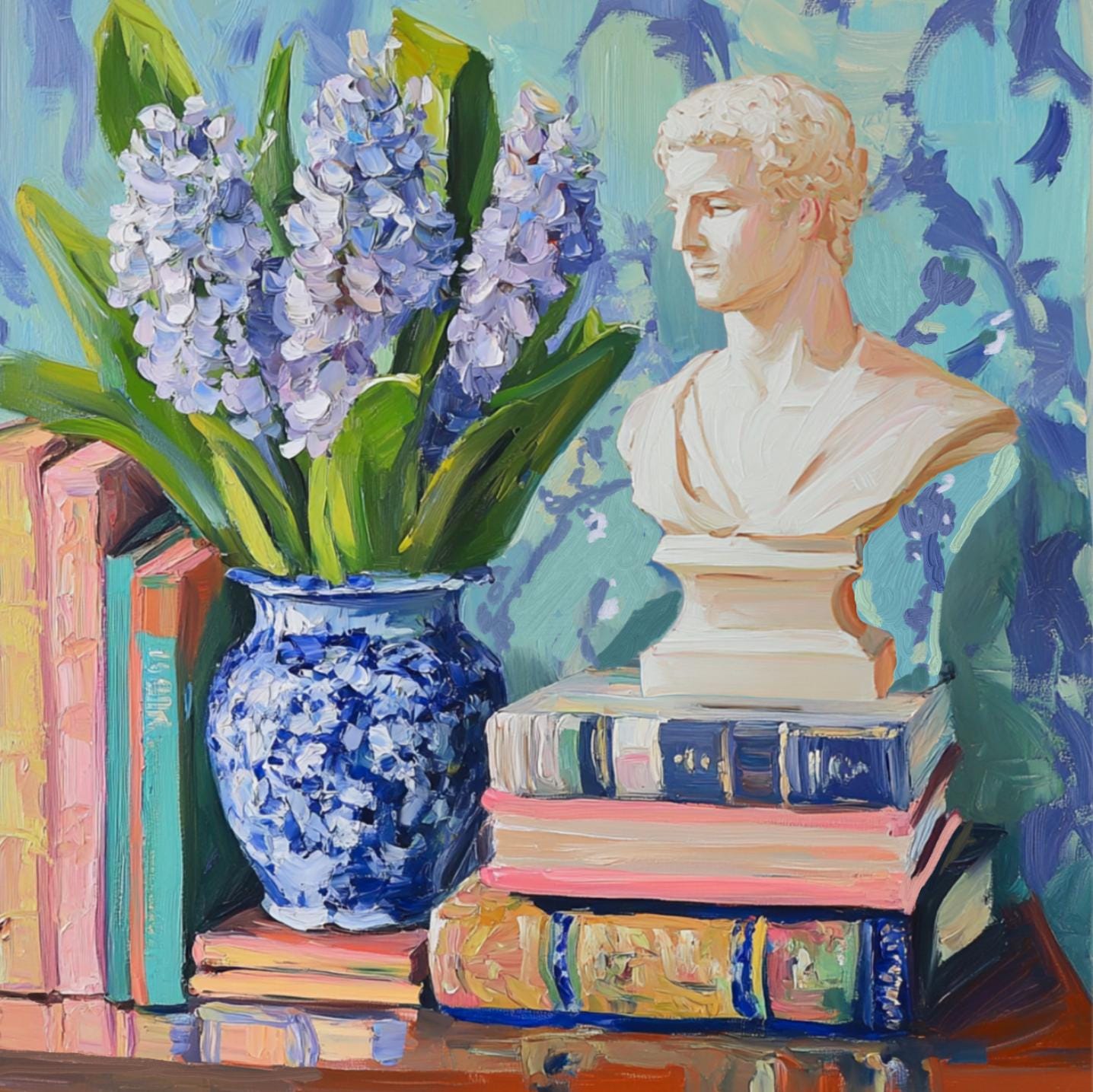 Grandmillennial art, Still Life with Hyacinths in Ginger Jar, fine art print