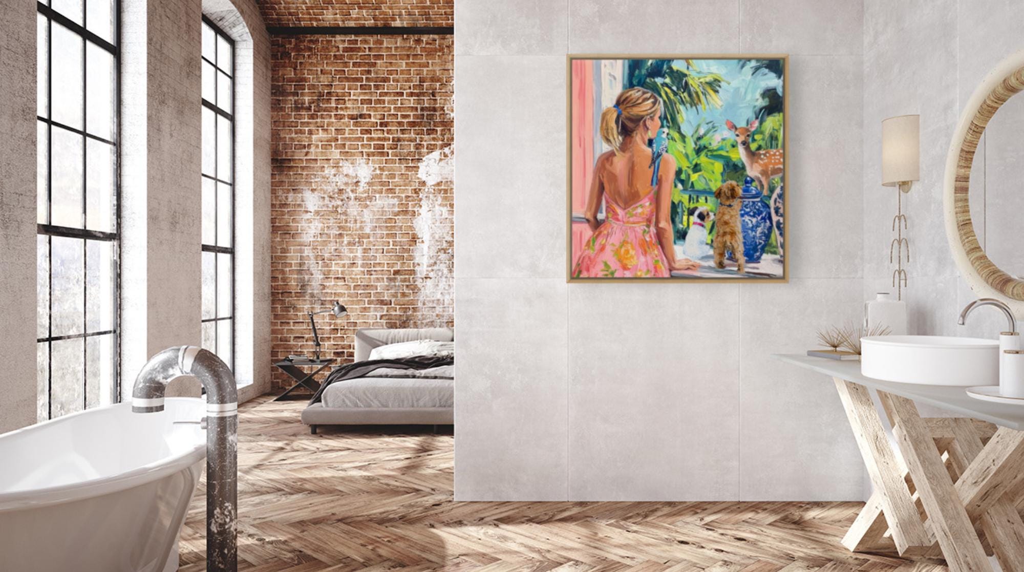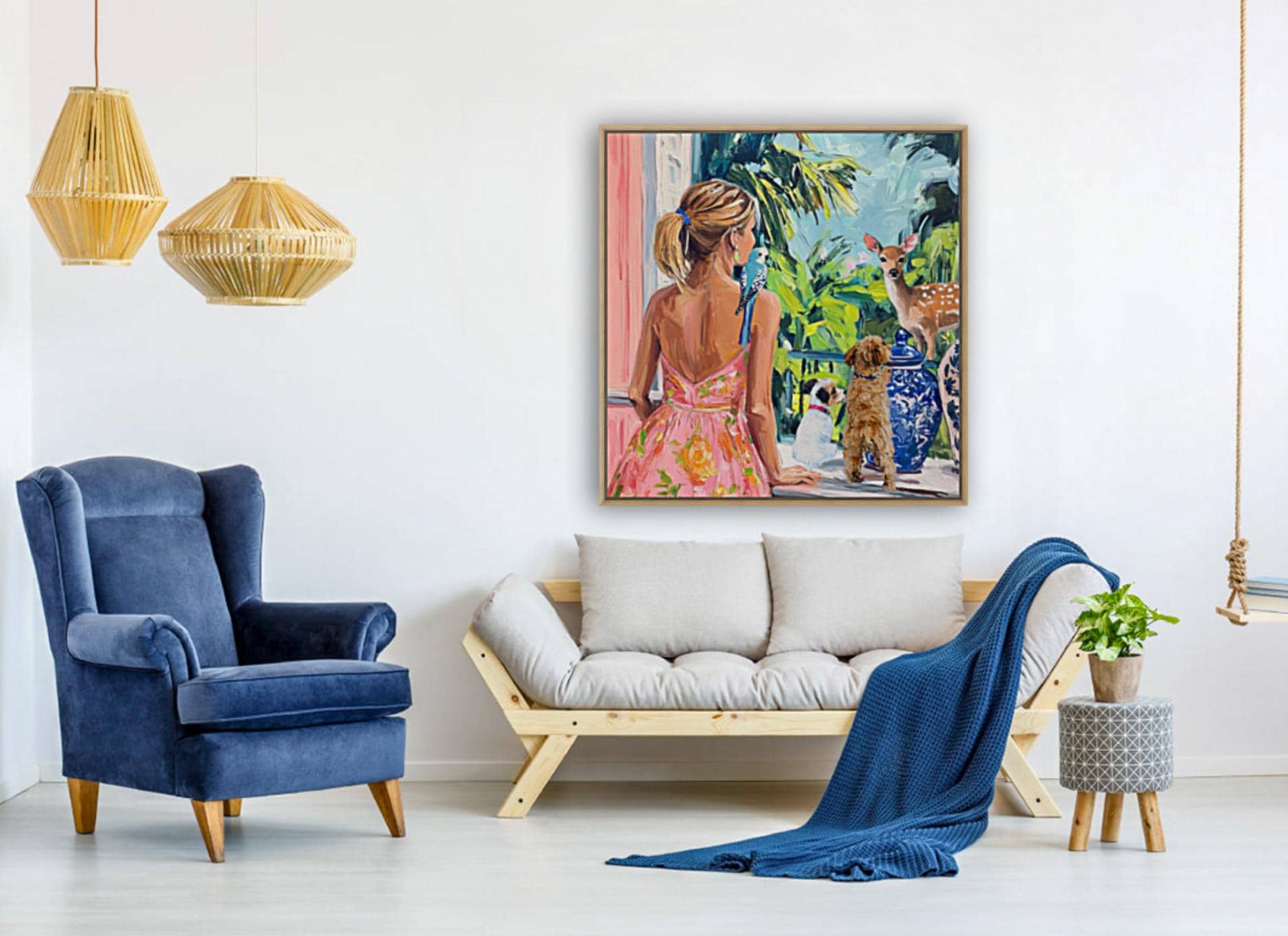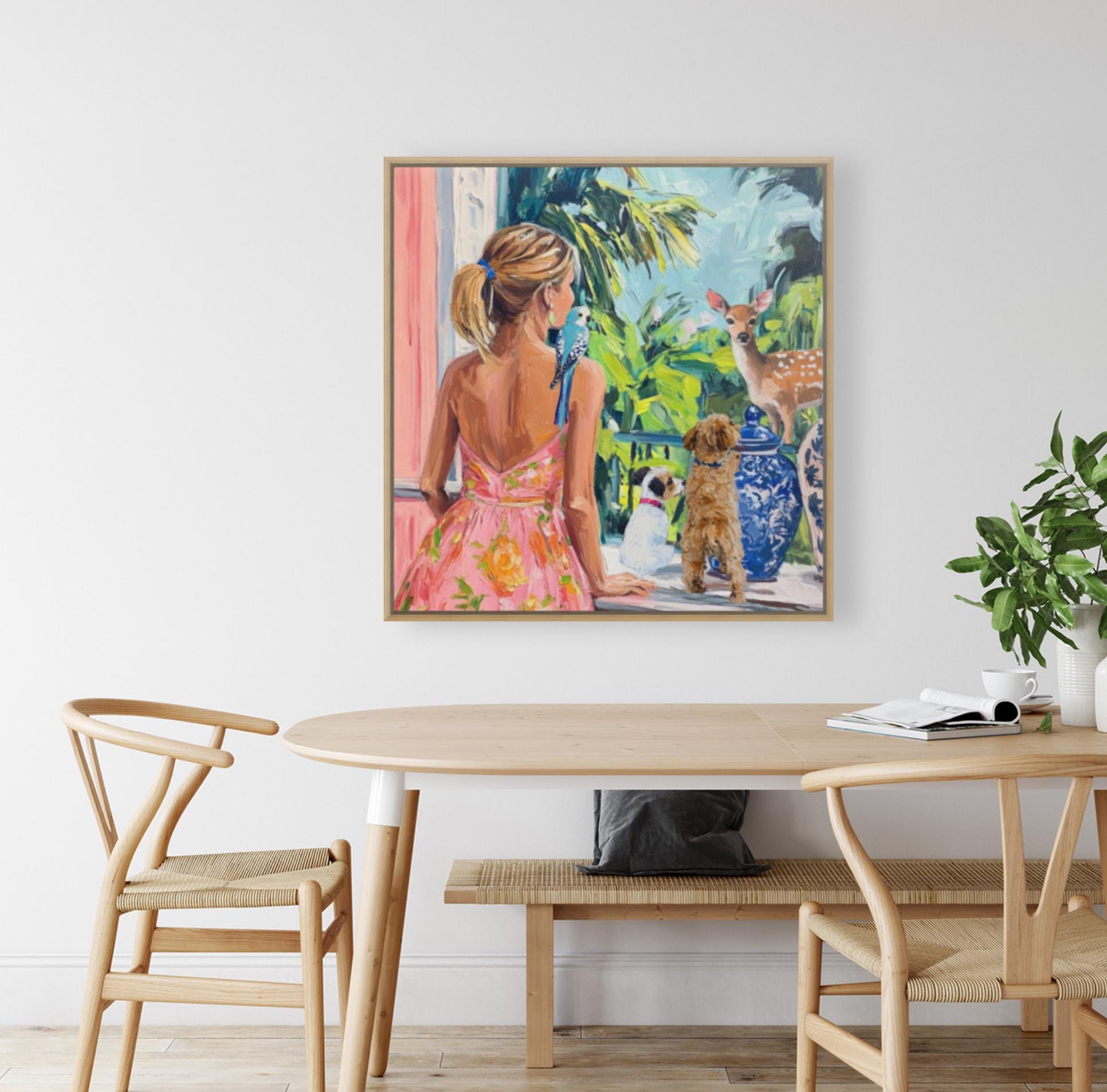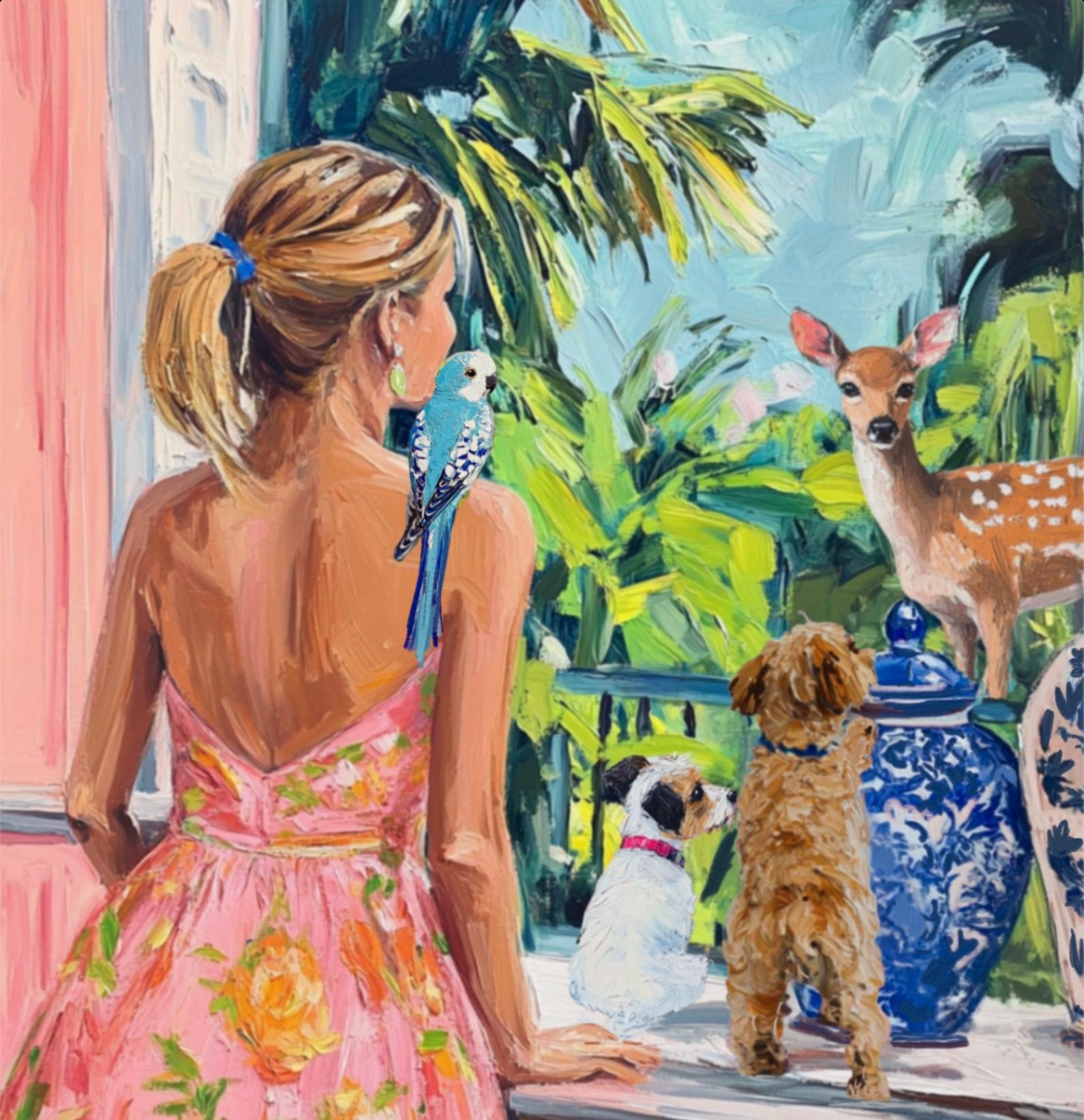 Grandmillennial art, A Visitor, oil painting