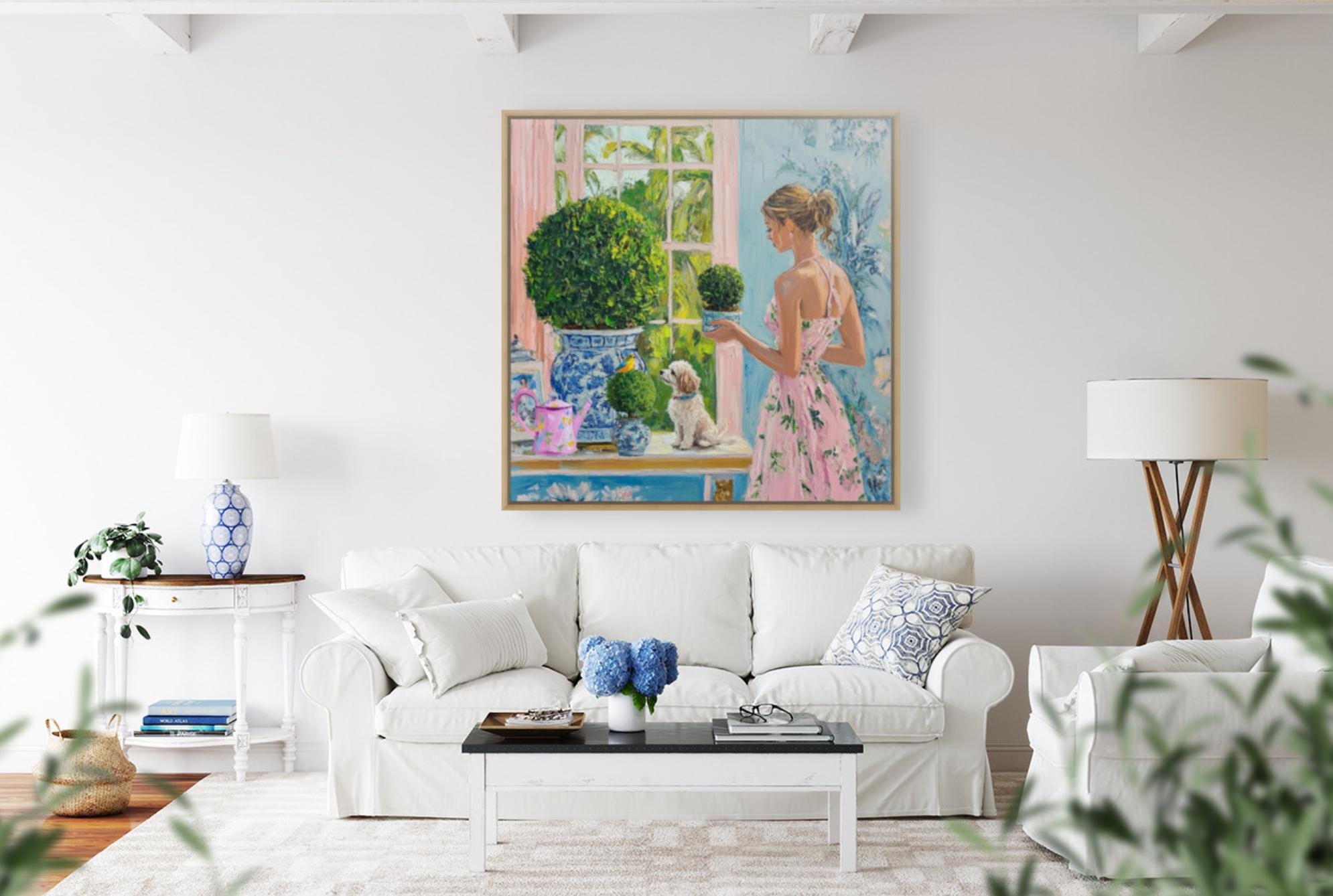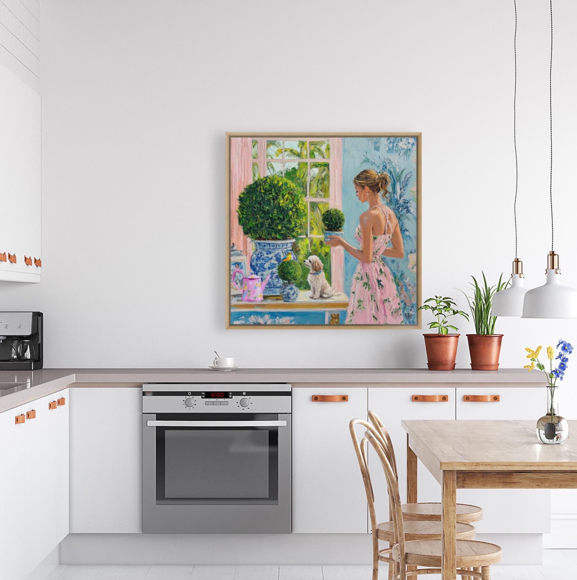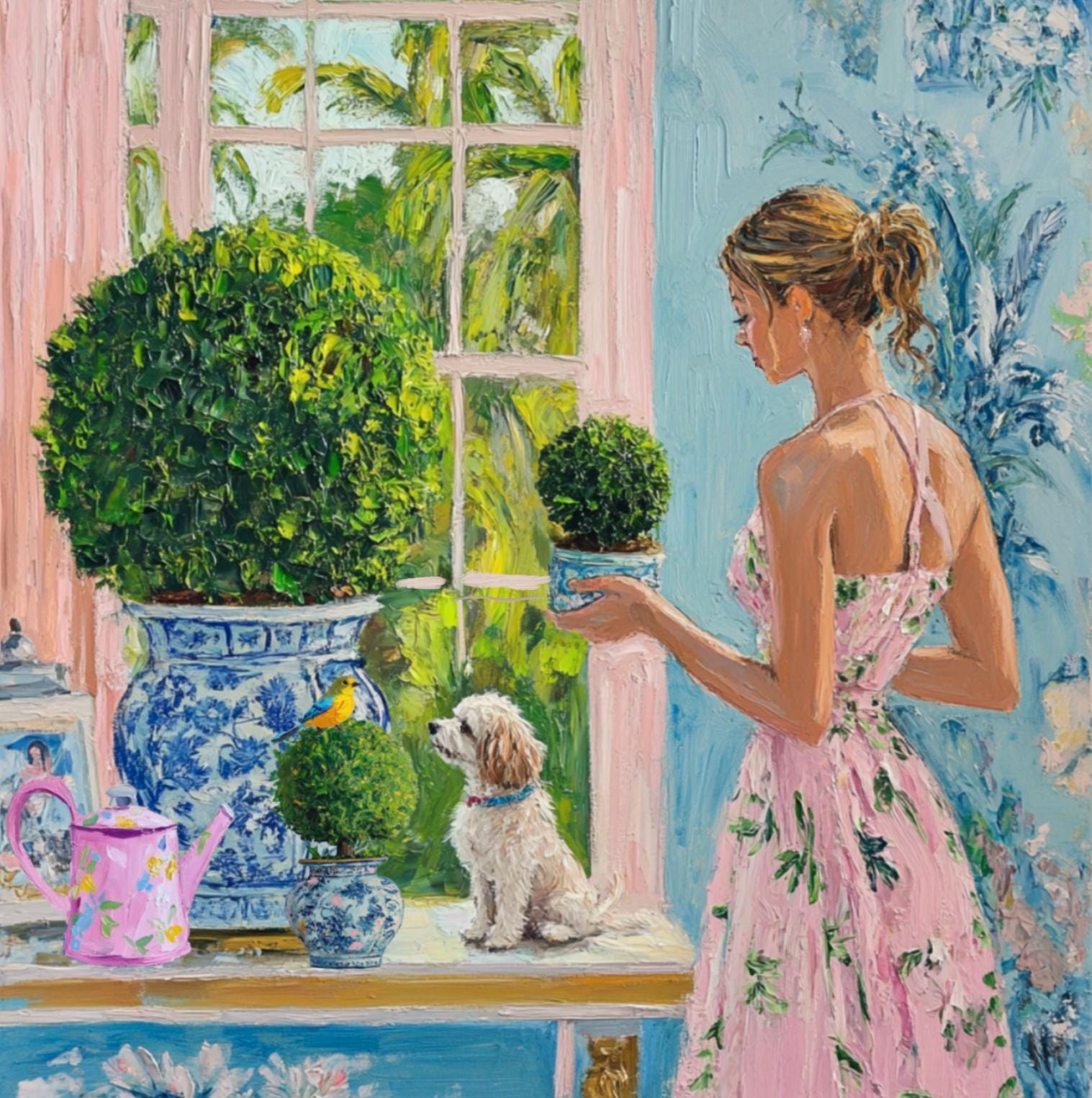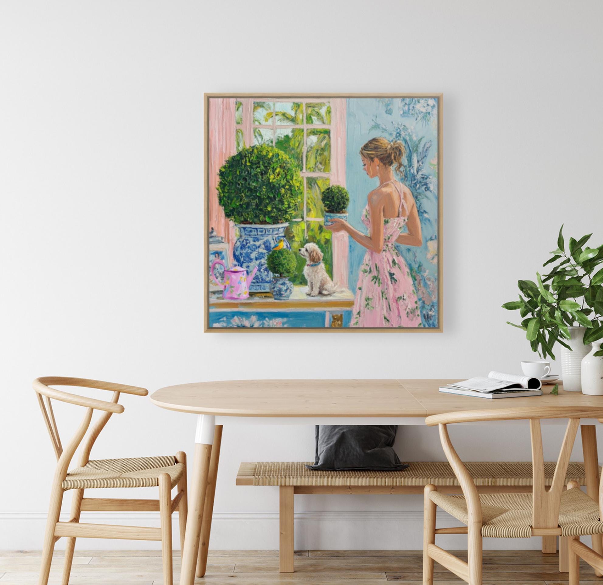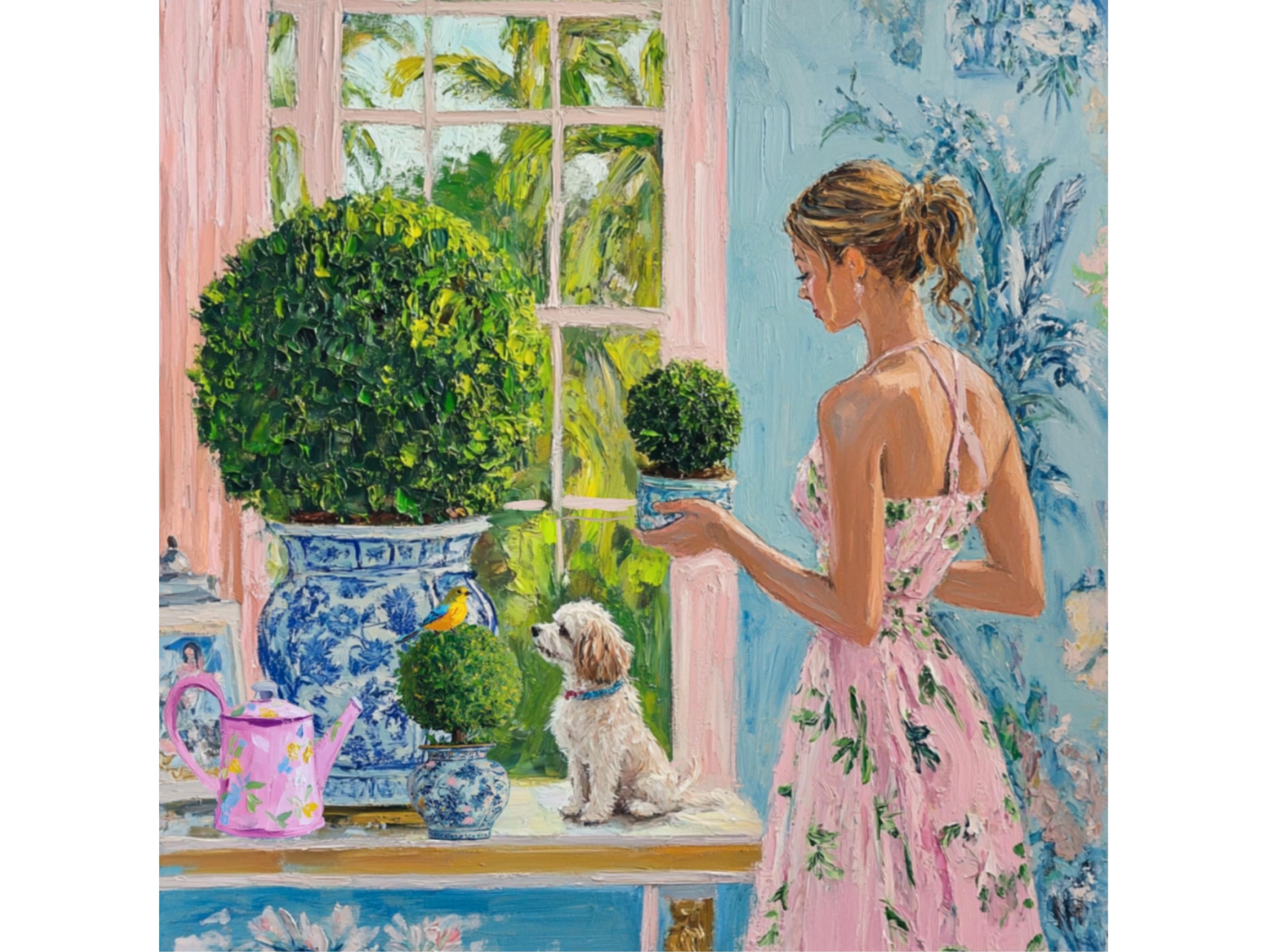 Grandmillennial art, In the winter garden, whimsical fine art