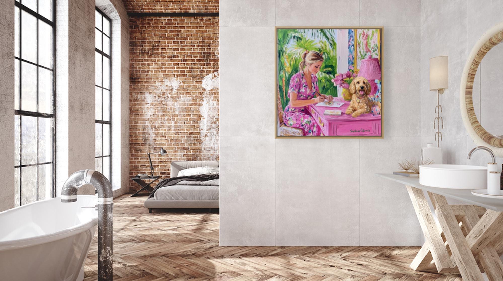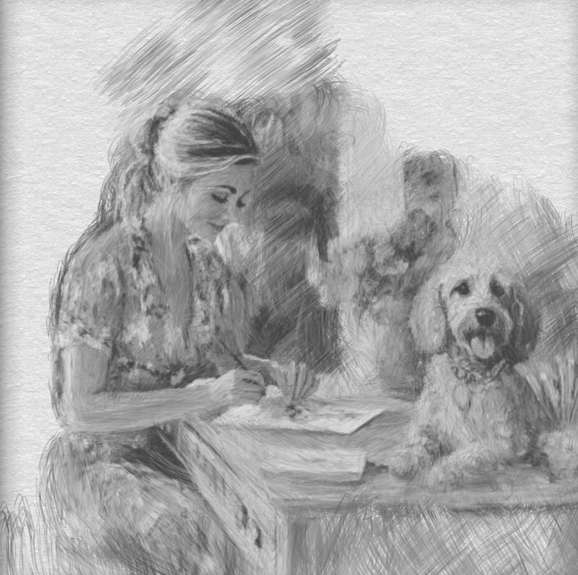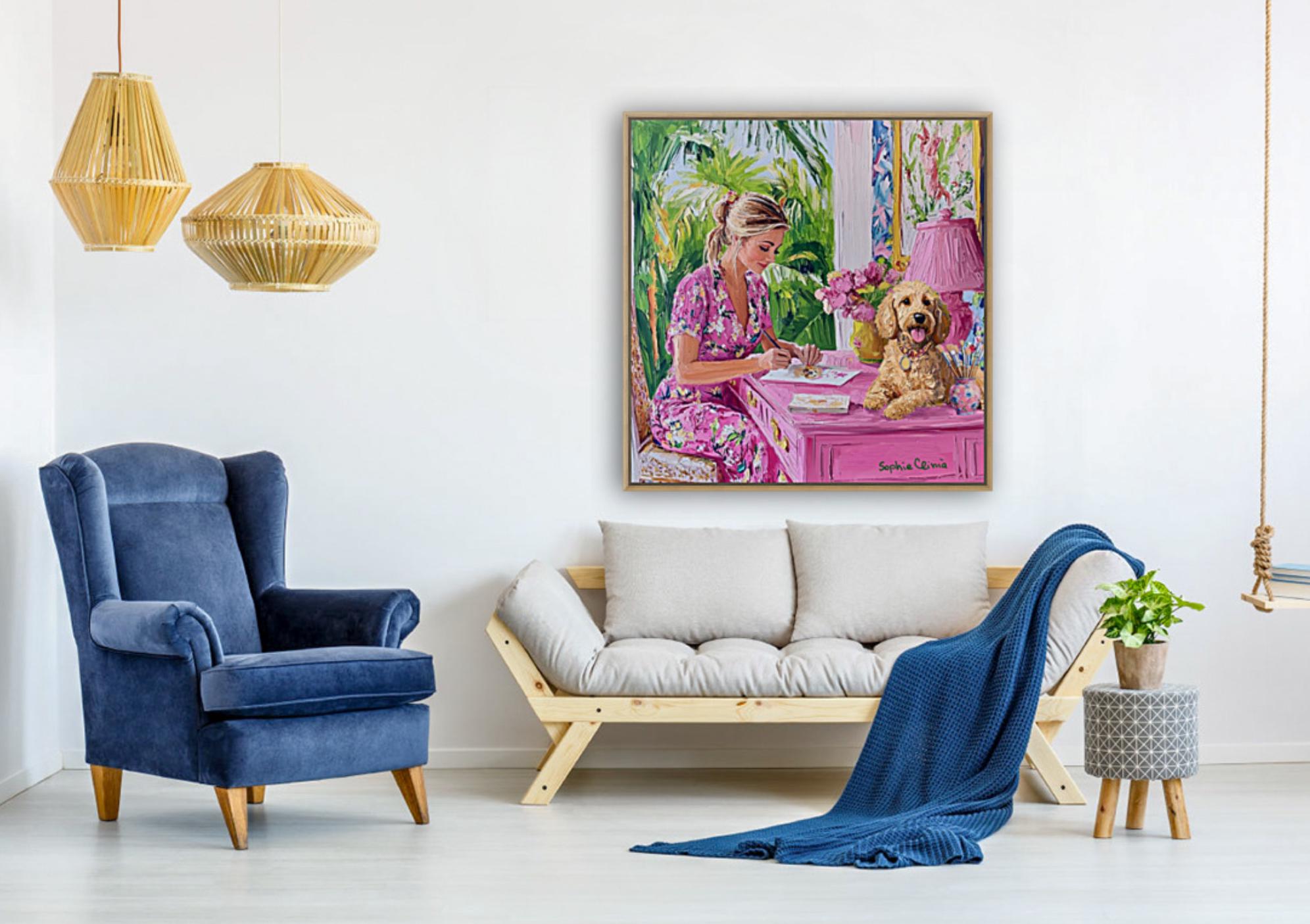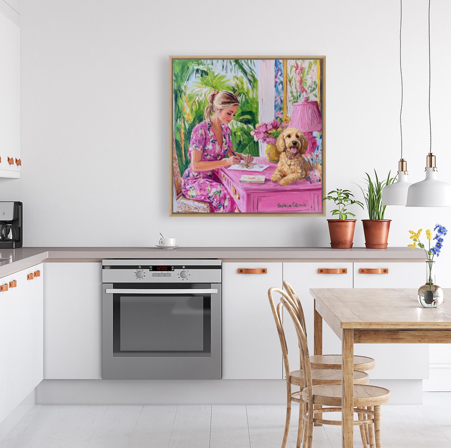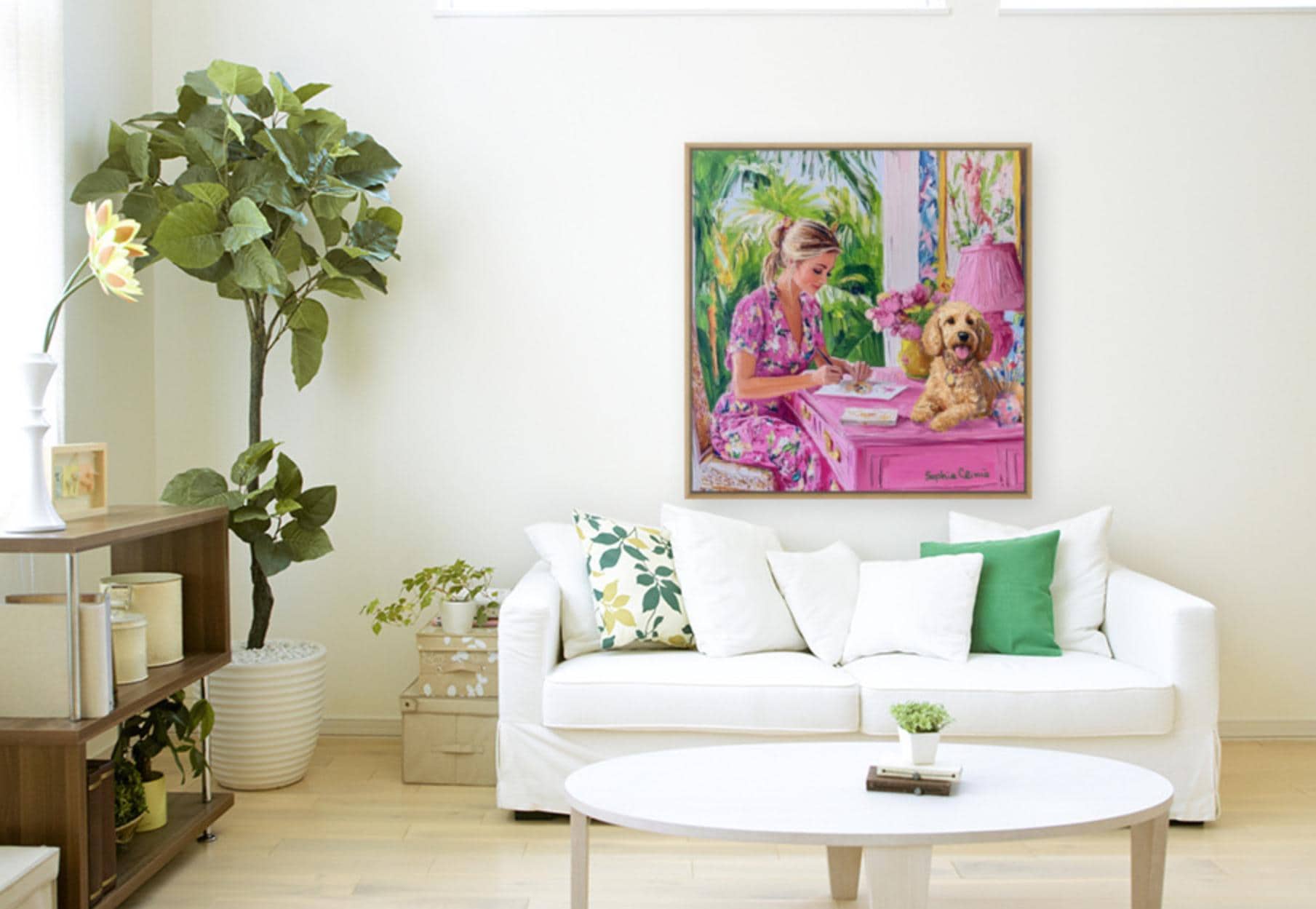 Grandmillennial Art Print: Woman and Dog, Whimsical Watercolor