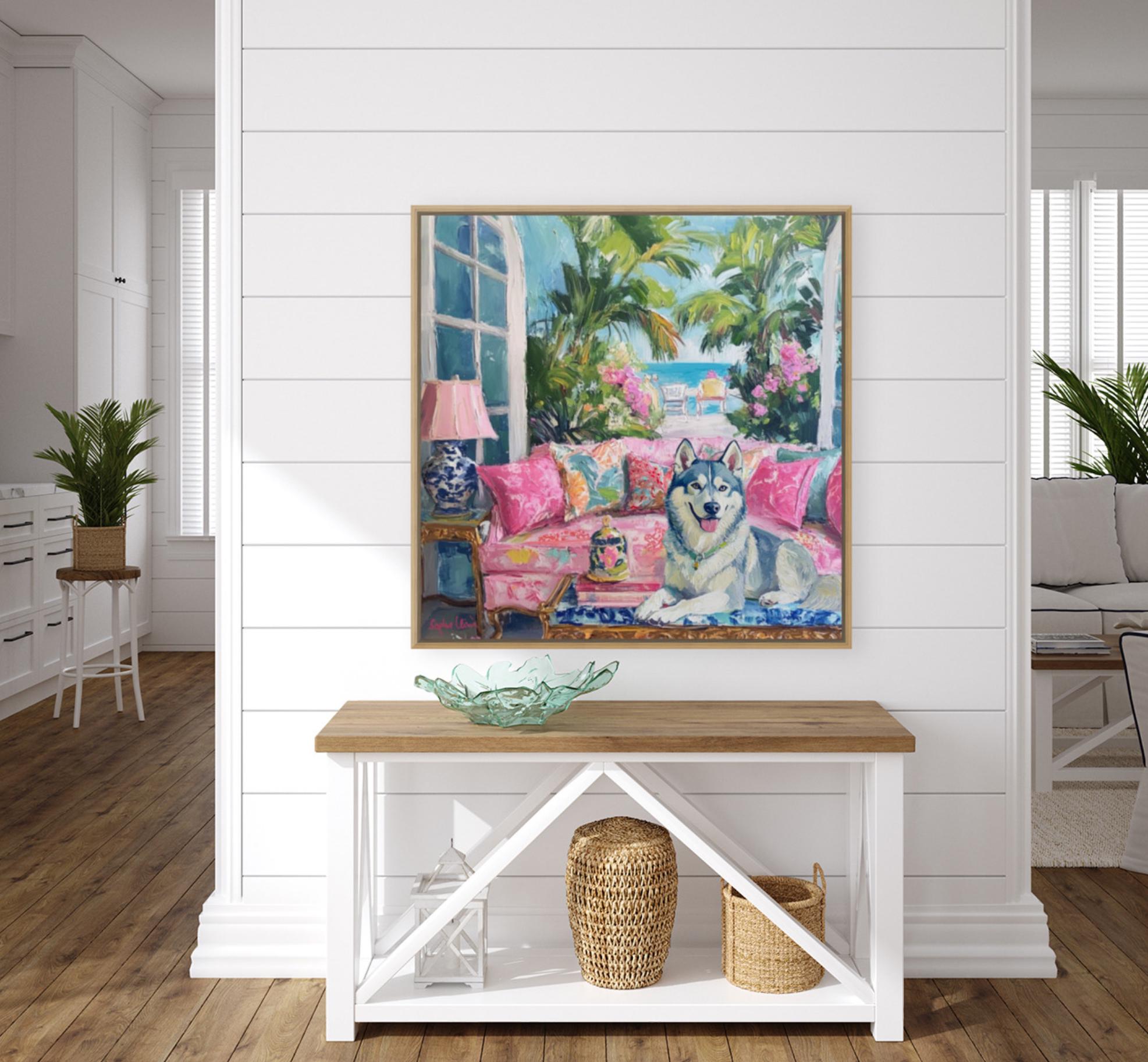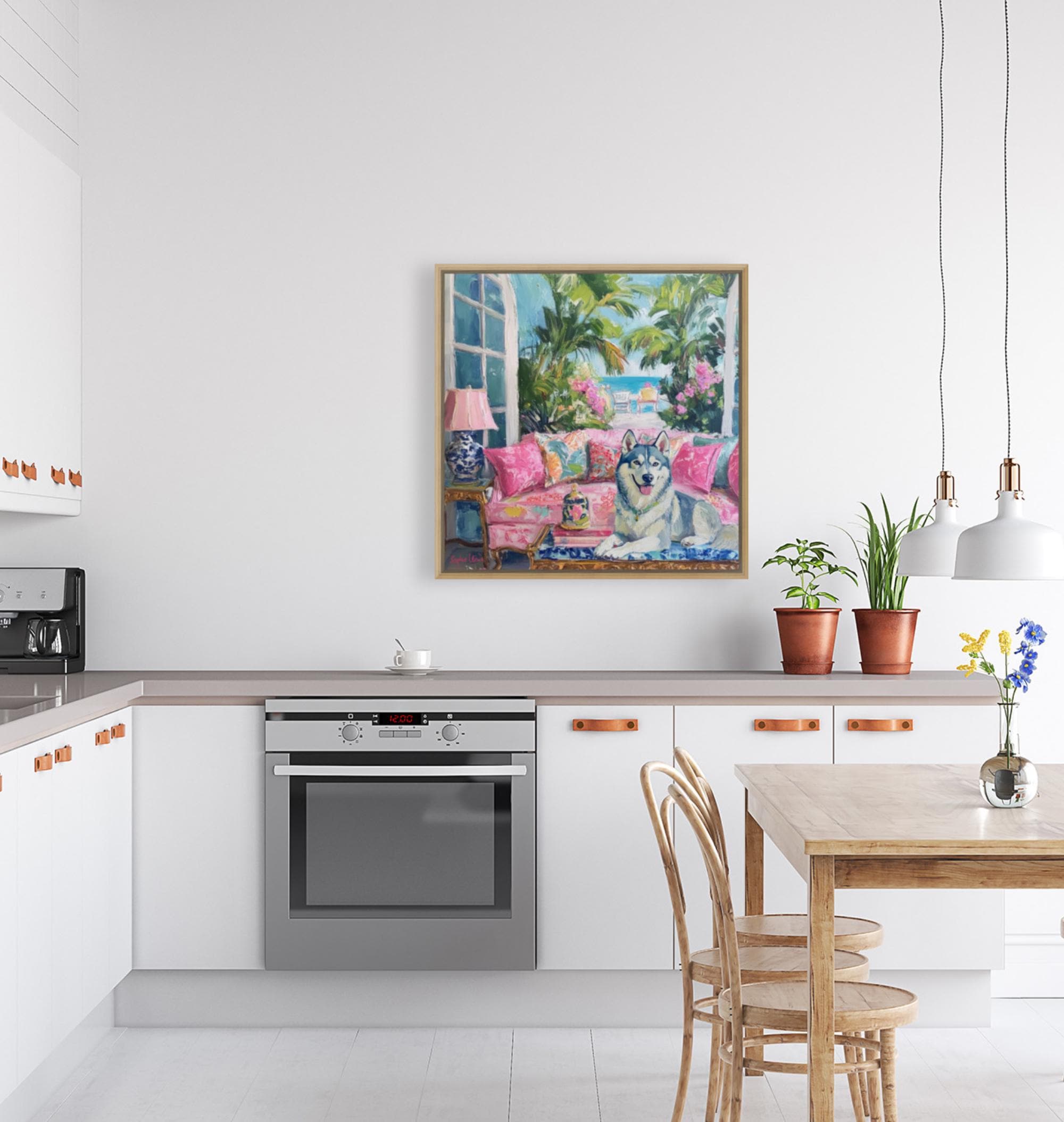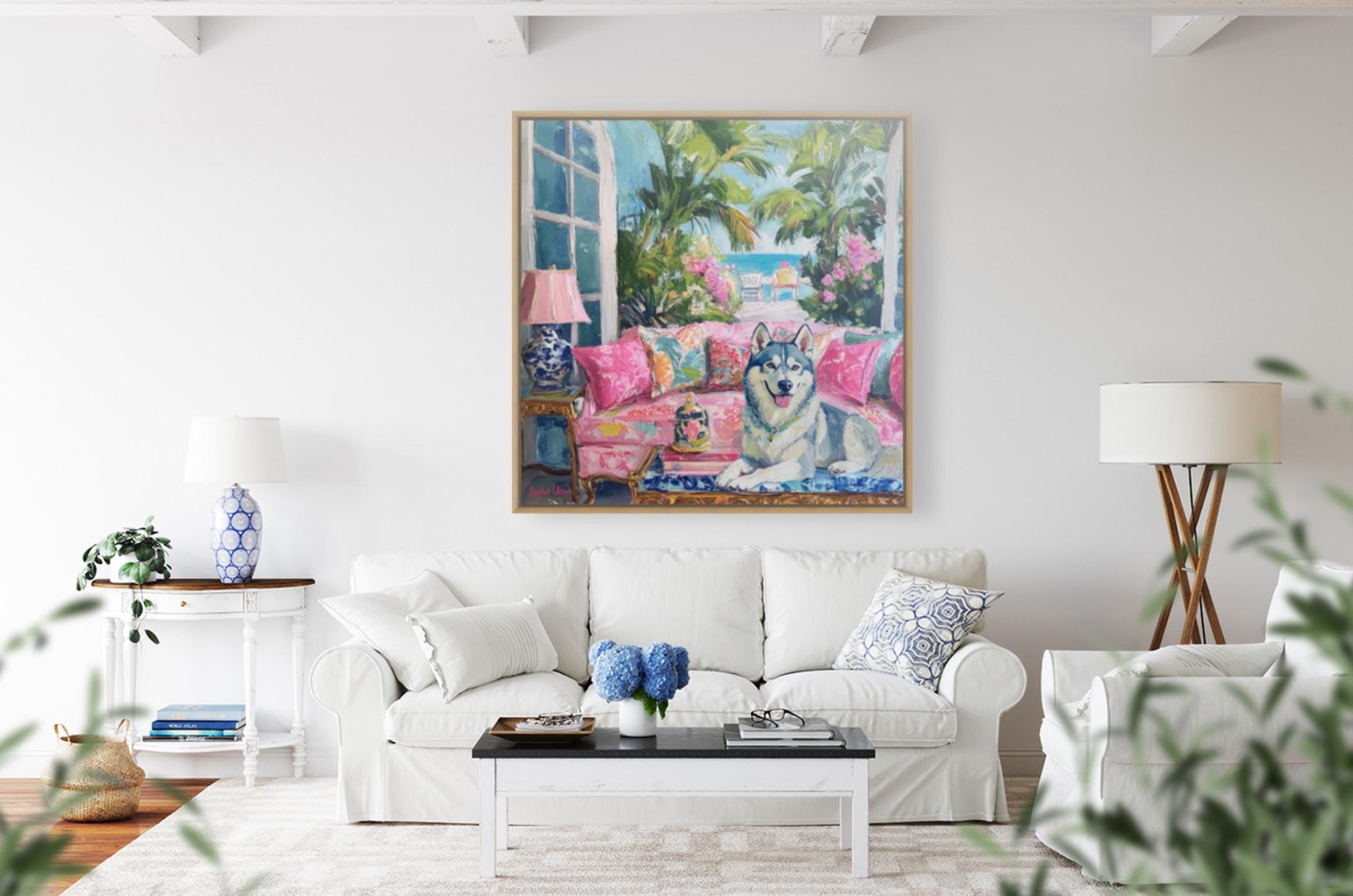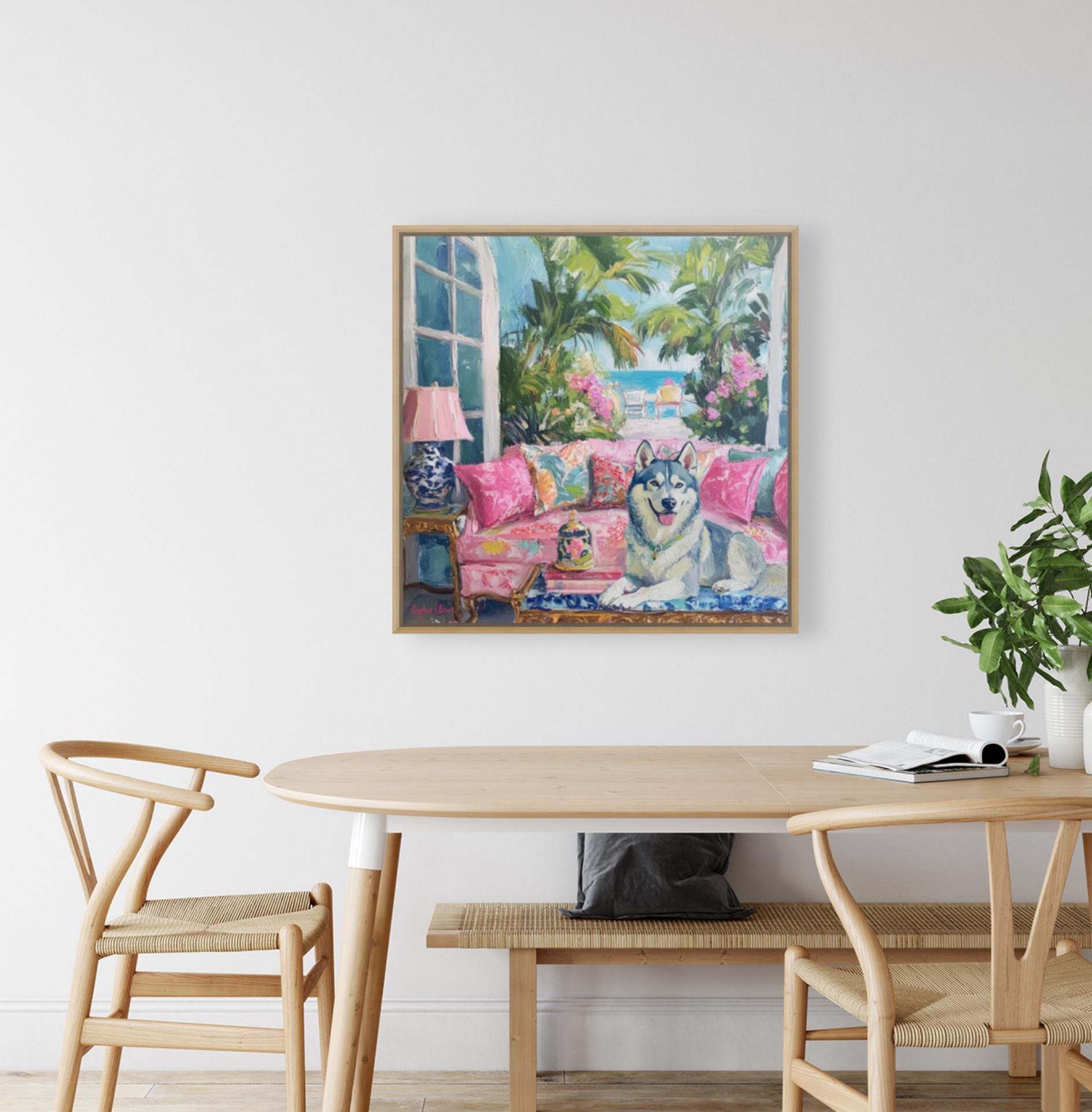 Room with a view, grandmillennial art, whimsical art print, husky portrait