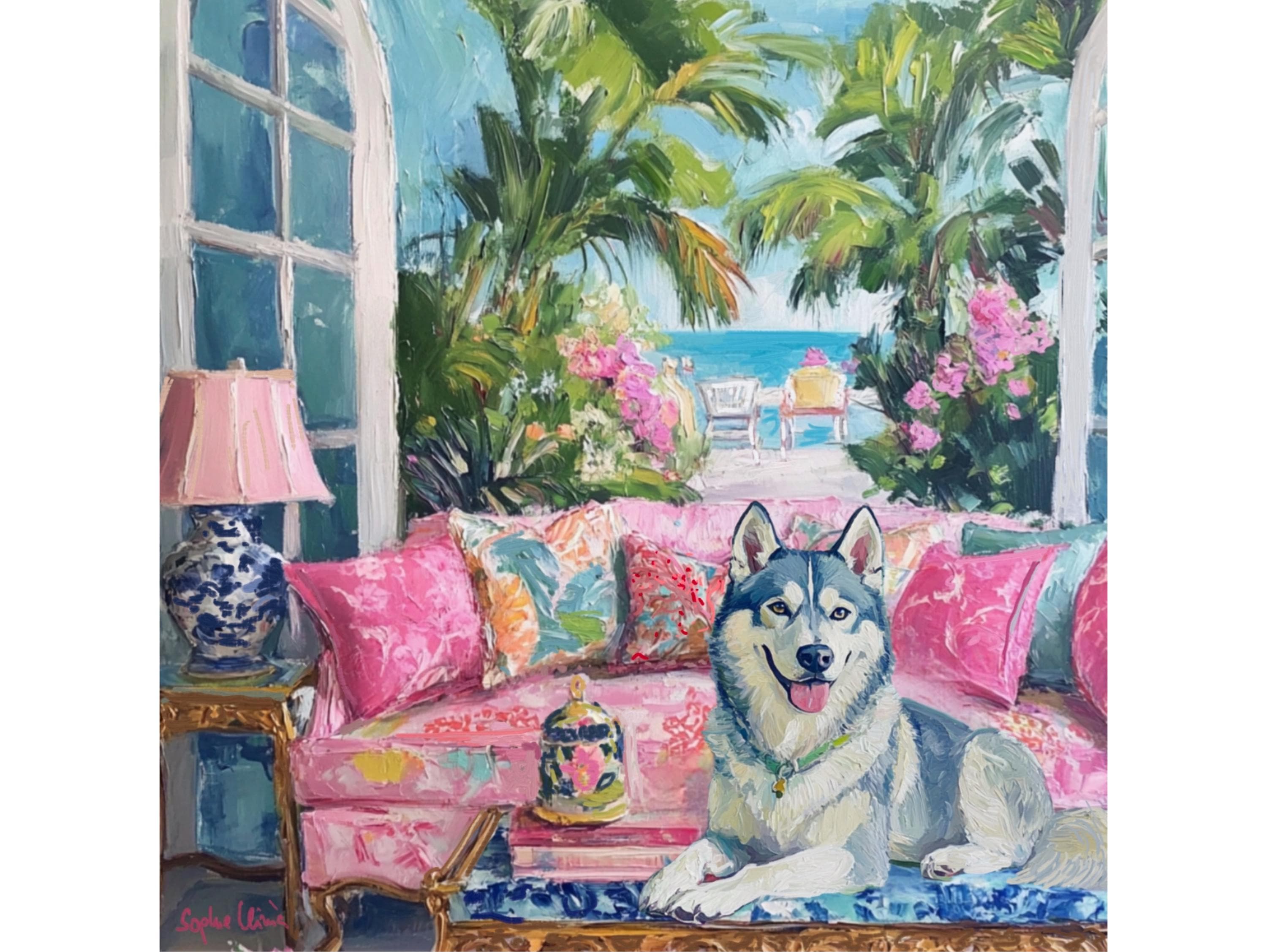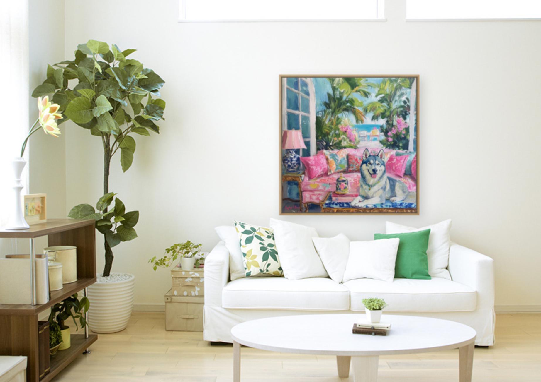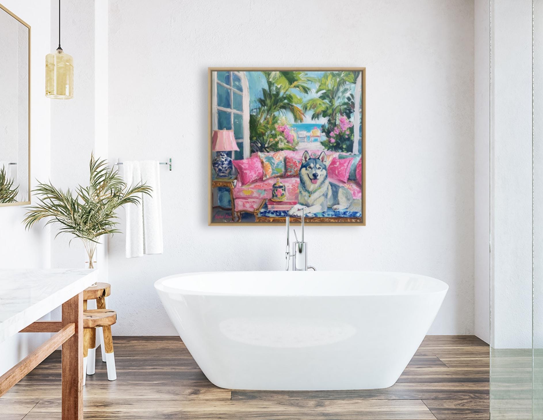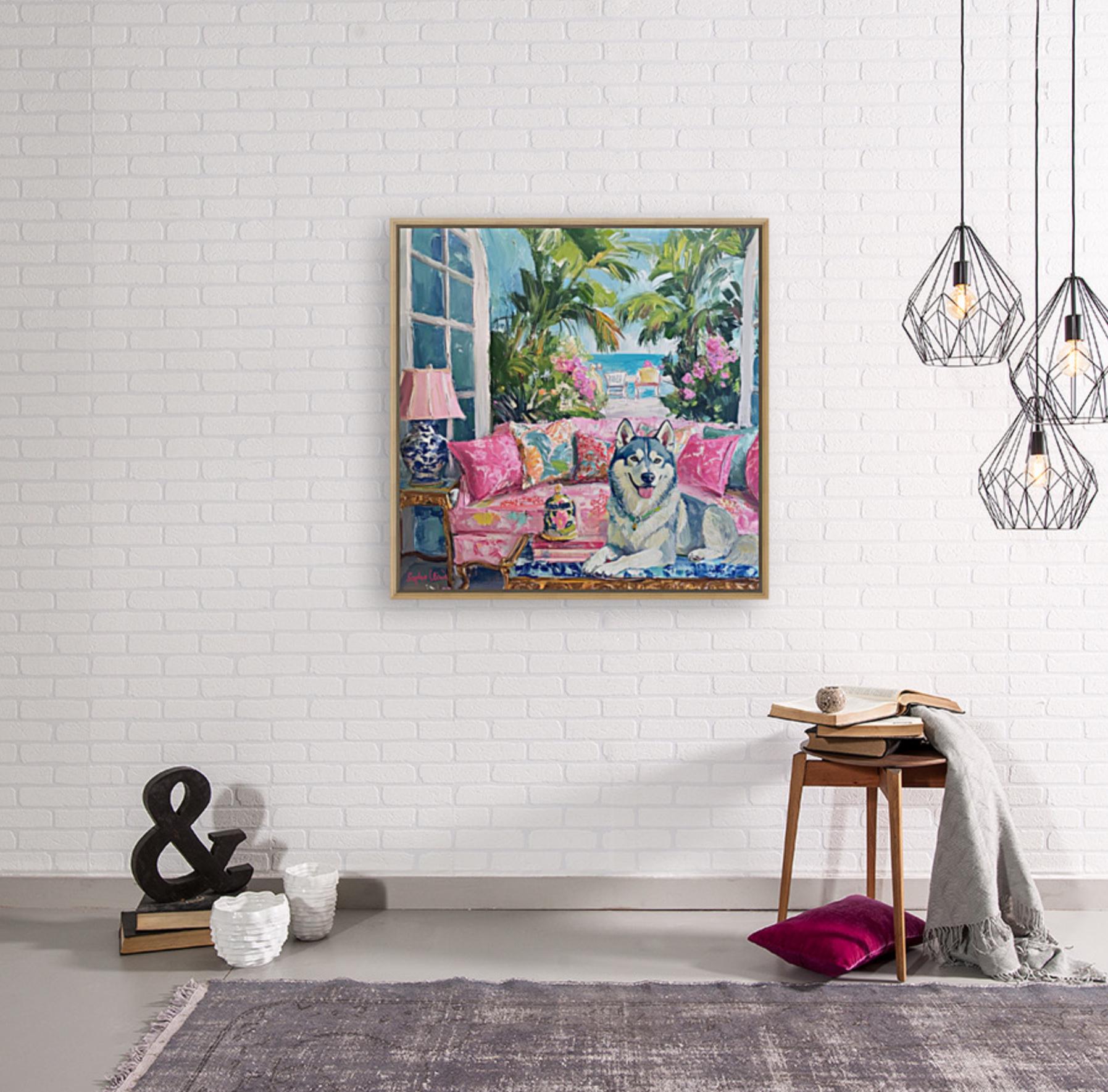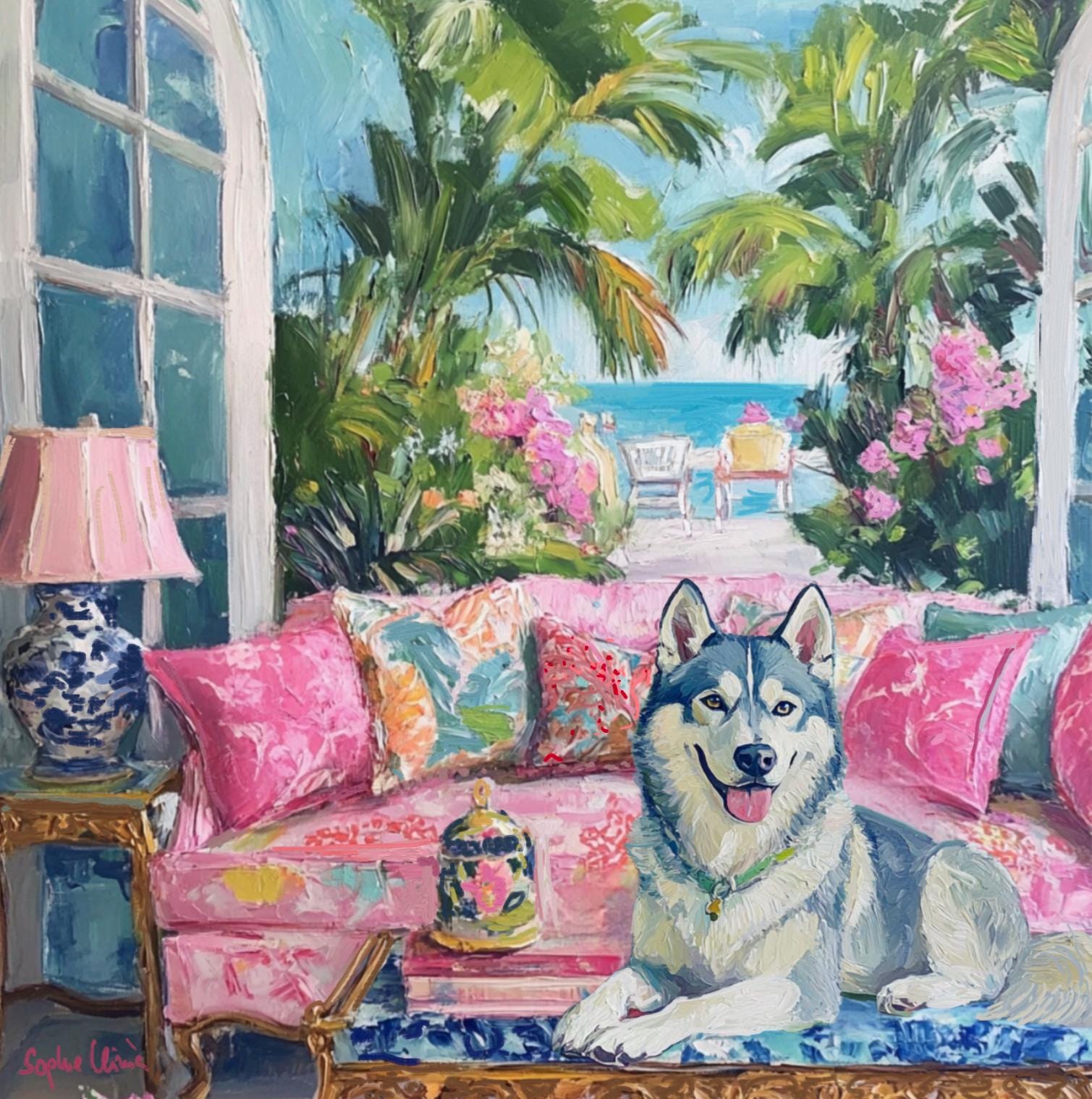 Room with a view, grandmillennial art, whimsical art print, husky portrait